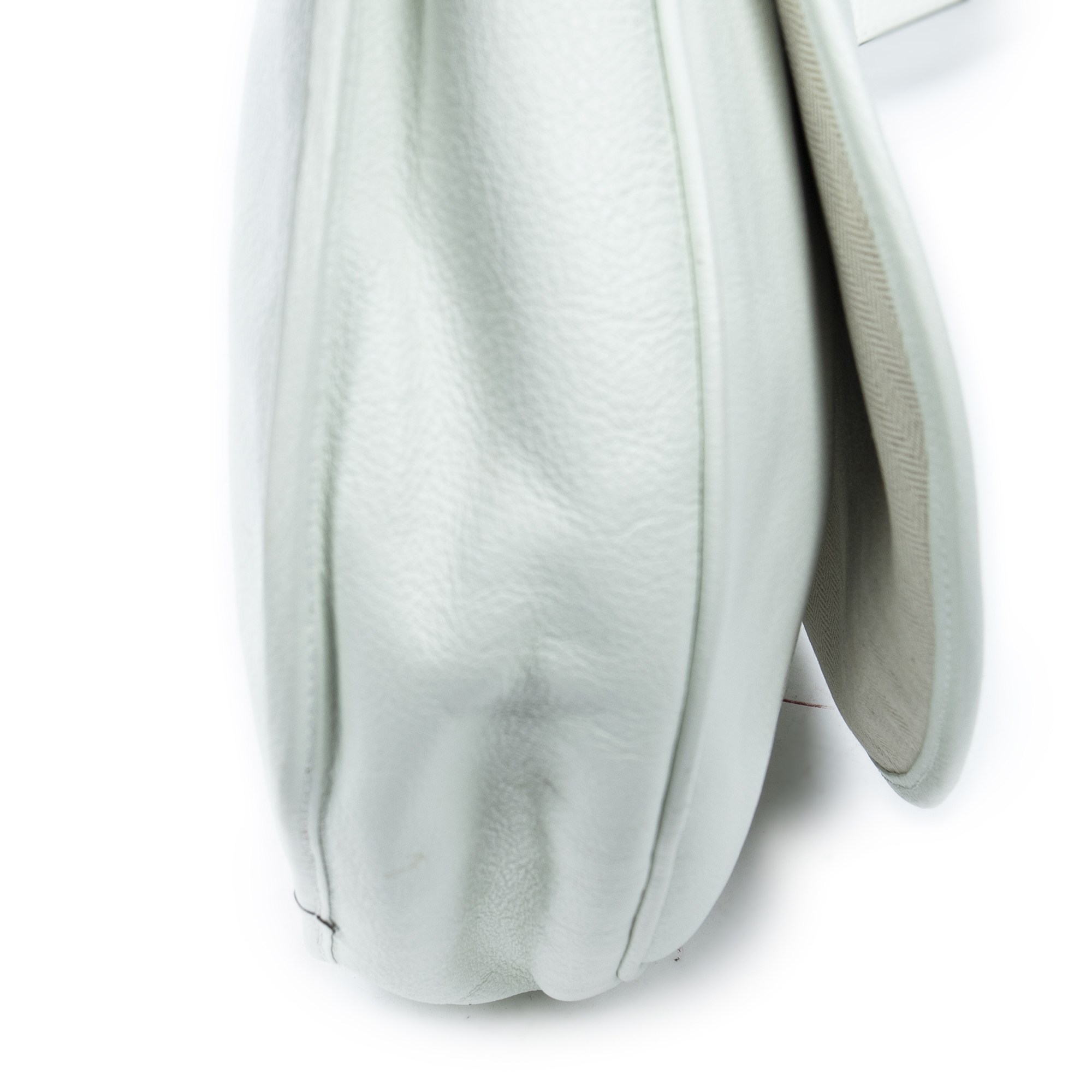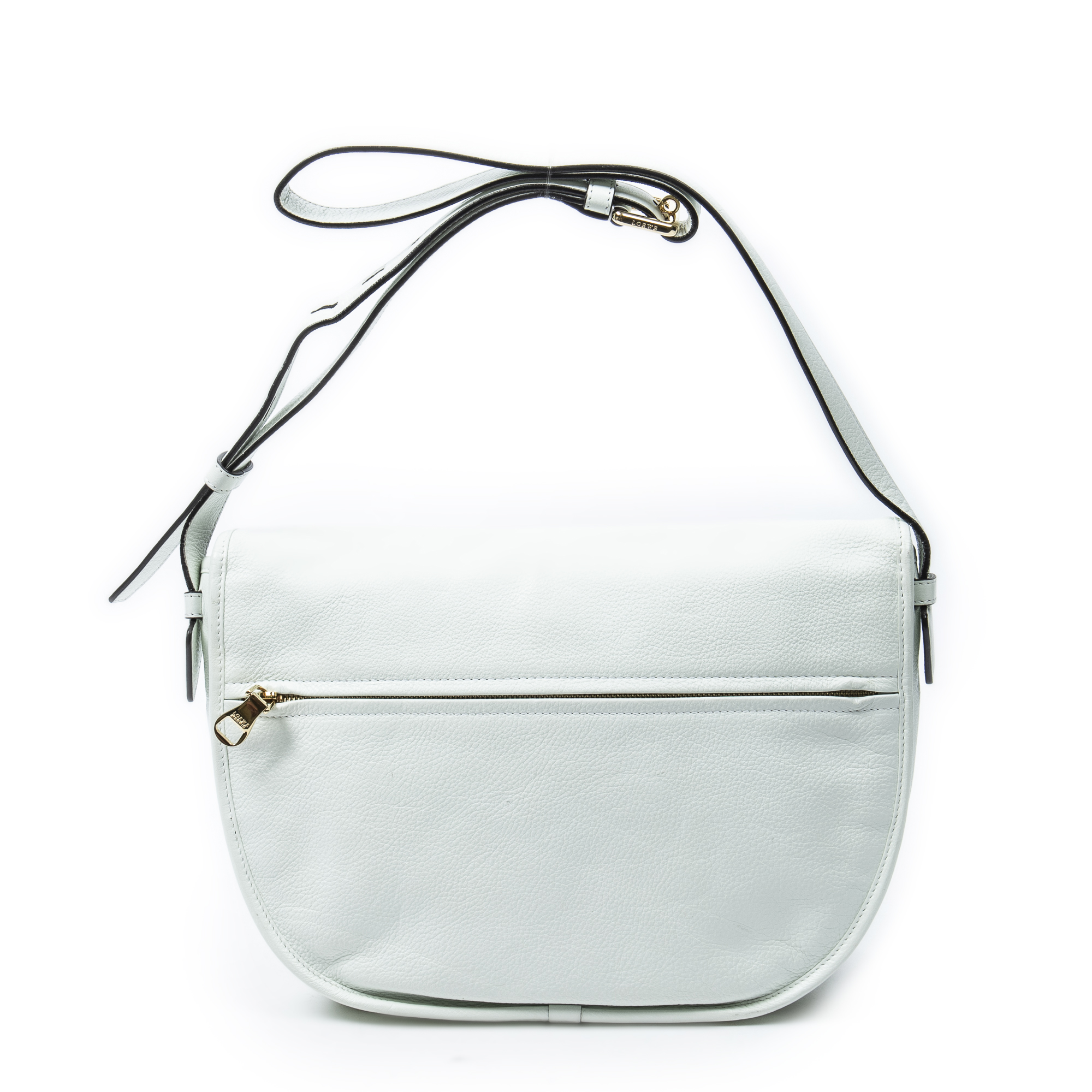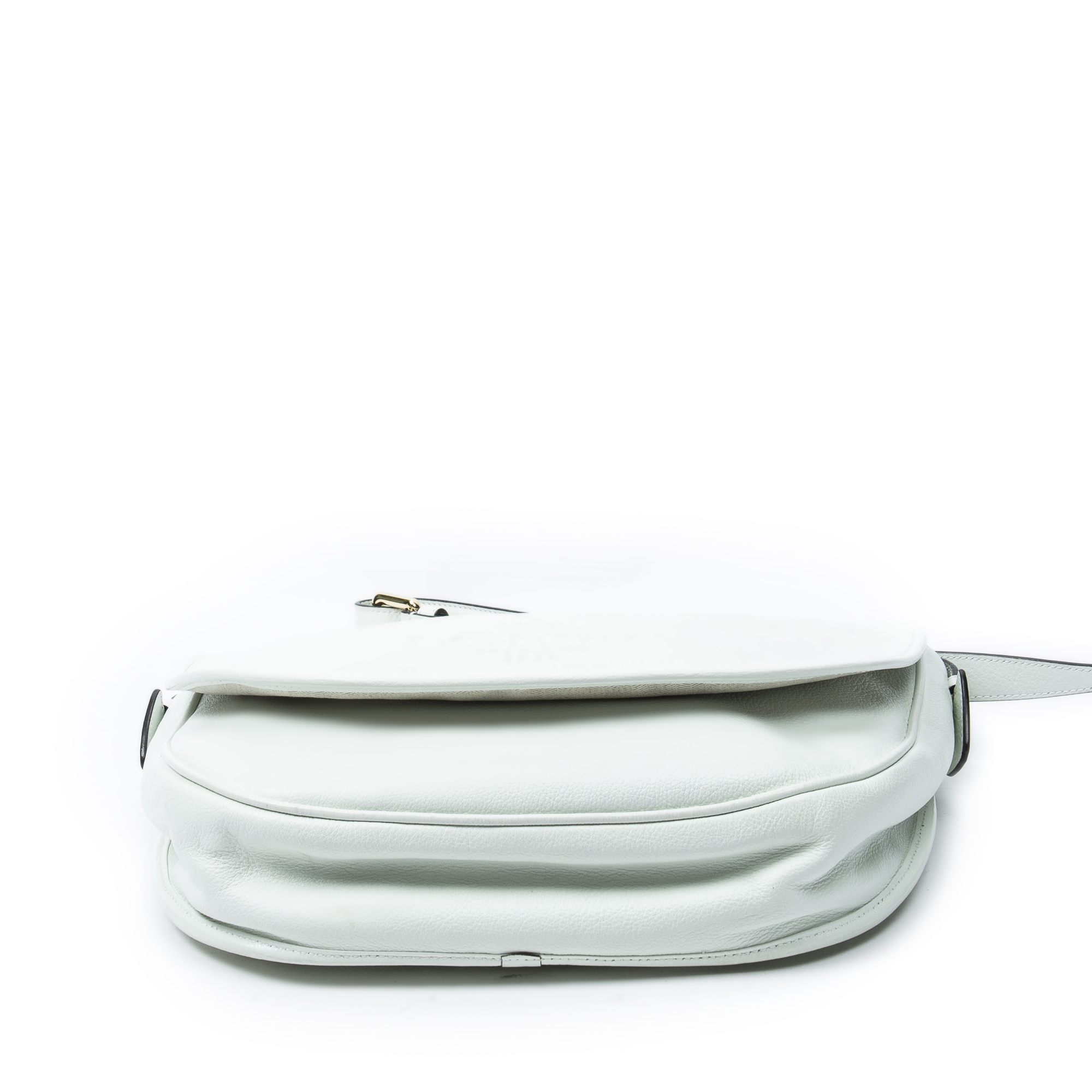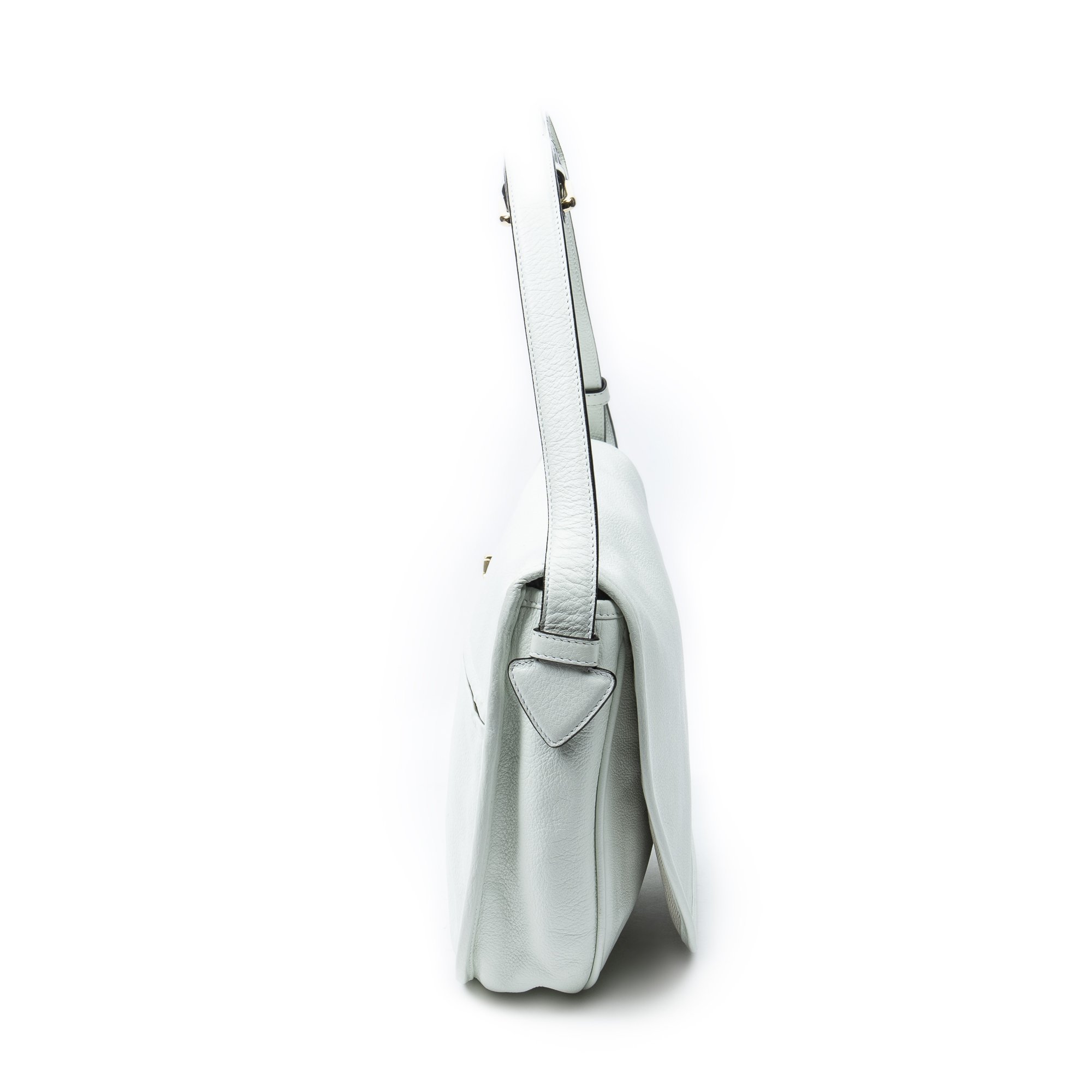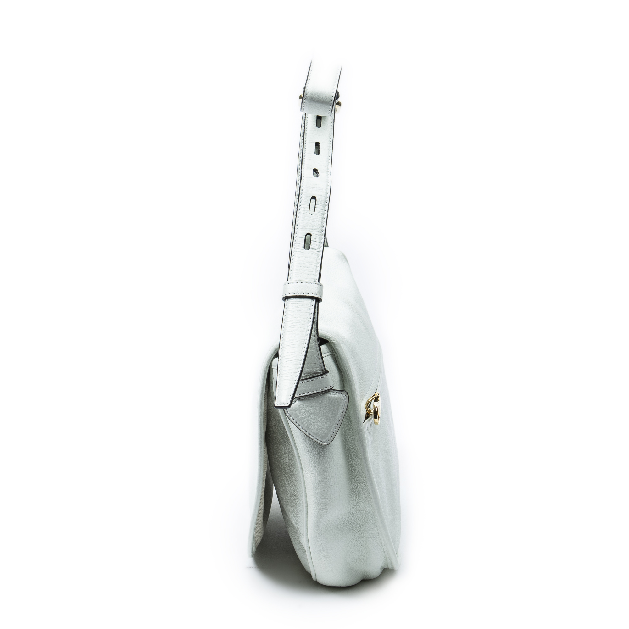 Loewe Shoulder Bag Heritage Flap Messenger in White Grained Calfskin Leather and Gold hardware. The product is in Excellent Condition (A).