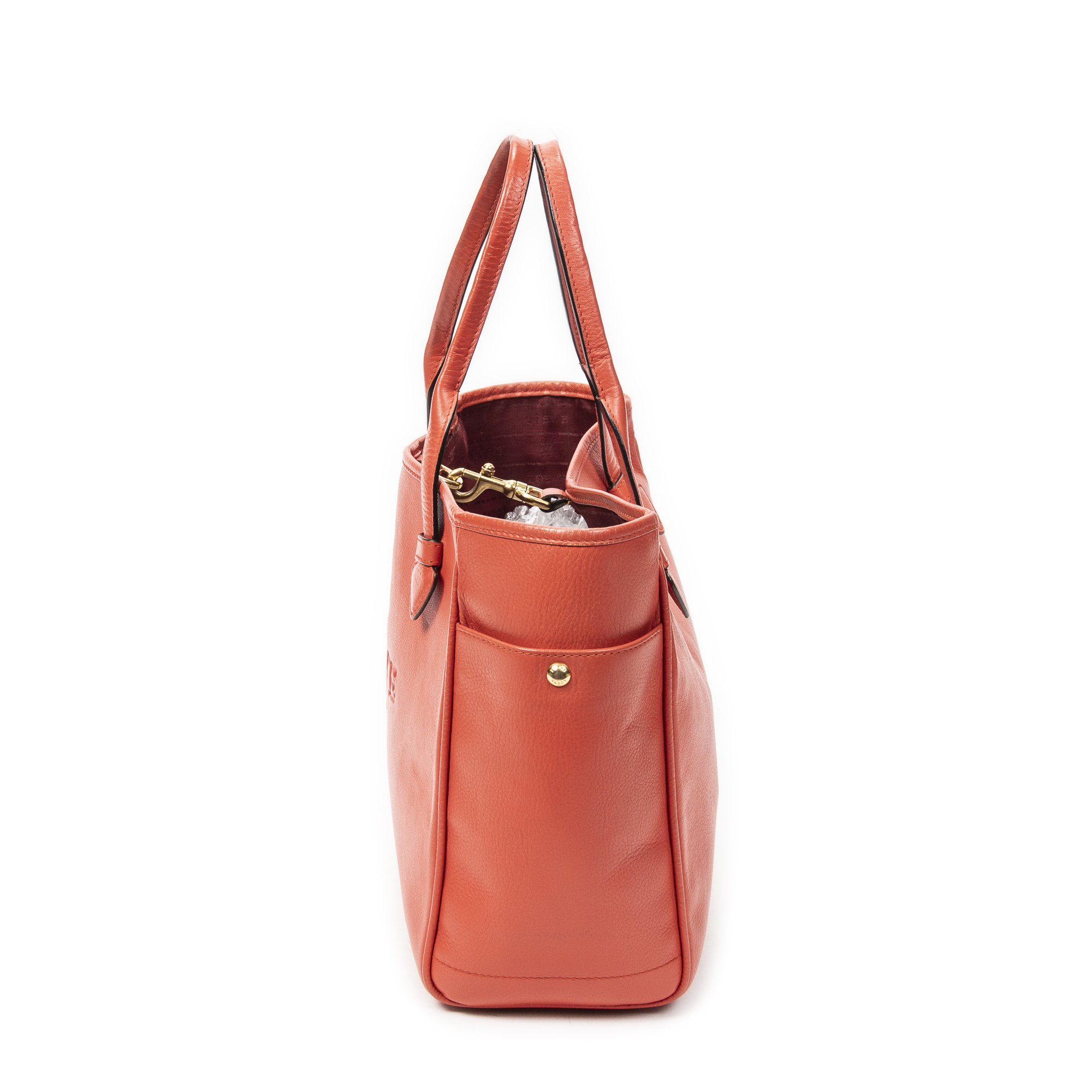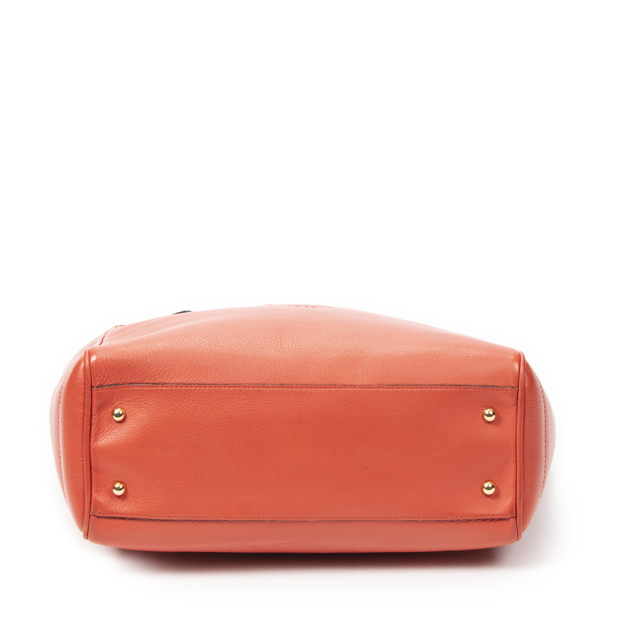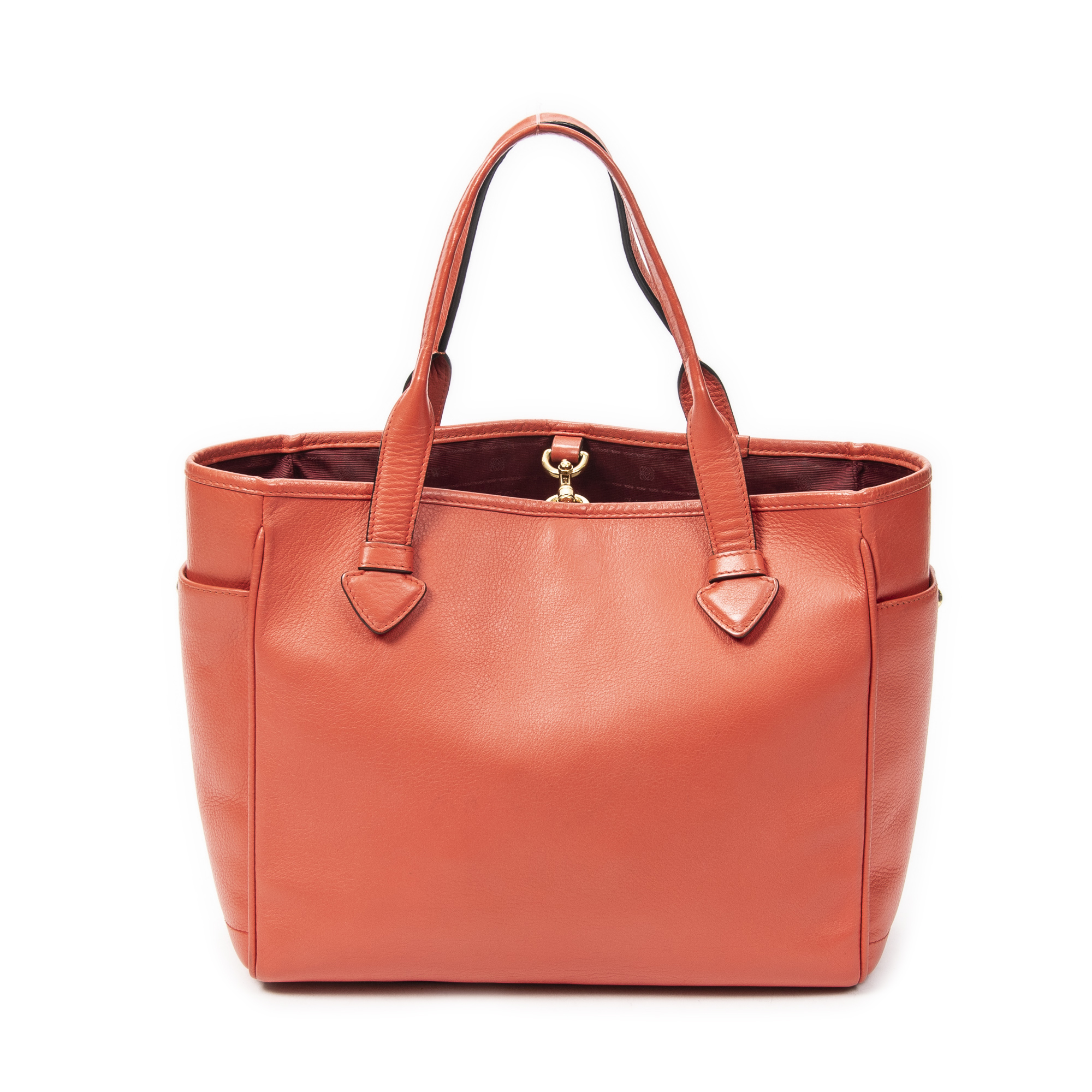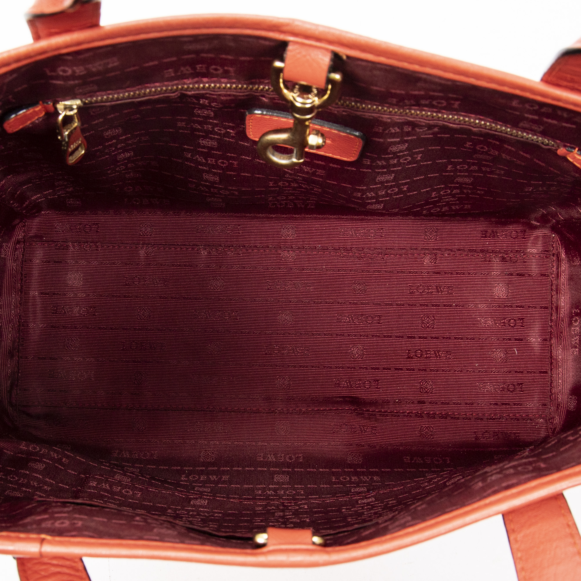 Loewe Shoulder Bag Heritage Tote in Orange Grained Calfskin Leather and Gold hardware. The product is in Excellent Condition (A).