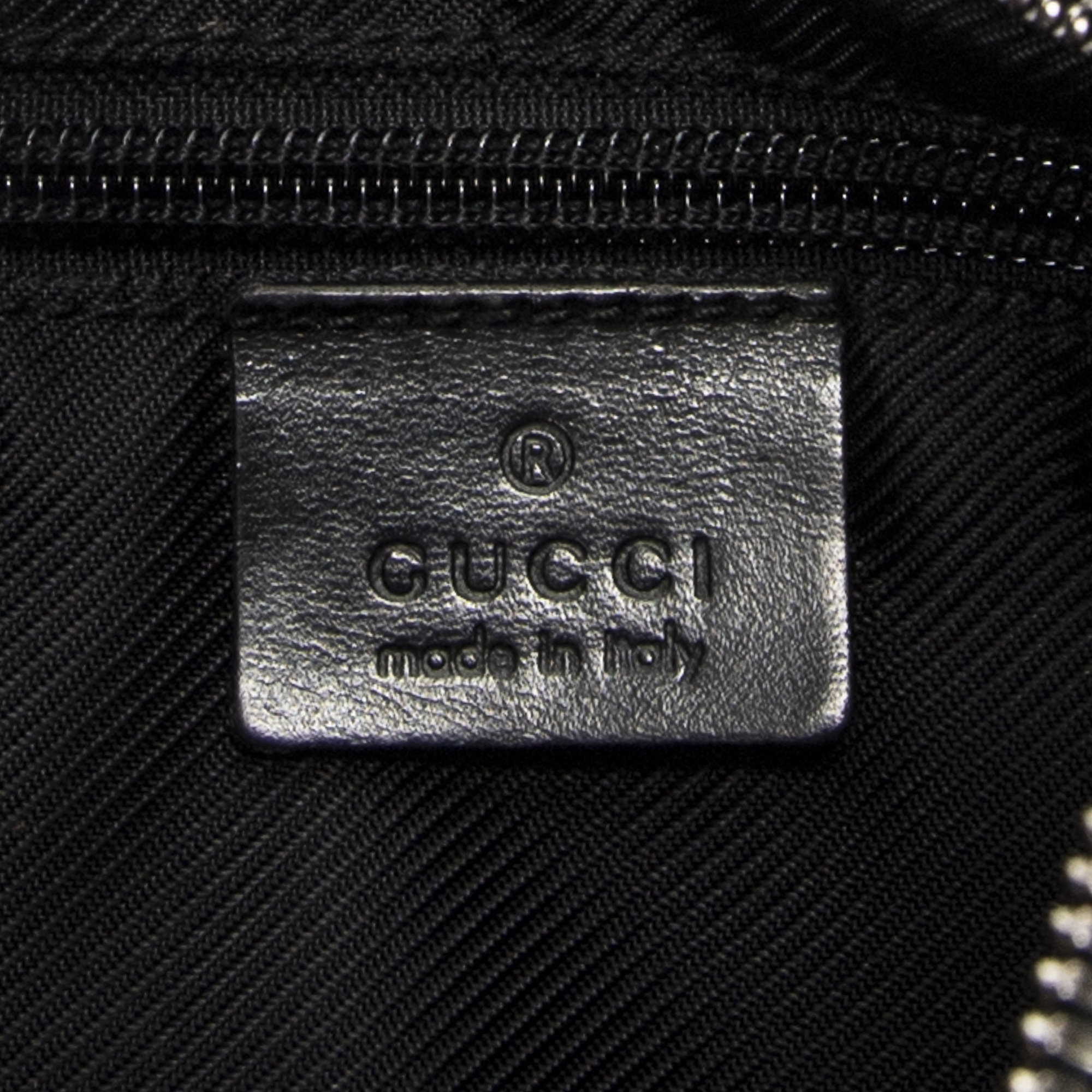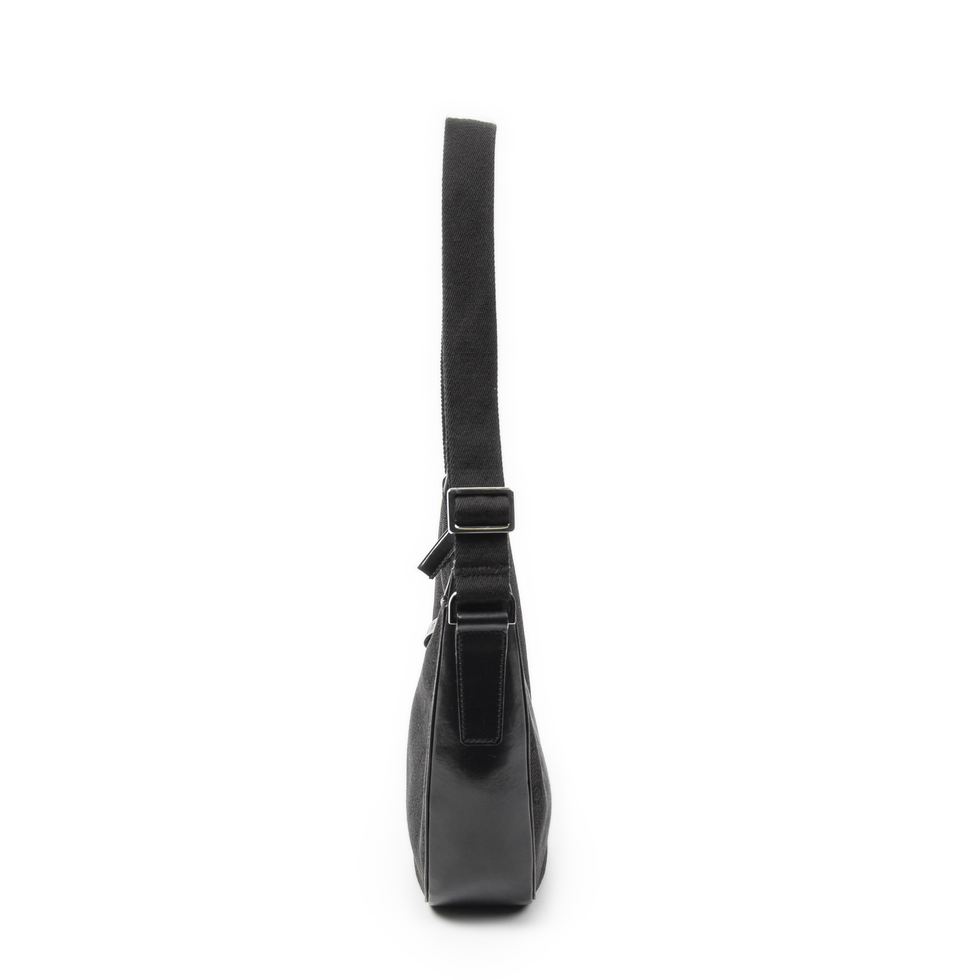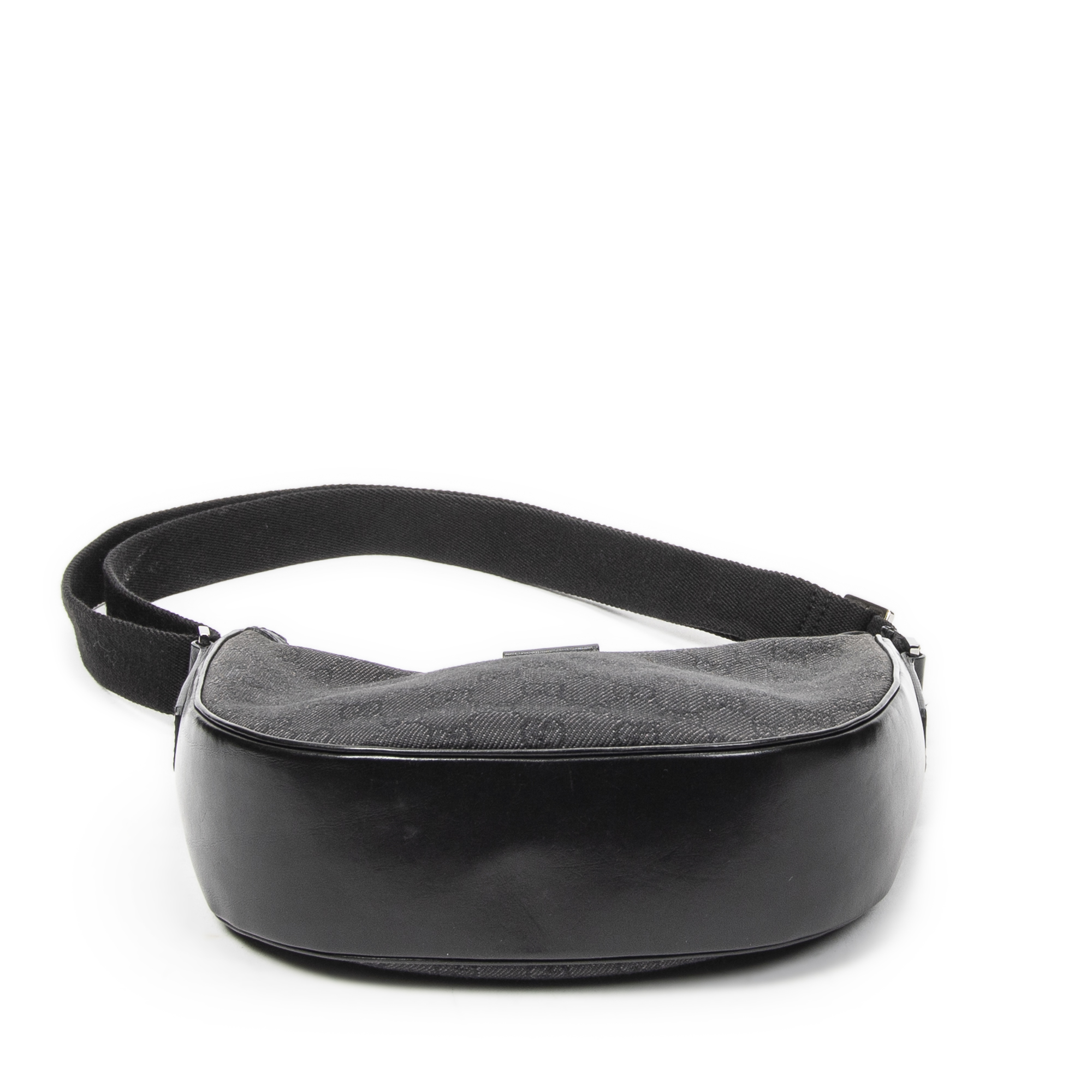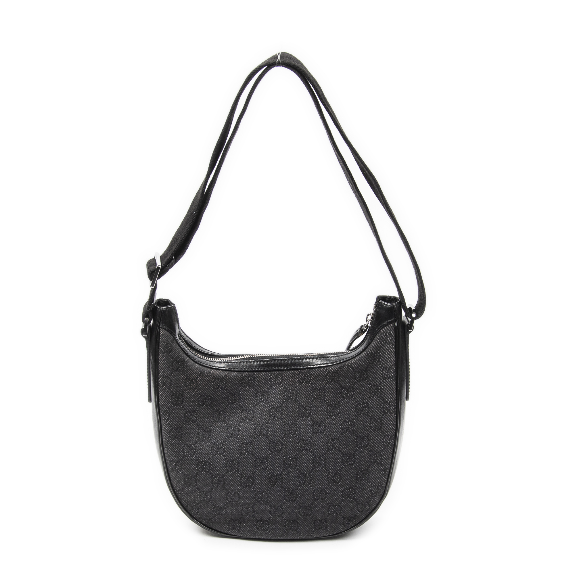 Gucci Shoulder Bag Hobo Zip Crossbody in Black Monogrammed Denim Canvas and Silver hardware. The product is in Excellent Condition (A).