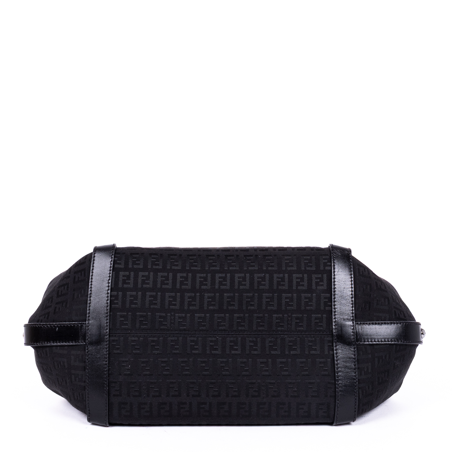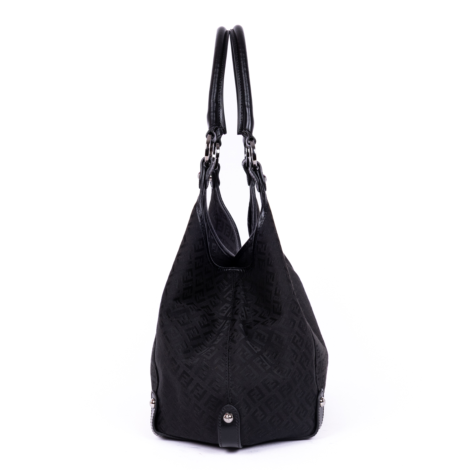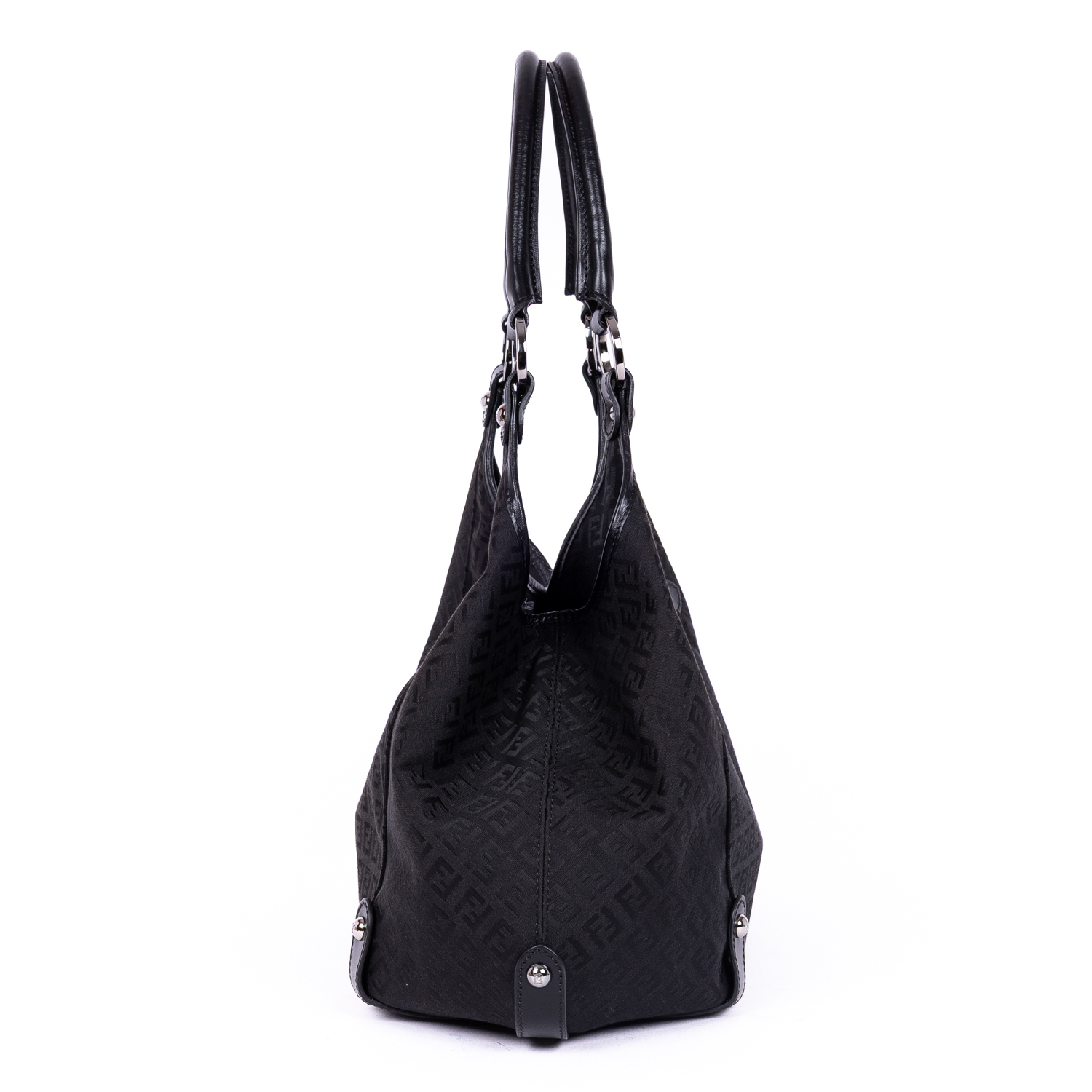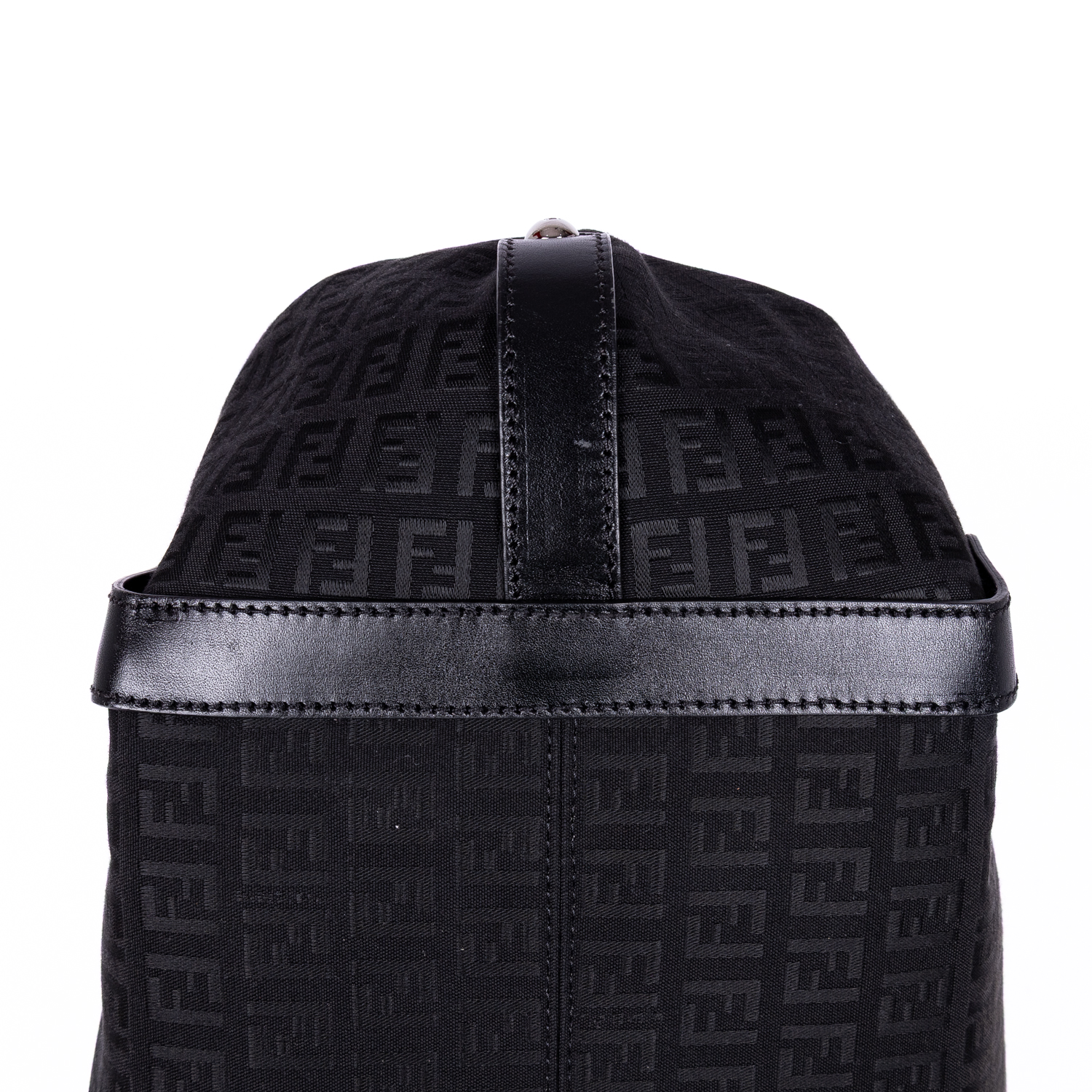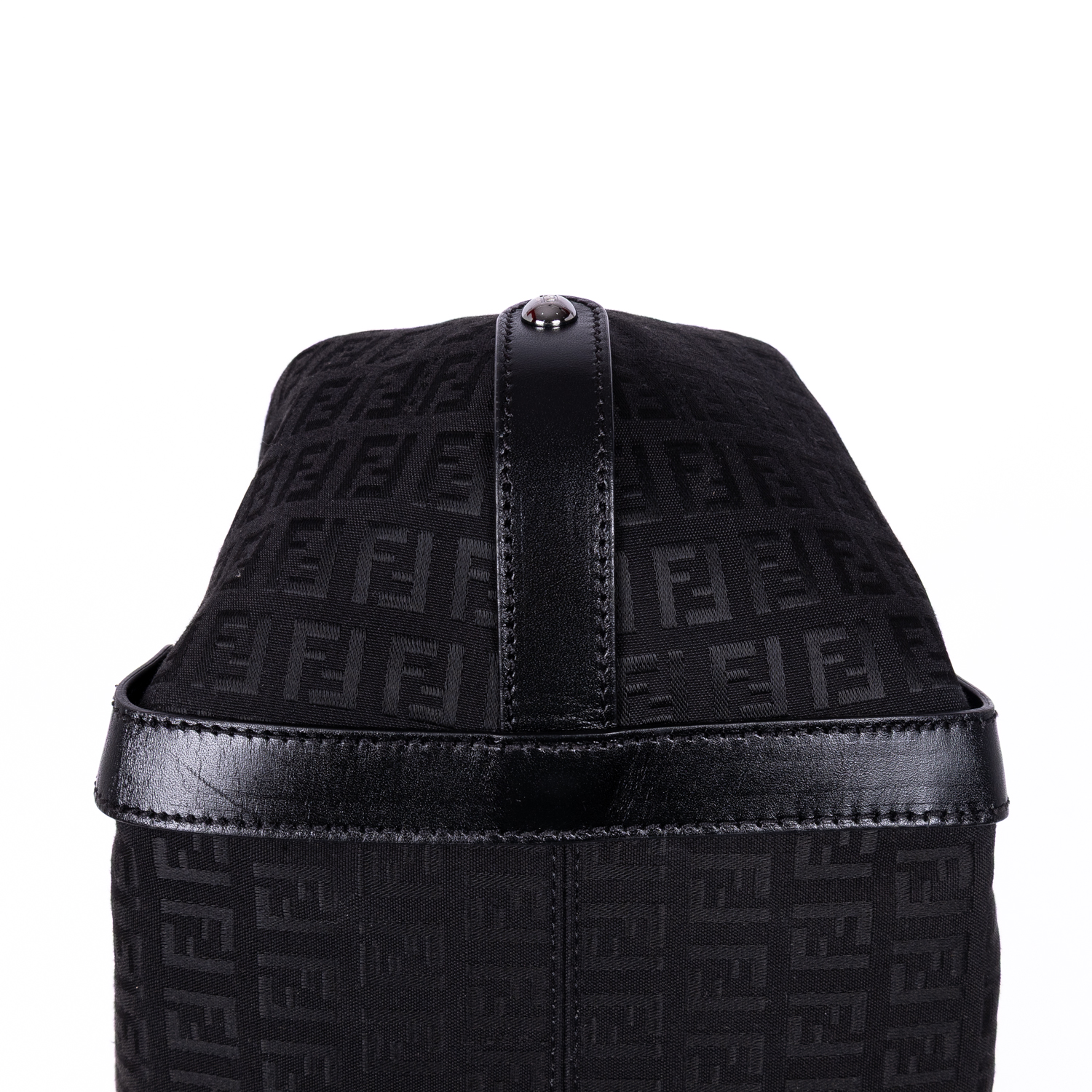 Fendi Shoulder Bag Hobo in Black Zucchino Canvas and Silver hardware. The product is in Perfect Condition (AA).