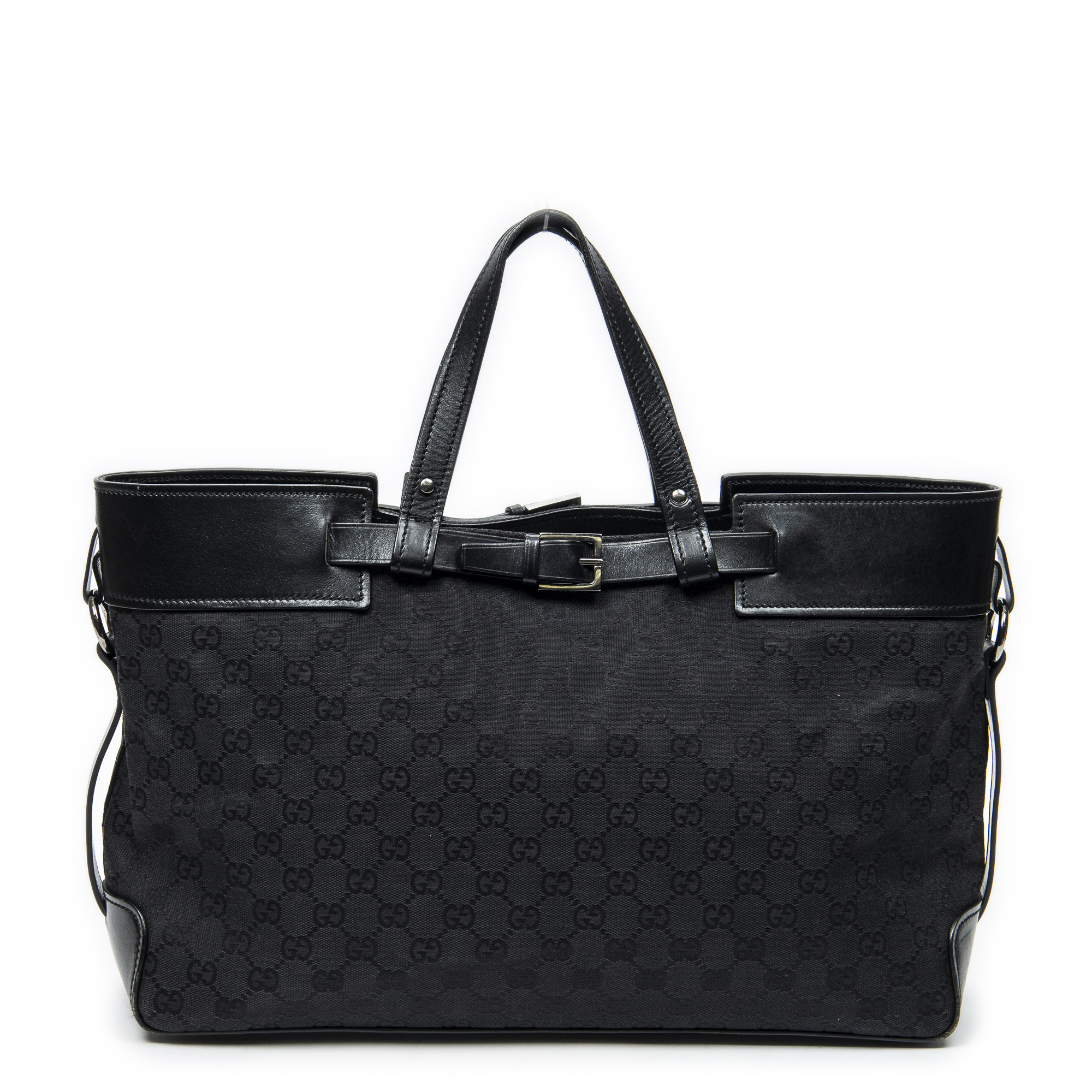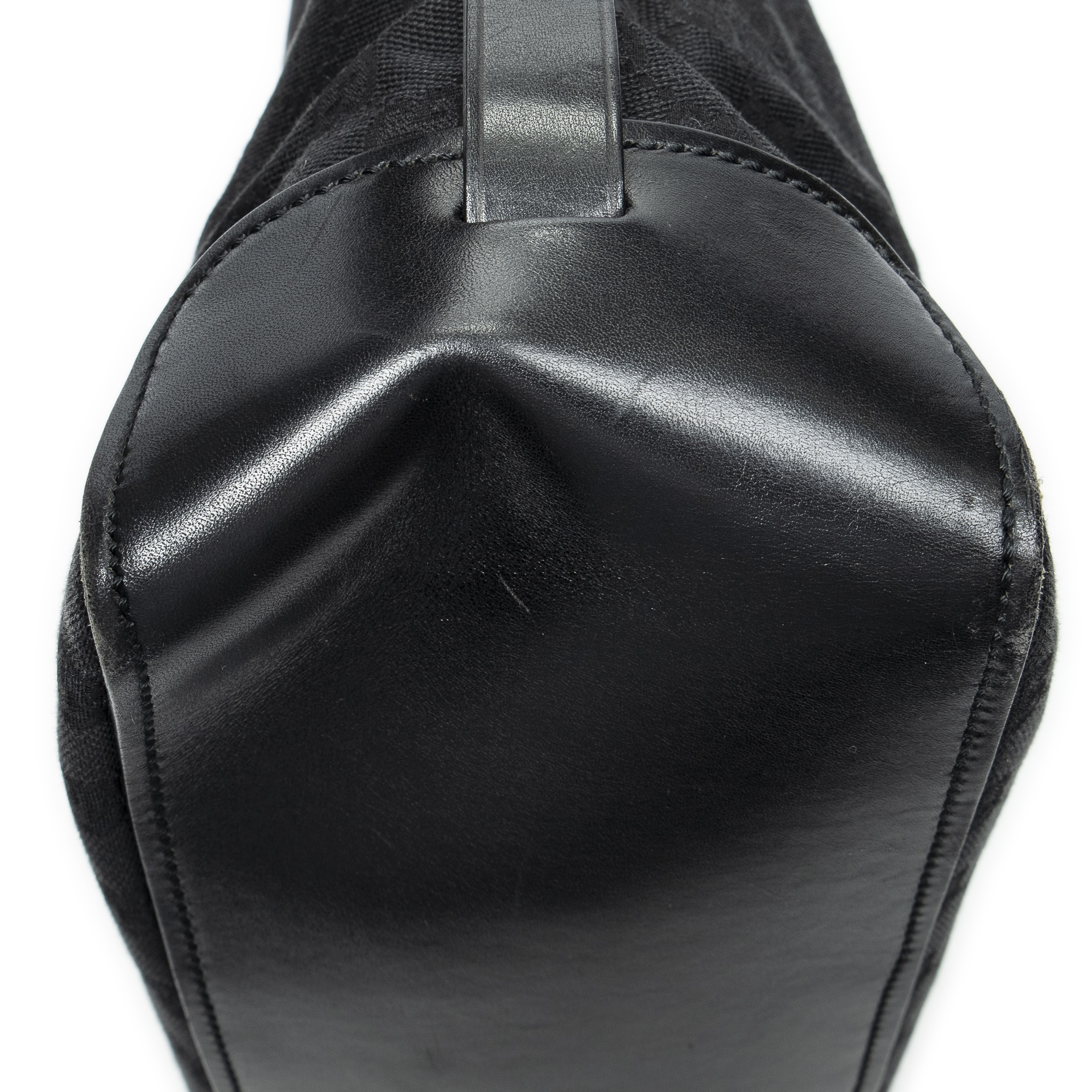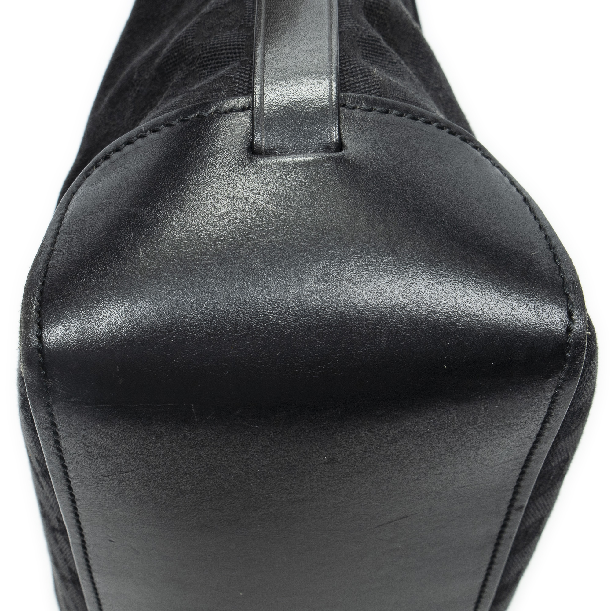 Gucci Shoulder Bag Horizontal Belt Tote in Black Monogrammed Canvas and Silver hardware. The product is in Excellent Condition (A).