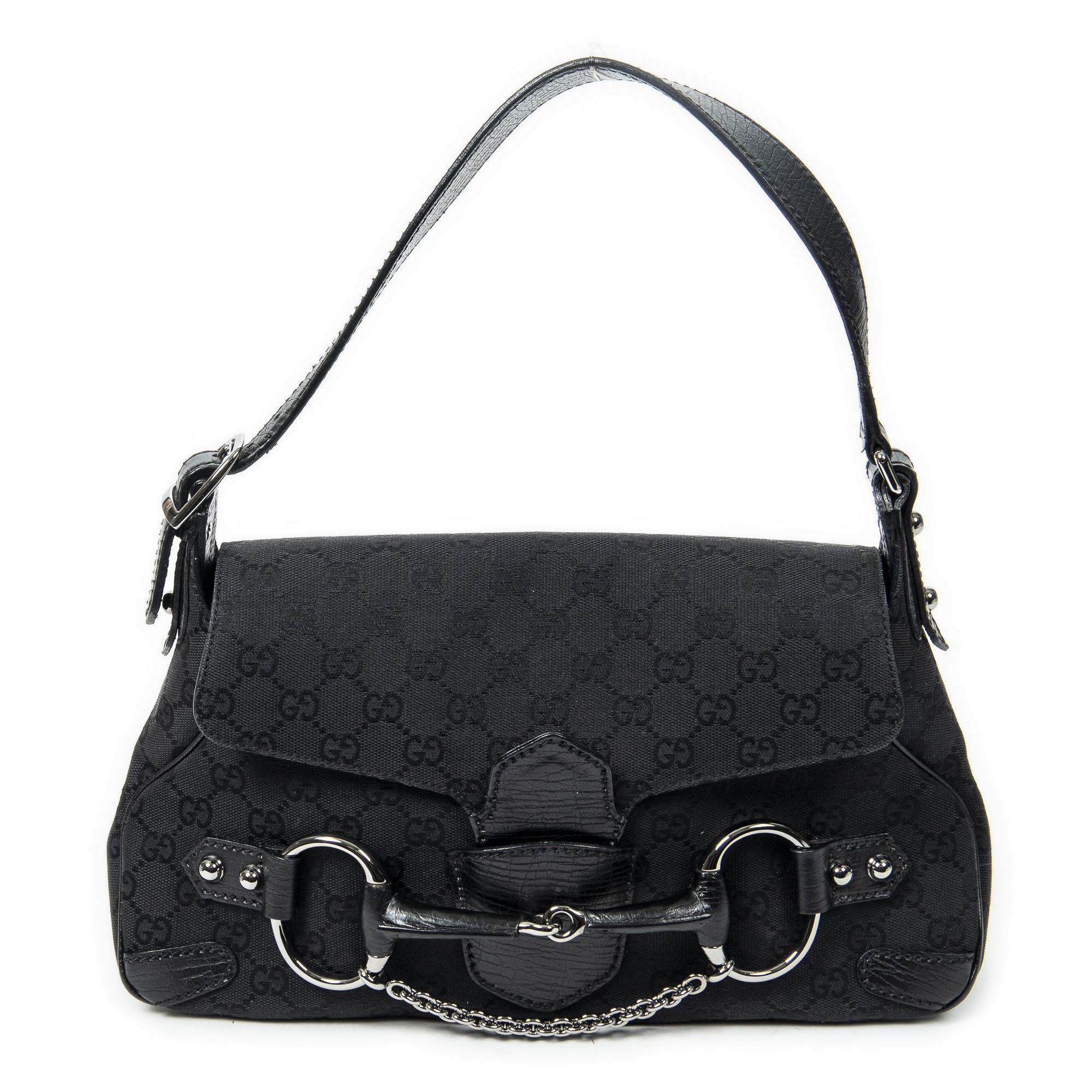 Description : Gucci Shoulder Bag Horsebit Chain Shoulder Flap in Black Monogrammed Canvas and Ruthenium hardware. The product is in Excellent Condition (A). Dimensions: 32x19x8 cm SKU: ABA4413 Serial number: 114915-205118 Accessories Included: None Condition Notes: scuffs on handle; minor scuffs on bottom piping Delivery: We have a 5 to 7 business days delivery policy, hassle-free and duties/tariffs included! BrandCo Paris finds rare and top condition items at great deals, they are worth your patience! Shop with confidence - All BrandCo Paris items are carefully selected and authenticated by our team of experts. All the items come with an authenticity certificate and packaging delivered by BrandCo Paris. Item Condition Grading Table N (Like New) AA (Perfect Condition) A (Excellent Condition) AB (Very Good Condition) B (Good/Fair)
