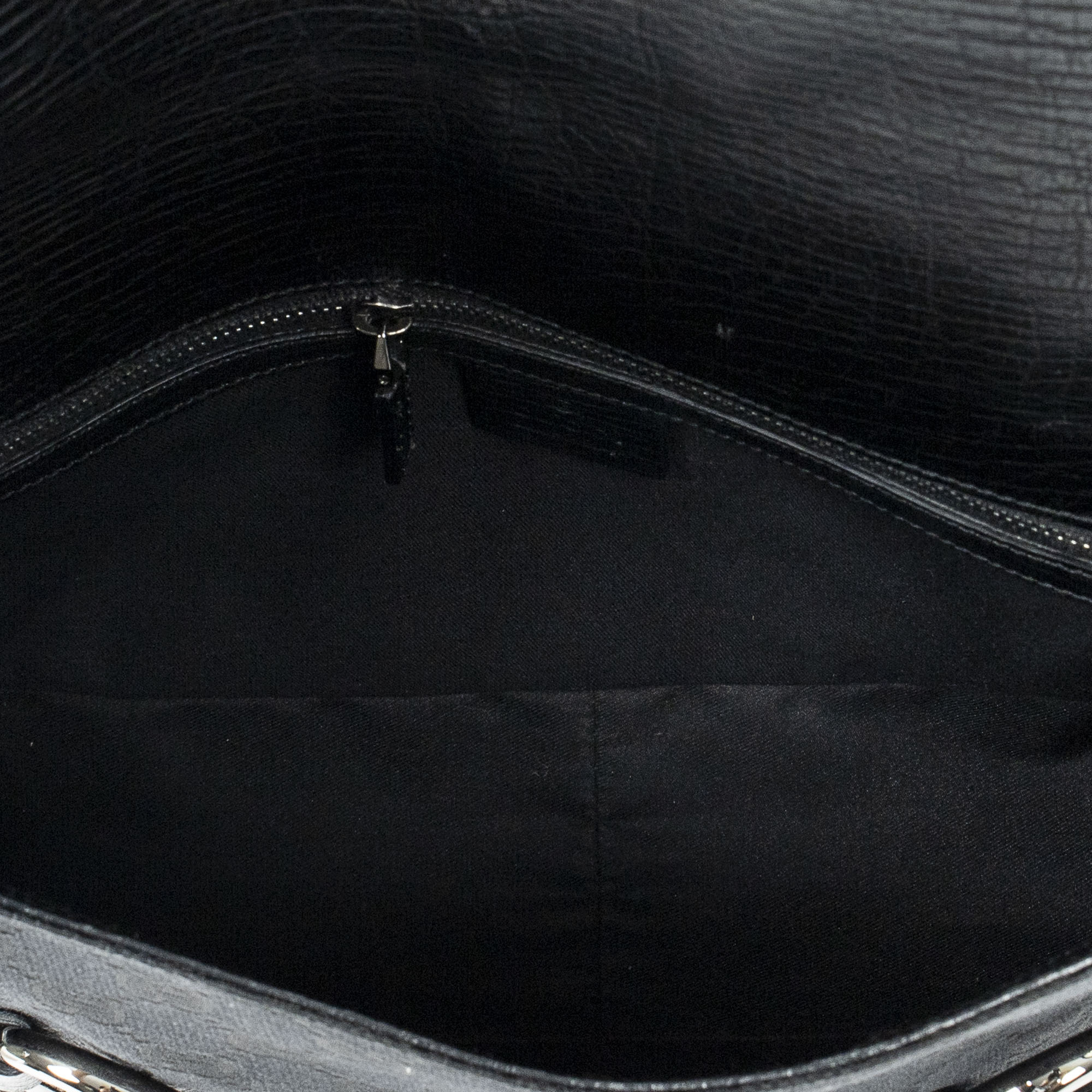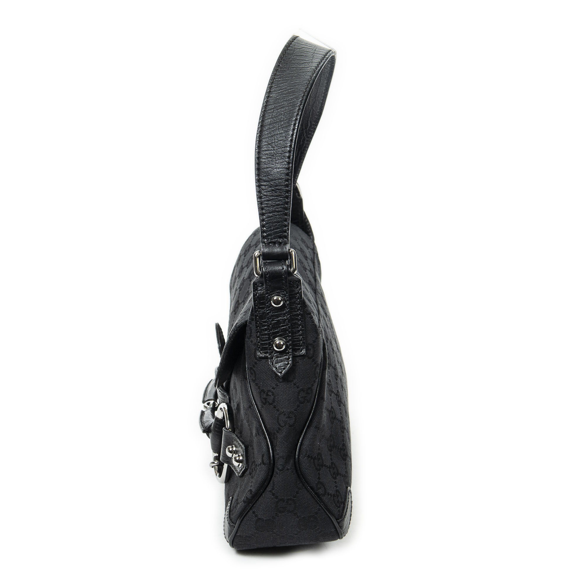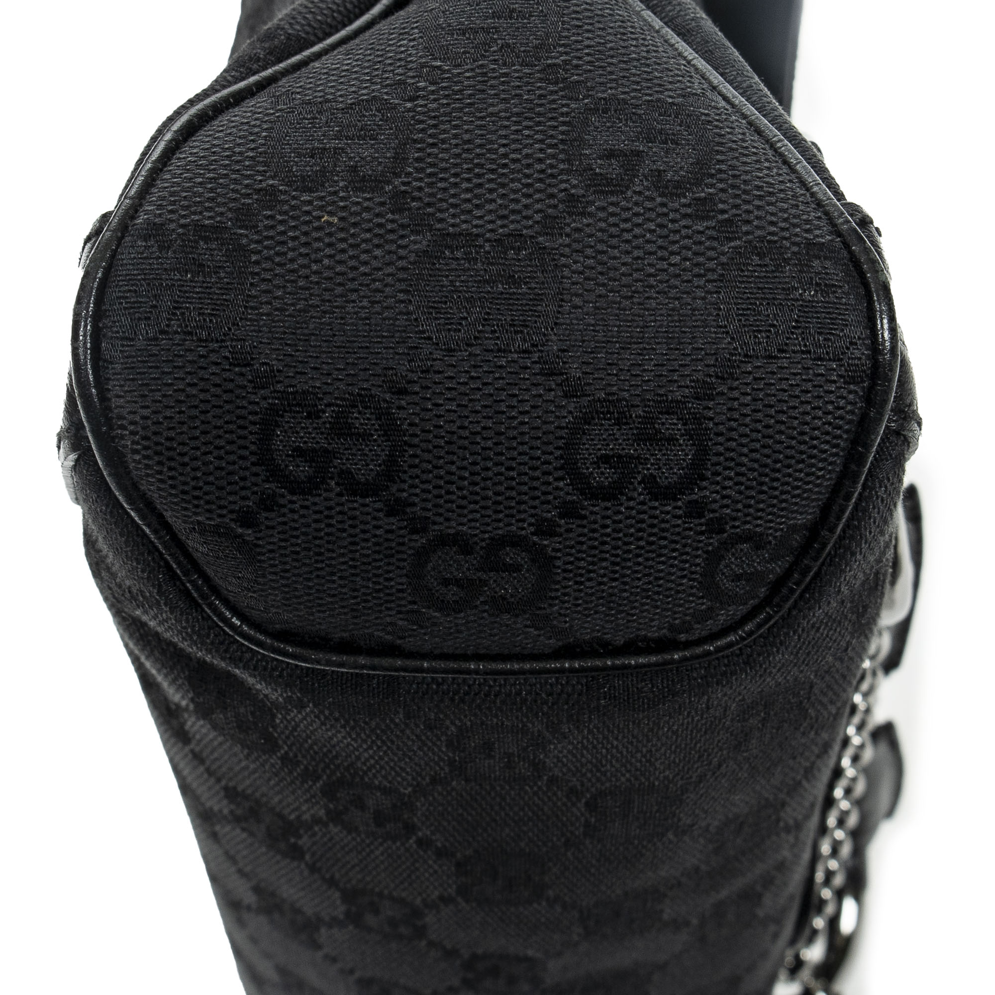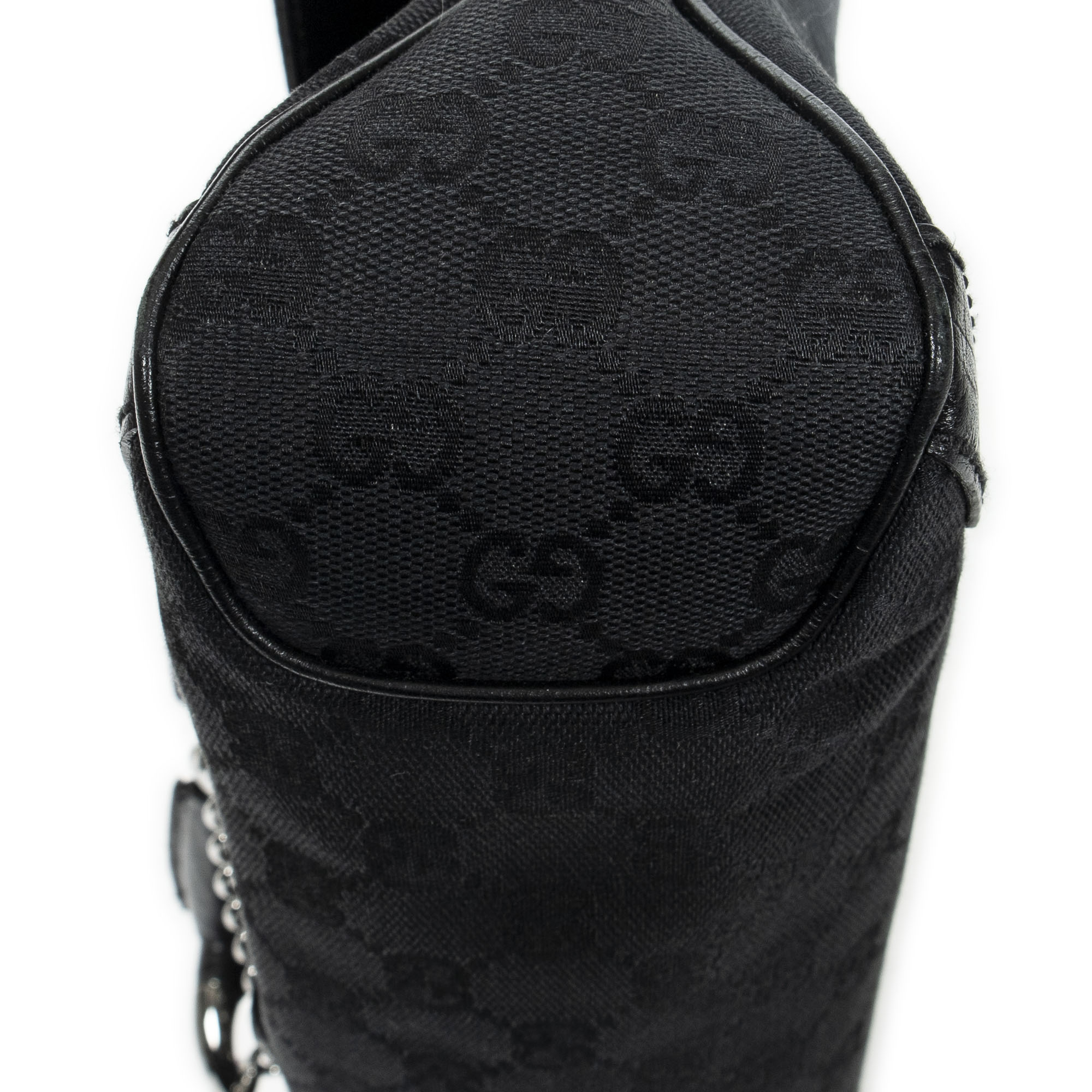 Gucci Shoulder Bag Horsebit Chain Shoulder Flap in Black Monogrammed Canvas and Ruthenium hardware. The product is in Excellent Condition (A).