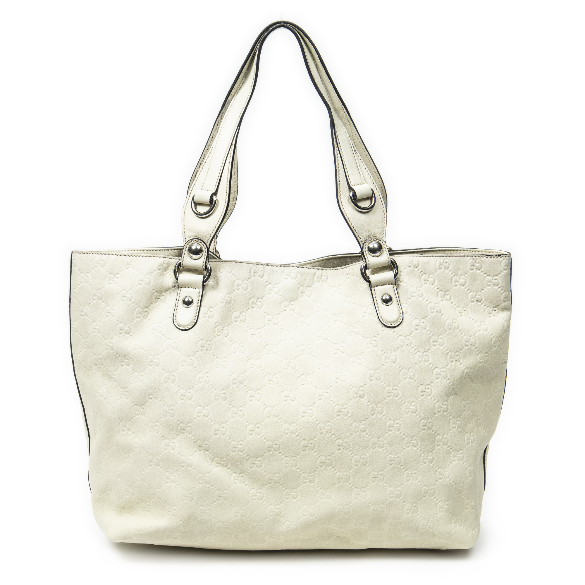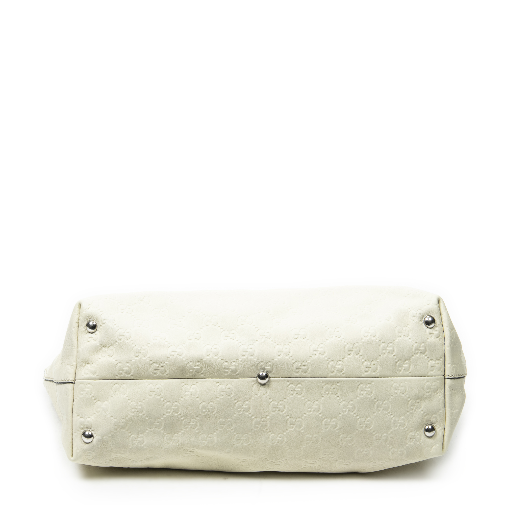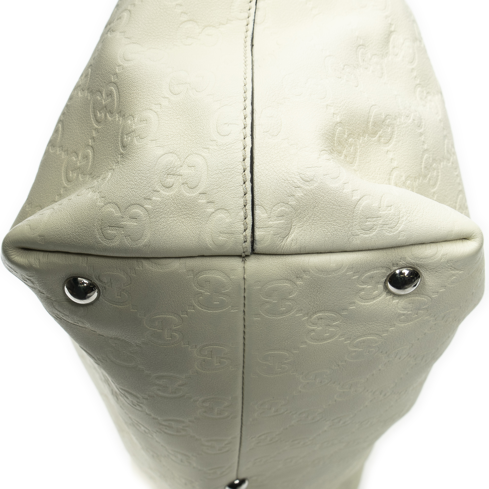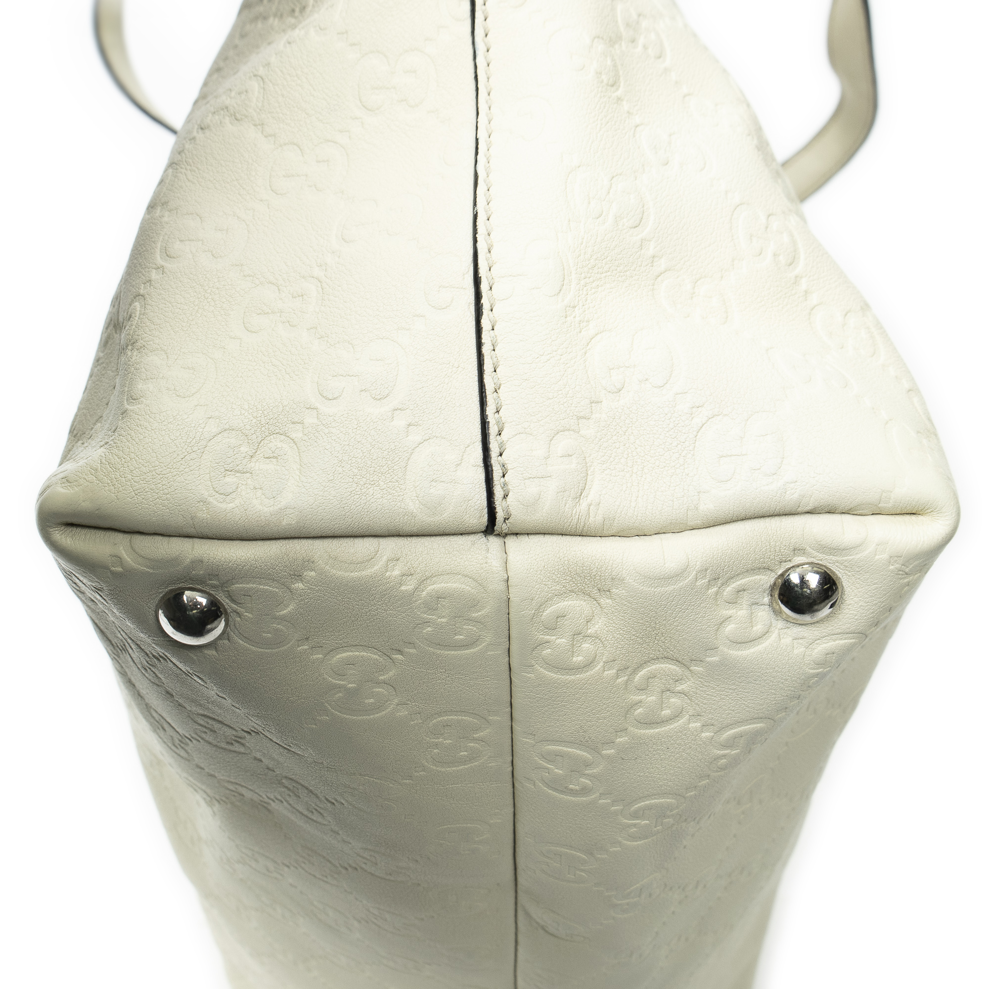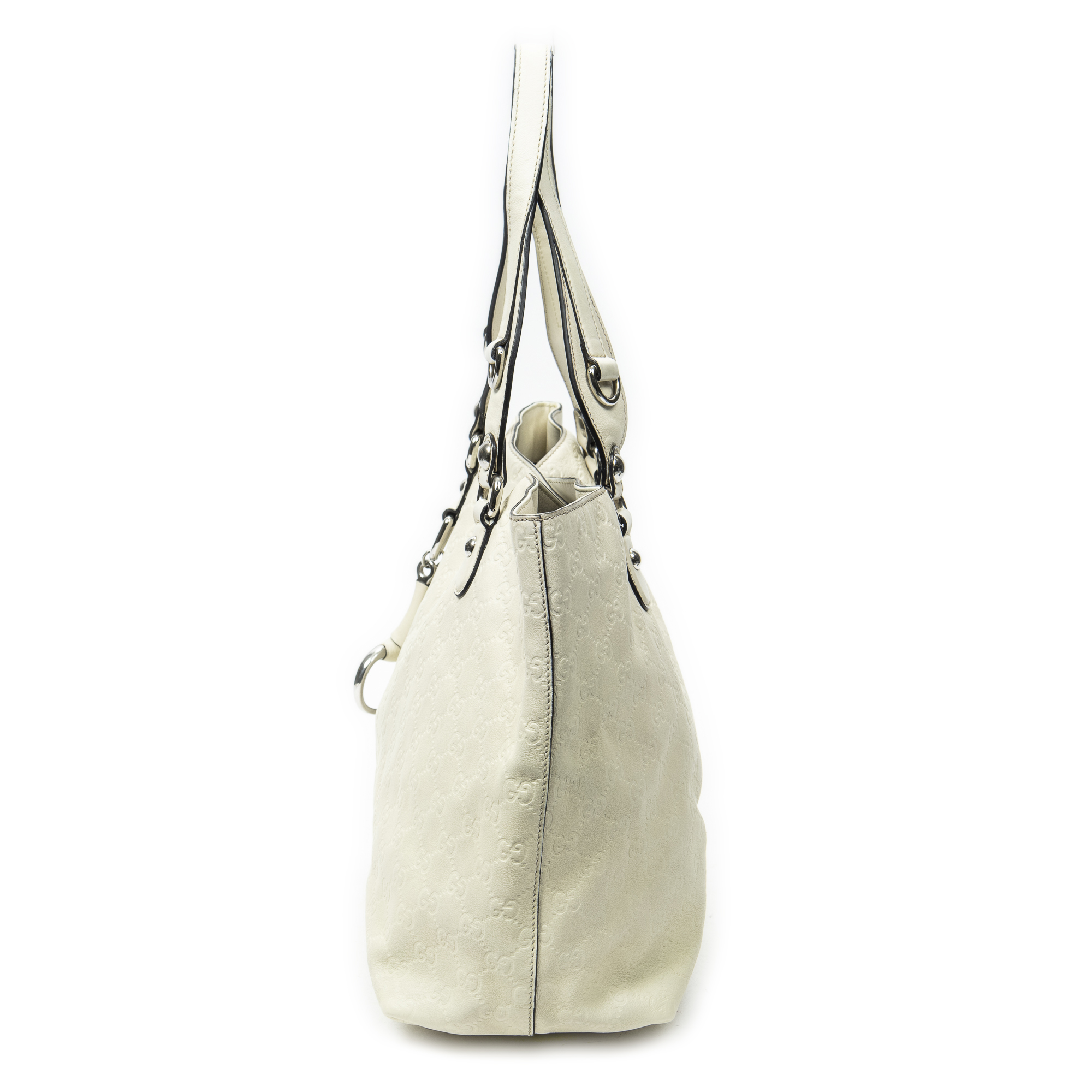Gucci Shoulder Bag Icon Bit Tote in White Guccissima Leather and Silver hardware. The product is in Excellent Condition (A).