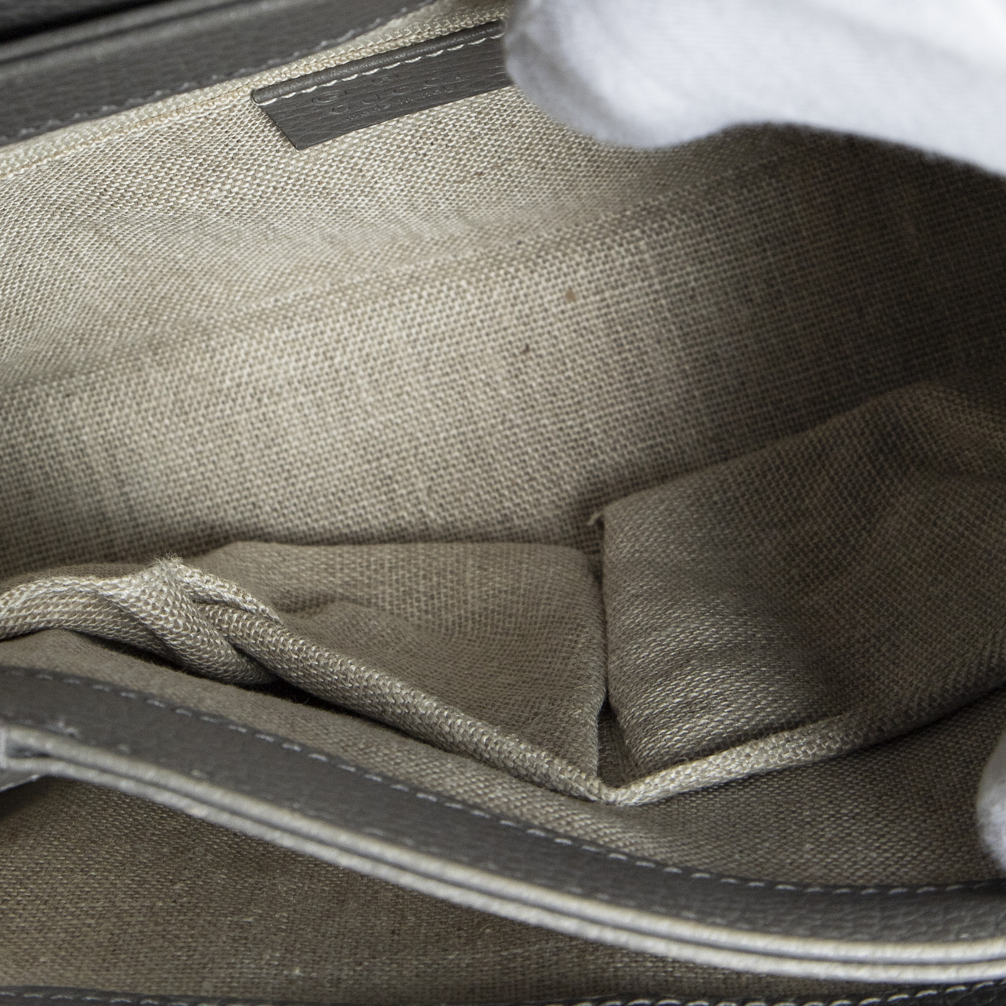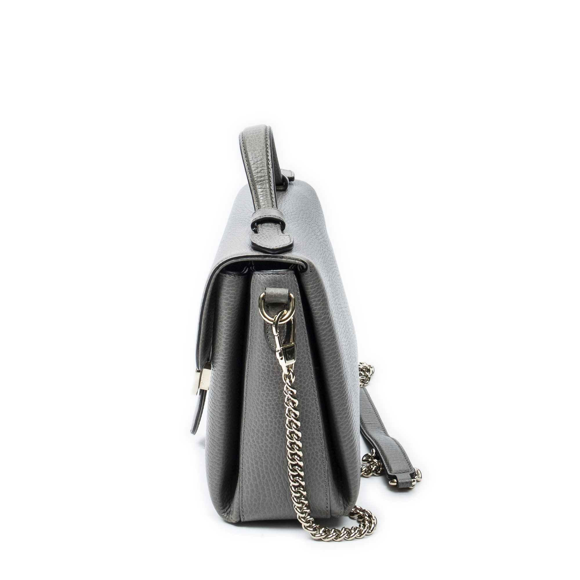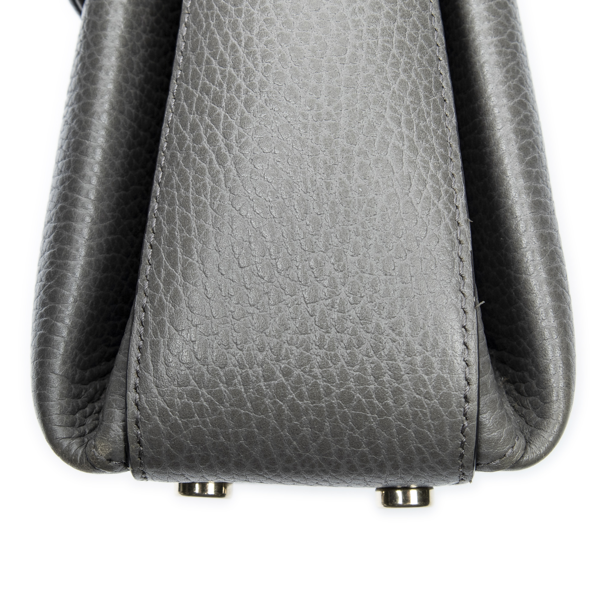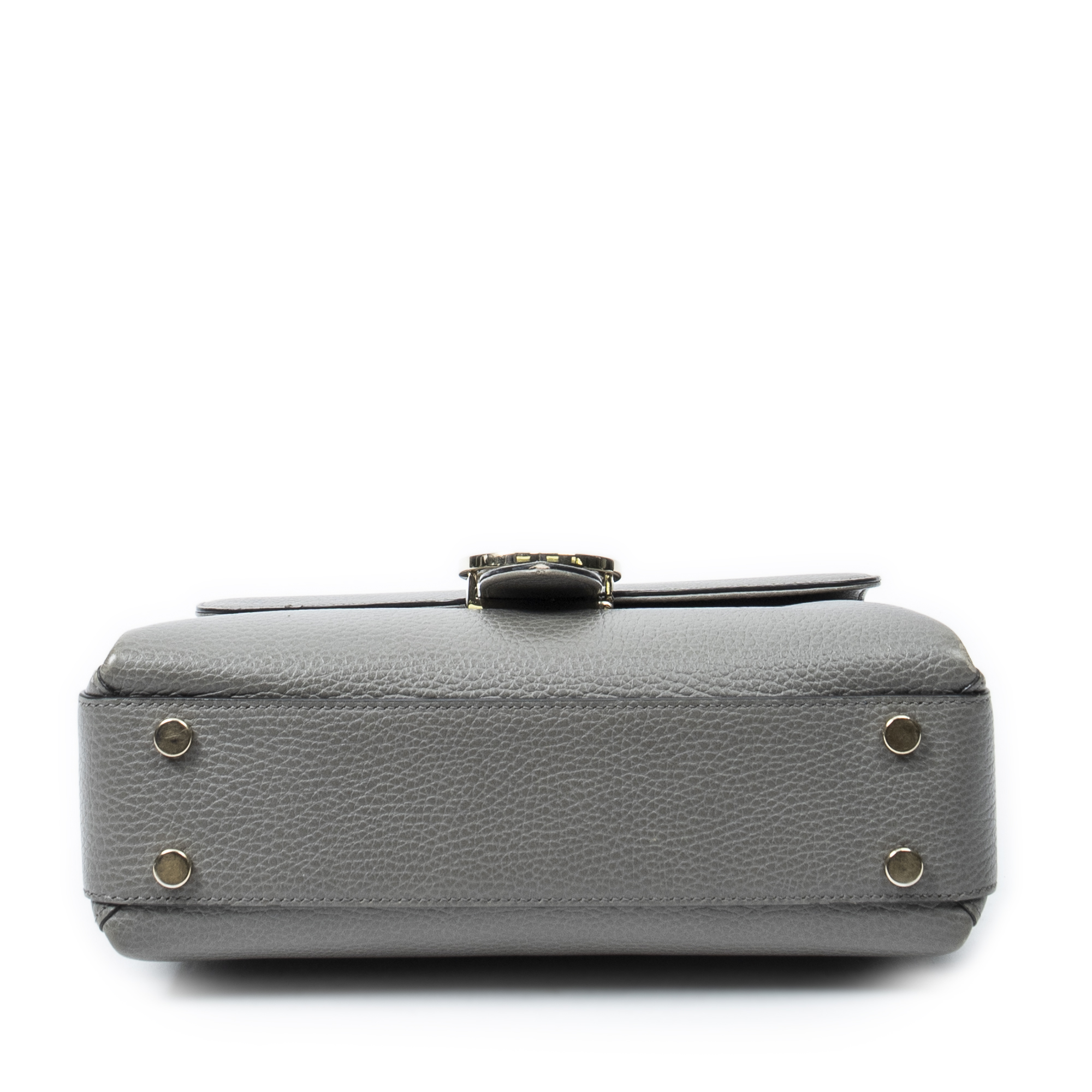 Gucci Shoulder Bag Interlocking G Top Handle in Grey Grained Calfskin Leather and Gold hardware. The product is in Excellent Condition (A).