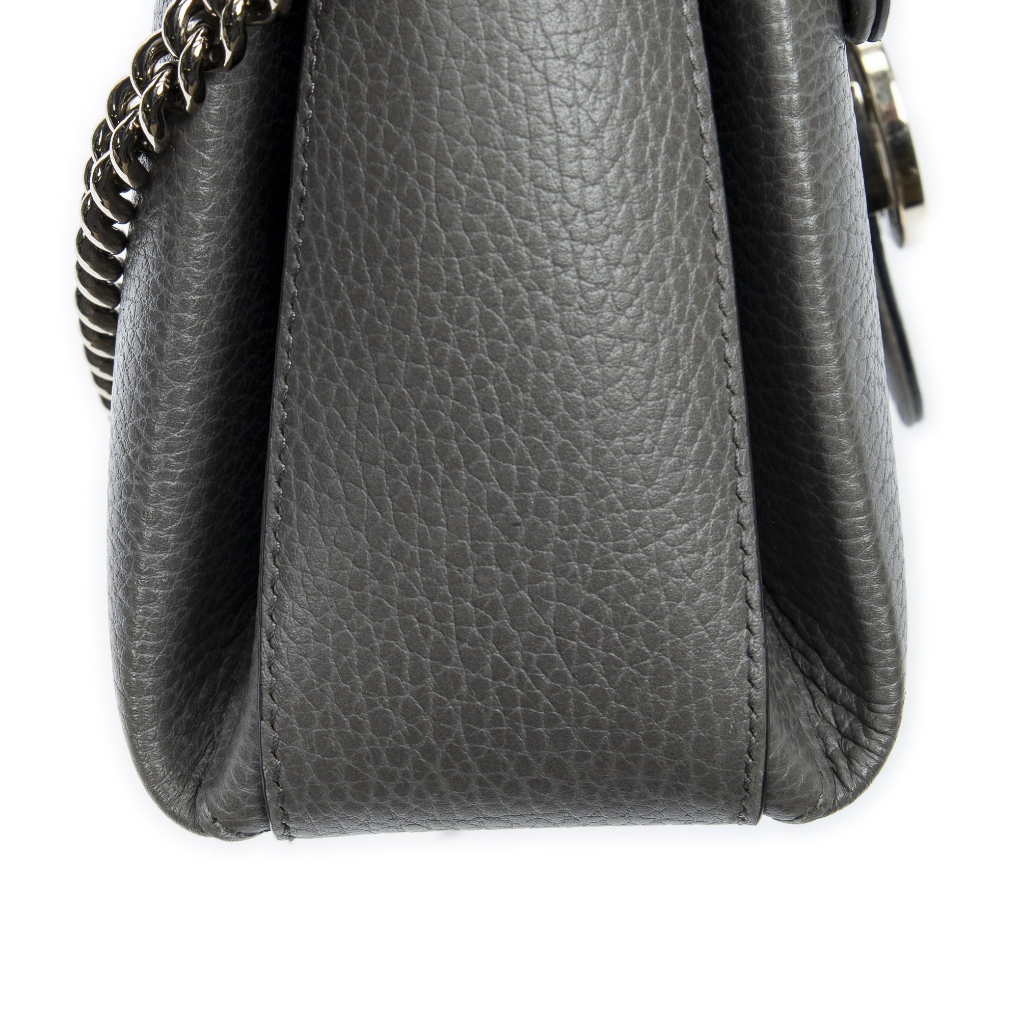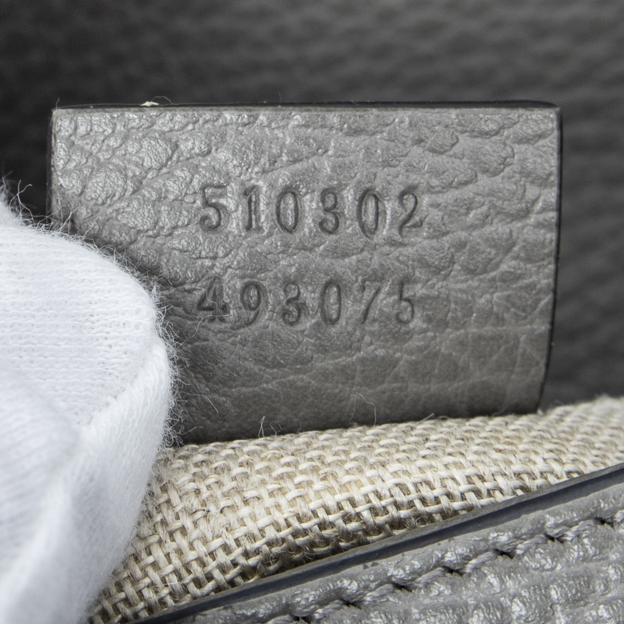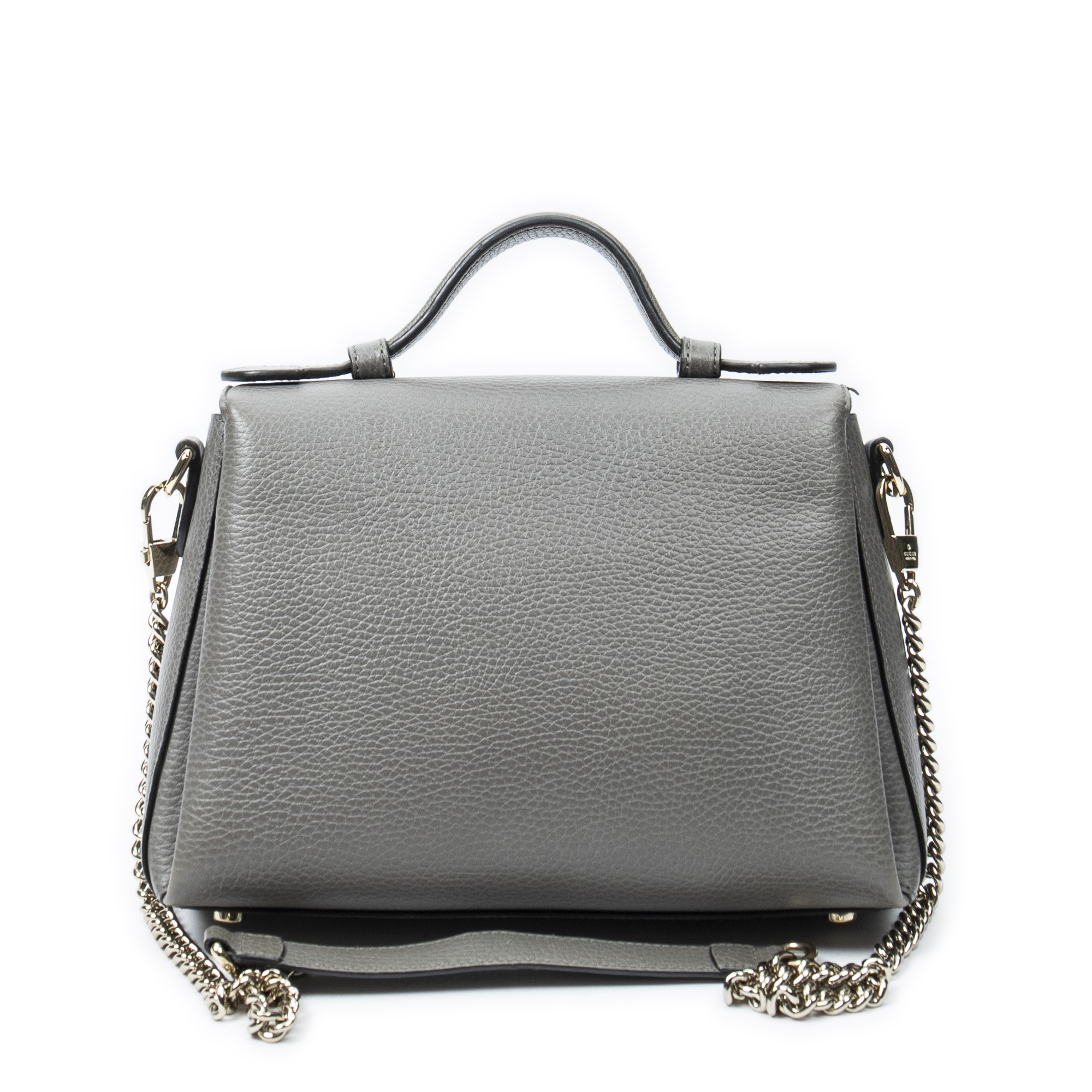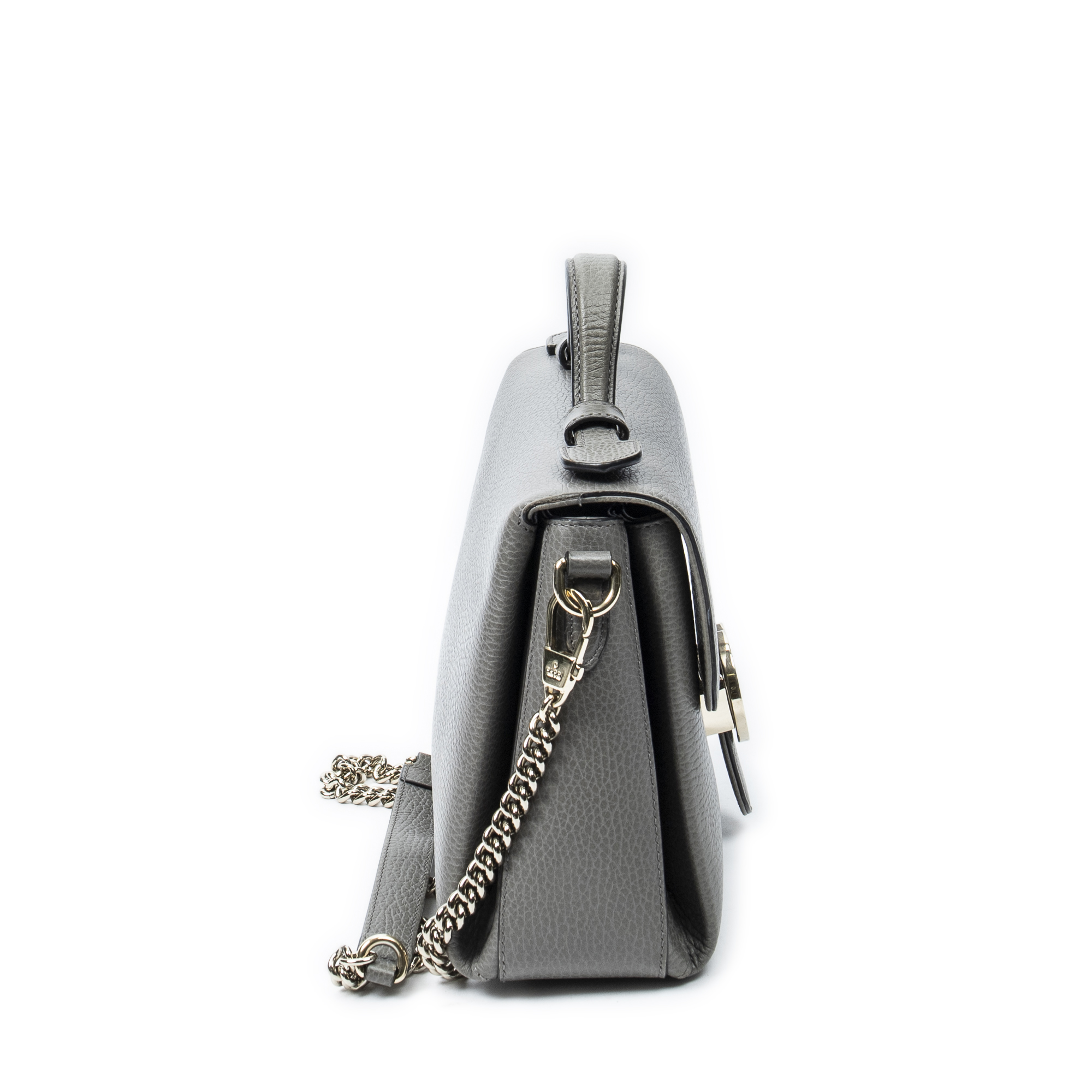 Gucci Shoulder Bag Interlocking G Top Handle in Grey Grained Calfskin Leather and Gold hardware. The product is in Excellent Condition (A).