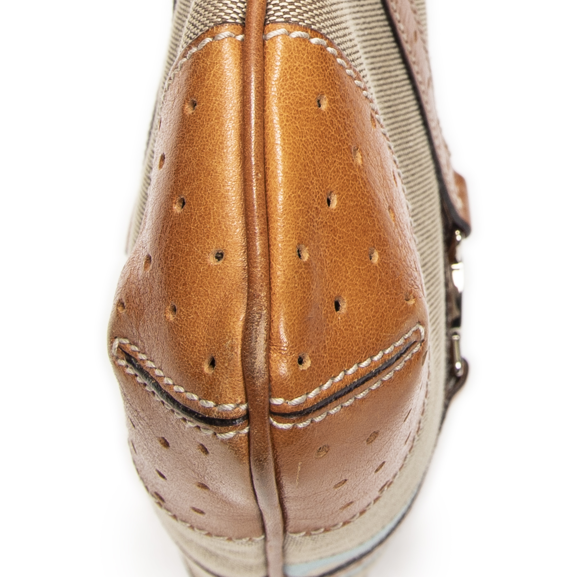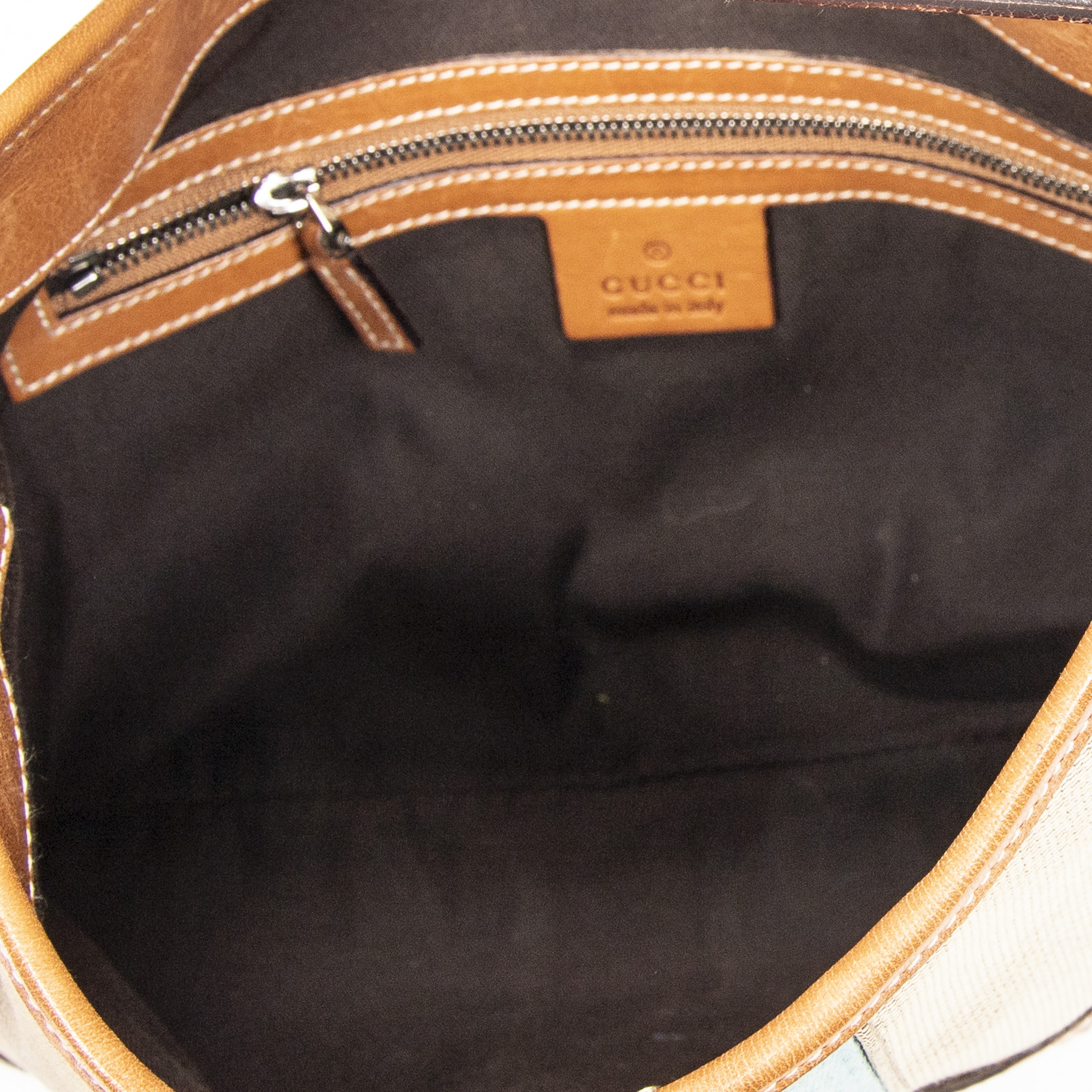 Gucci Shoulder Bag Interlocking G Tote in Brown Canvas and Silver hardware. The product is in Excellent Condition (A).
