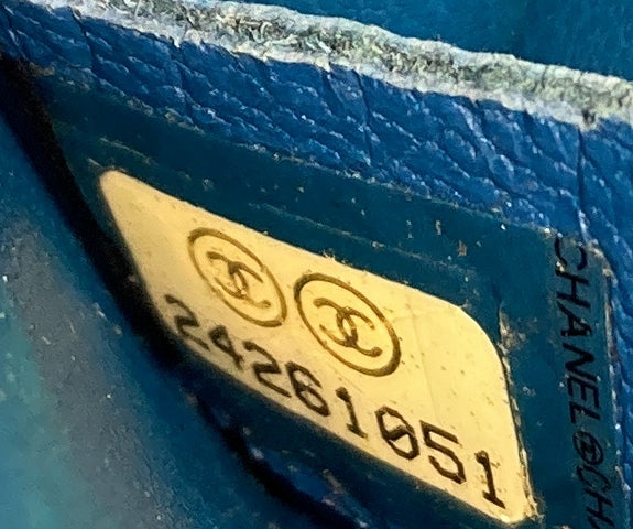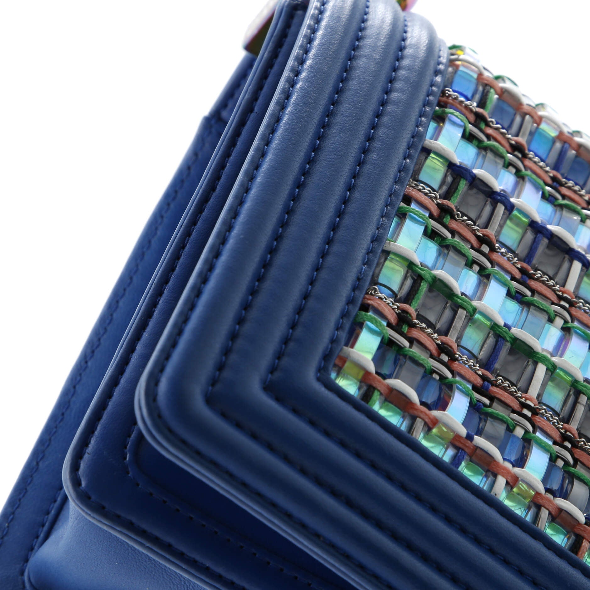 Chanel Shoulder Bag Iridescent Boy Medium in Blue Woven PVC/Lambskin Leather and Silver hardware. The product is in Perfect Condition (AA).