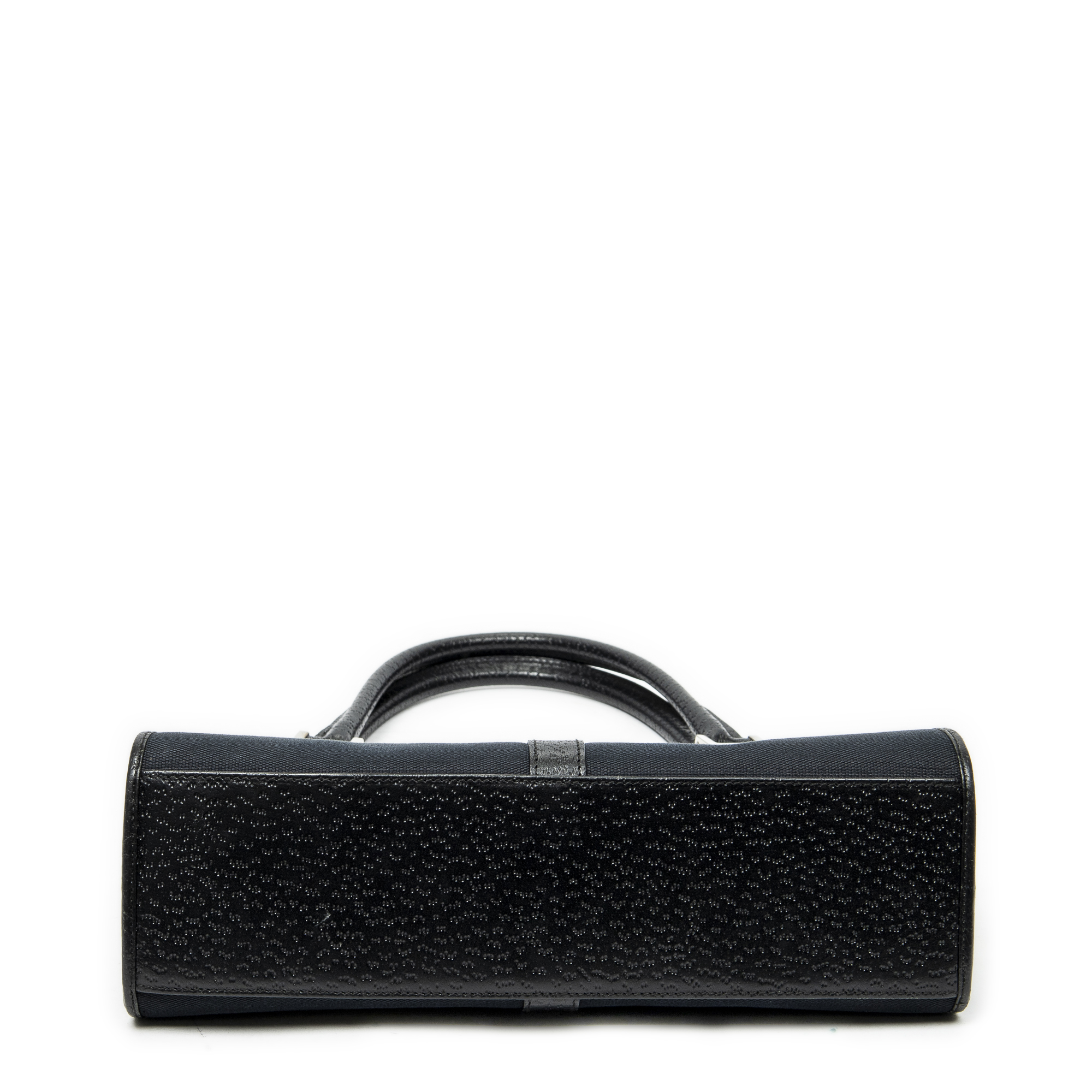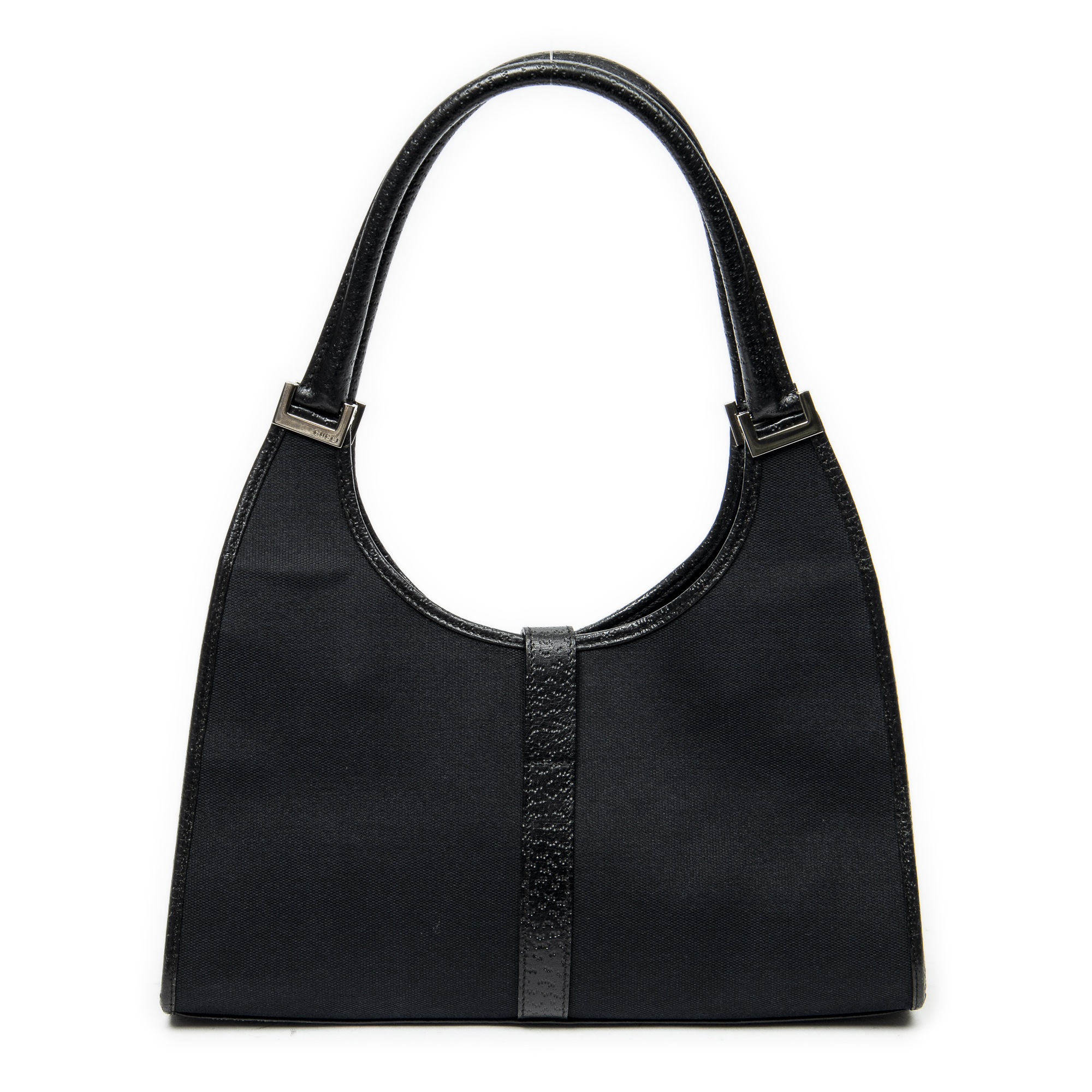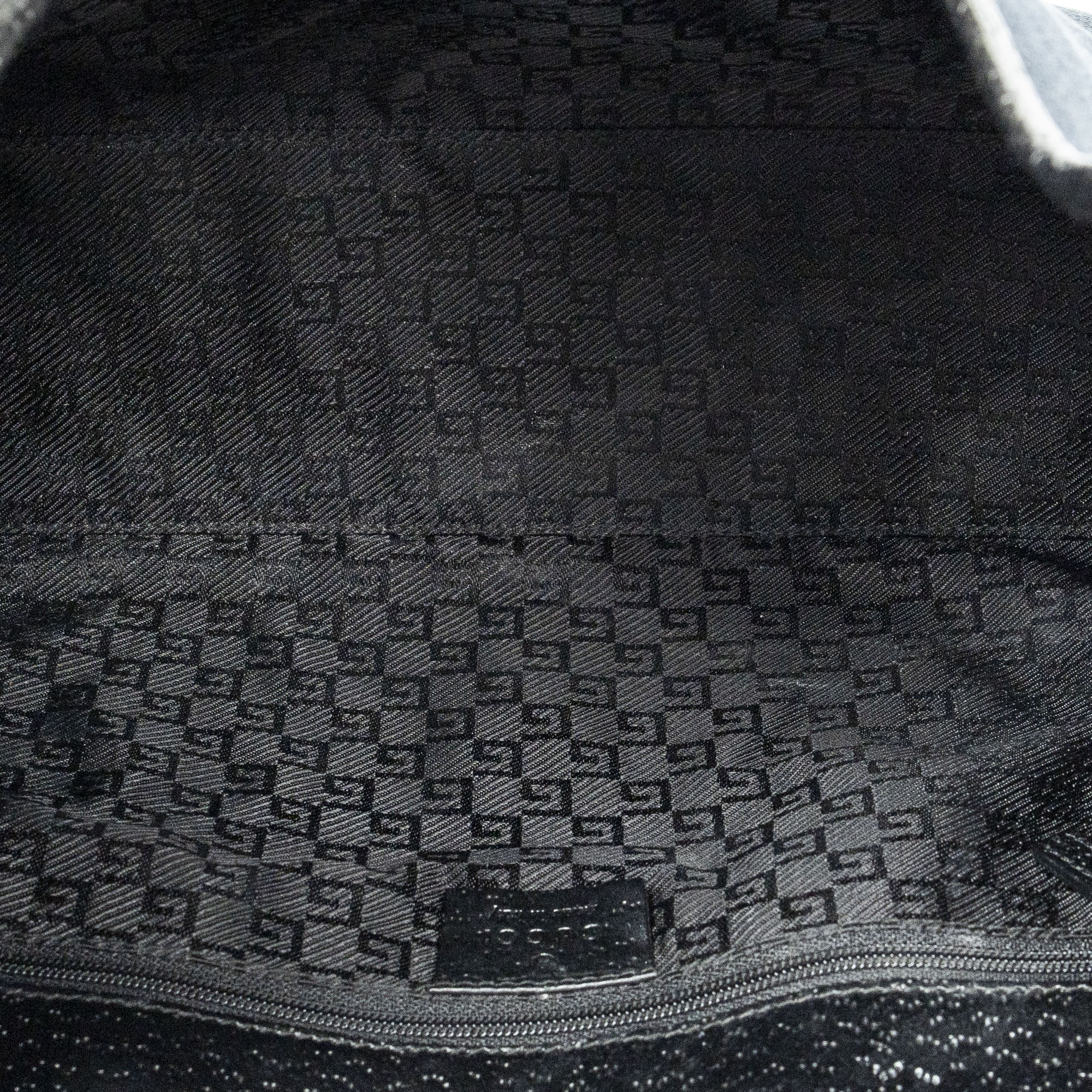 Gucci Shoulder Bag Jackie Bardot Tote in Black Woven Canvas and Silver hardware. The product is in Excellent Condition (A).