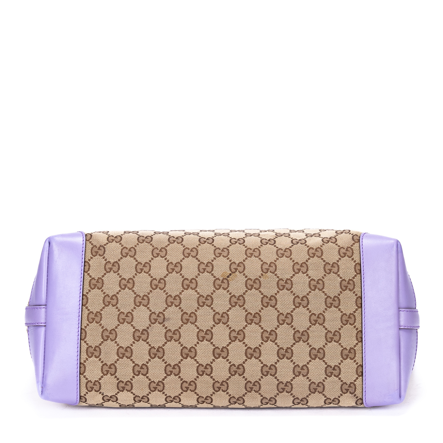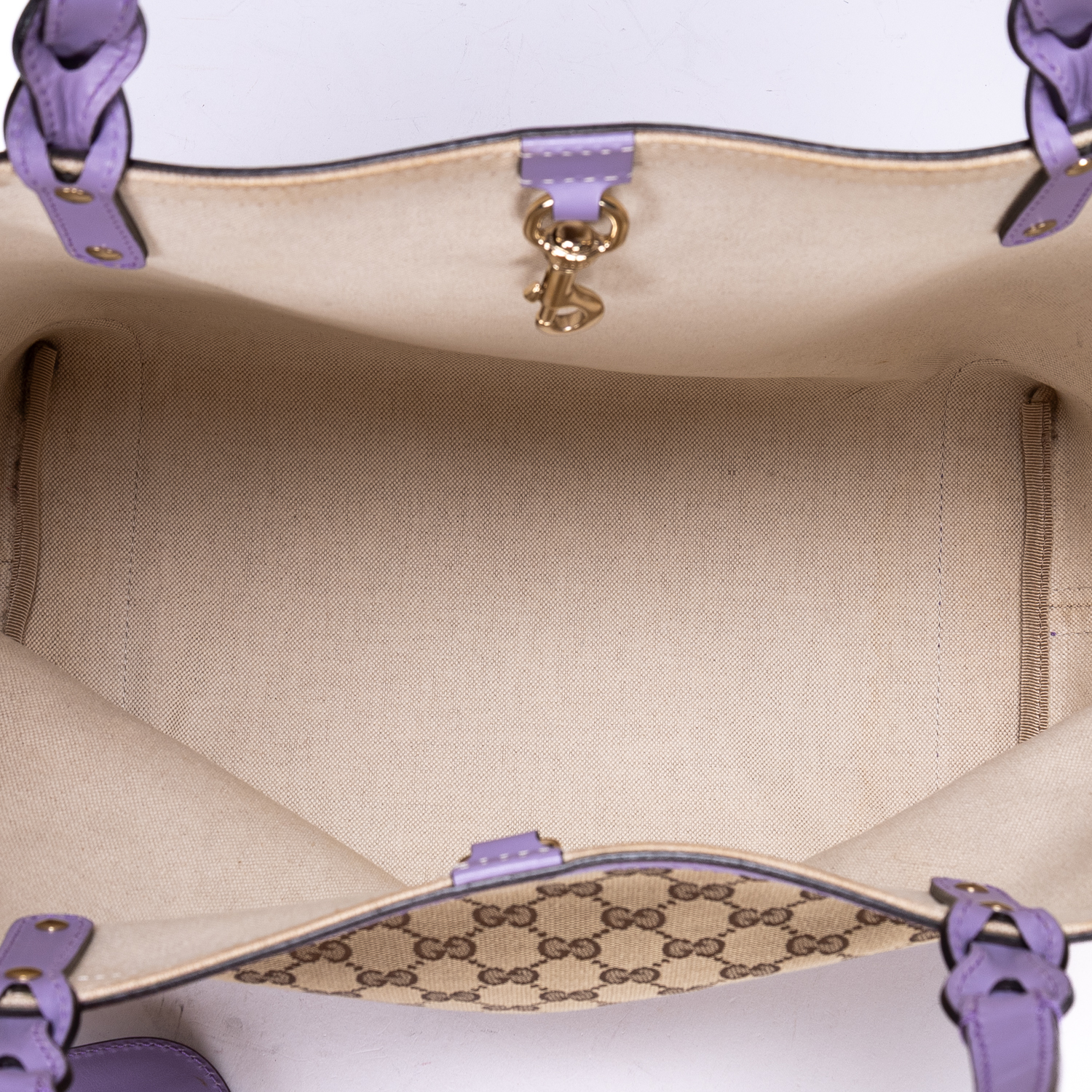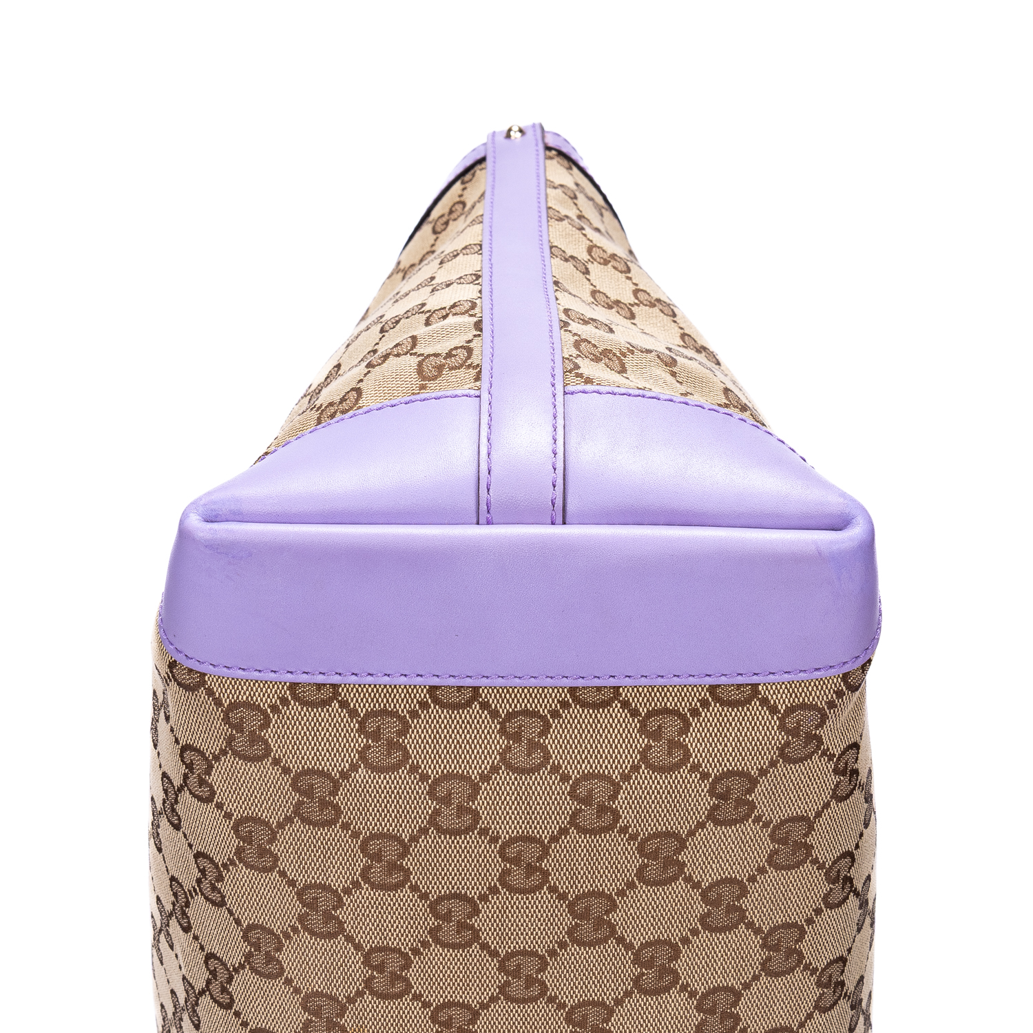 Gucci Shoulder Bag Jacquard 2-Way Shopper in Lilac/Beige GG Monogram Canvas and Champagne Gold hardware. The product is in Excellent Condition (A).