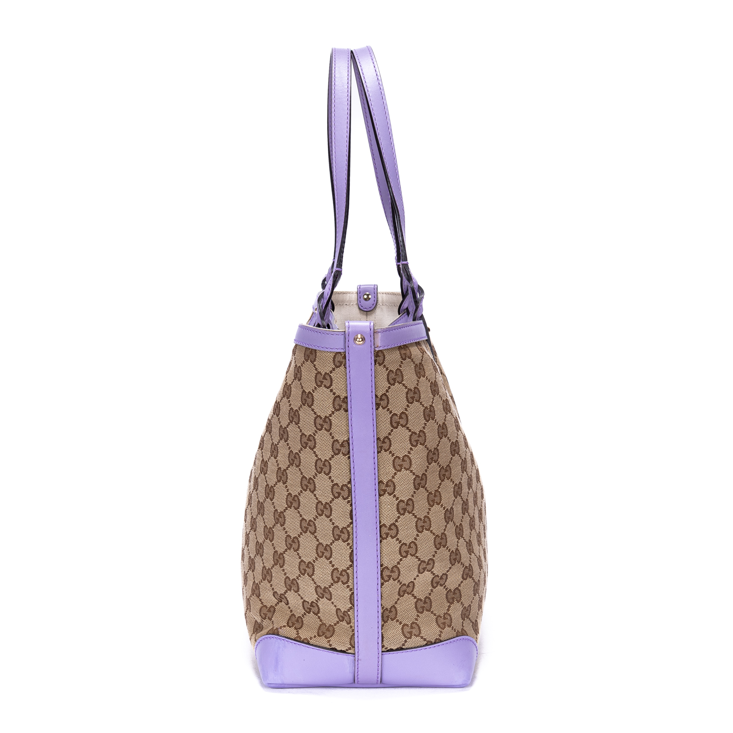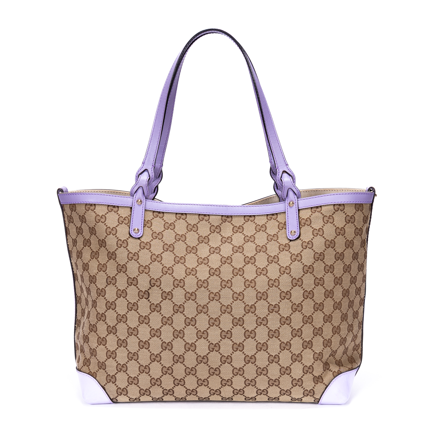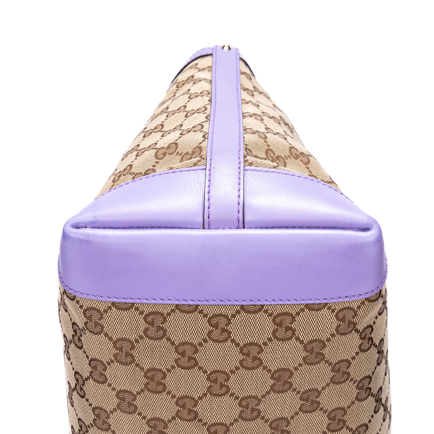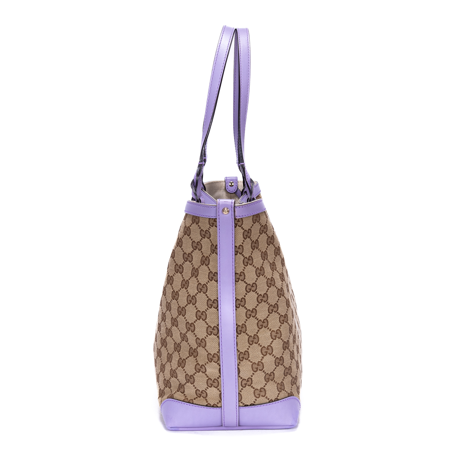 Gucci Shoulder Bag Jacquard 2-Way Shopper in Lilac/Beige GG Monogram Canvas and Champagne Gold hardware. The product is in Excellent Condition (A).