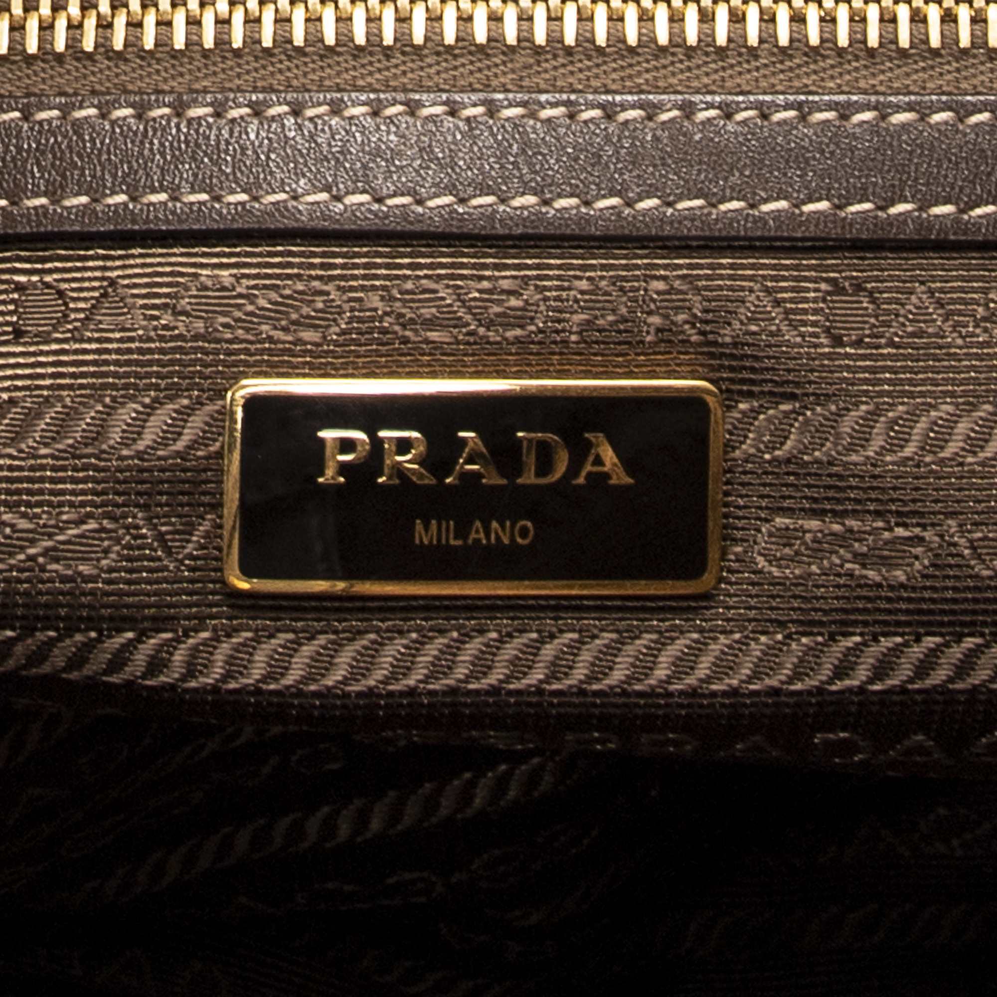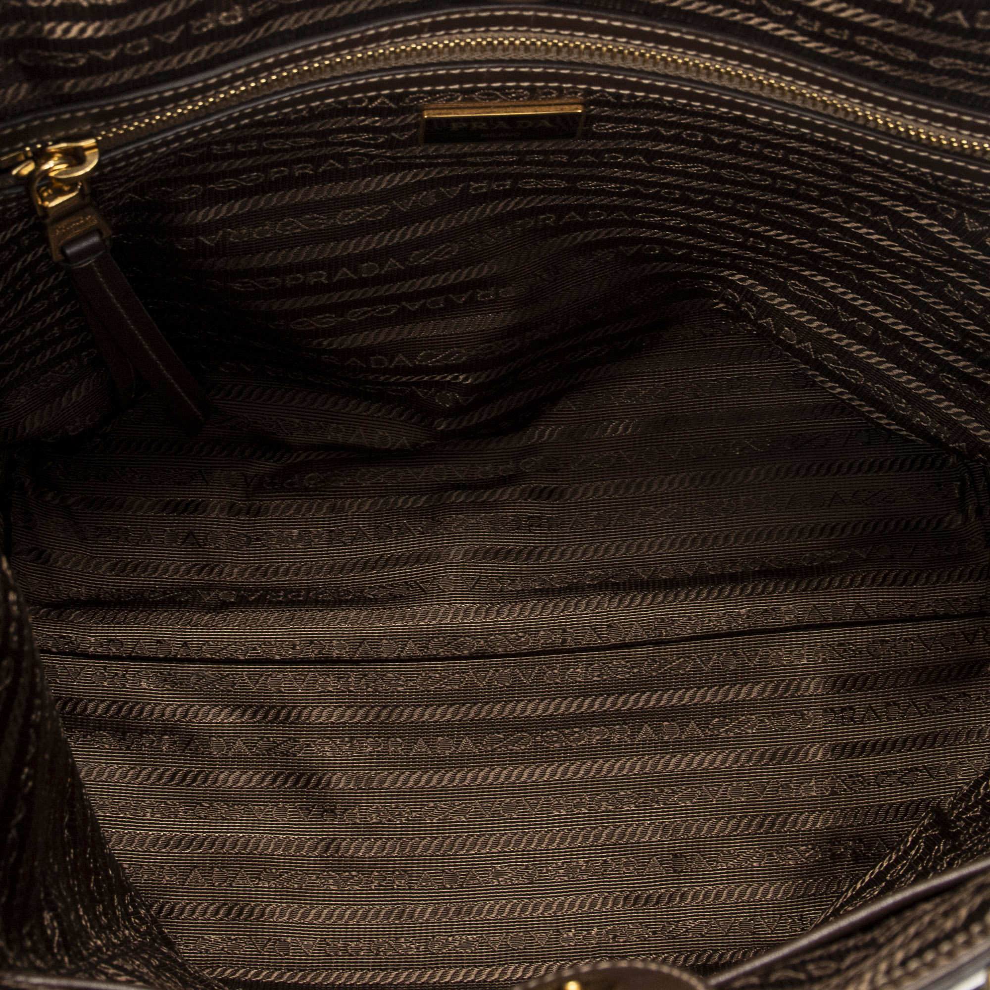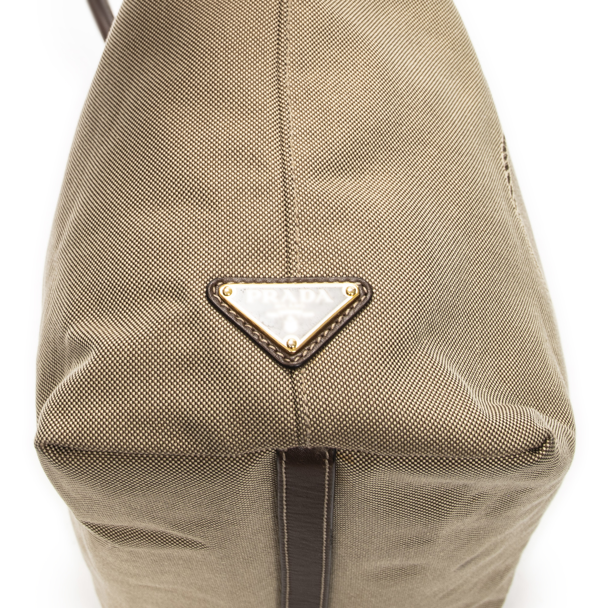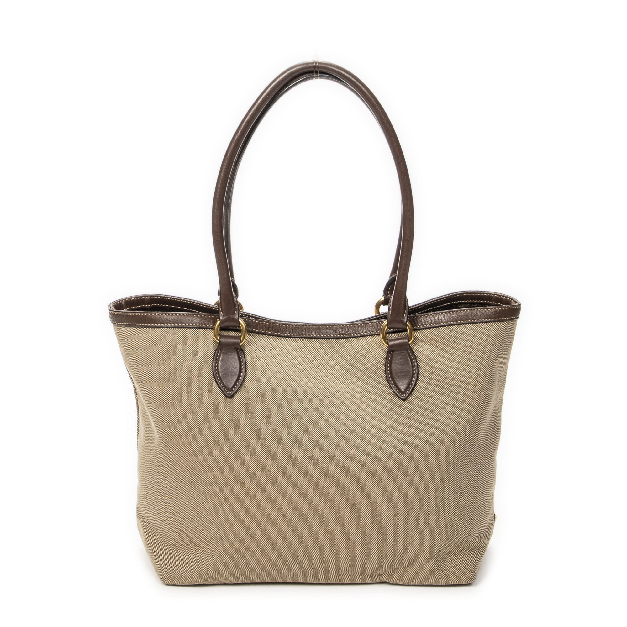 Prada Shoulder Bag Jacquard Open Tote in Beige/Brown Jacquard Canvas and Gold hardware. The product is in Excellent Condition (A).
