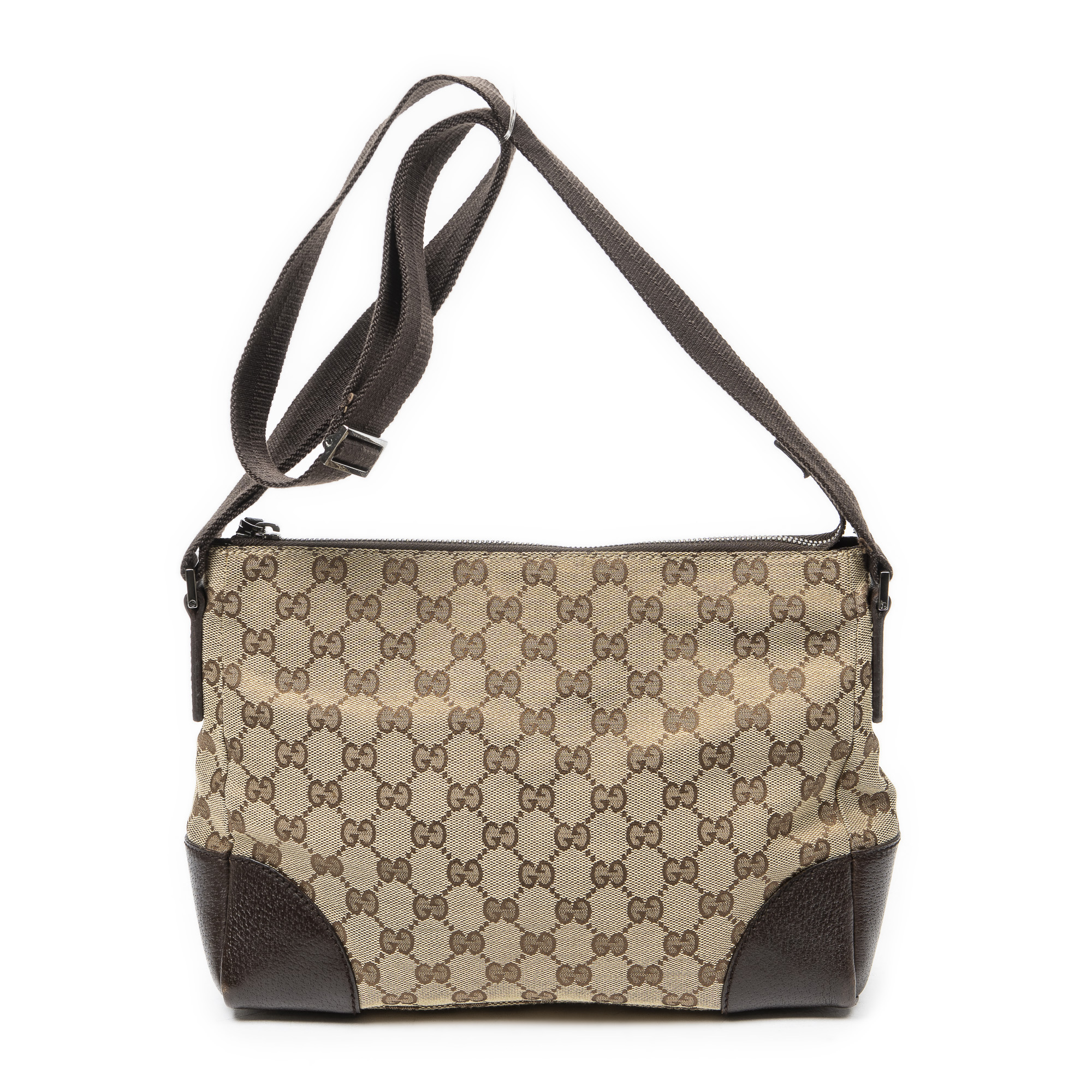 Gucci Shoulder Bag Joy Messenger in Beige/Brown Monogrammed Canvas and Silver hardware. The product is in Very Good Condition (AB).