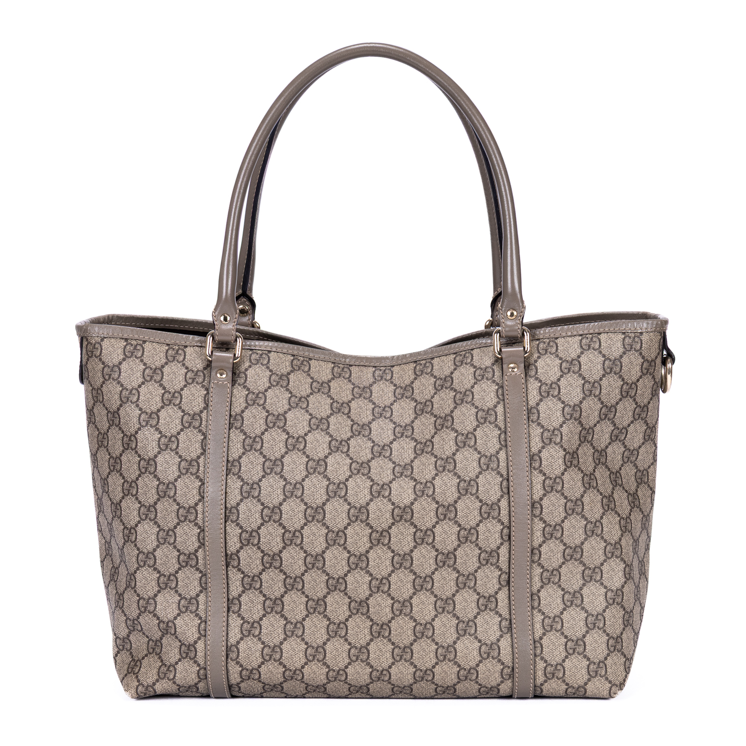 Gucci Shoulder Bag Joy Tote Medium in Beige Supreme Coated Canvas and Silver hardware. The product is in Excellent Condition (A).