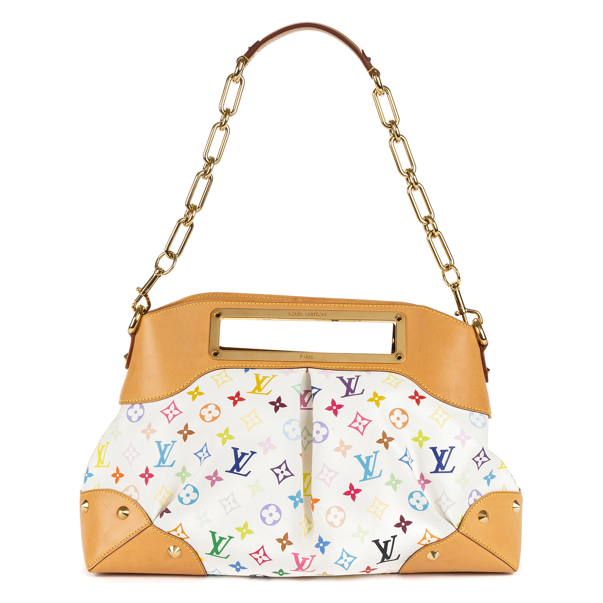 Louis Vuitton Shoulder Bag Judy MM in White/Multicolor Colorful Monogram Canvas and Golden Brass hardware. The product is in Perfect Condition (AA).