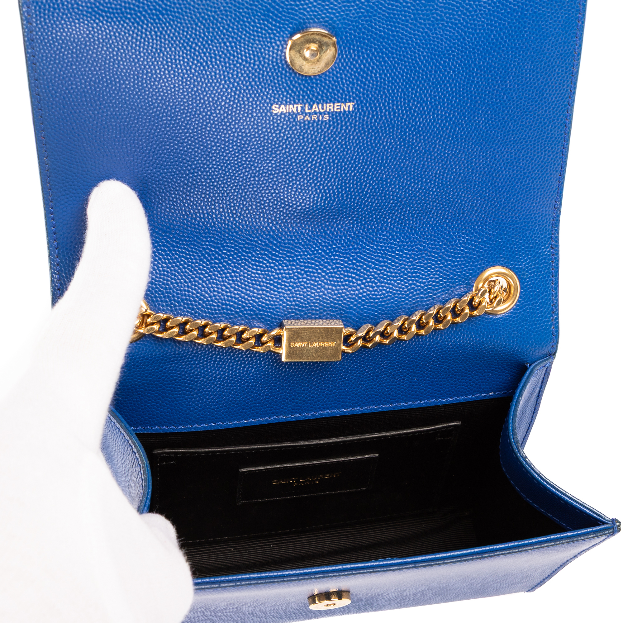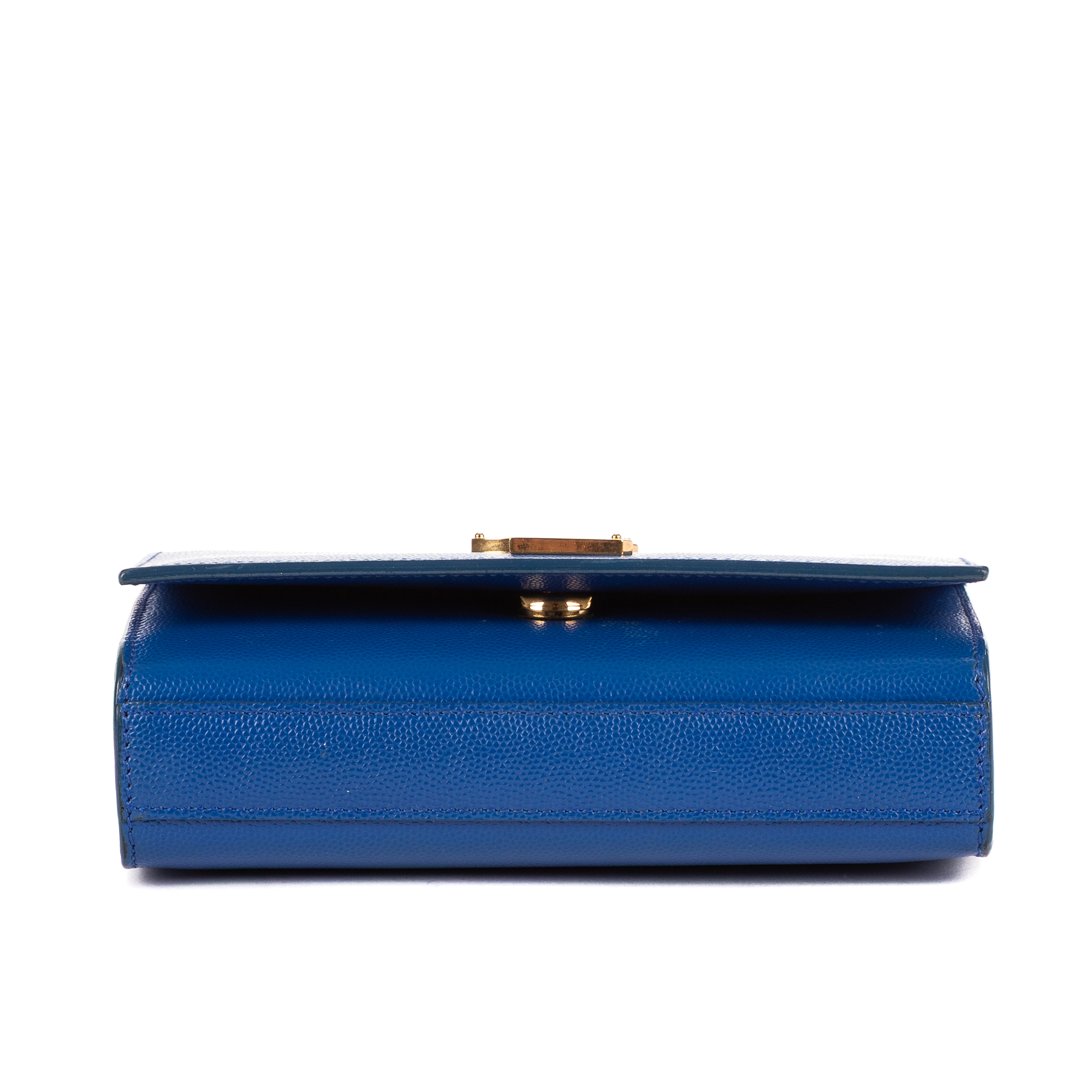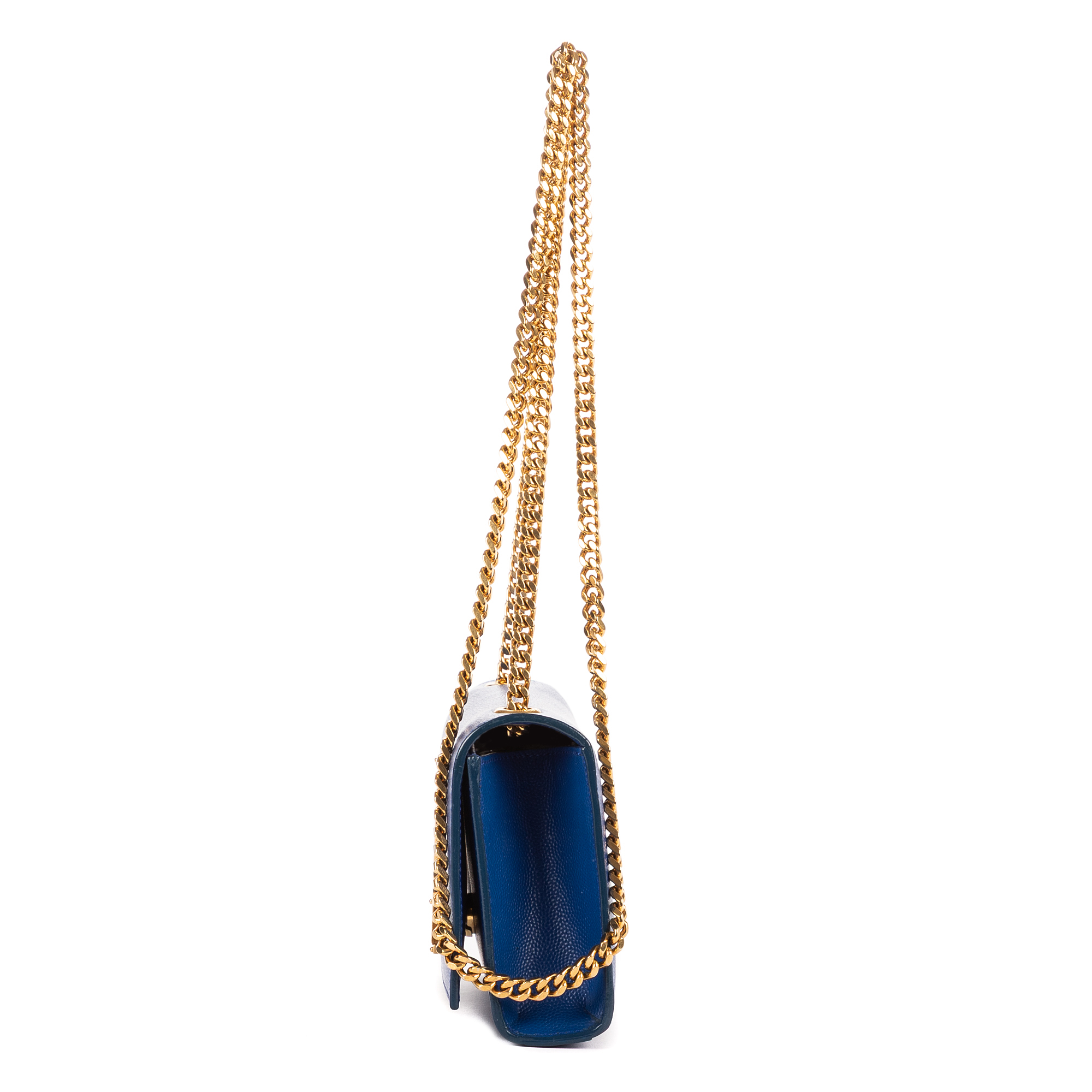 Yves Saint Laurent Shoulder Bag Kate Mini in Blue Grain Leather and Gold hardware. The product is in Perfect Condition (AA).