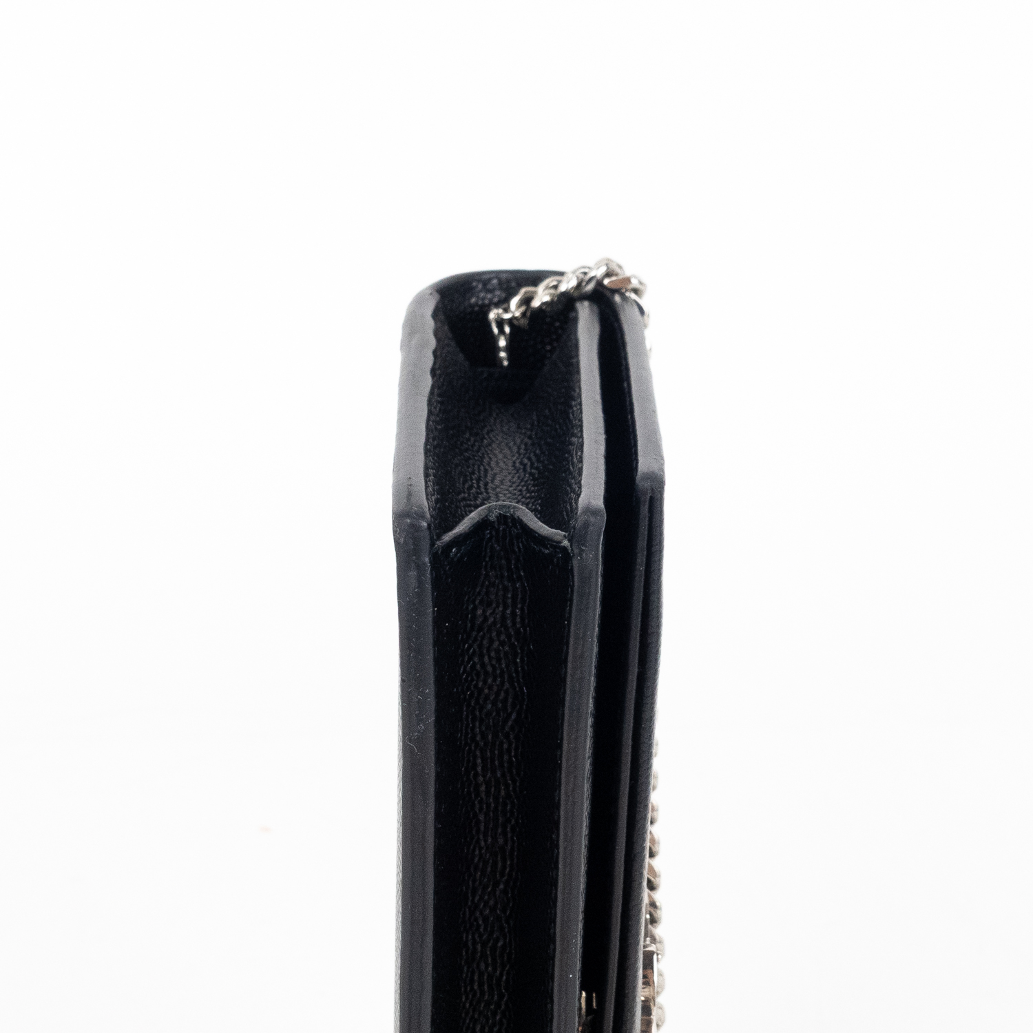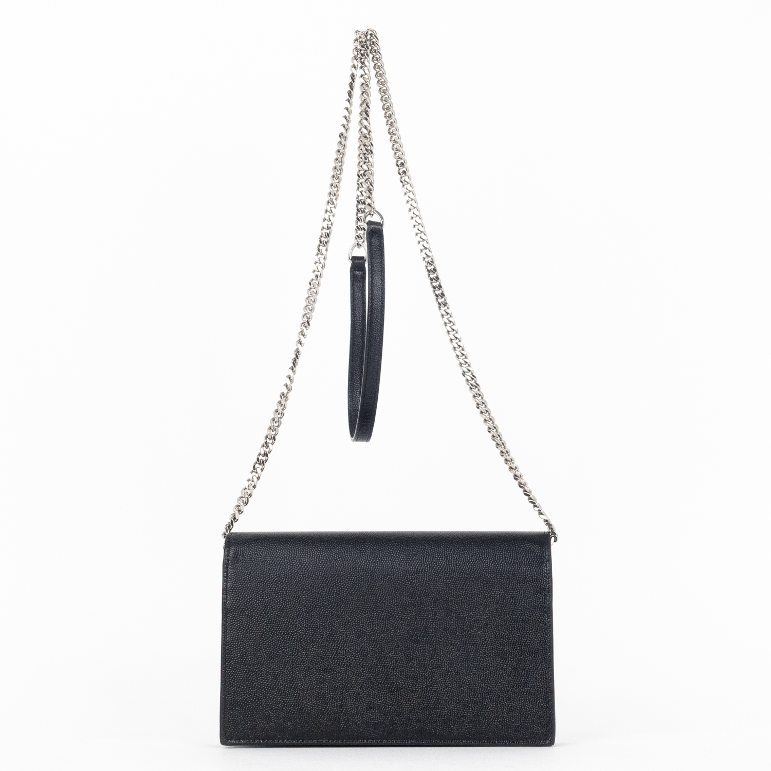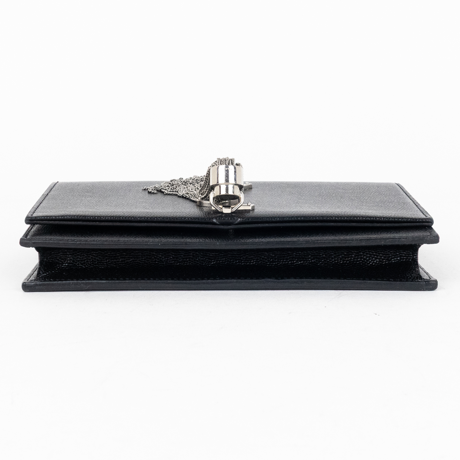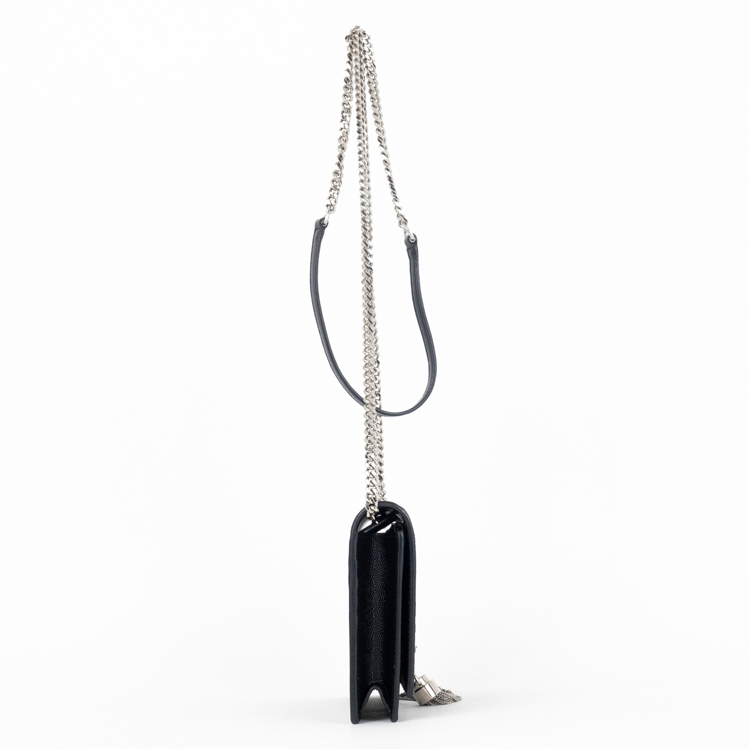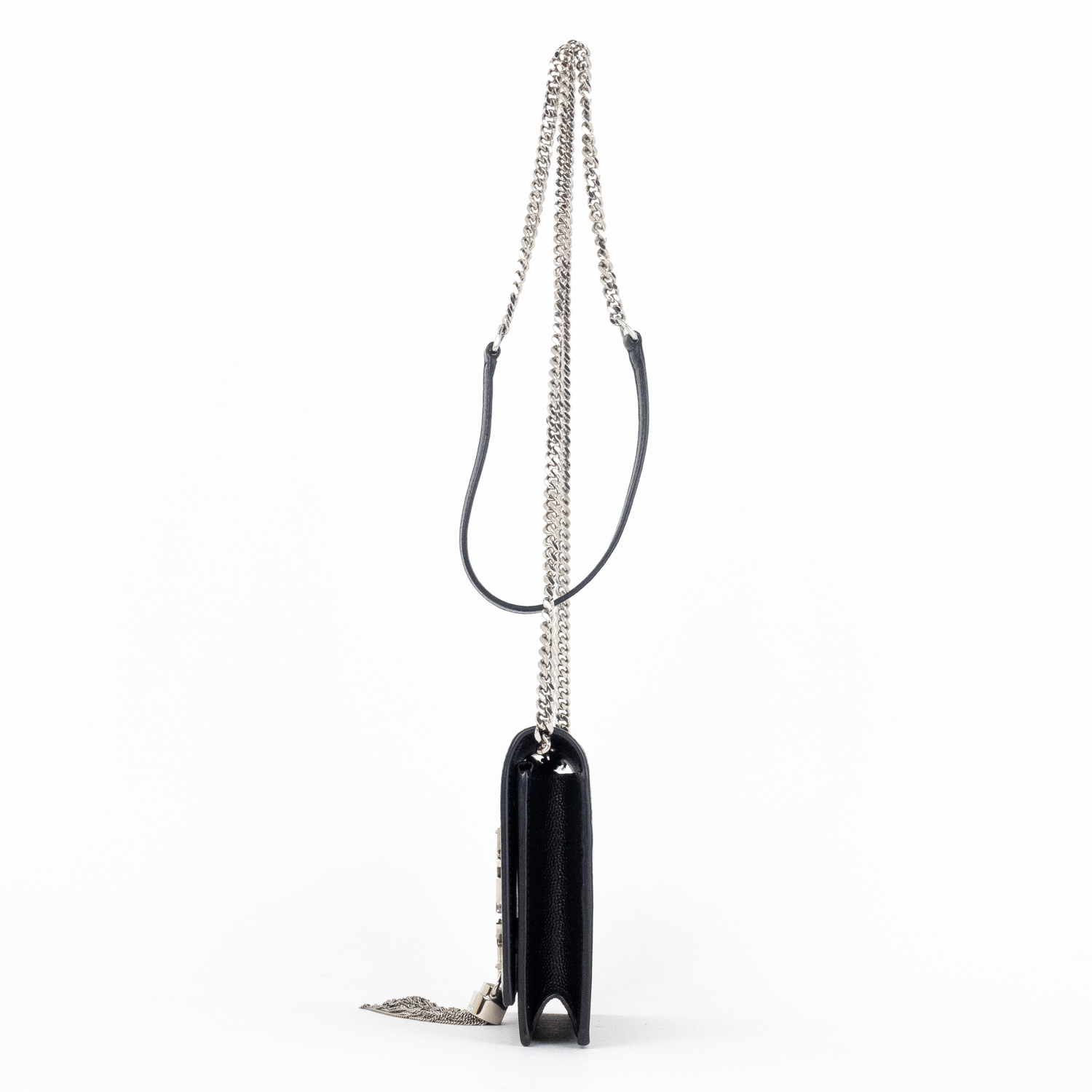 Yves Saint Laurent Shoulder Bag Kate Tassel Chain Wallet in Black Grain de Poudre Leather and Silver hardware. The product is in Excellent Condition (A).