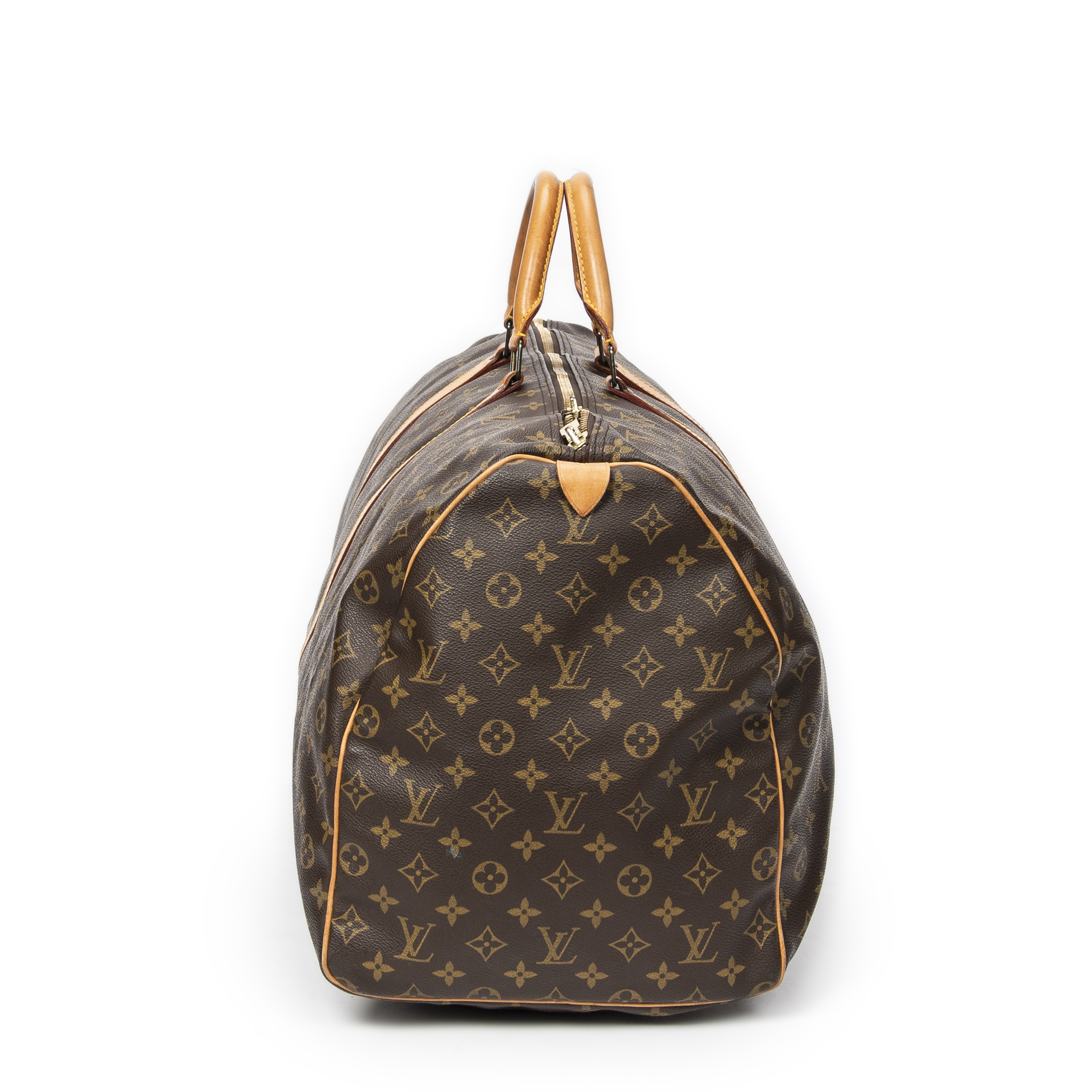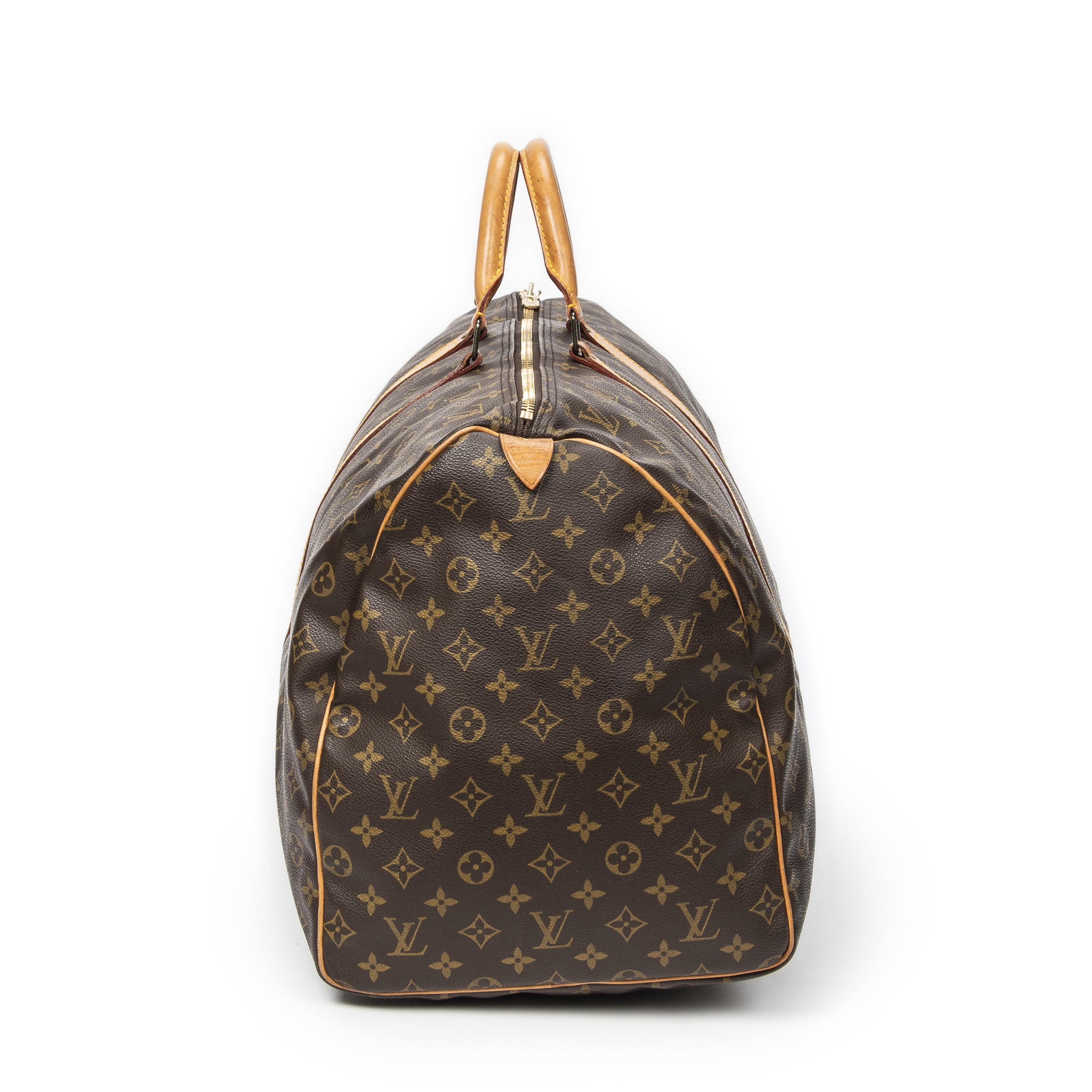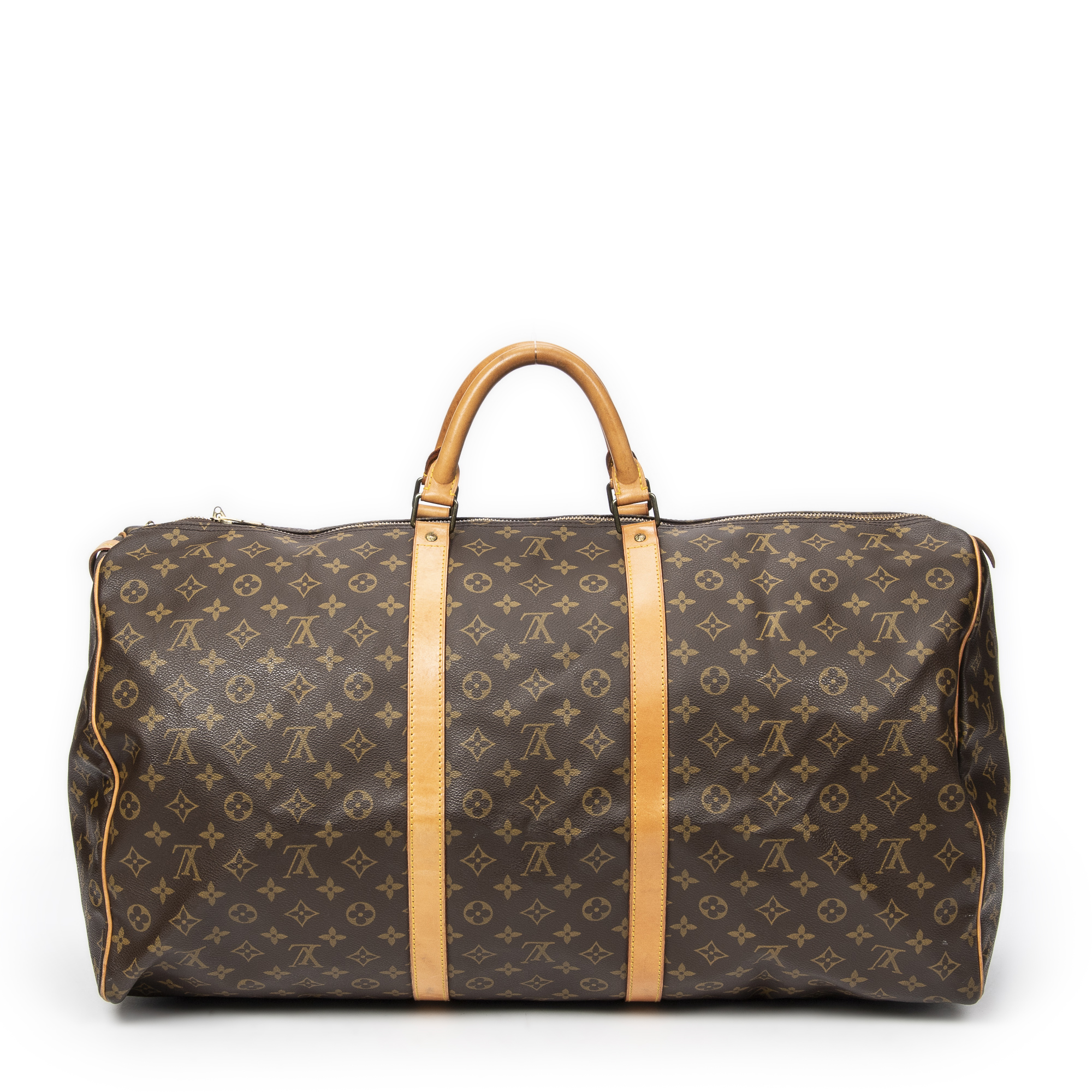 Louis Vuitton Shoulder bag Keepall 60 in Brown Monogram Canvas and Golden Brass hardware. The product is in Very Good Condition (AB).