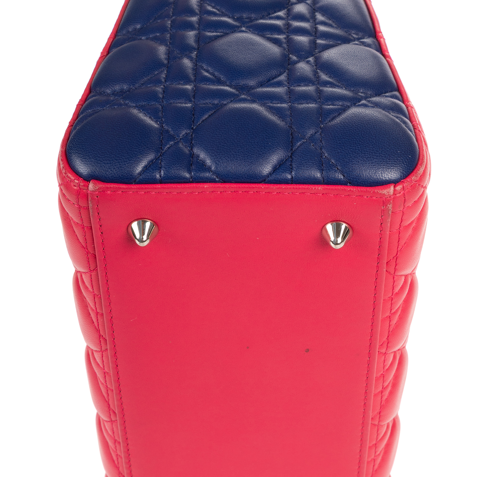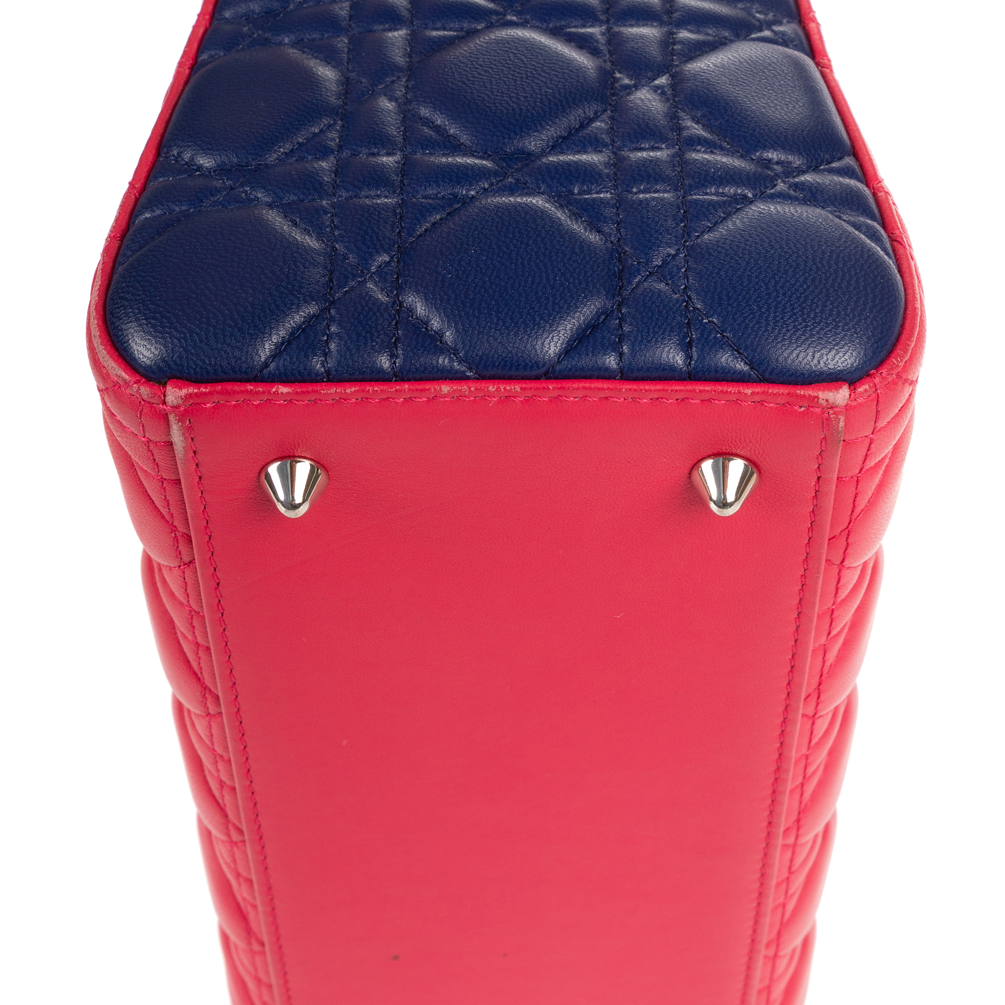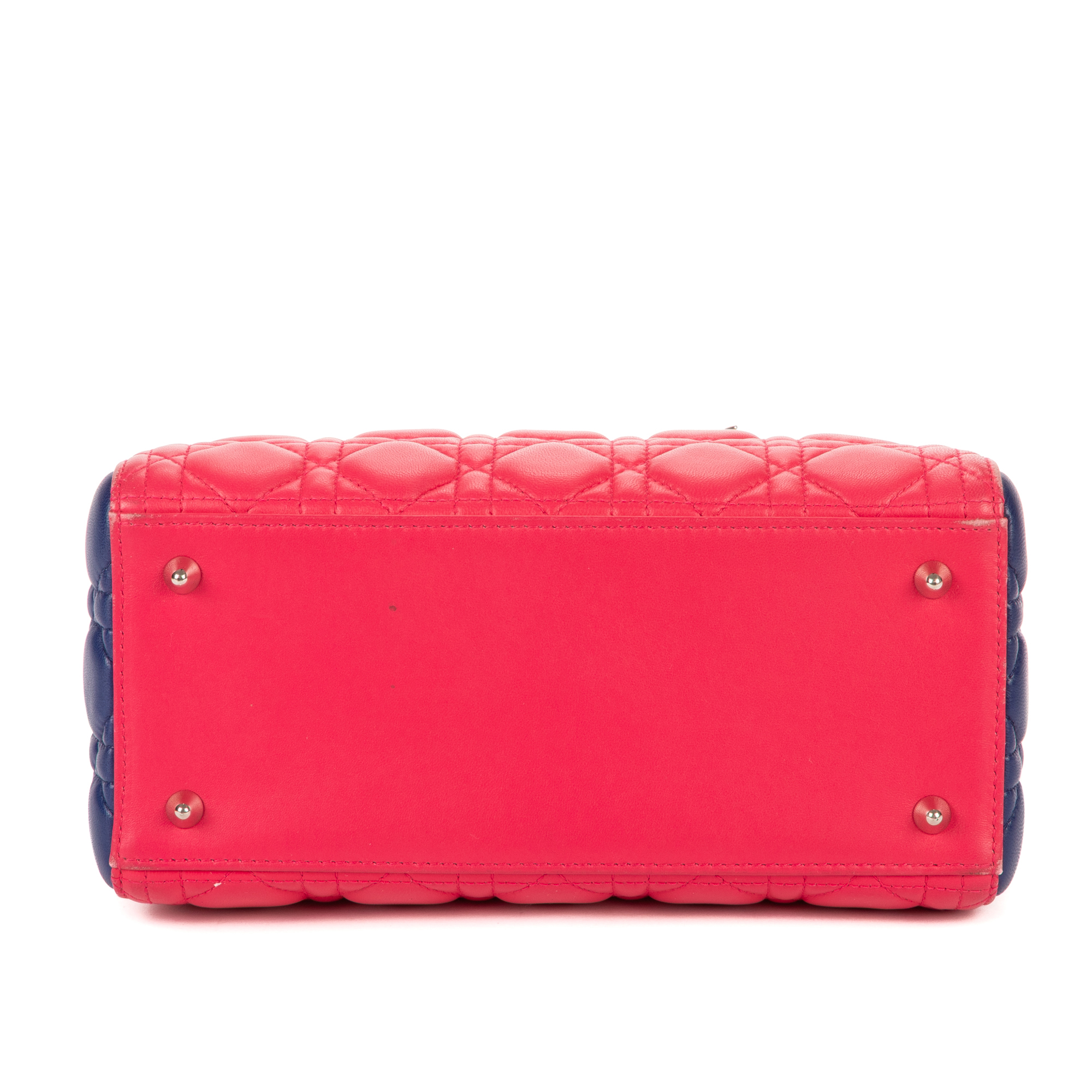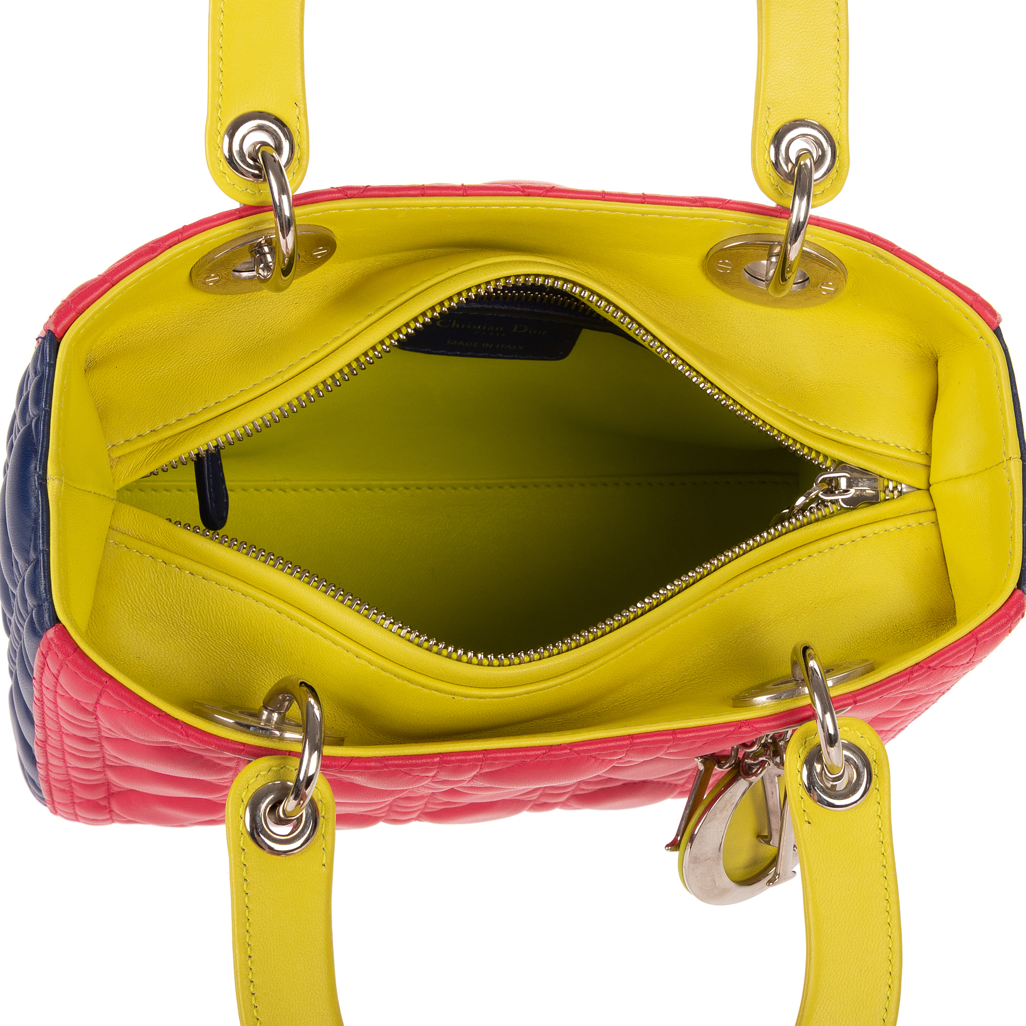 Christian Dior Shoulder Bag Lady Dior Tricolor Medium in Fushia/Yellow/Navy Cannage Leather and Silver hardware. The product is in Perfect Condition (AA).