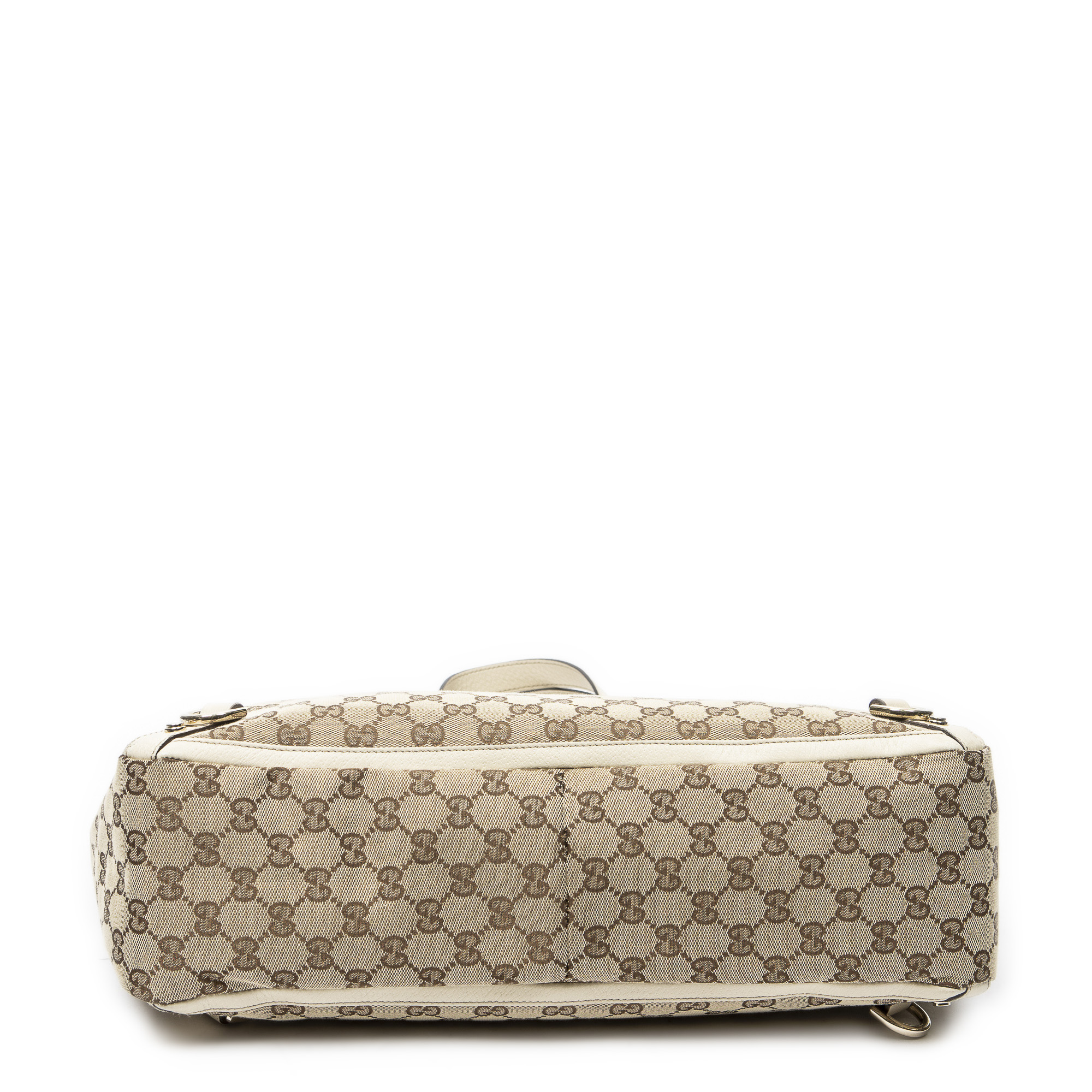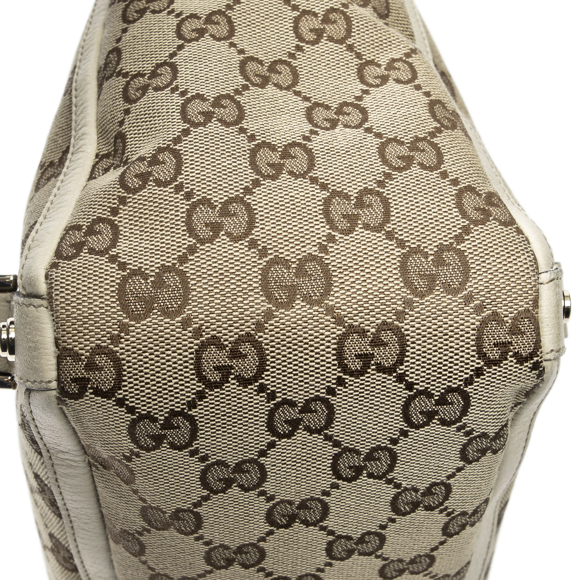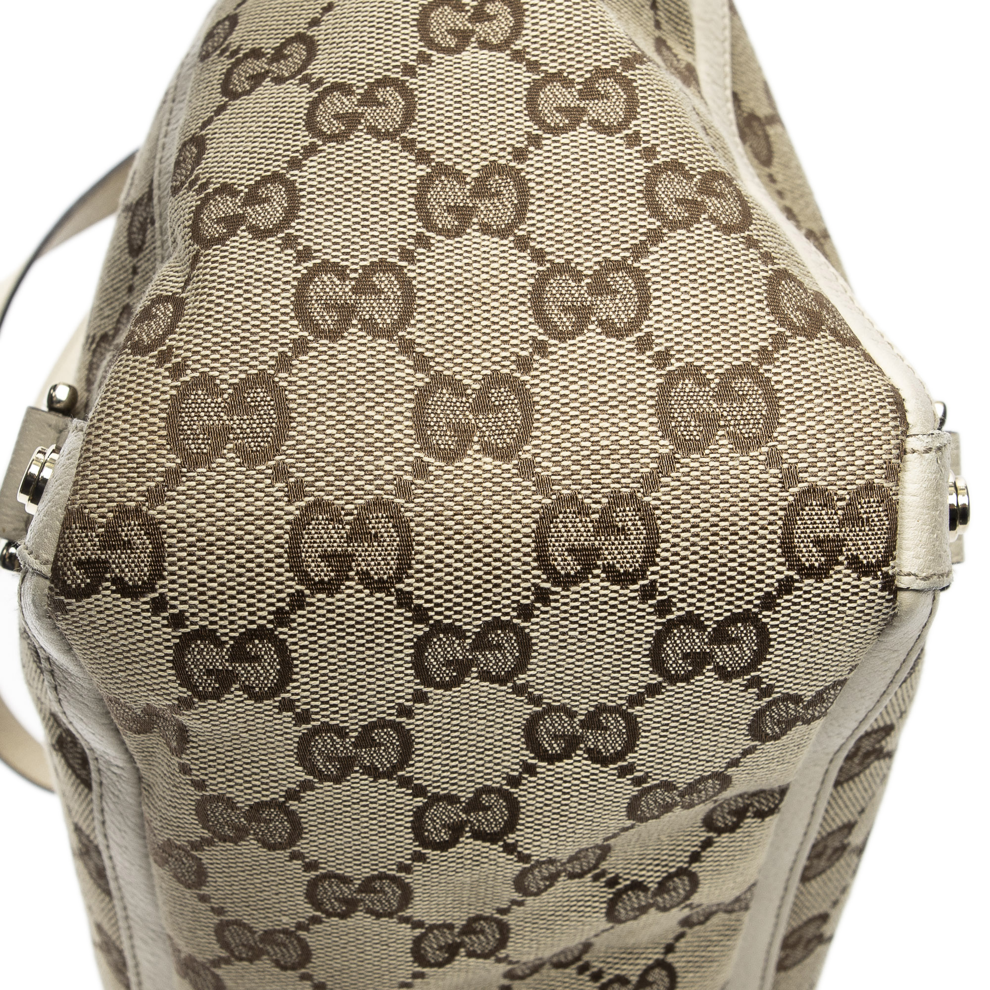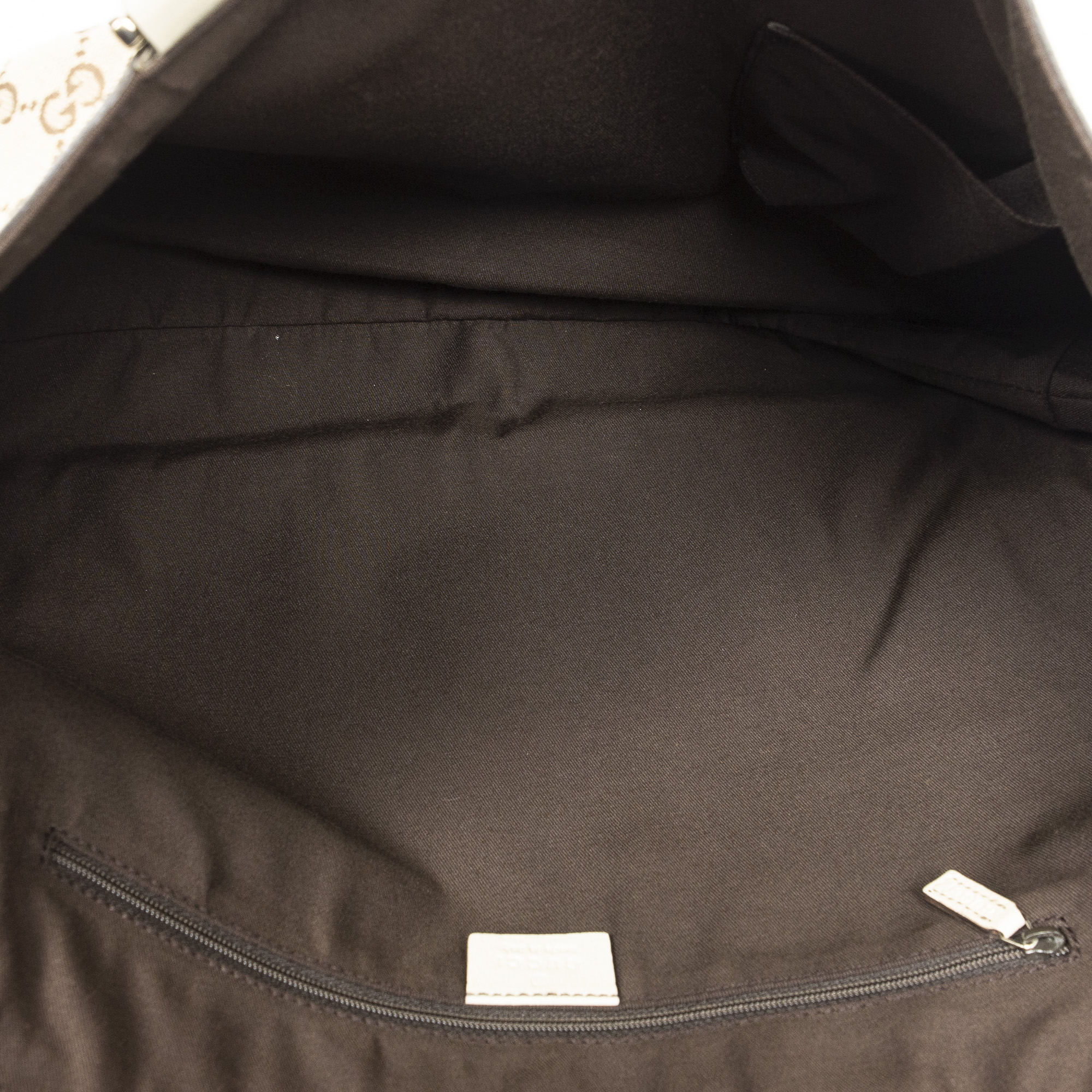 Gucci Shoulder Bag Large Abbey D-Ring Tote in Ivory/Beige Monogrammed Canvas and Silver hardware. The product is in Excellent Condition (A).