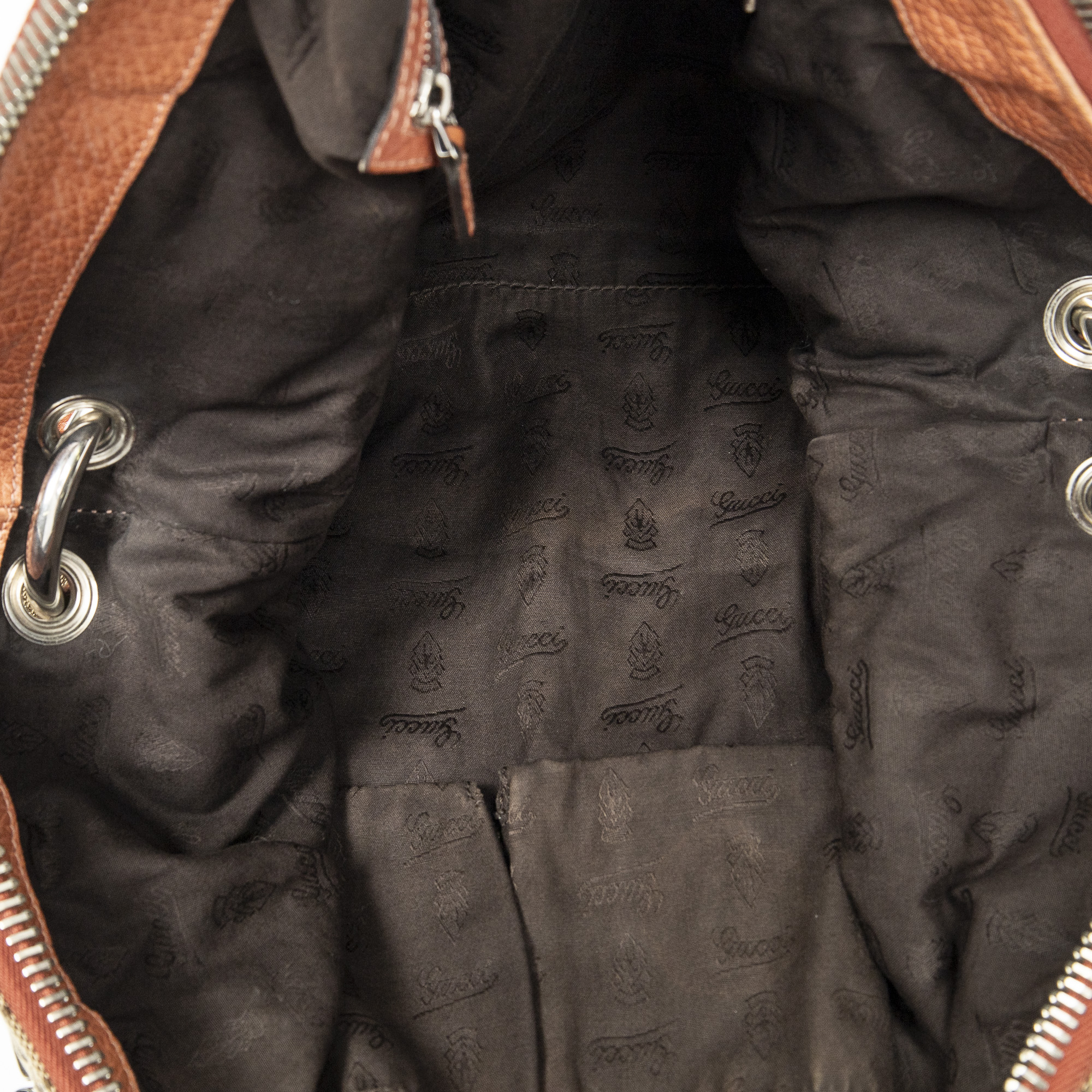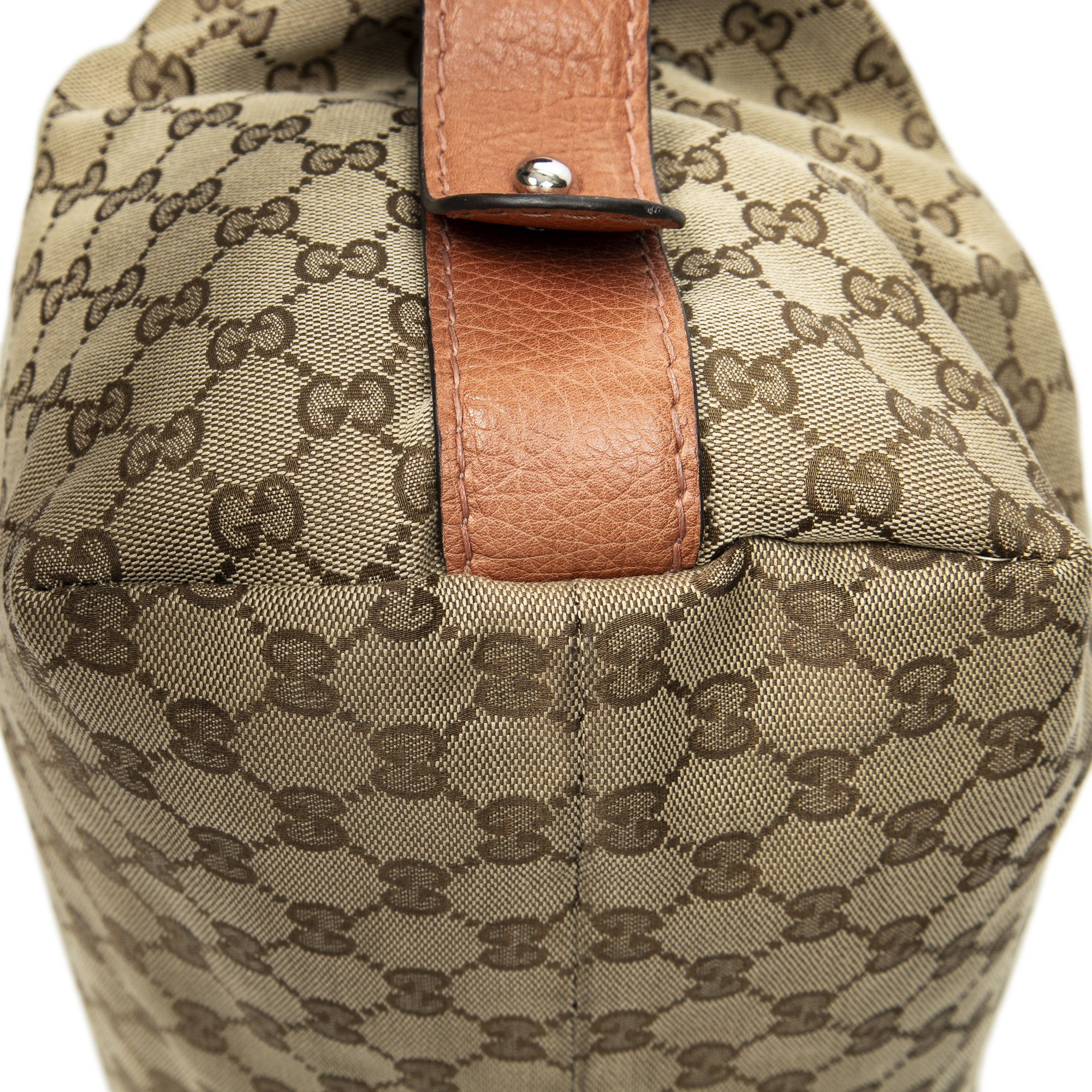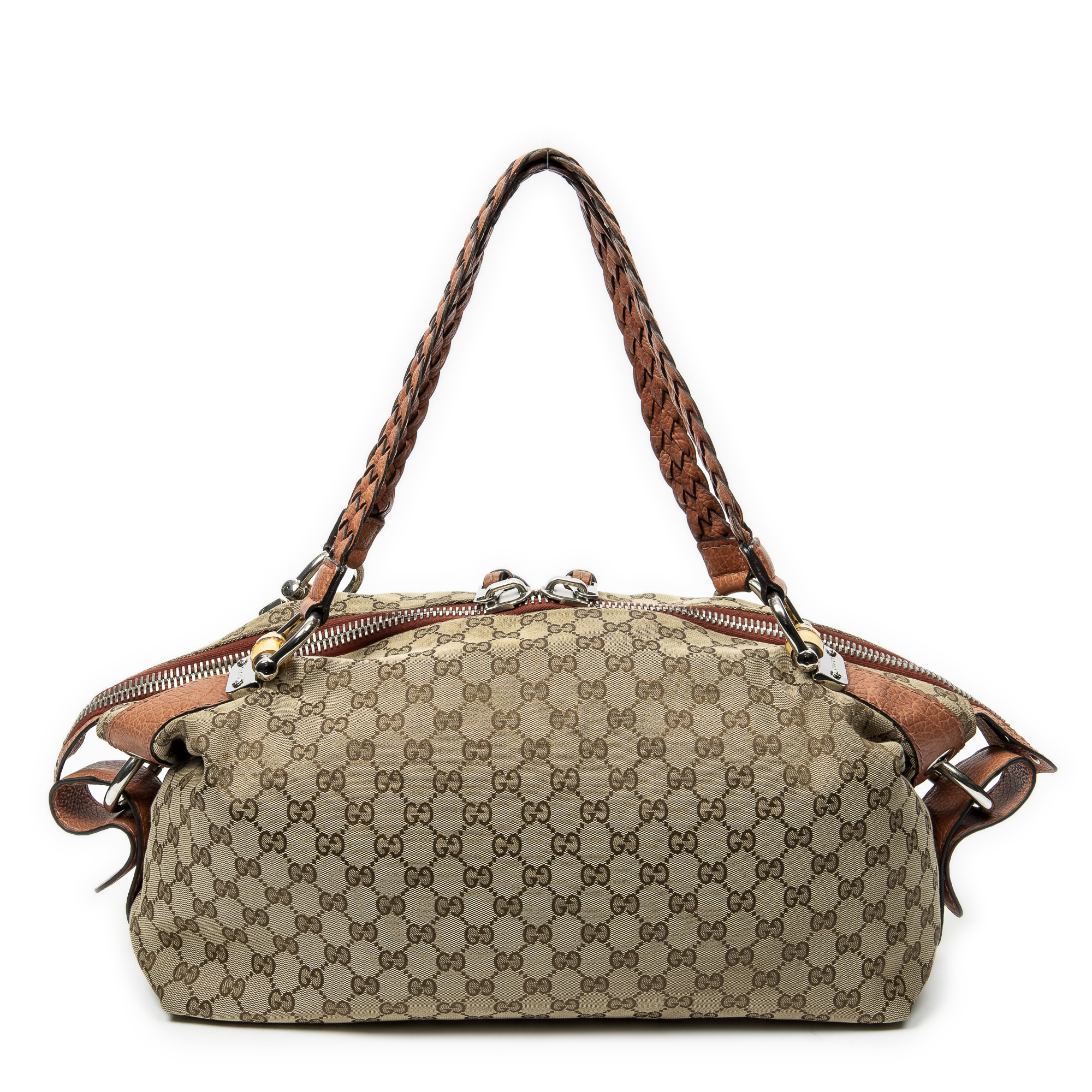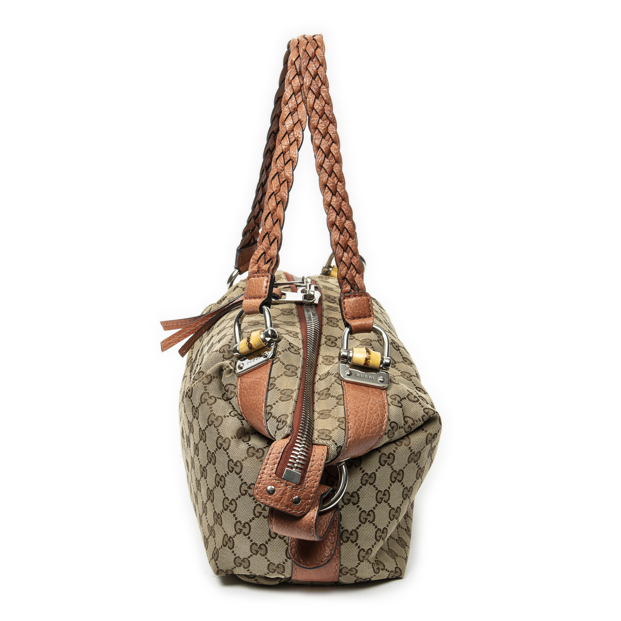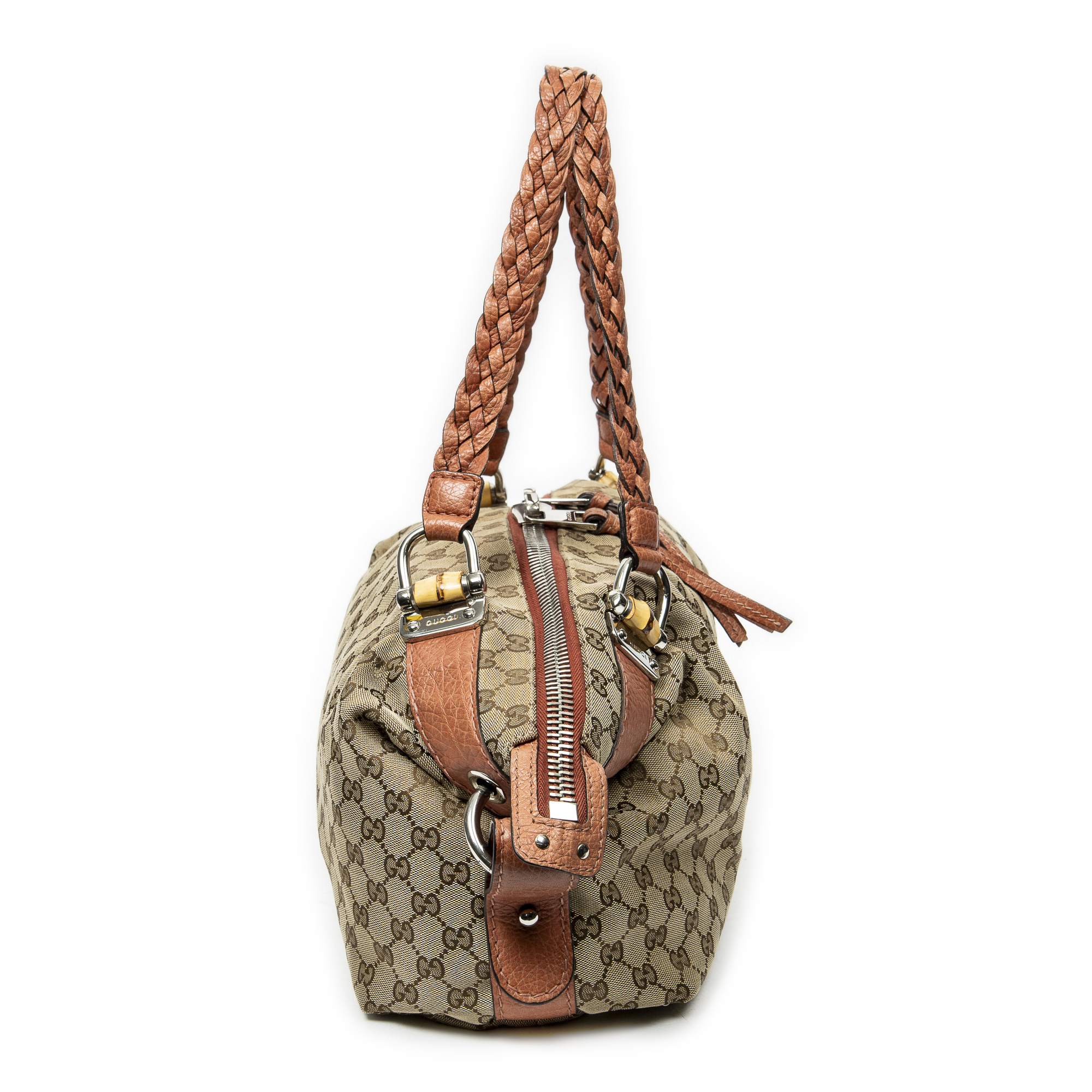 Gucci Shoulder Bag Large Bamboo Bar Boston in Orange/Beige Monogrammed Canvas and Silver hardware. The product is in Excellent Condition (A).