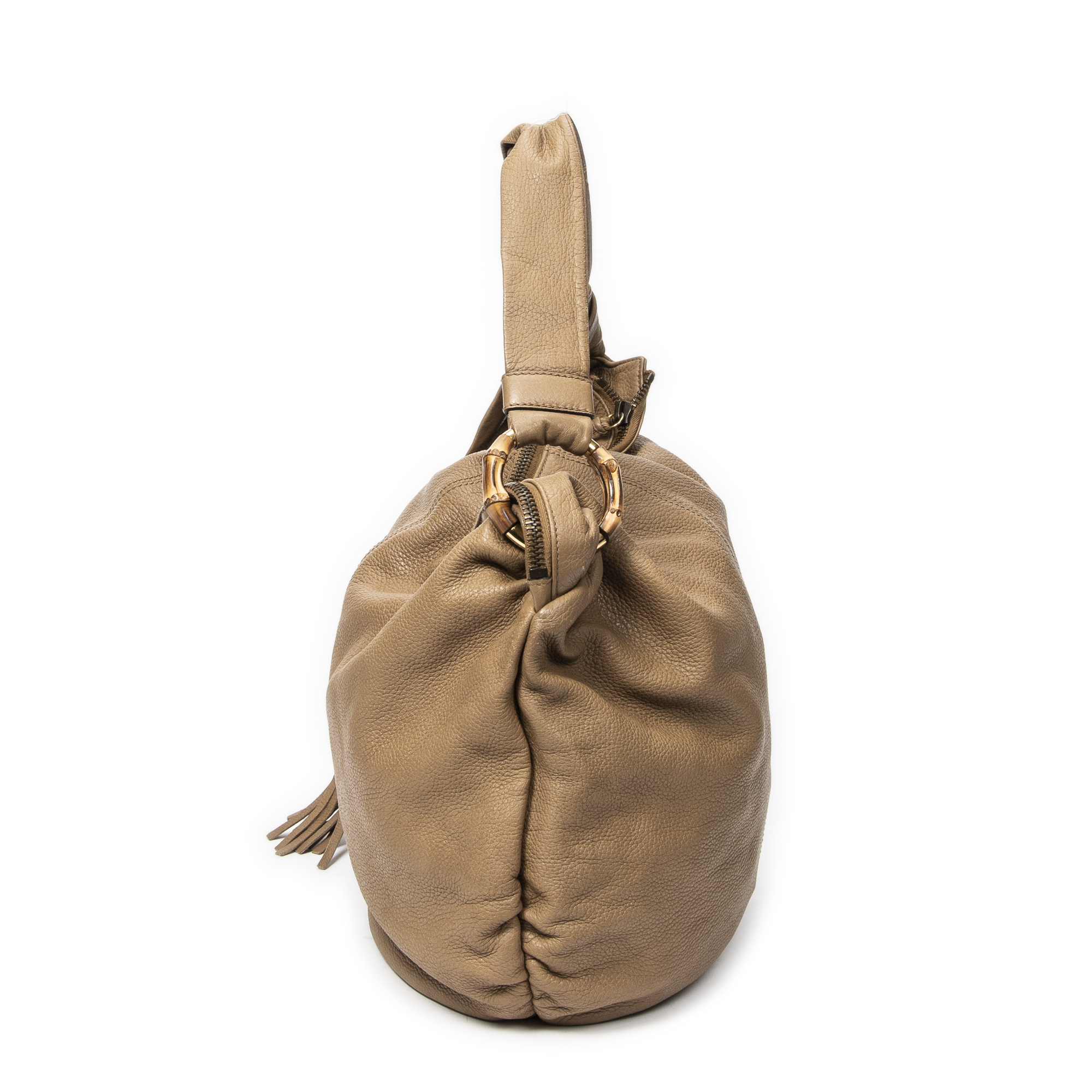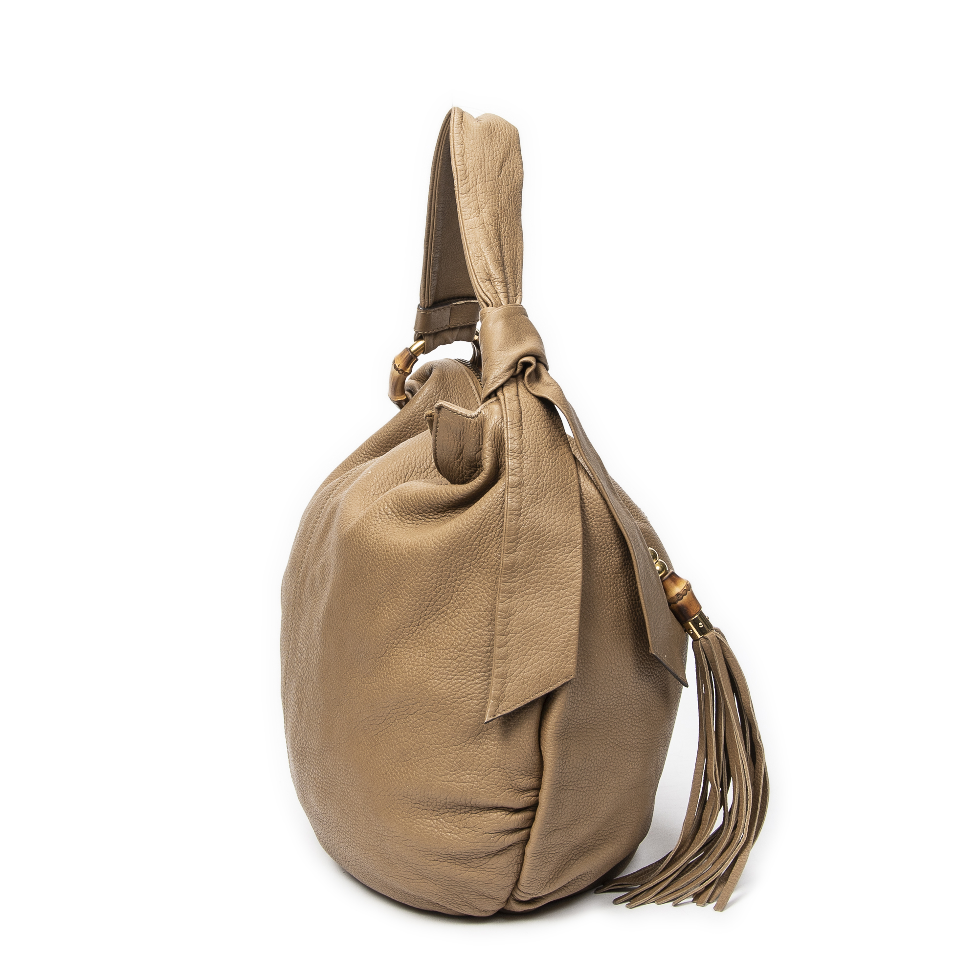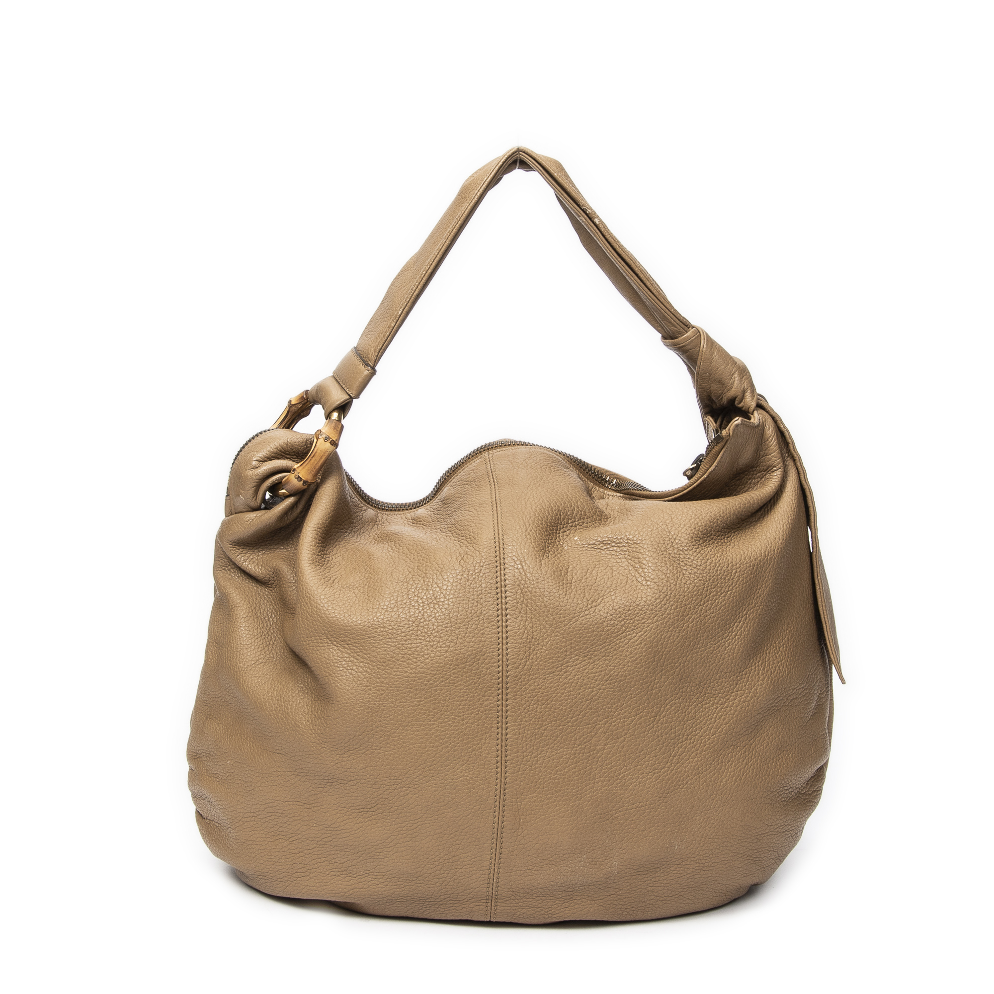 Gucci Shoulder Bag Large Bamboo Bar Hobo in Brown Grained Leather and Gold hardware. The product is in Very Good Condition (AB).
