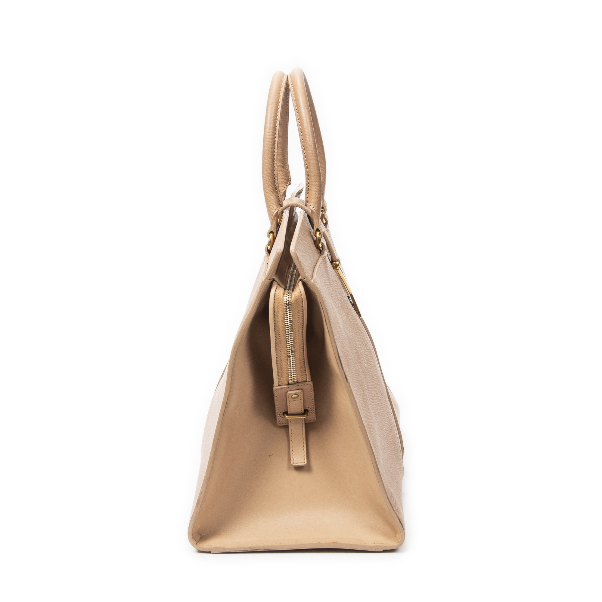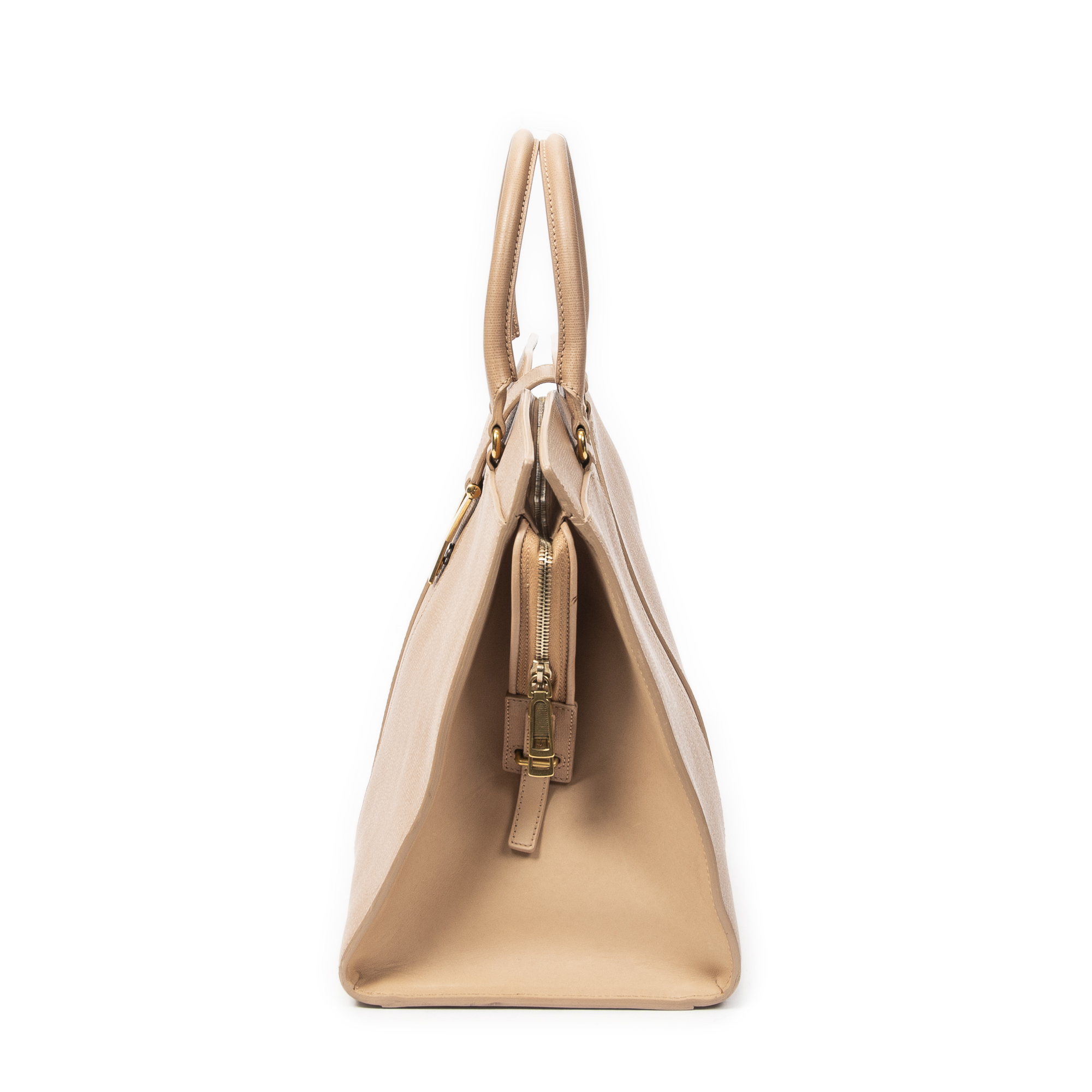 Yves Saint Laurent Shoulder Bag Large Cabas Chyc in Beige Textured Leather and Gold hardware. The product is in Excellent Condition (A).
