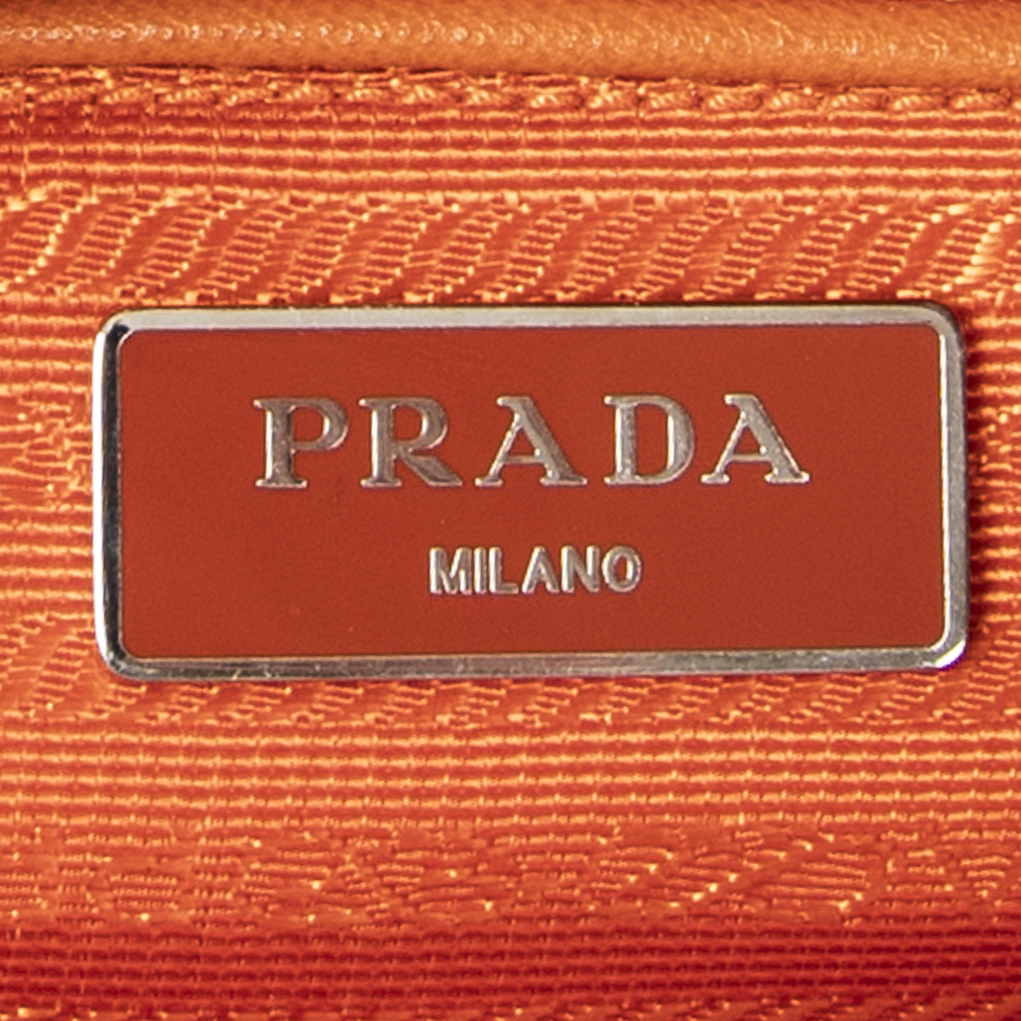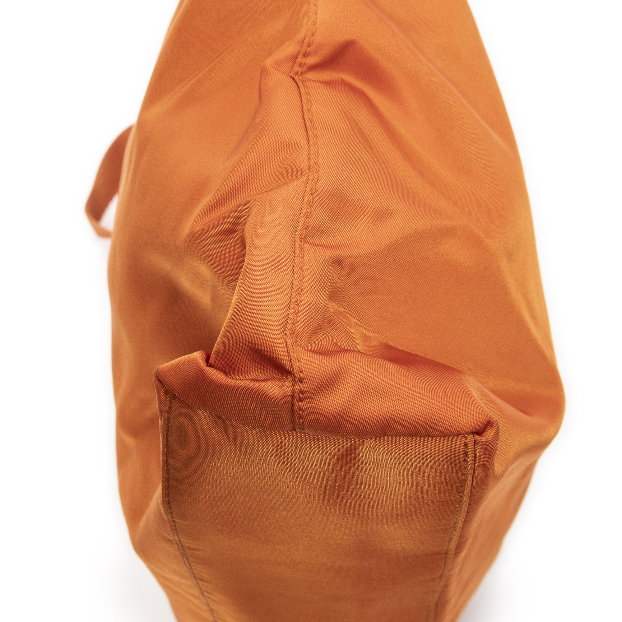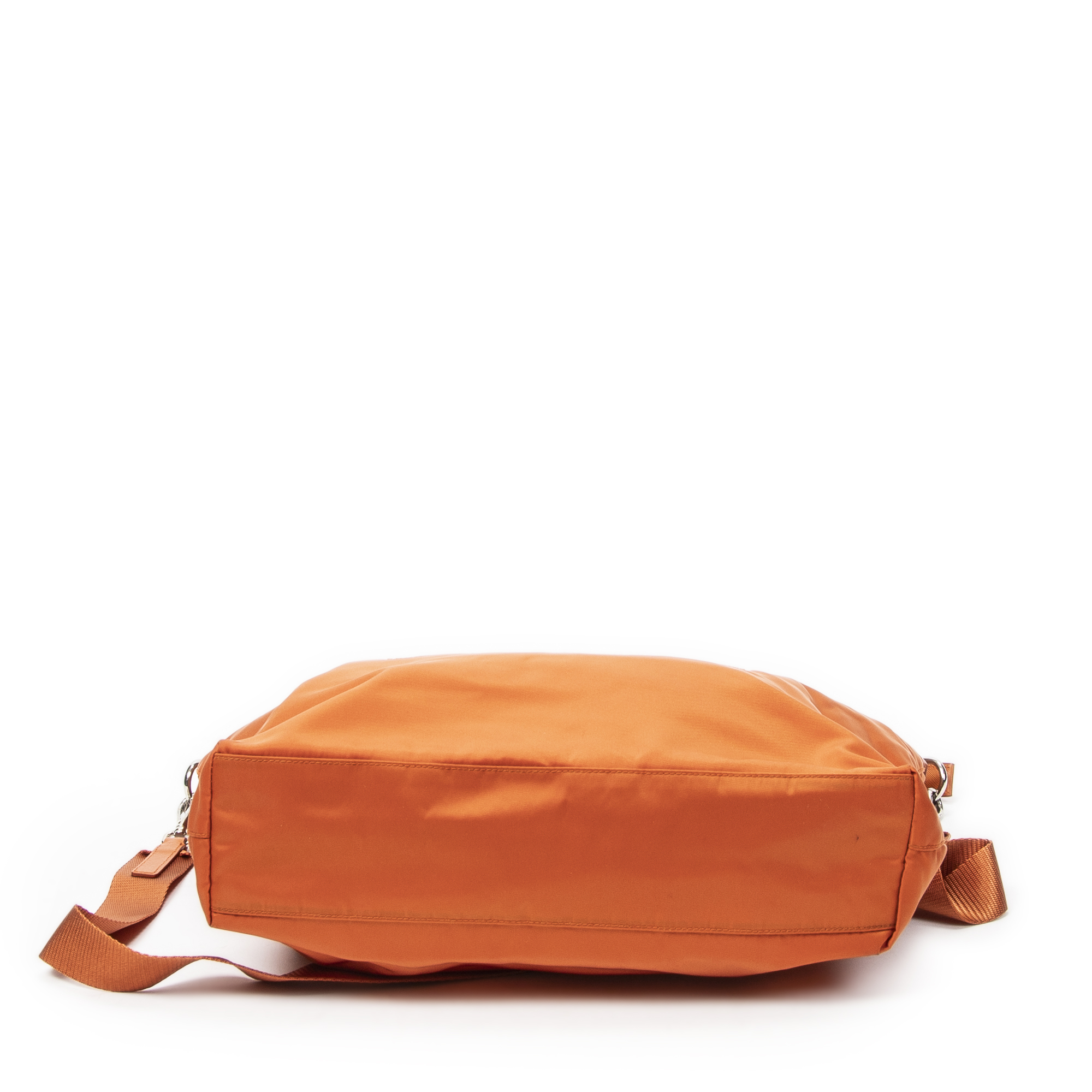 Prada Shoulder Bag Large Convertible Vertical Tote in Orange Nylon Canvas and Silver hardware. The product is in Excellent Condition (A).