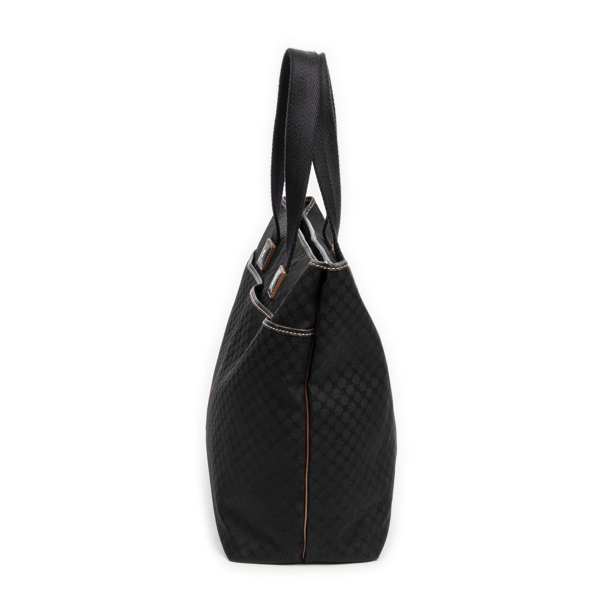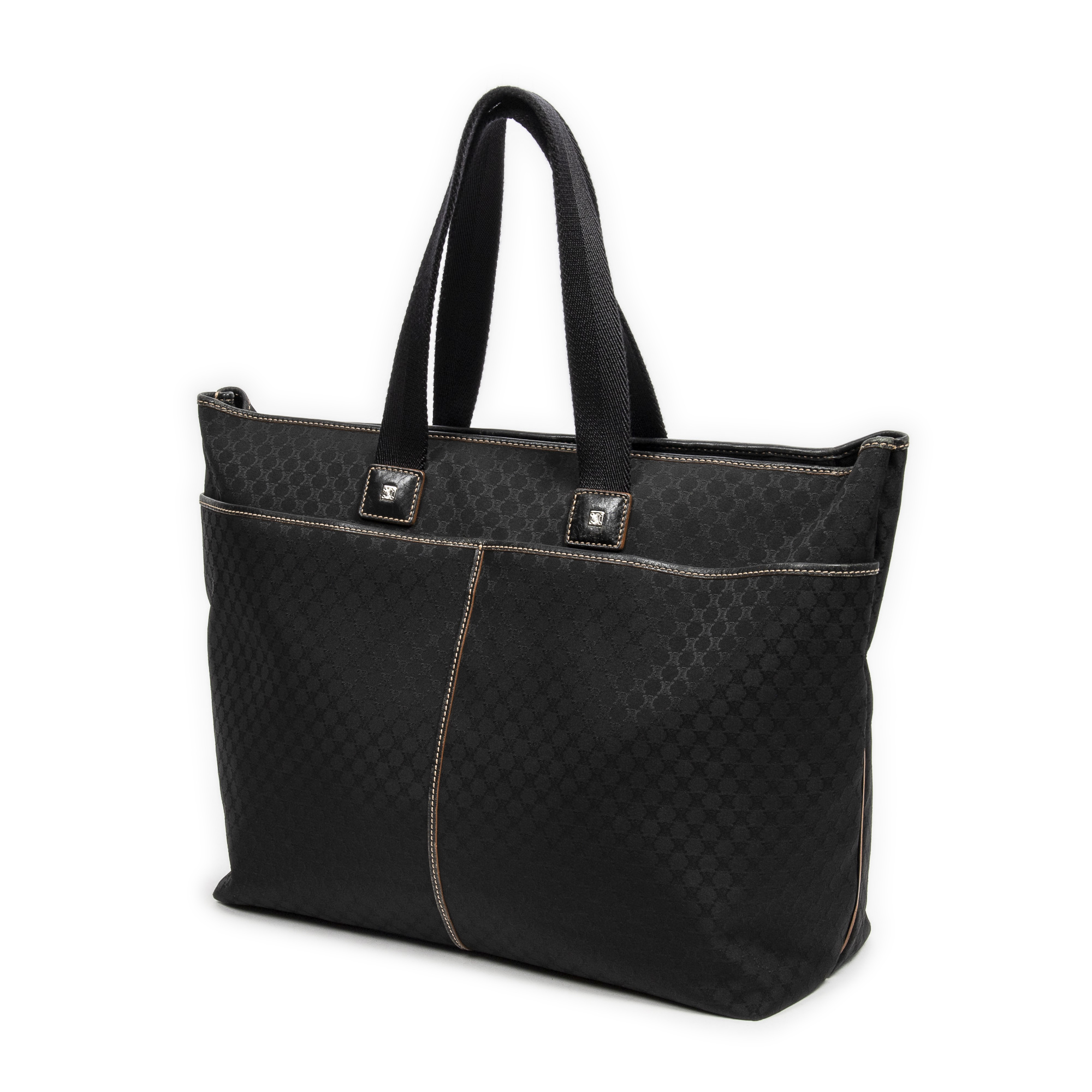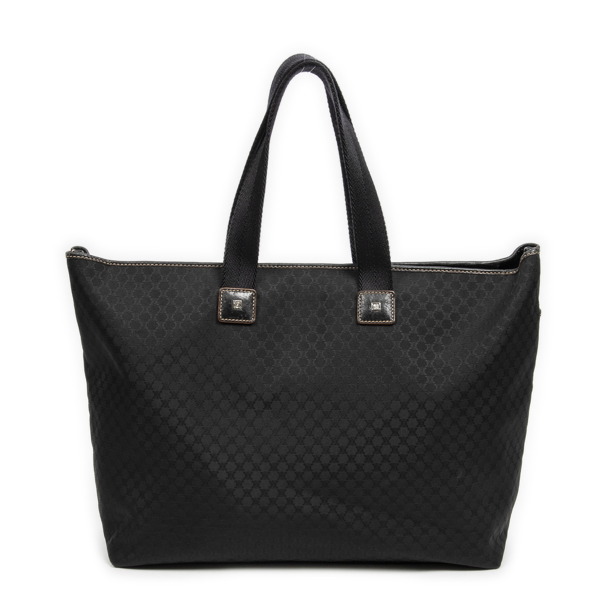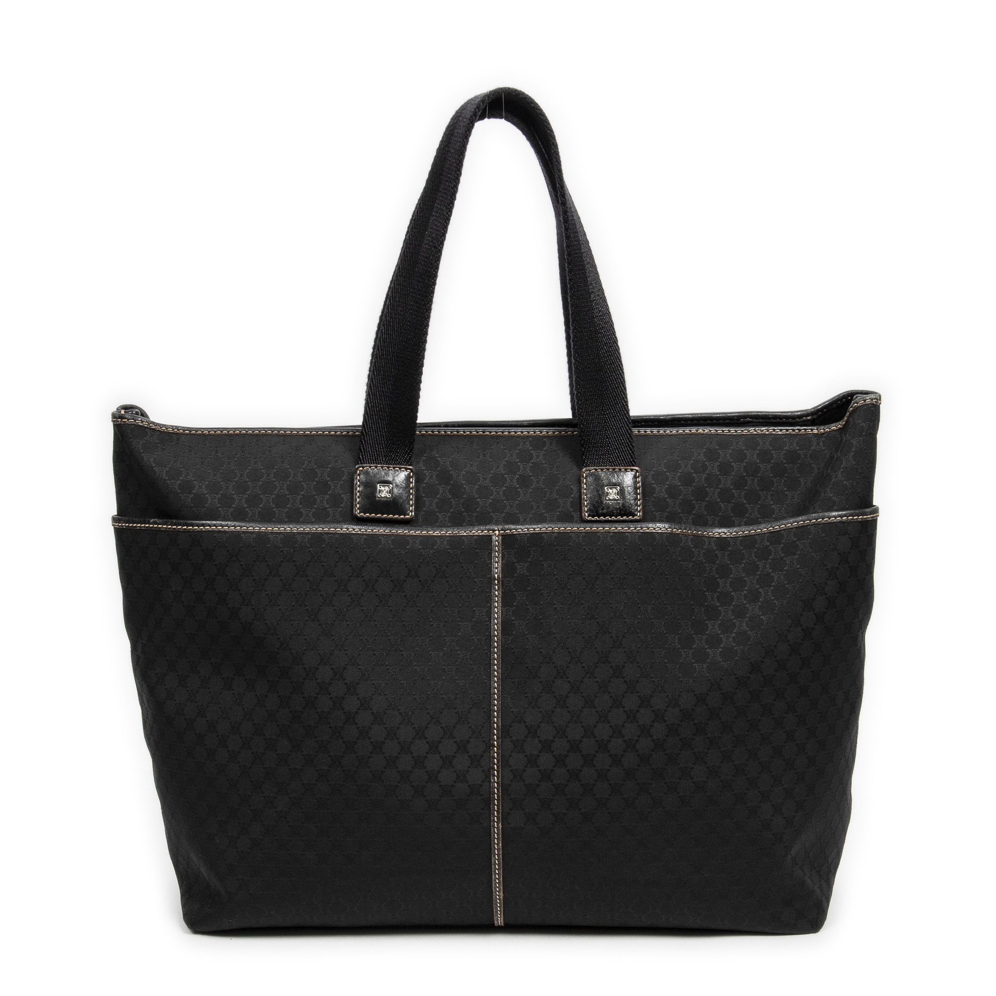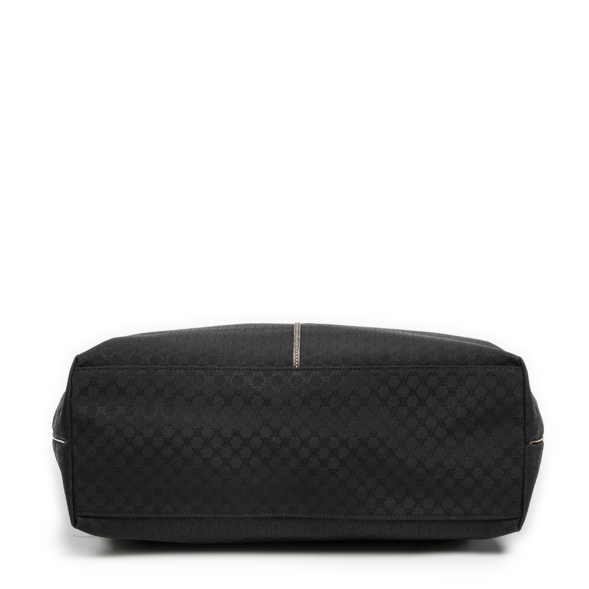 Celine Shoulder Bag Large Double Front Pockets Zip Tote in Black Macadam Nylon Canvas and Silver hardware. The product is in Excellent Condition (A).