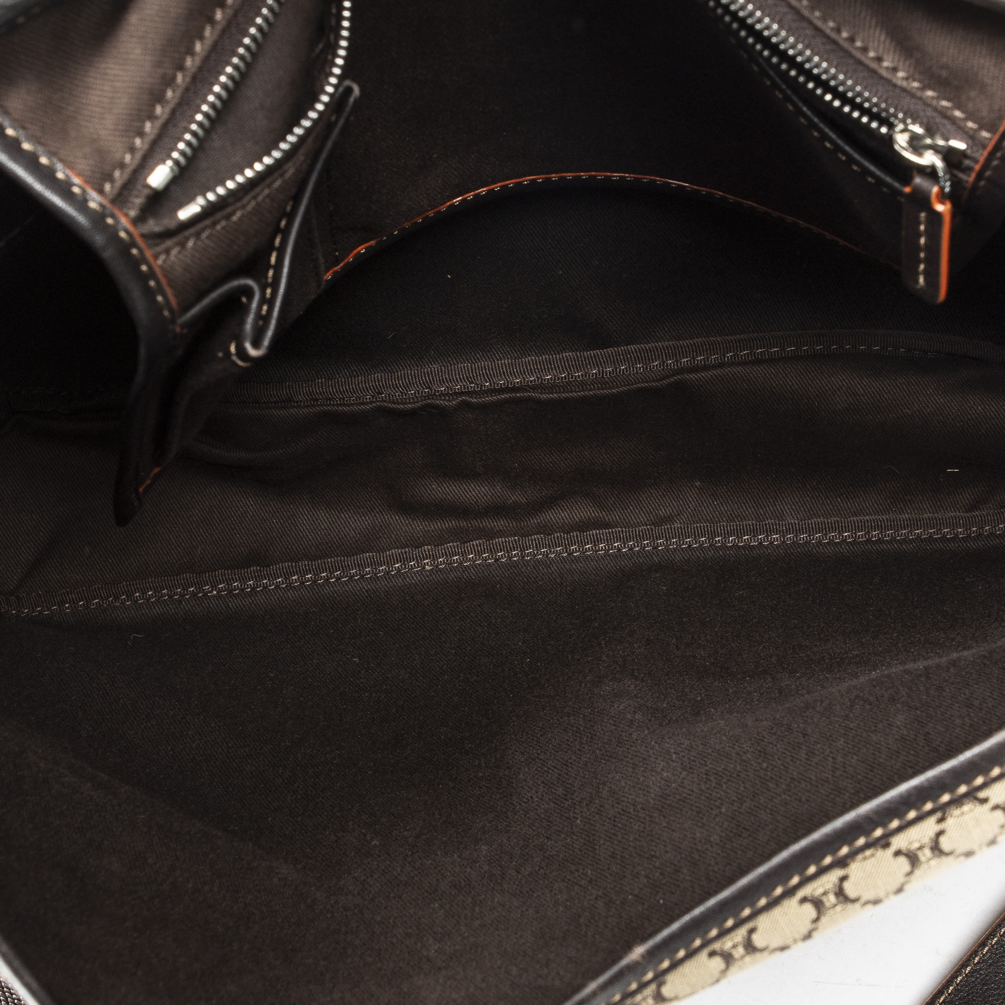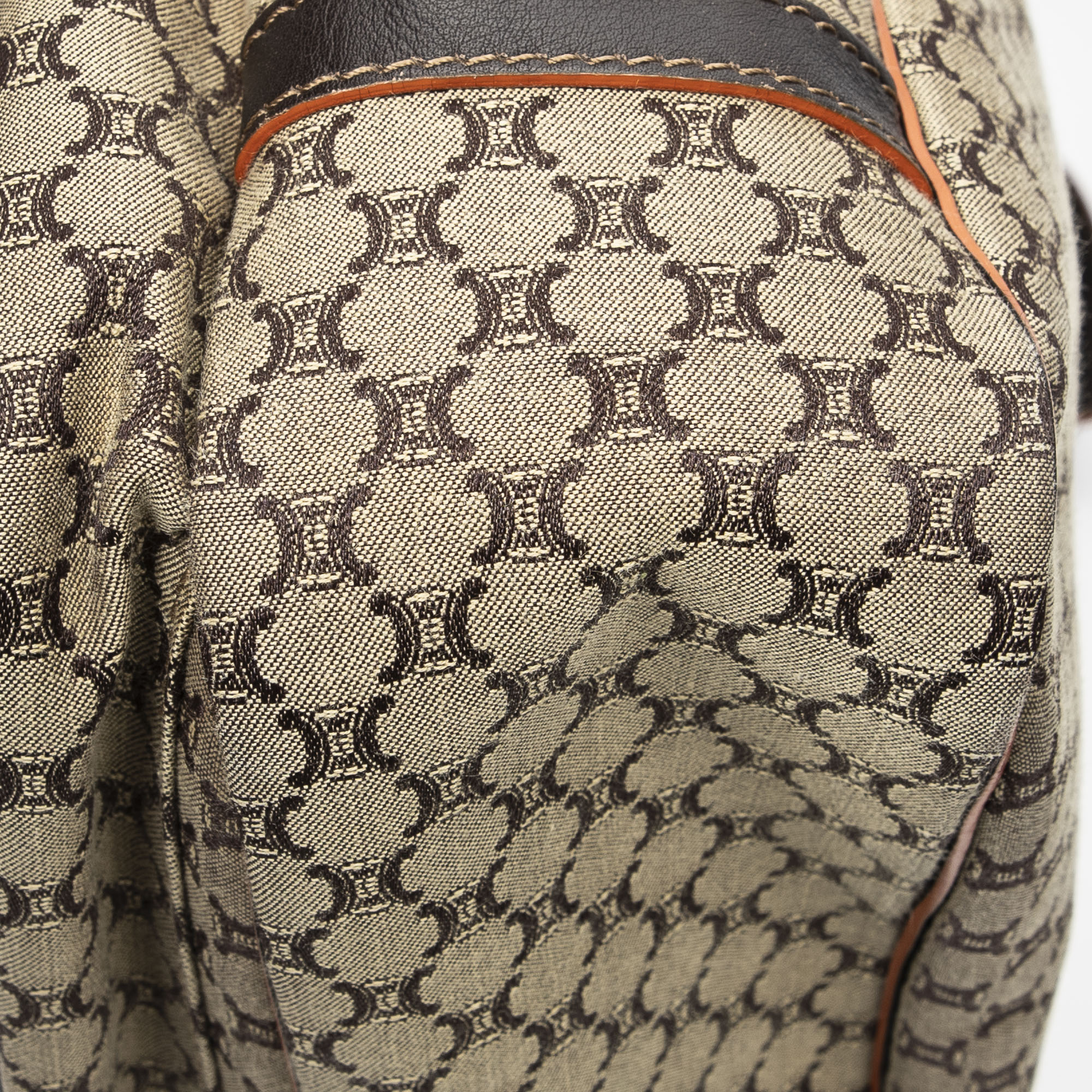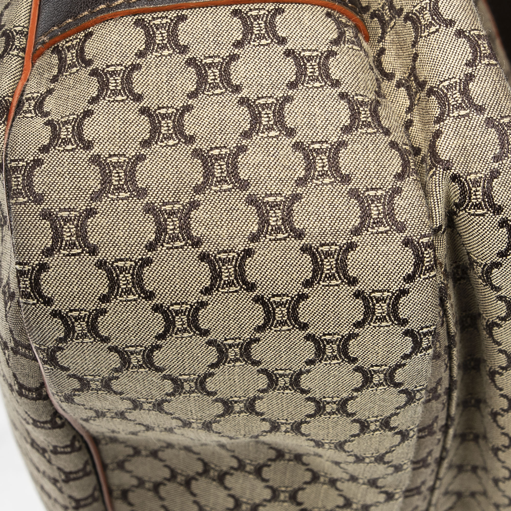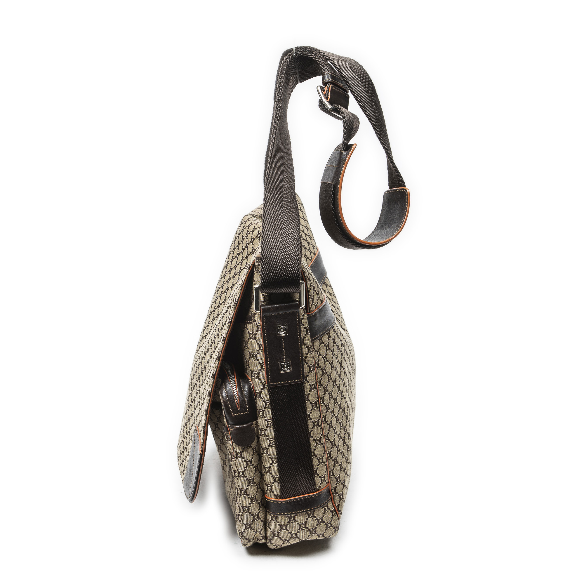 Celine Shoulder Bag Large Flap Messenger in Beige/Dark Brown/Orange Macadam Canvas and Silver hardware. The product is in Excellent Condition (A).
