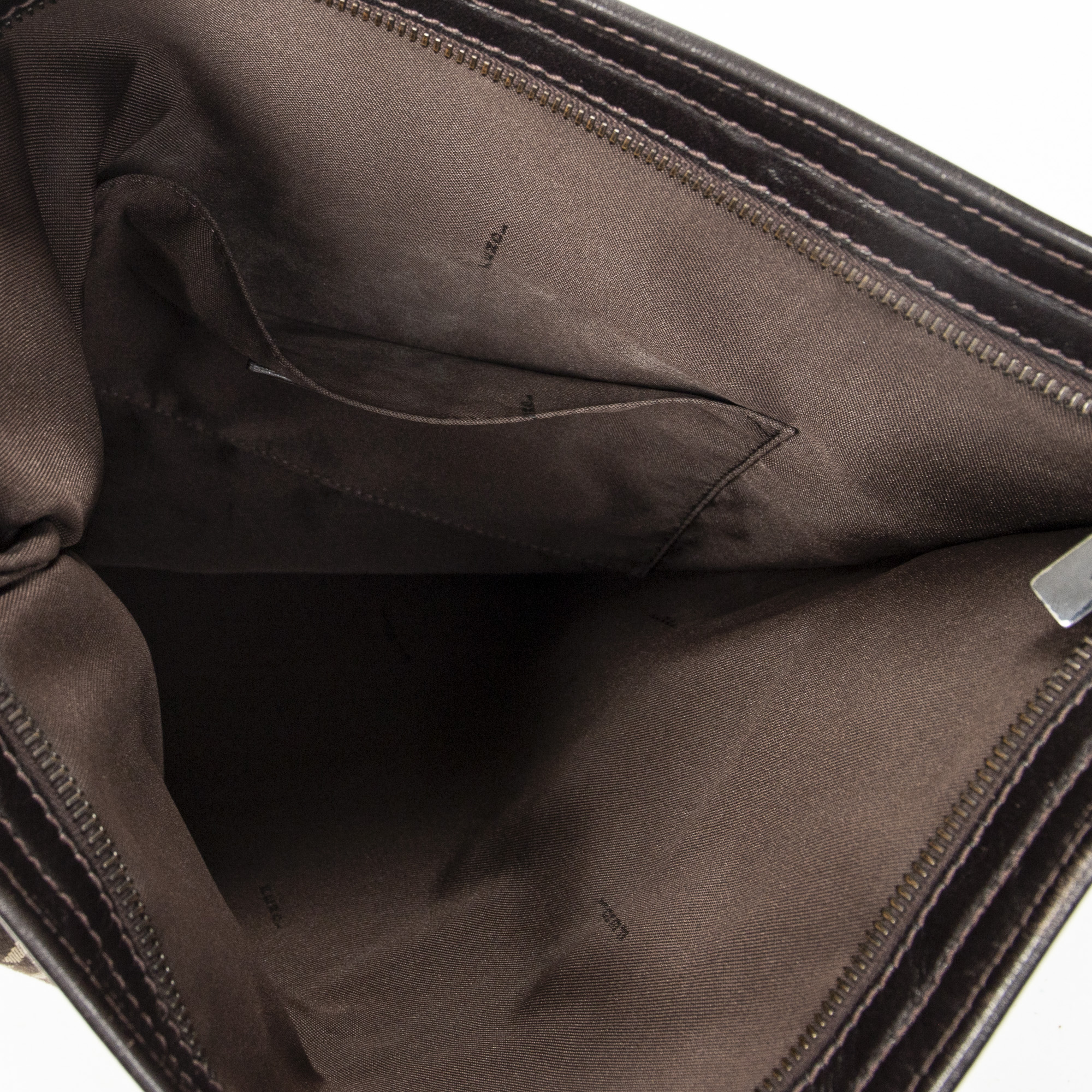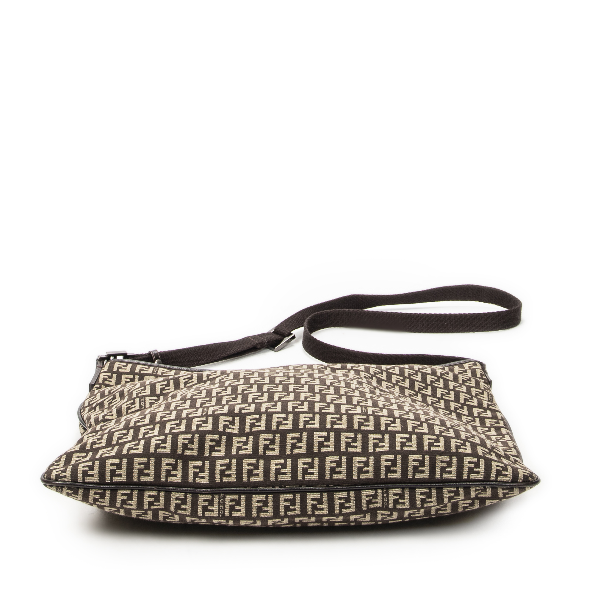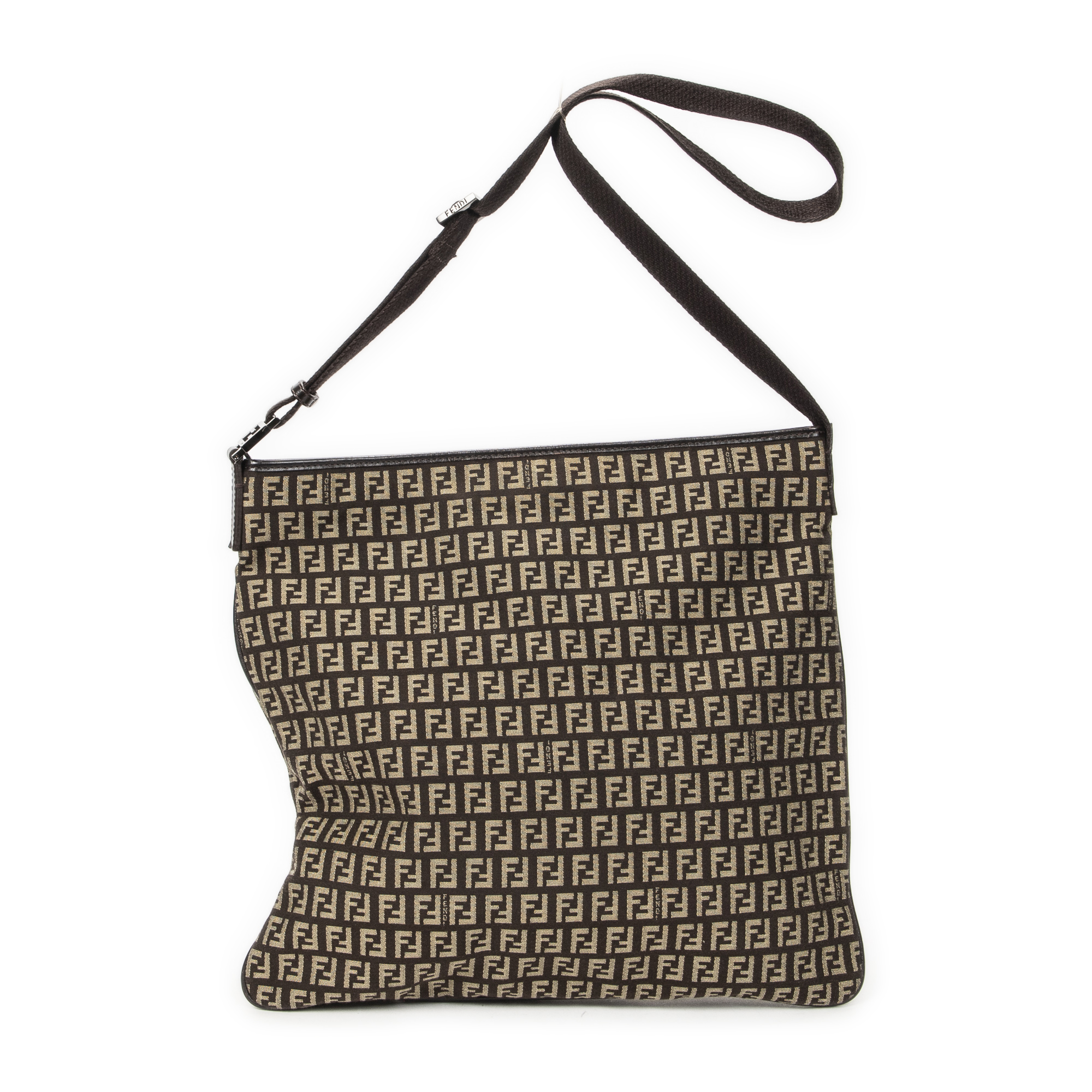 Fendi Shoulder Bag Large Flat Crossbody in Brown Zucchino Canvas and Silver hardware. The product is in Excellent Condition (A).