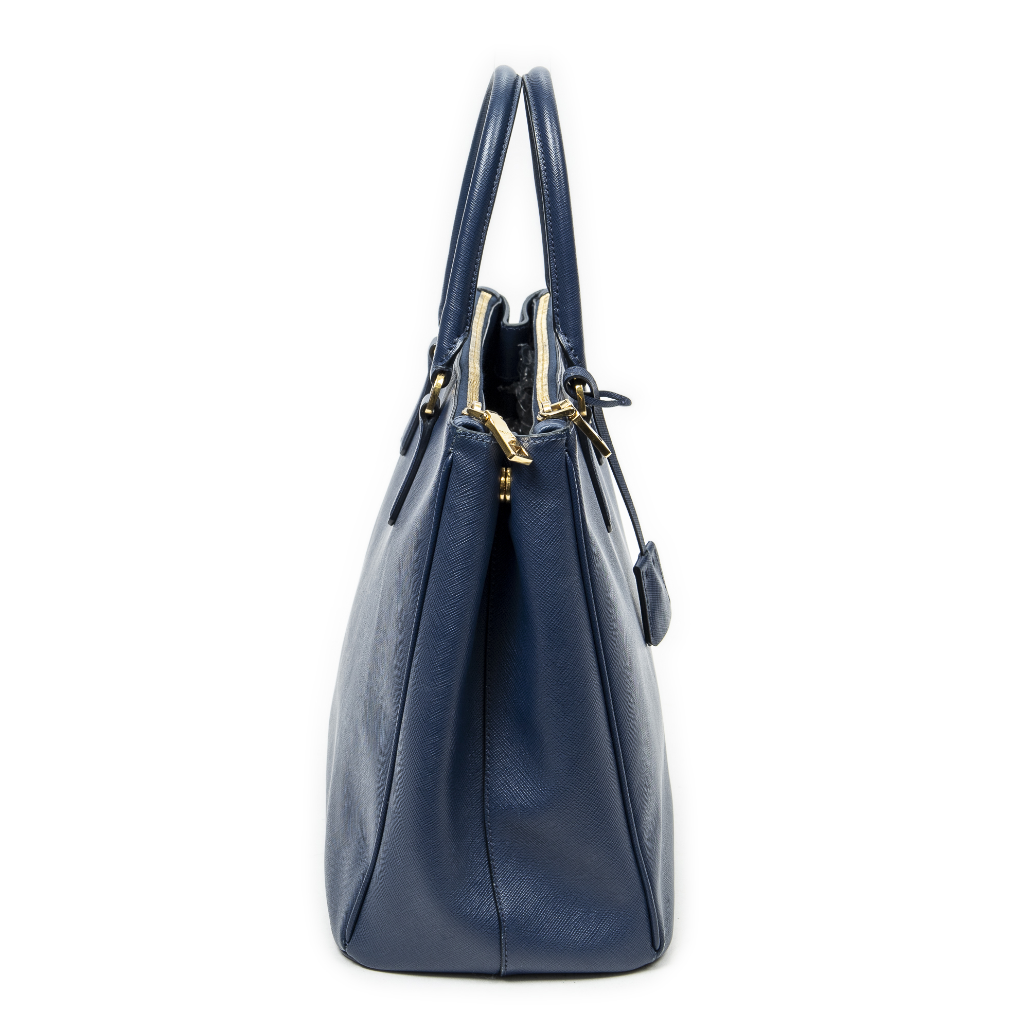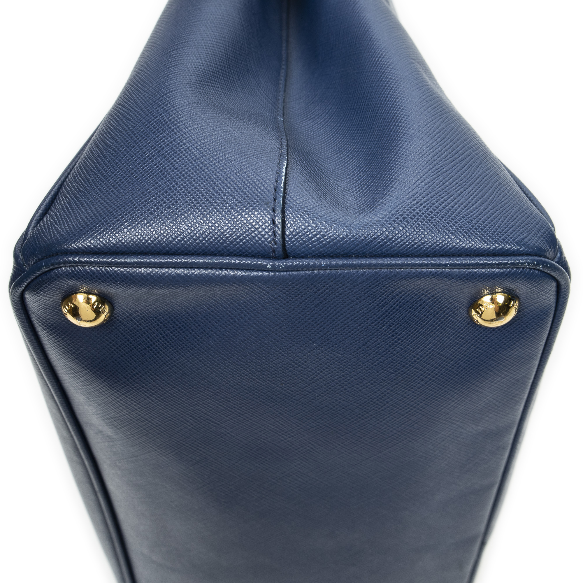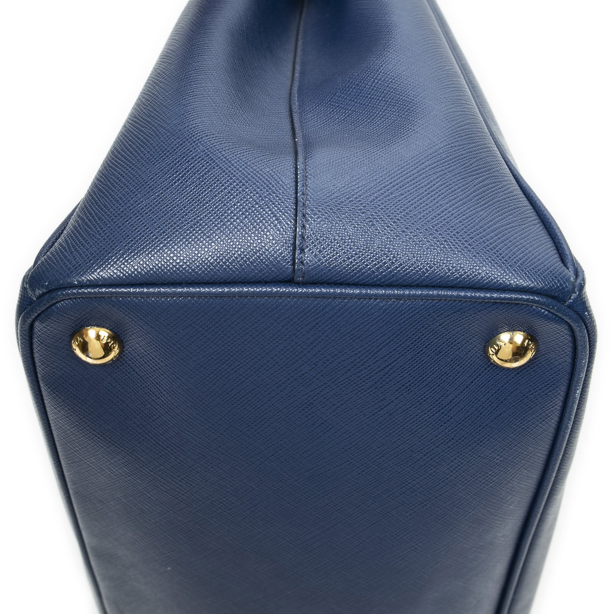 Prada Shoulder Bag Large Galleria Double Zip Tote in Navy Saffiano Leather and Gold hardware. The product is in Excellent Condition (A).