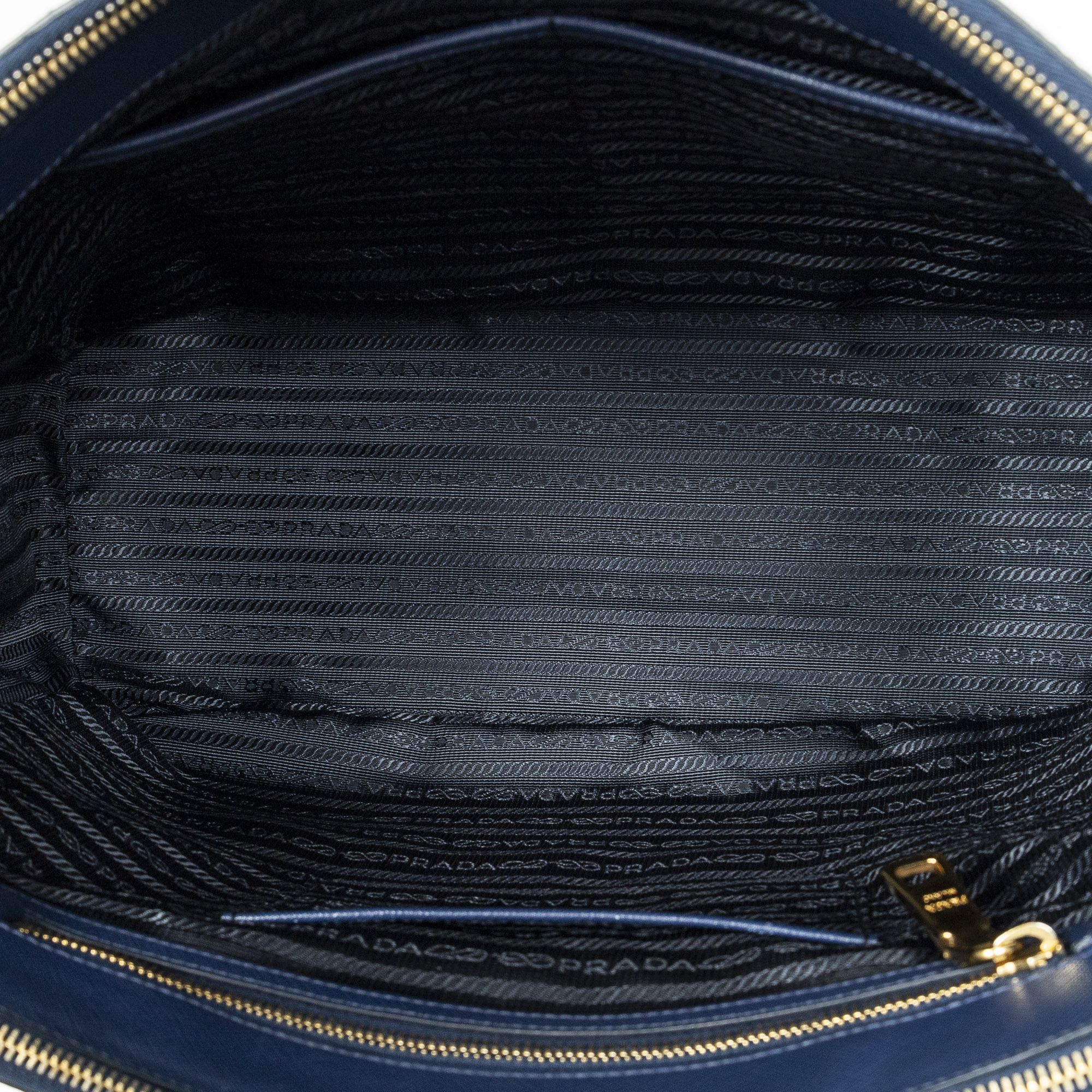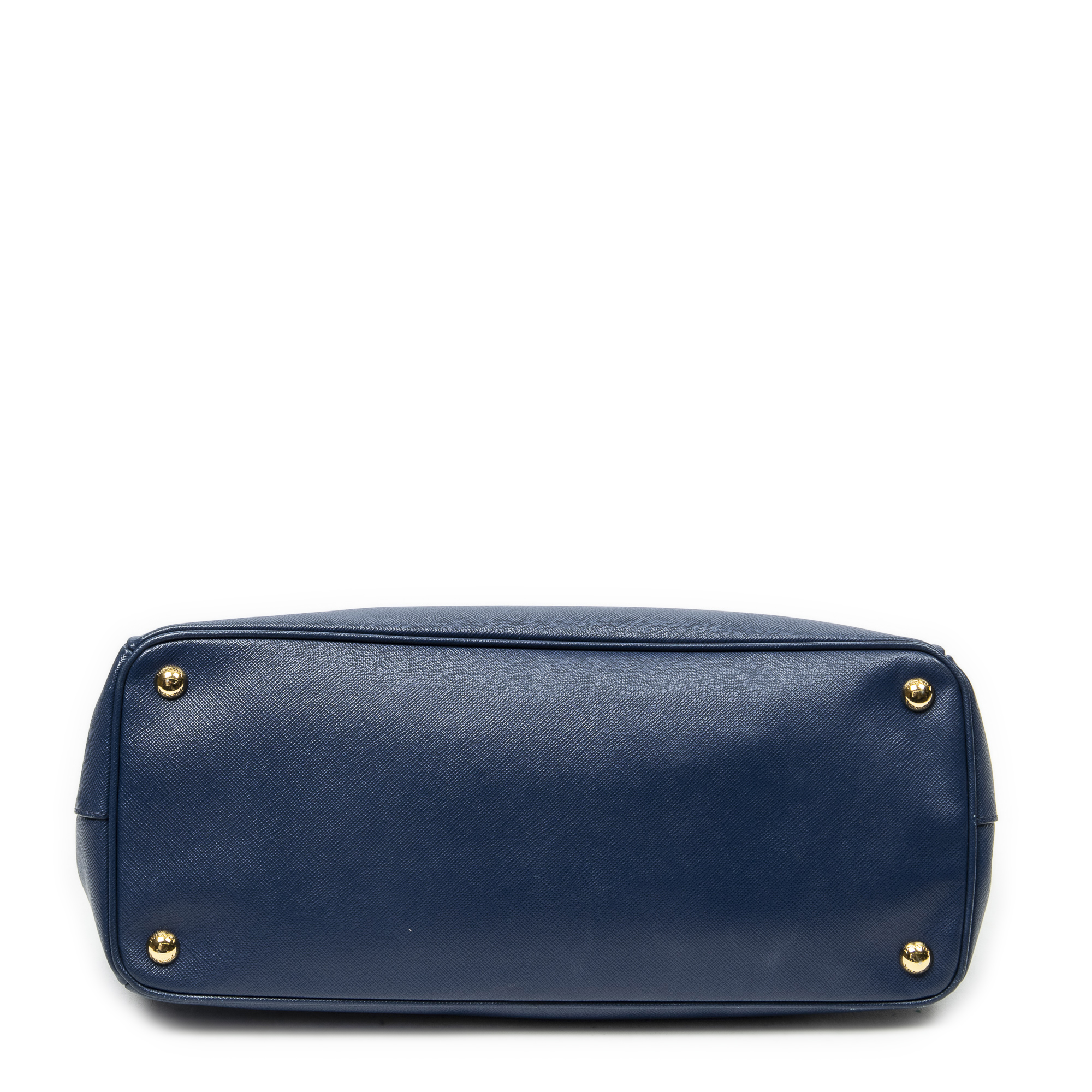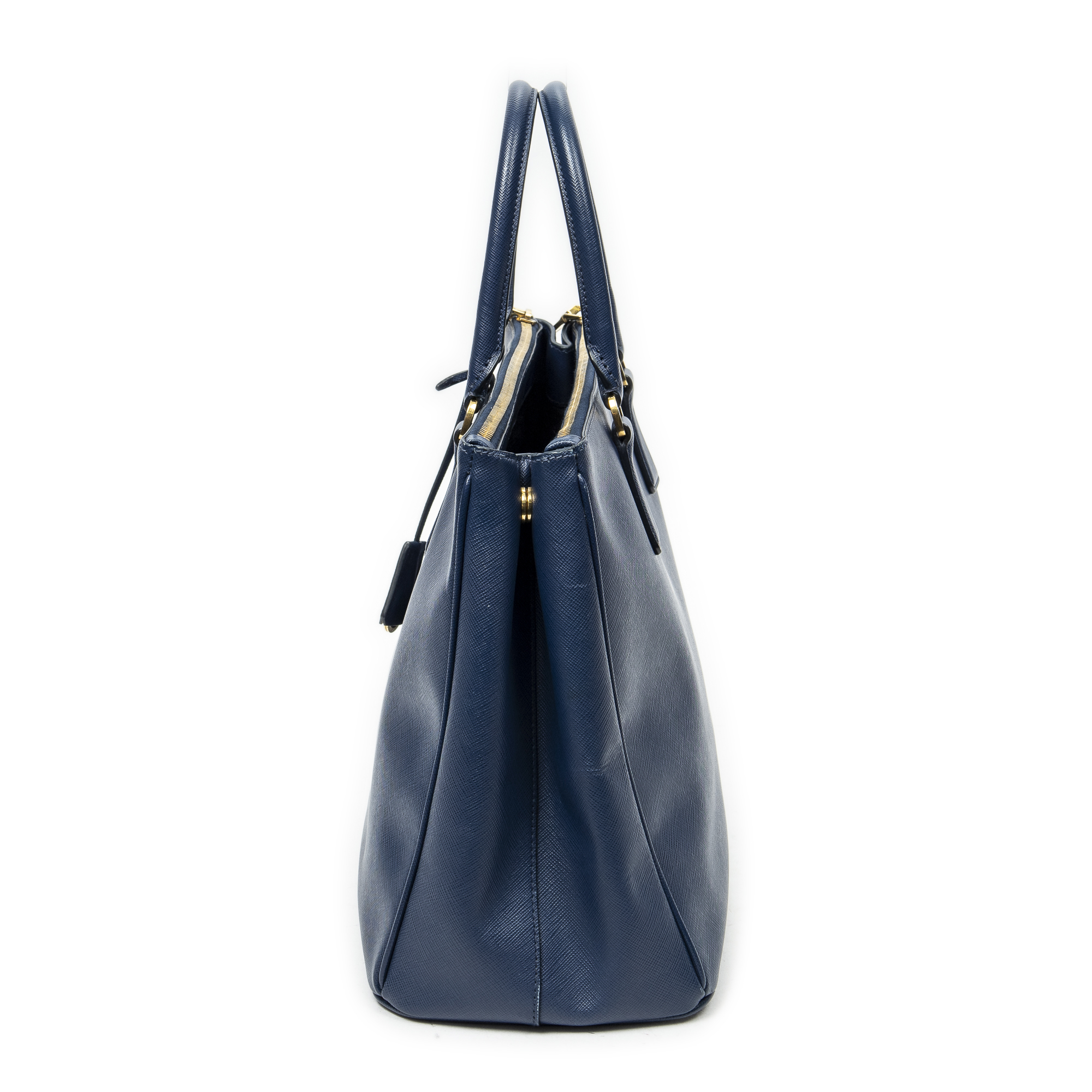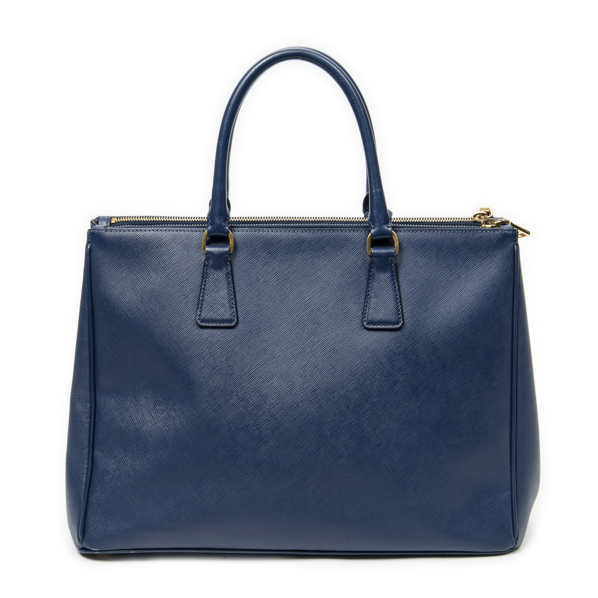 Prada Shoulder Bag Large Galleria Double Zip Tote in Navy Saffiano Leather and Gold hardware. The product is in Excellent Condition (A).