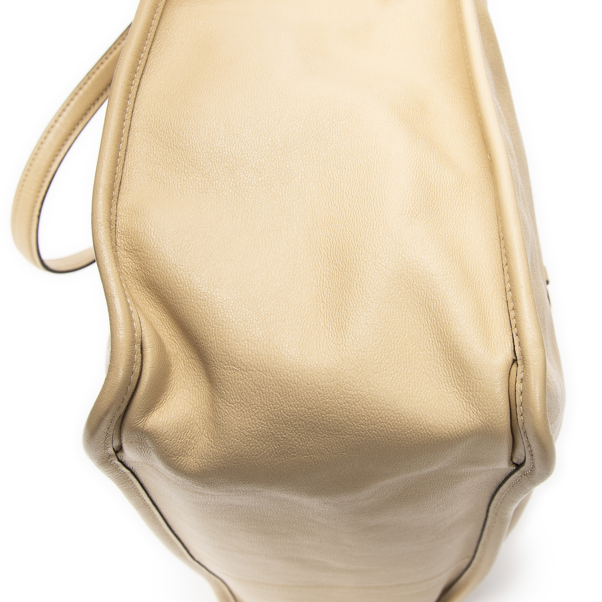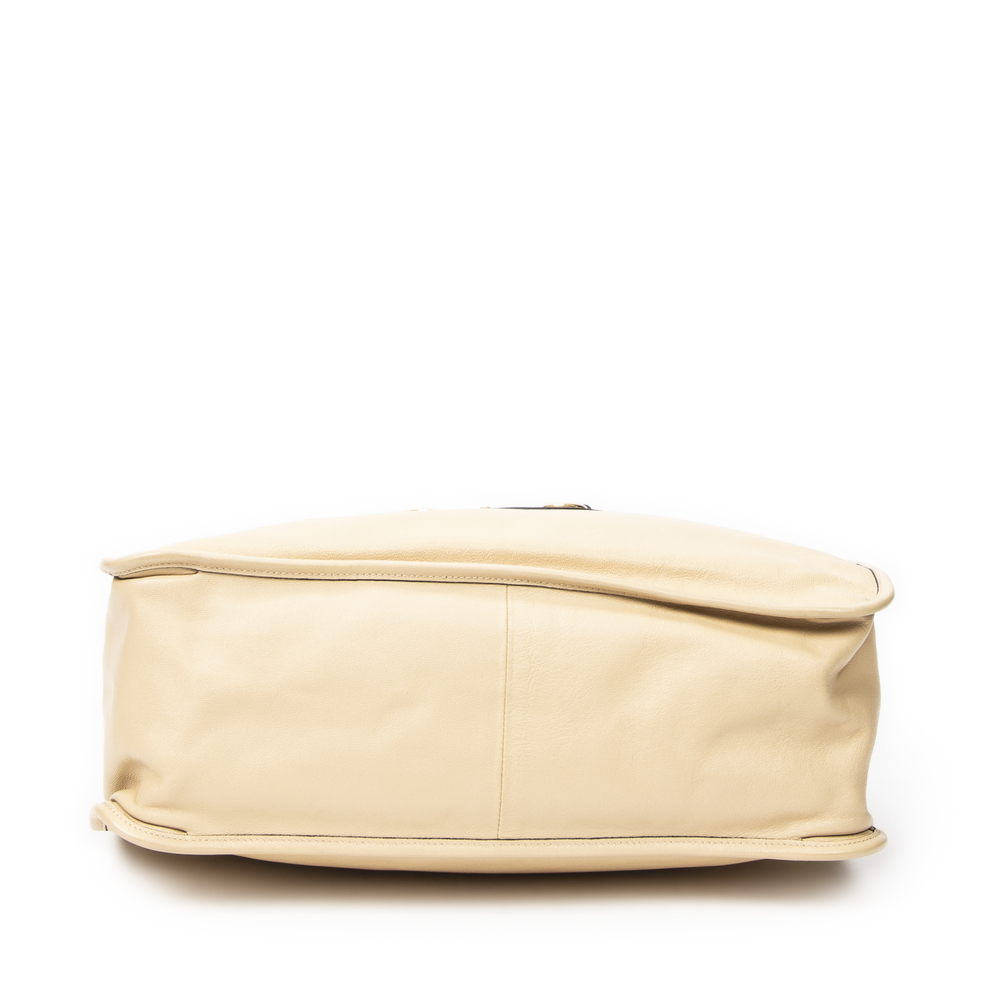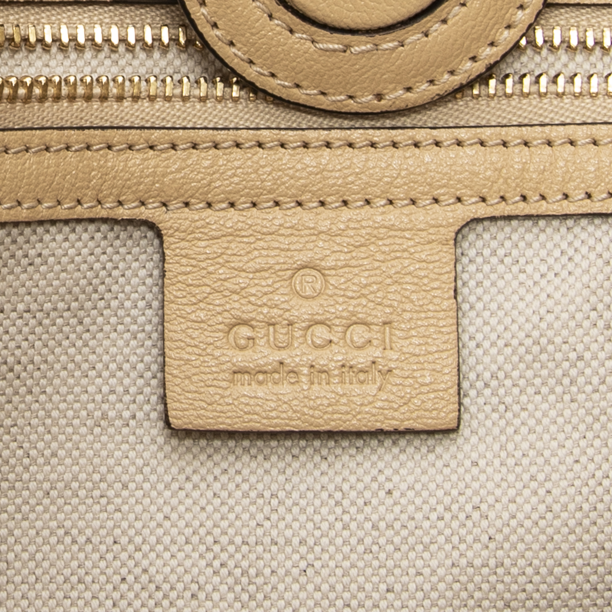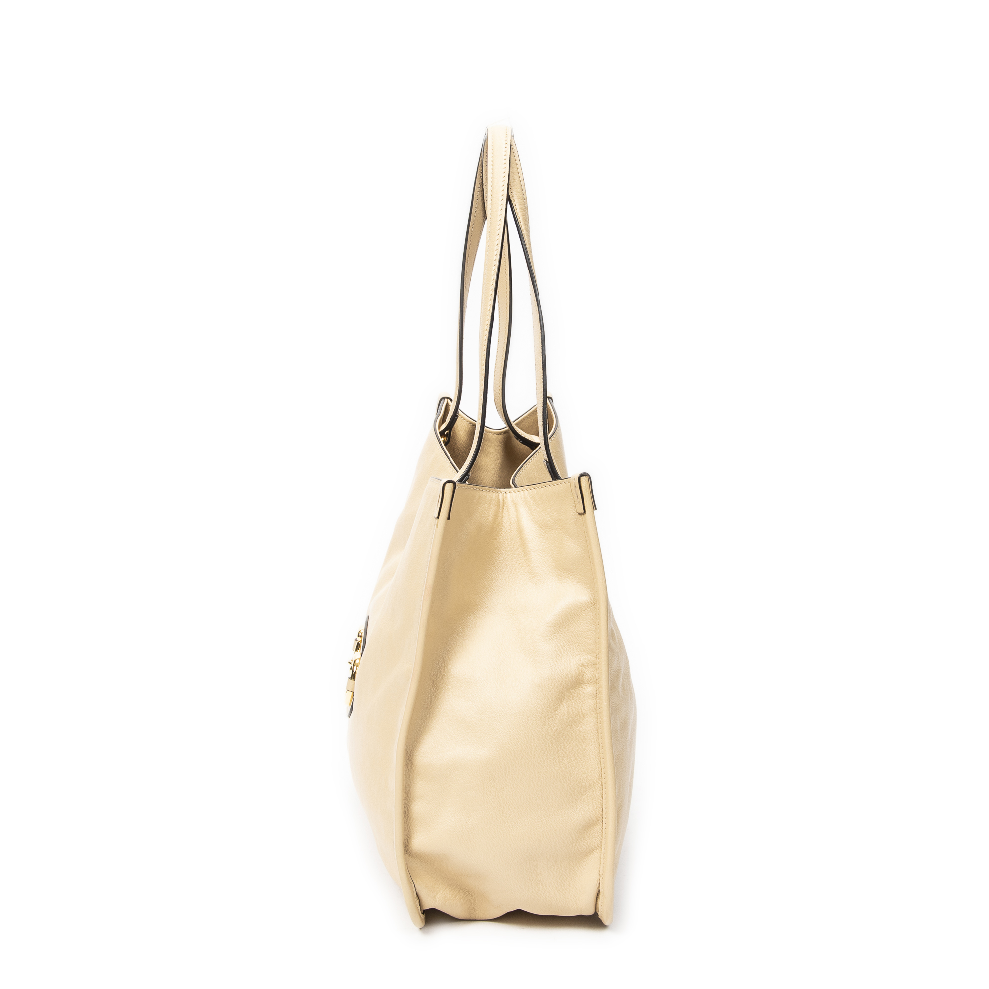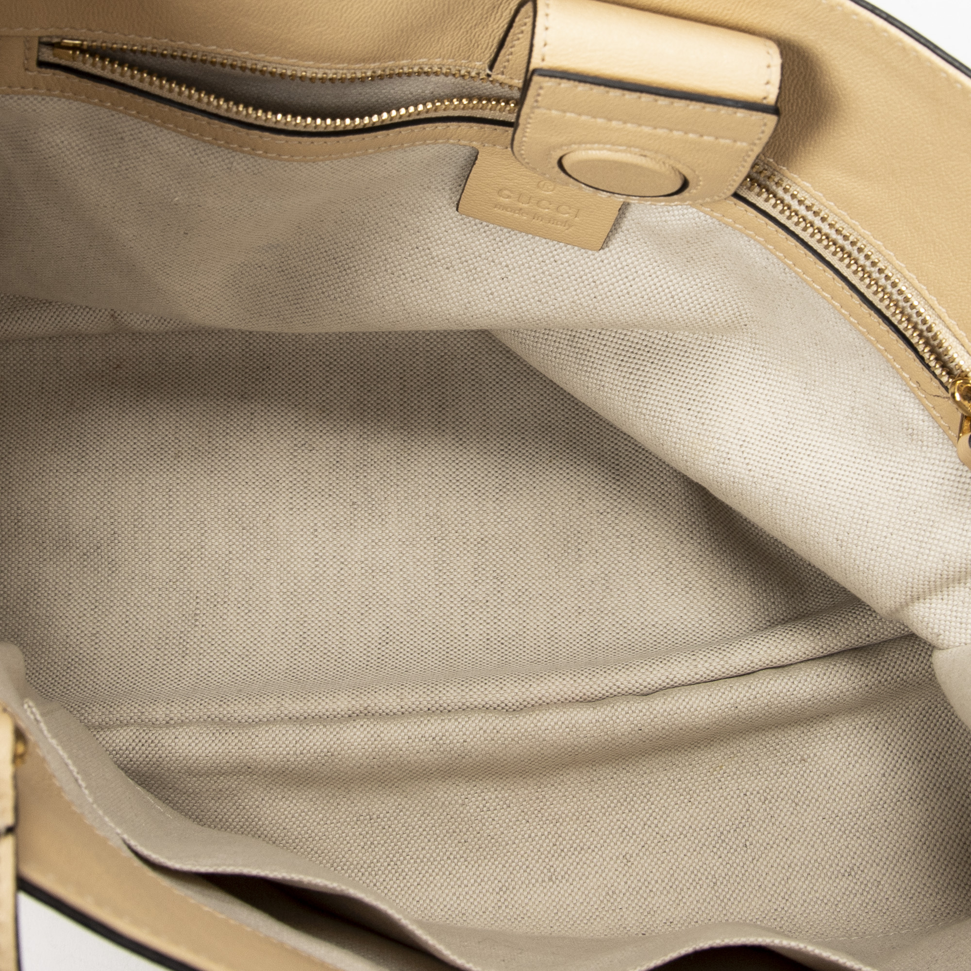 Gucci Shoulder Bag Large Horsebit 1955 Tote in Beige Calfskin Leather and Gold hardware. The product is in Excellent Condition (A).