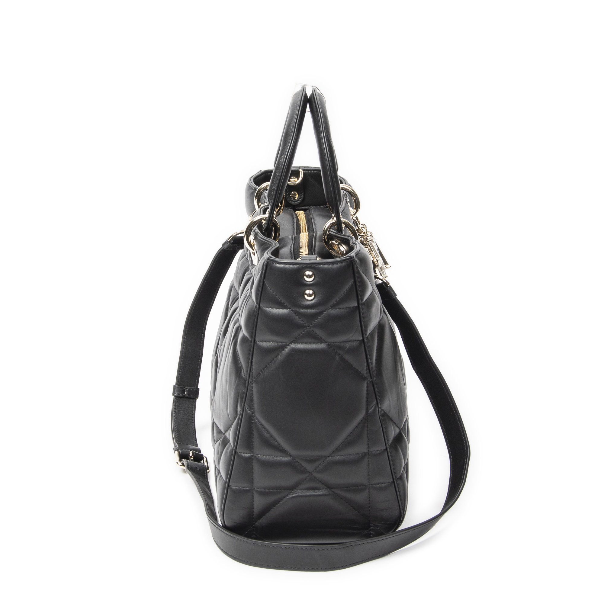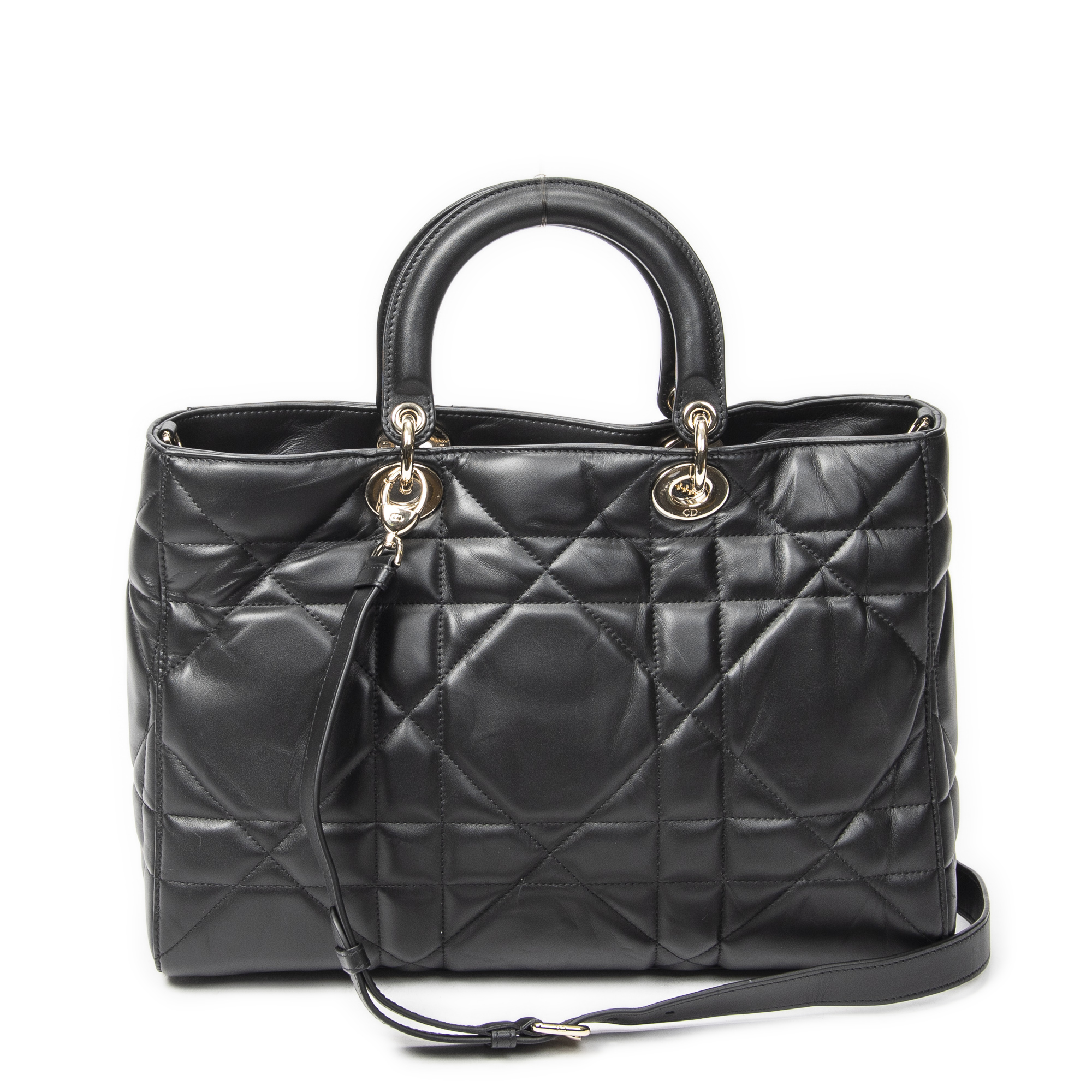 Dior Shoulder Bag Large Lady D-Sire in Black Macrocannage Leather and Gold hardware. The product is in Excellent Condition (A).