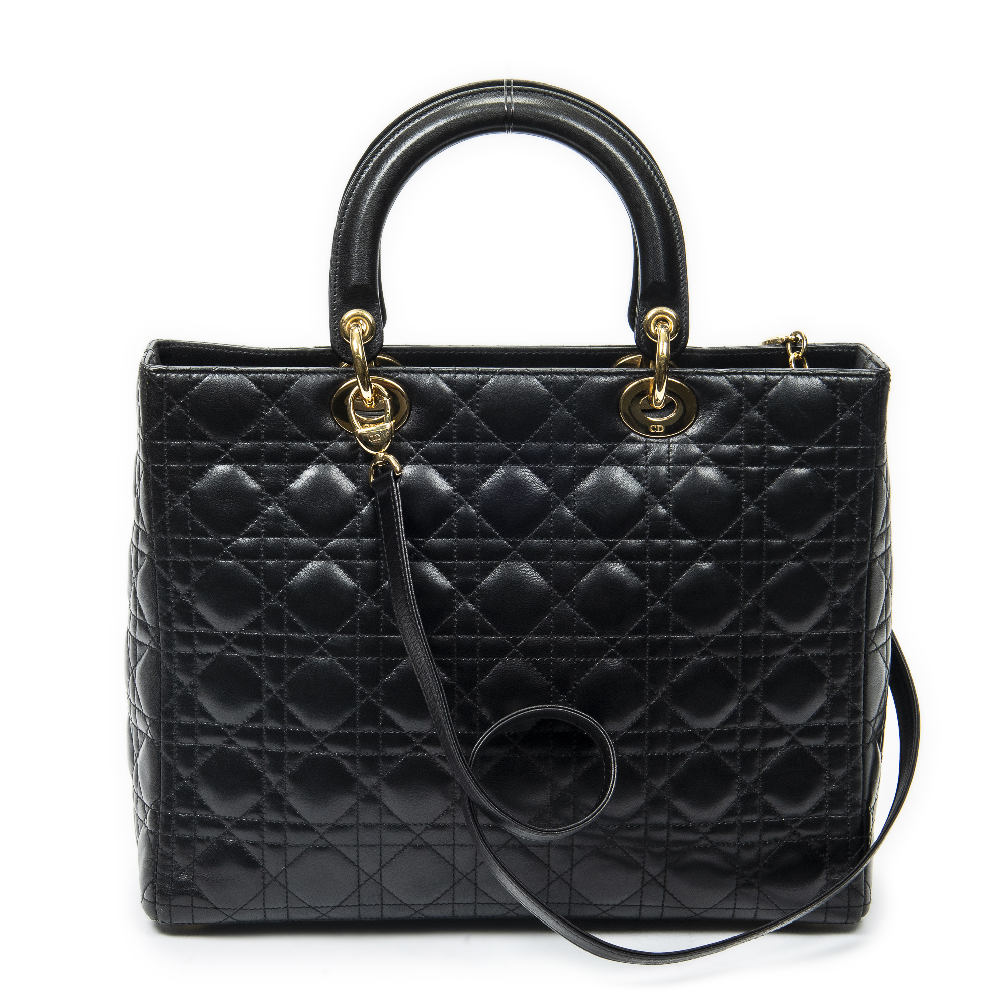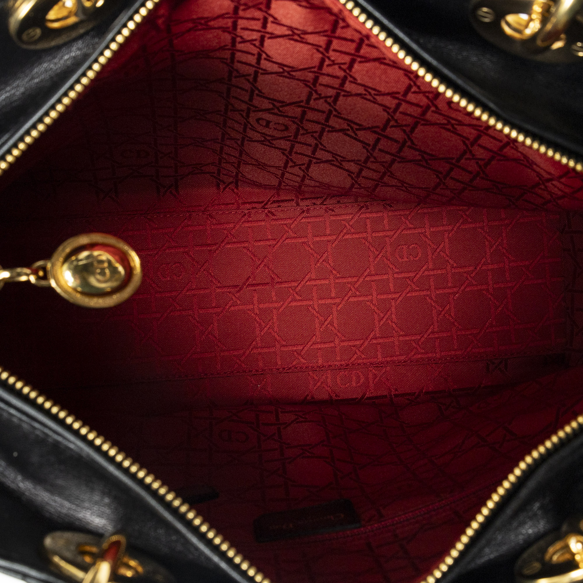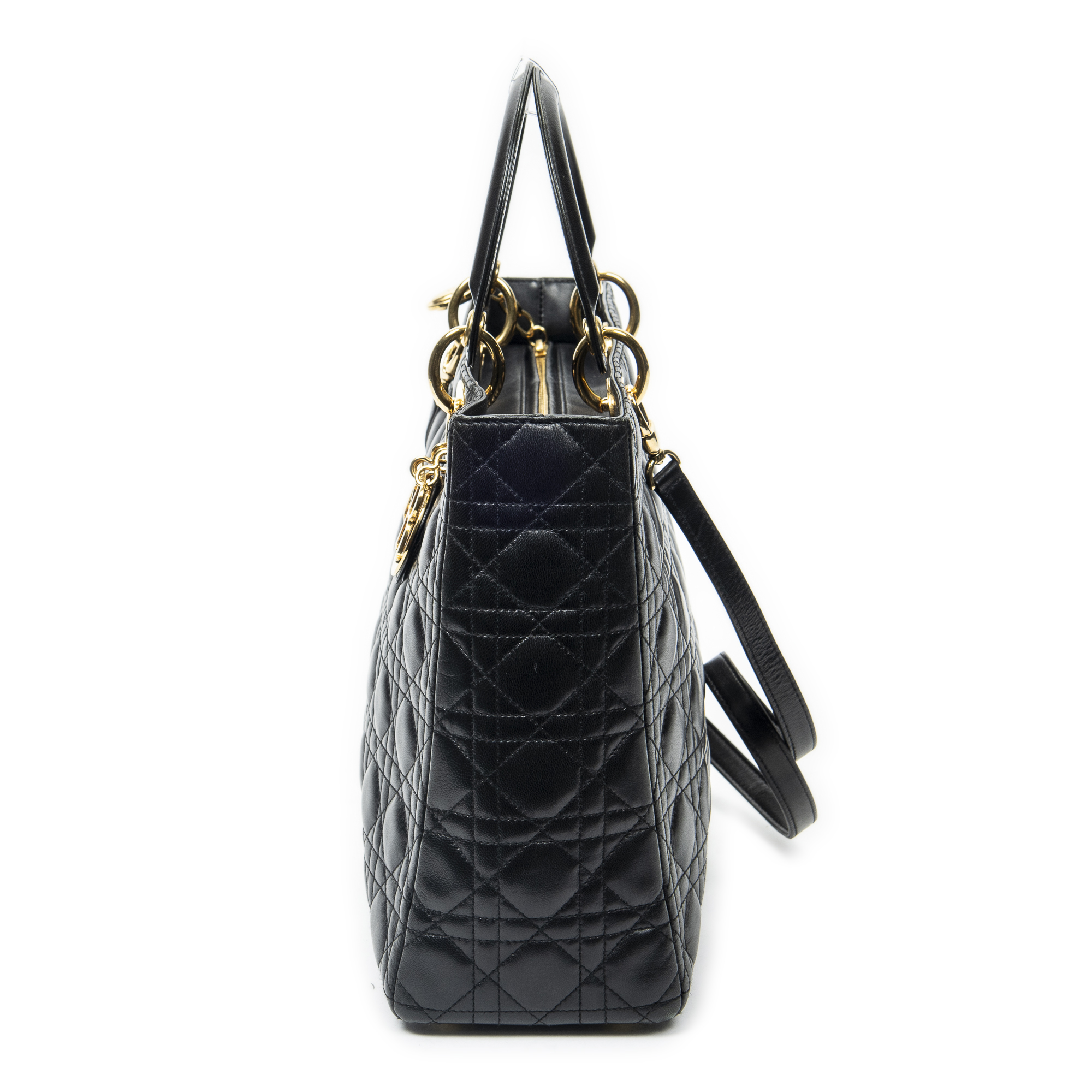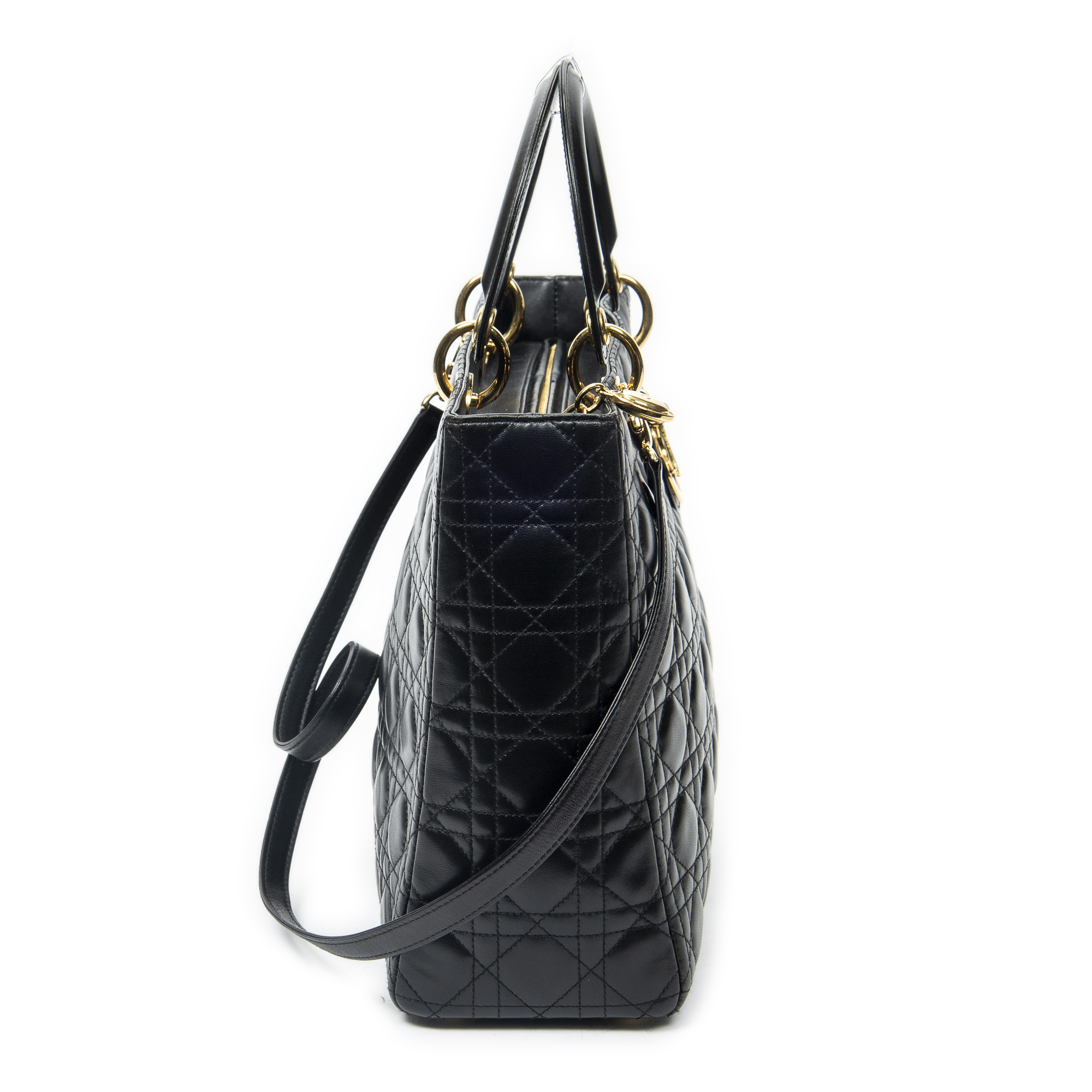 Dior Shoulder Bag Large Lady Dior Zip in Black Cannage Lambskin Leather and Gold hardware. The product is in Excellent Condition (A).