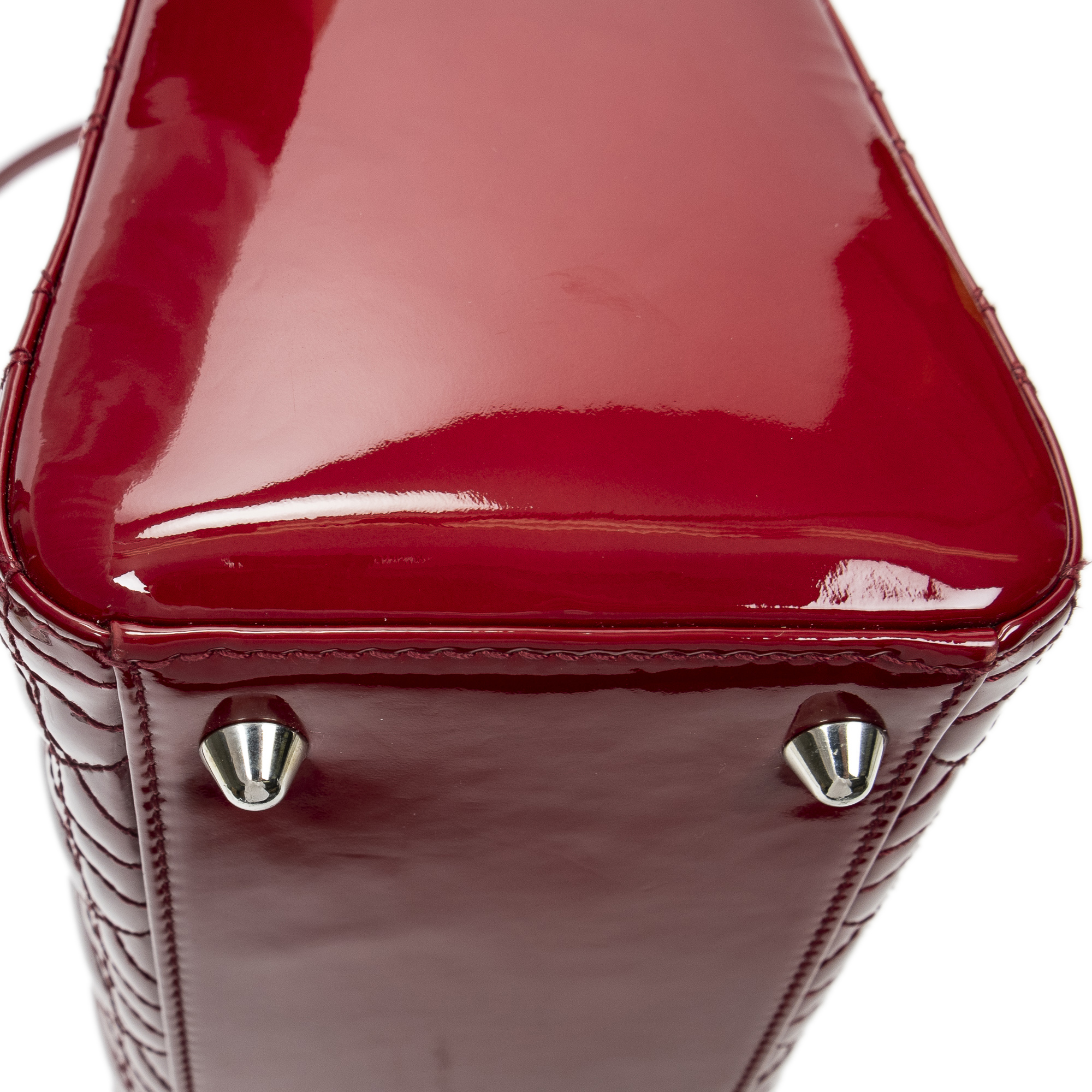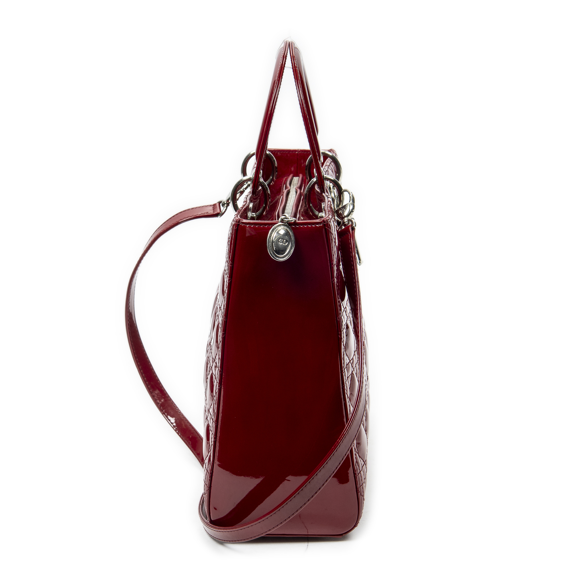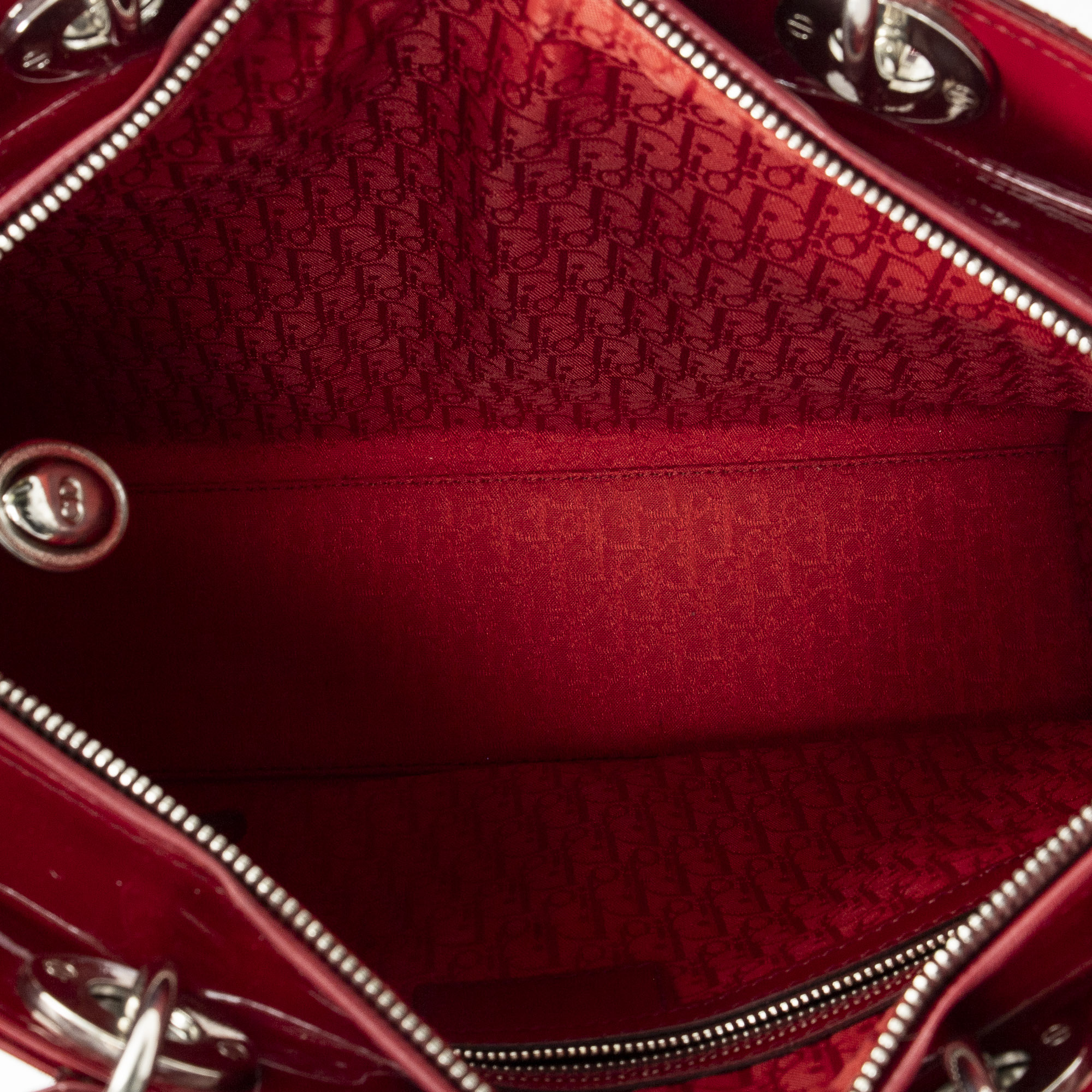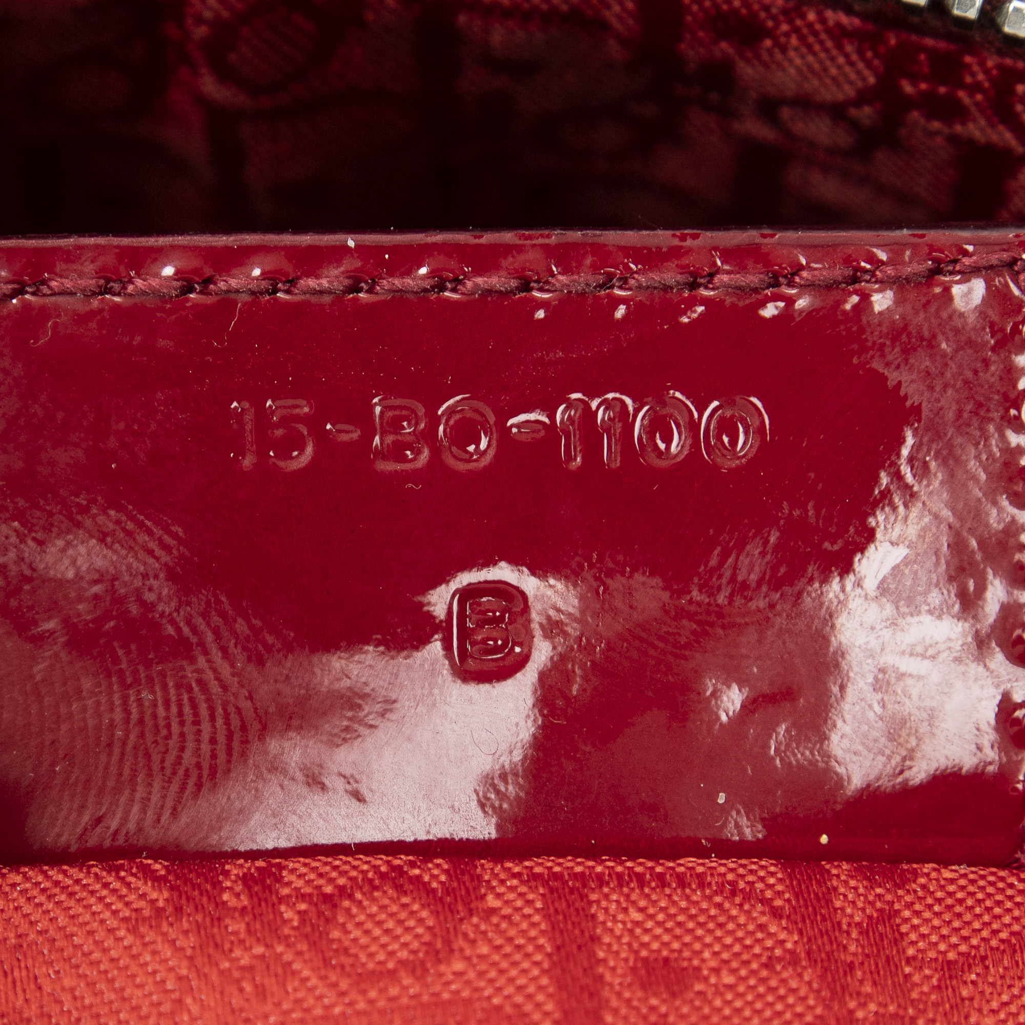 Dior Shoulder Bag Large Lady Dior Zip in Red Cannage Patent Leather and Silver hardware. The product is in Excellent Condition (A).