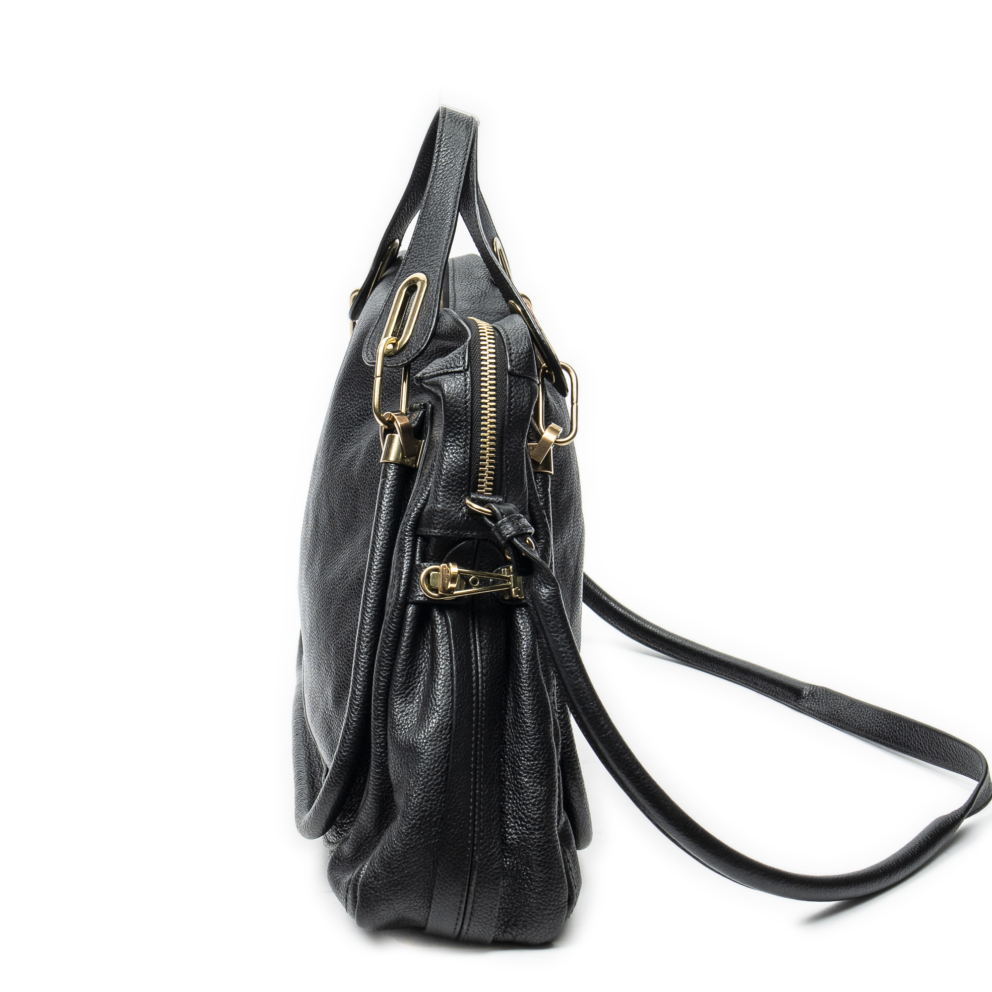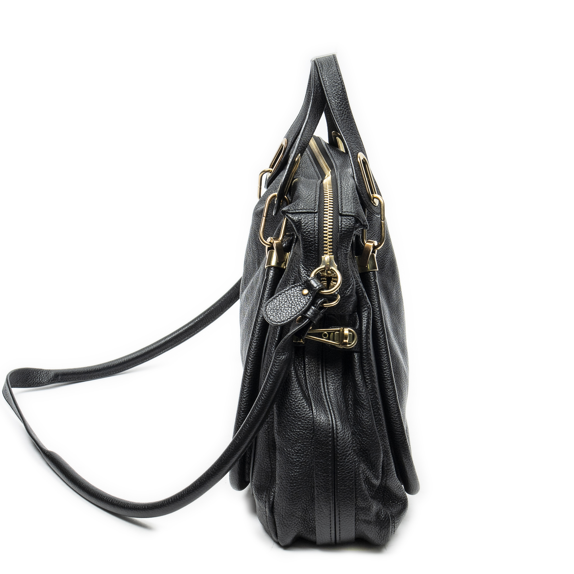Chloé Shoulder Bag Large Paraty in Black Grained Calfskin Leather and Gold hardware. The product is in Excellent Condition (A).