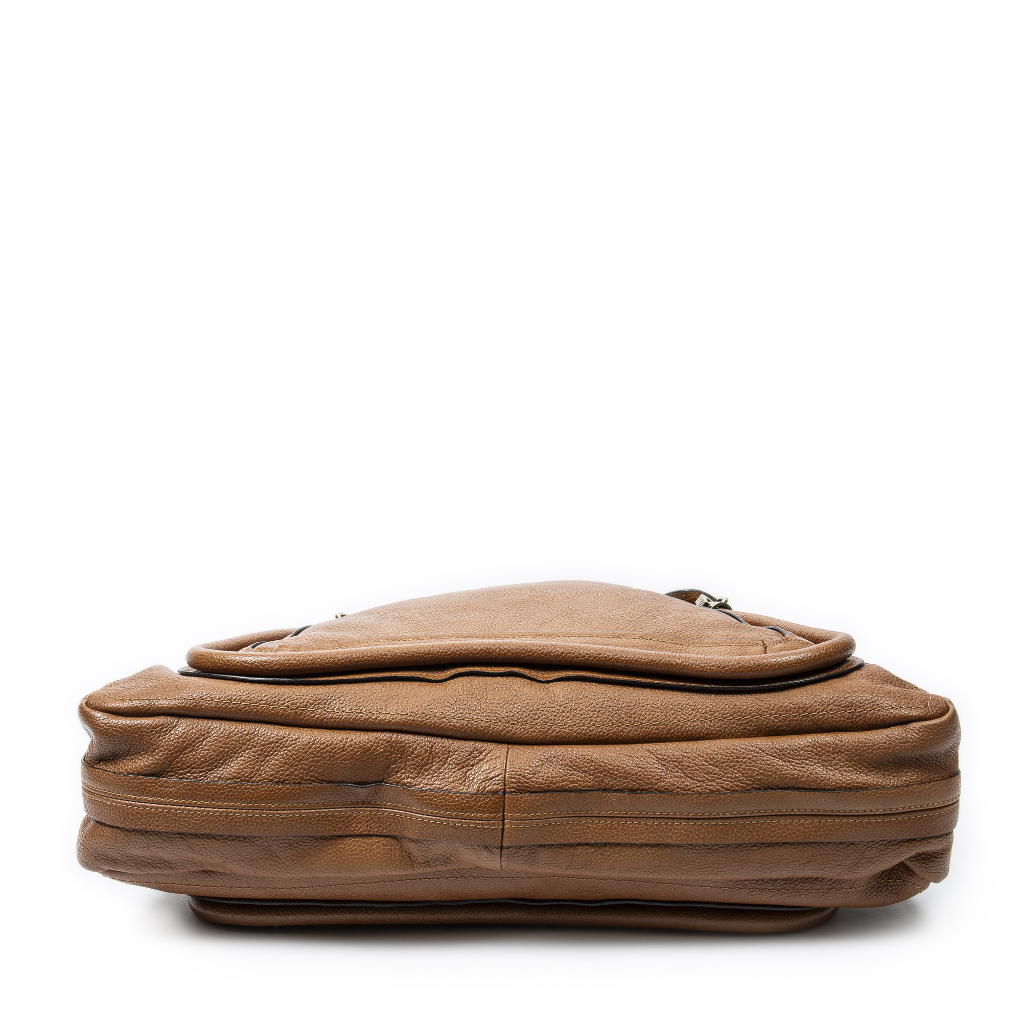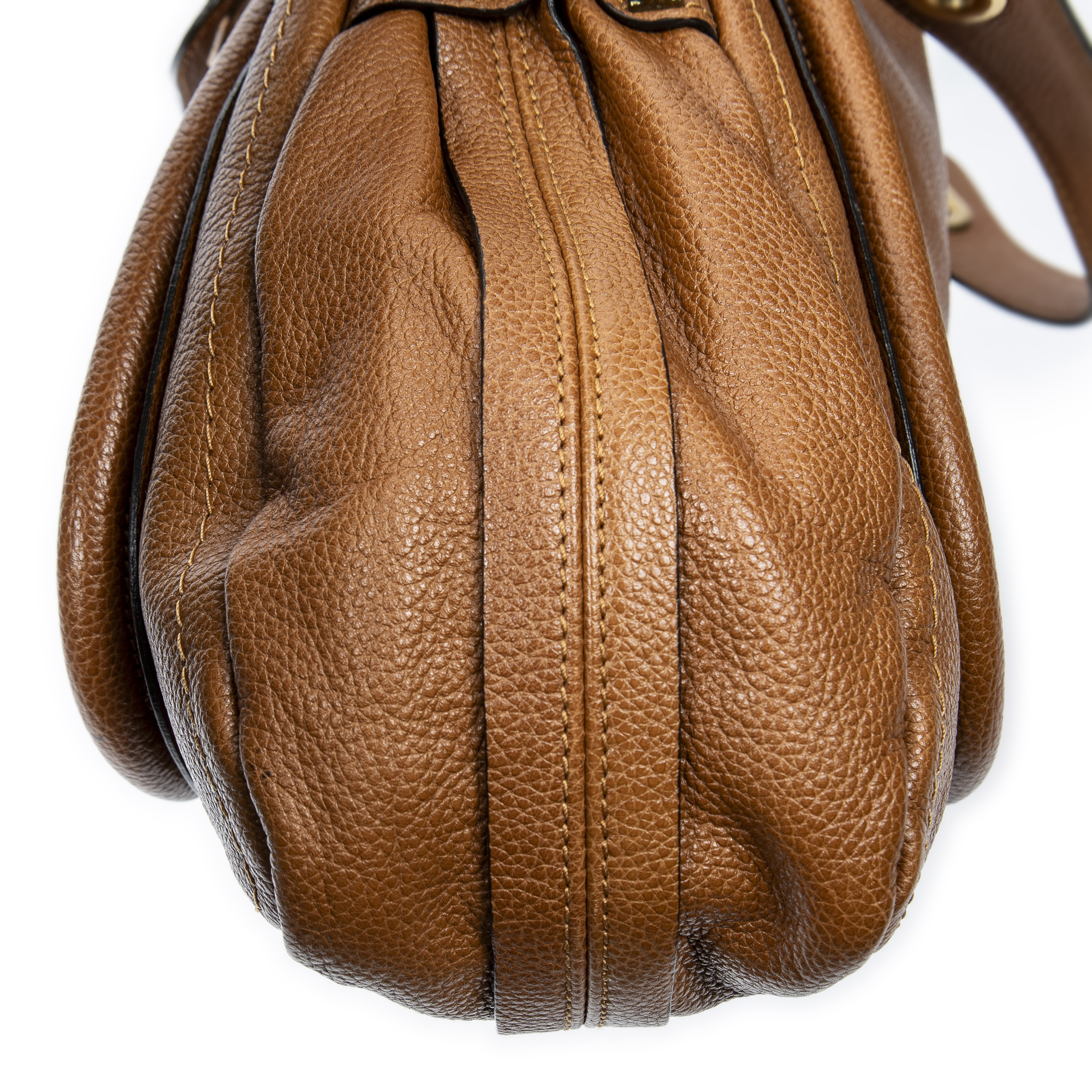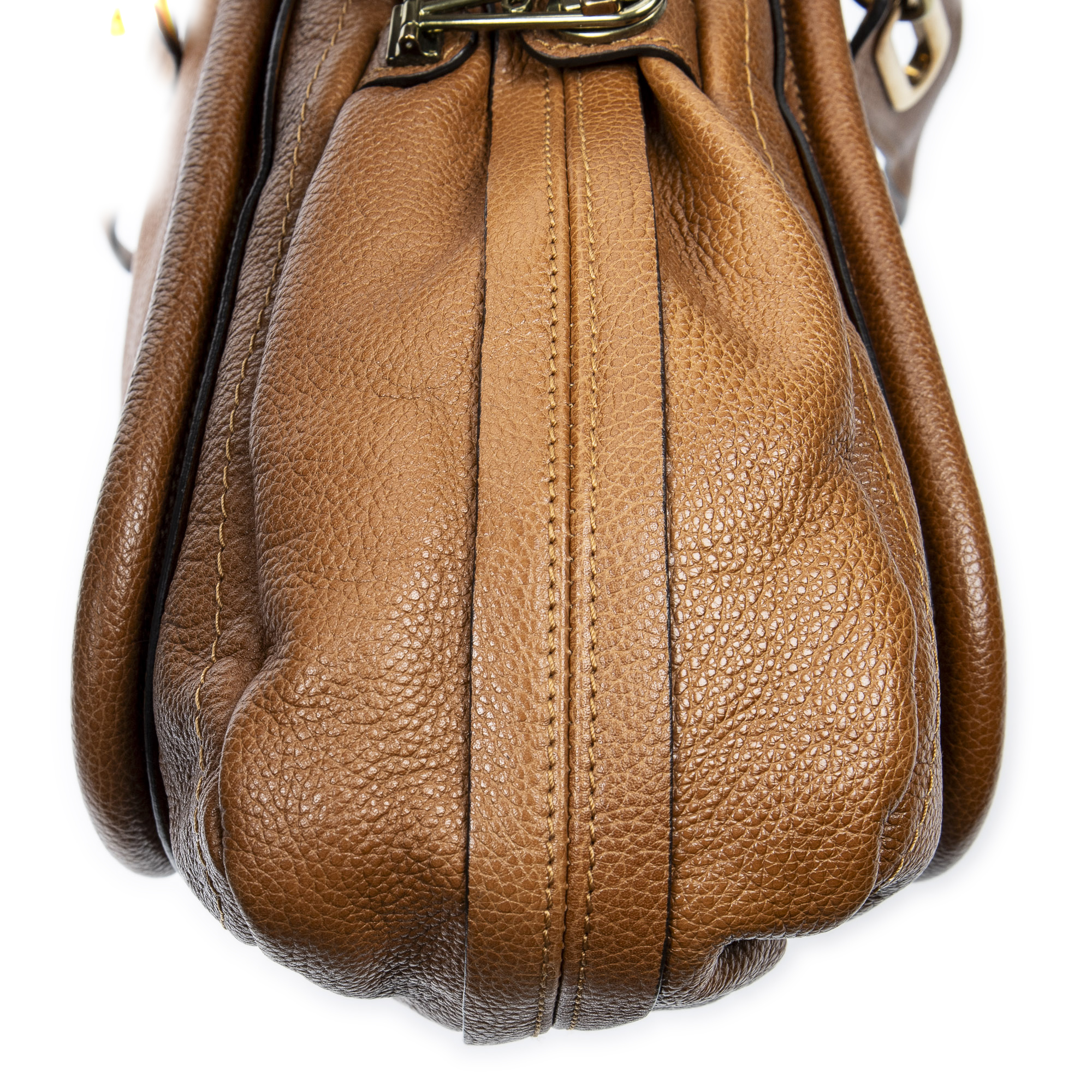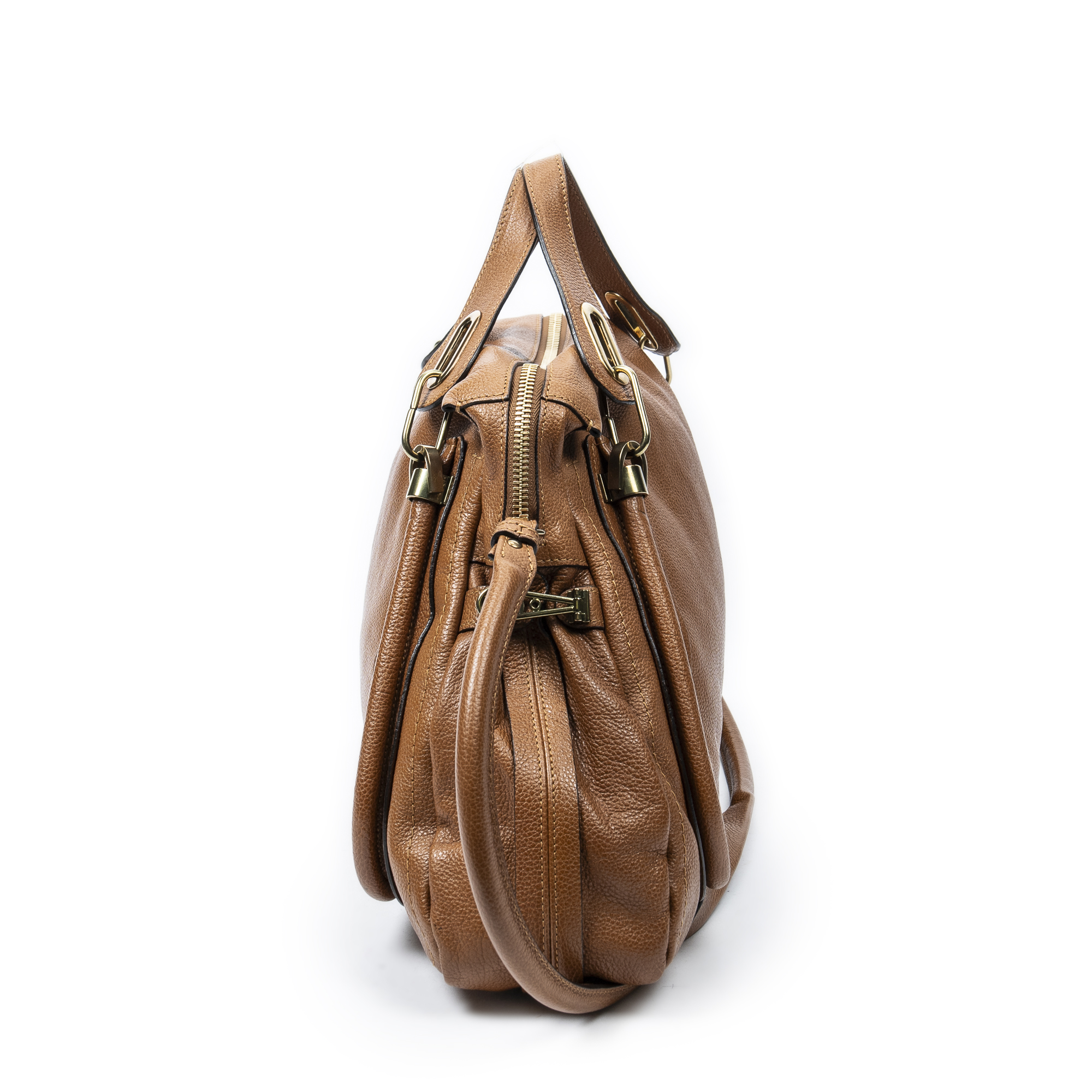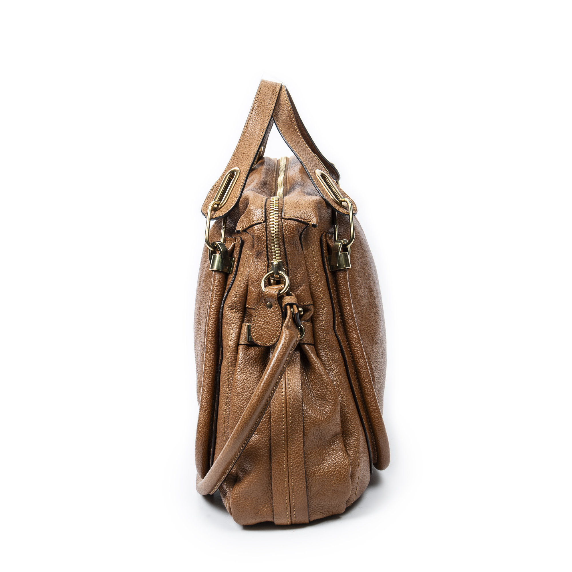 Chloé Shoulder Bag Large Paraty in Brown Grained Calfskin Leather and Gold hardware. The product is in Excellent Condition (A).
