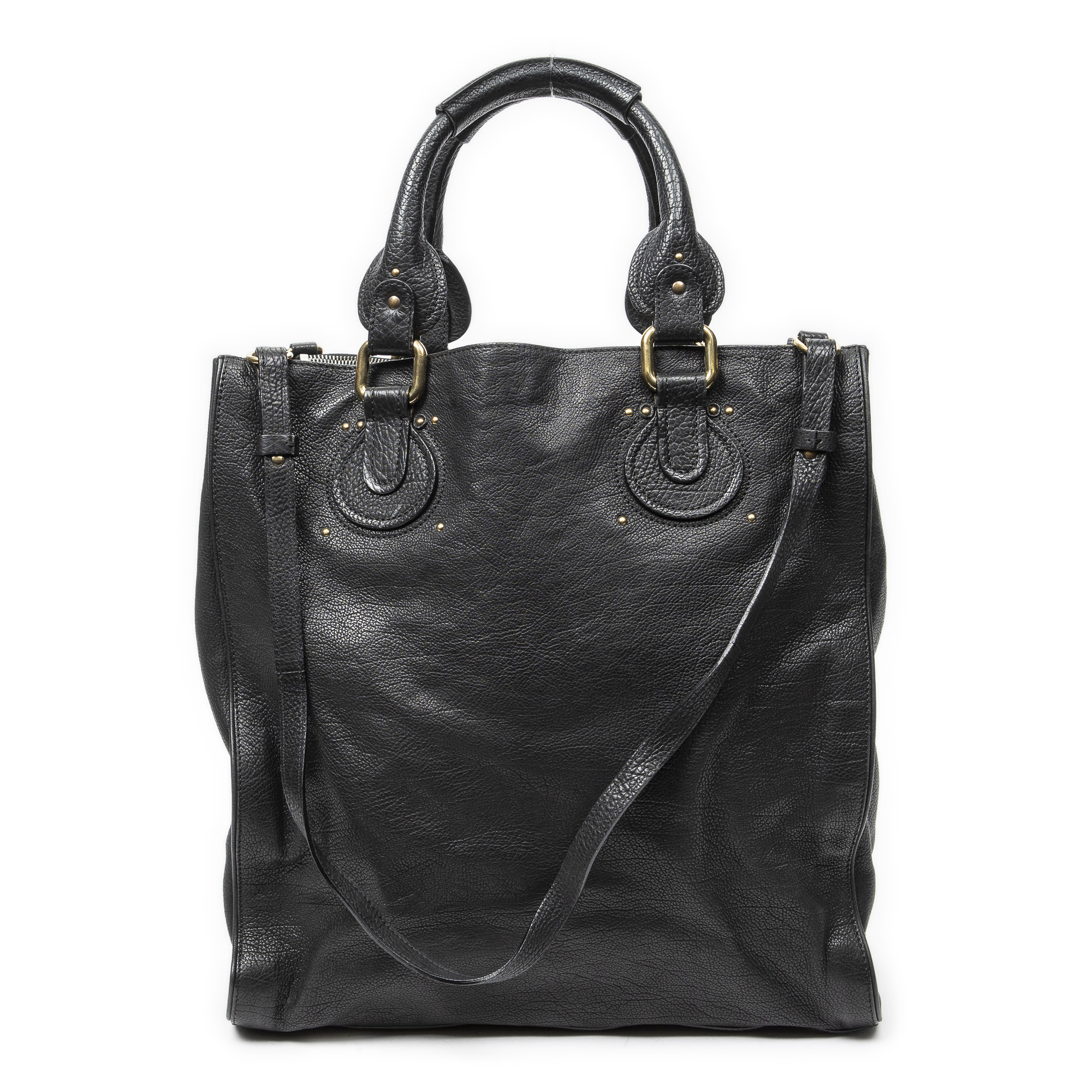 Chloé Shoulder Bag Large Pure Paddington Tote in Black Grained Calfskin Leather and Gold/Silver hardware. The product is in Excellent Condition (A).