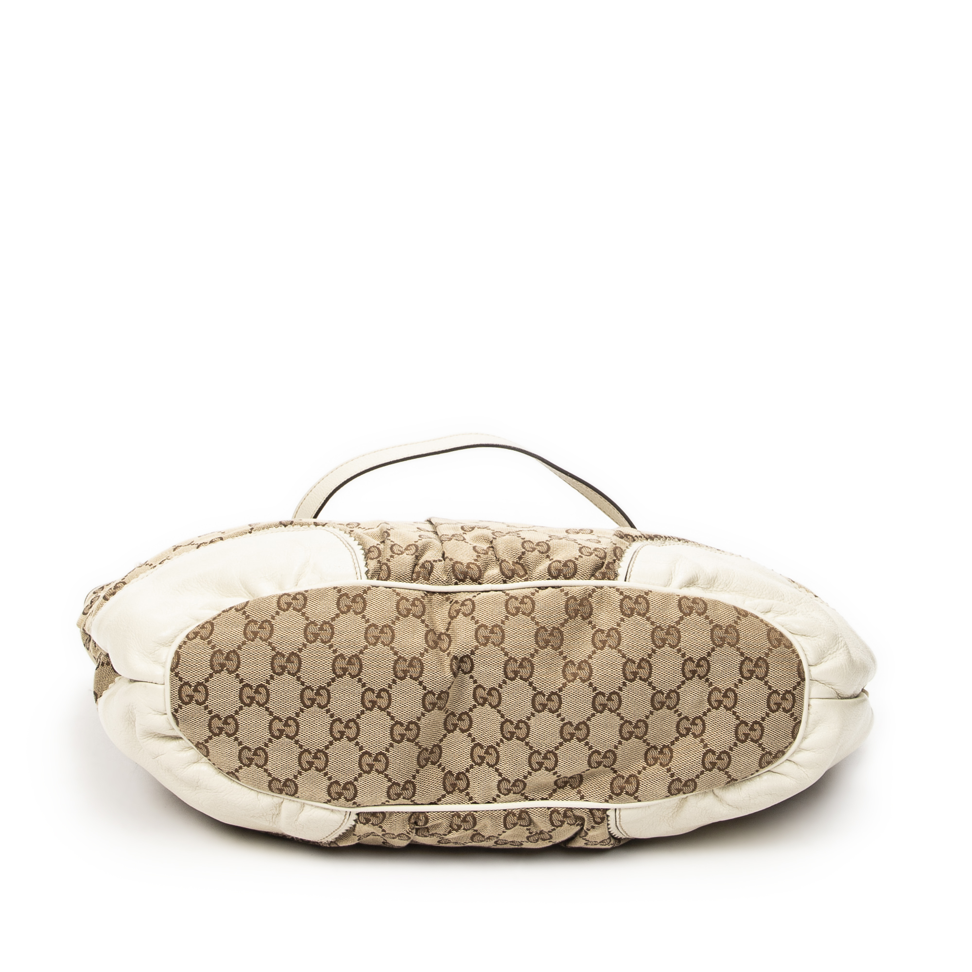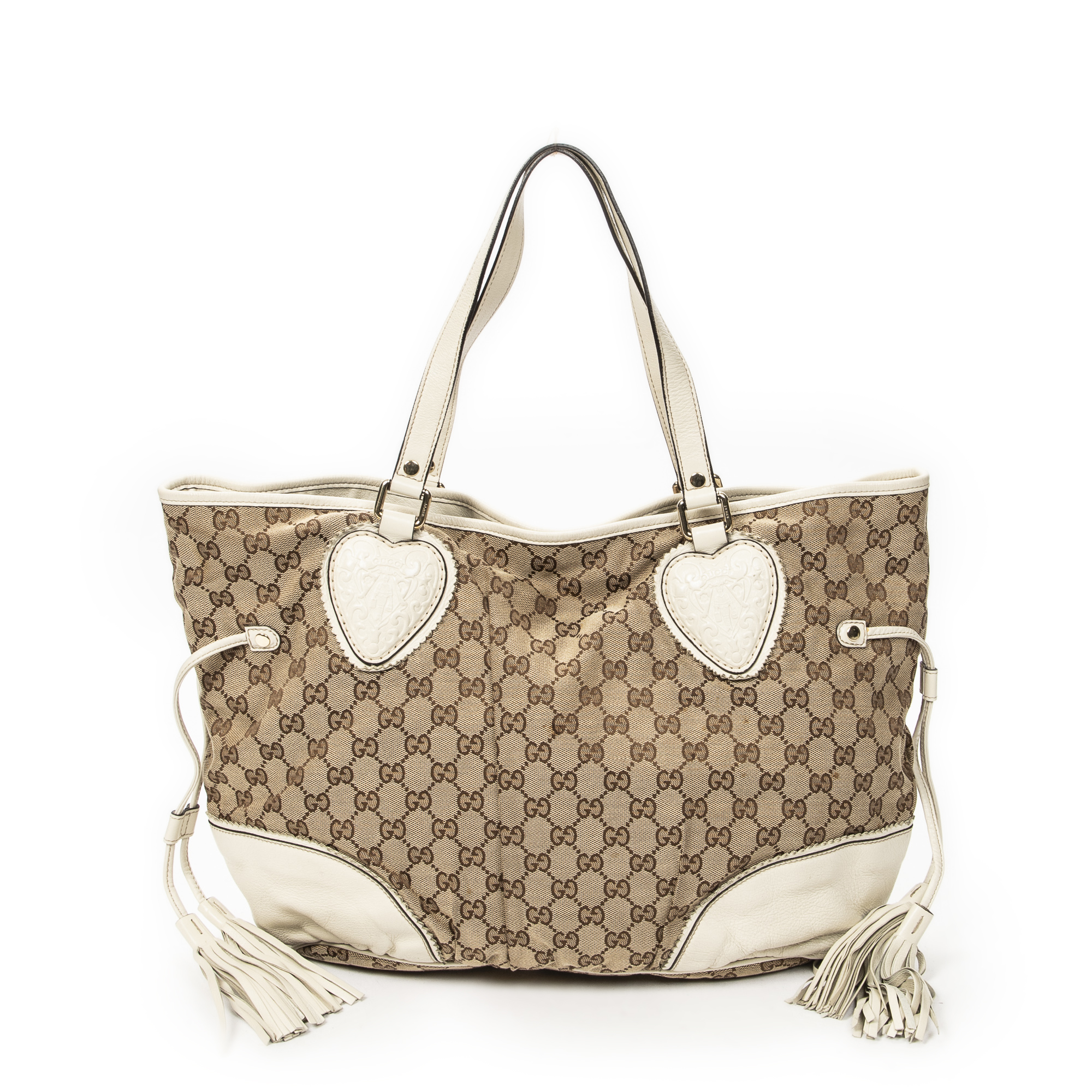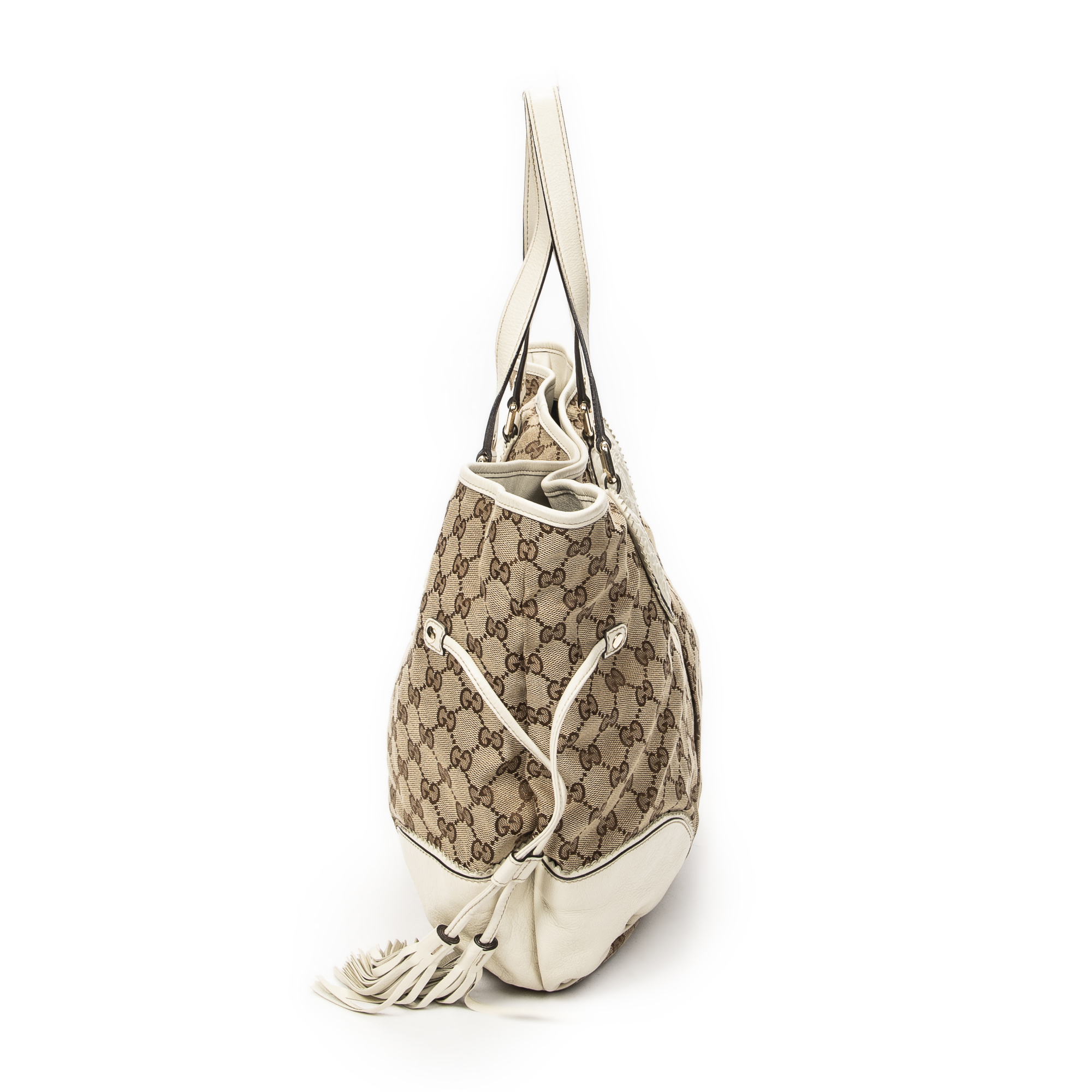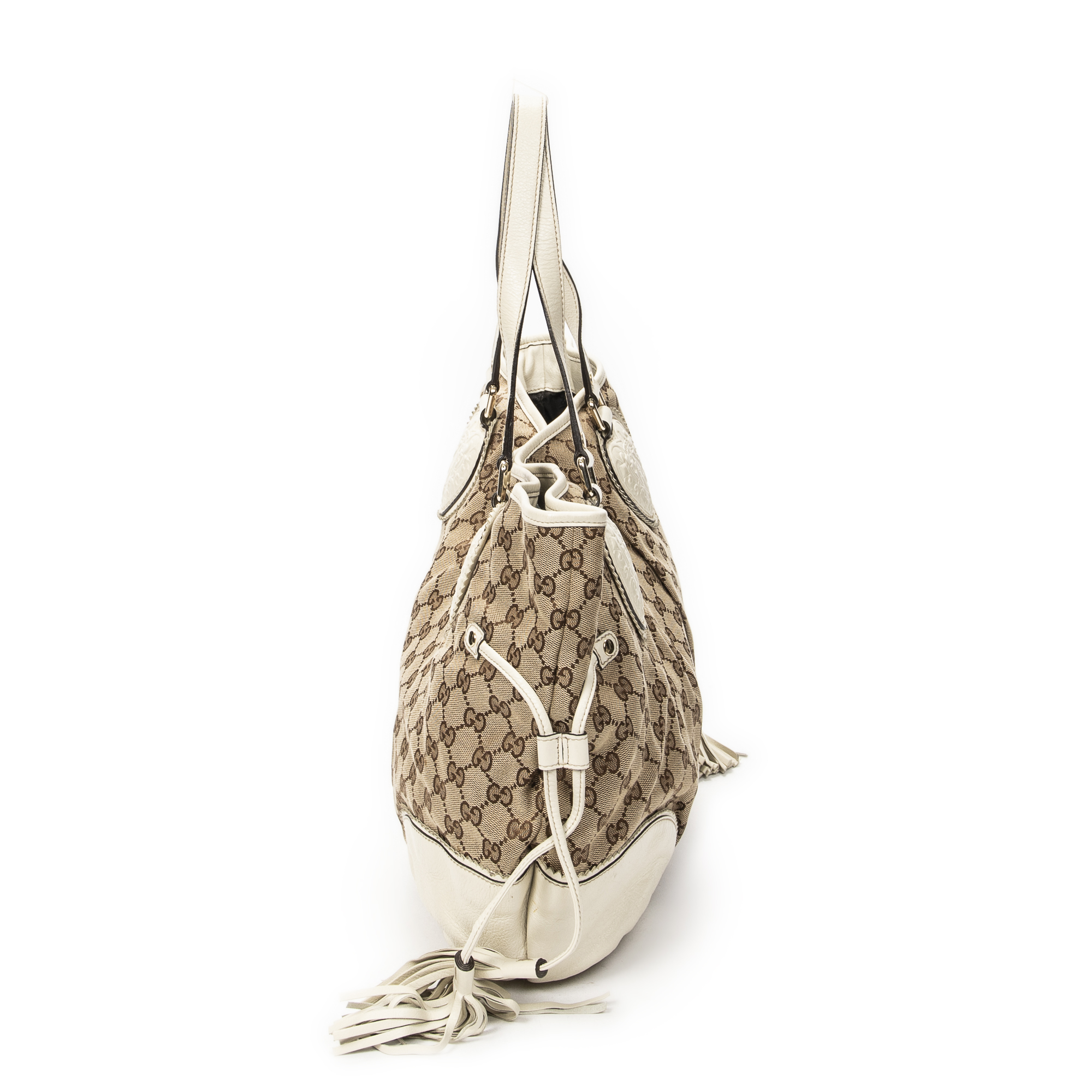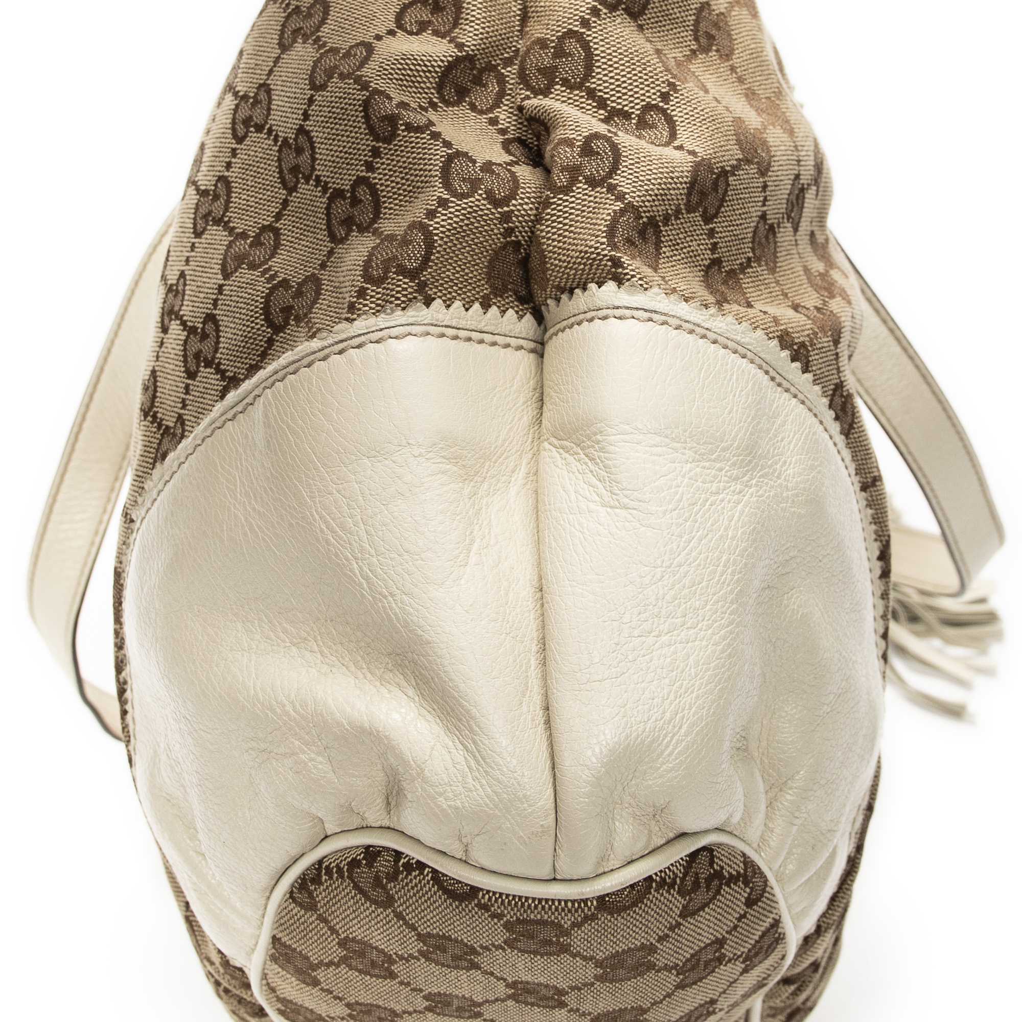Gucci Shoulder Bag Large Tribeca Tassel Tote in Beige/Ivory Monogrammed Canvas and Gold hardware. The product is in Excellent Condition (A).