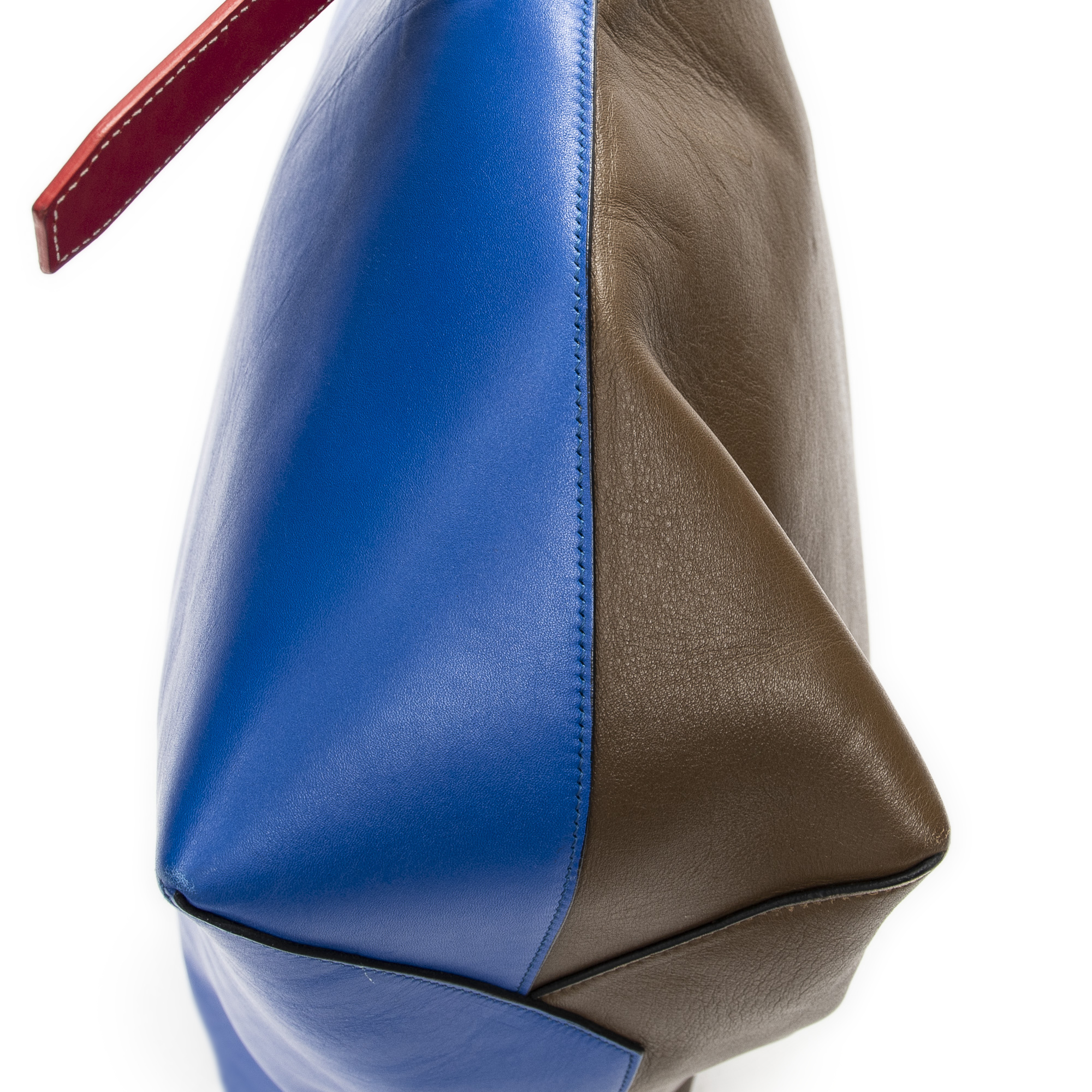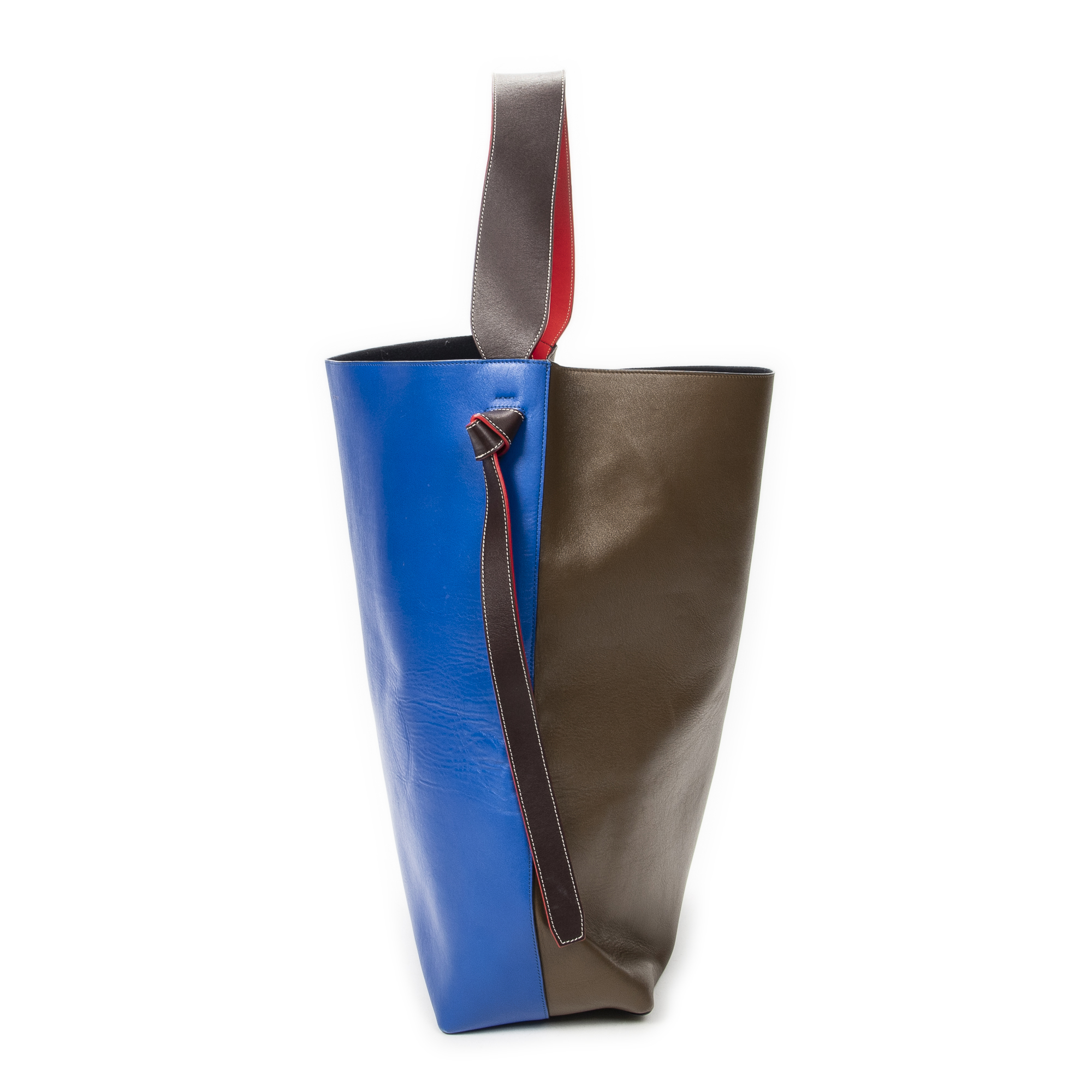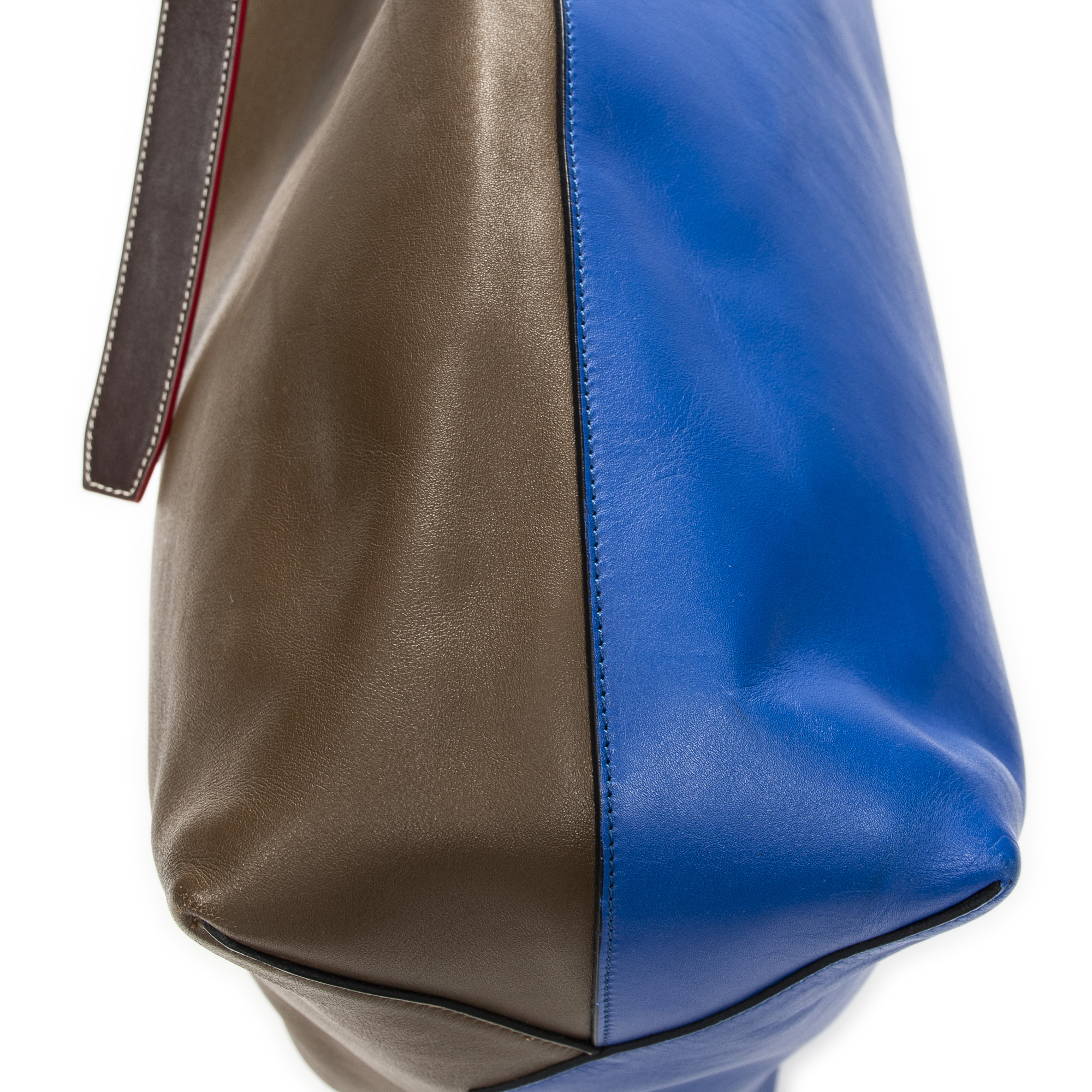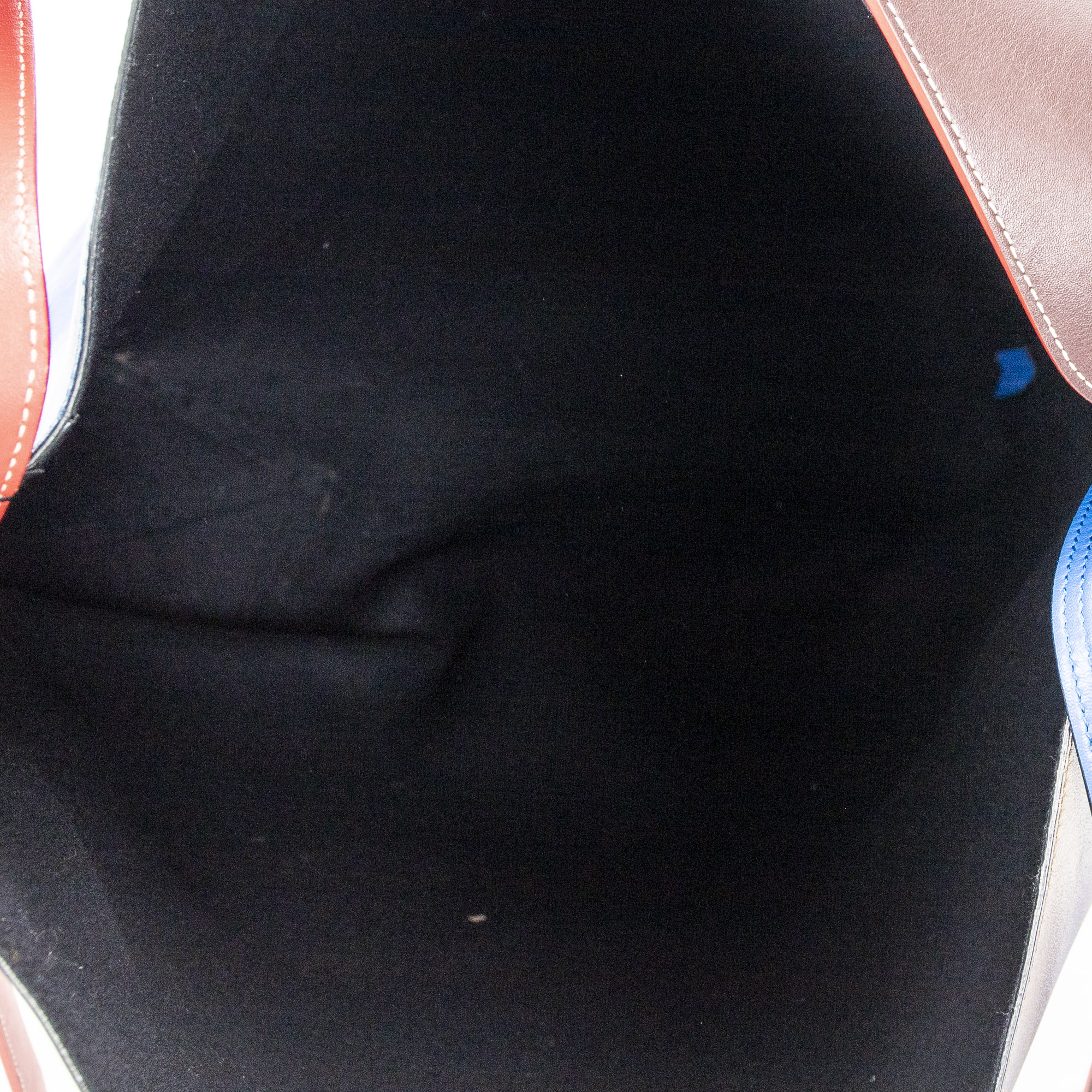Celine Shoulder Bag Large Twisted Cabas Tote in Blue/Brown/Red Calfskin Leather and Gold hardware. The product is in Excellent Condition (A).