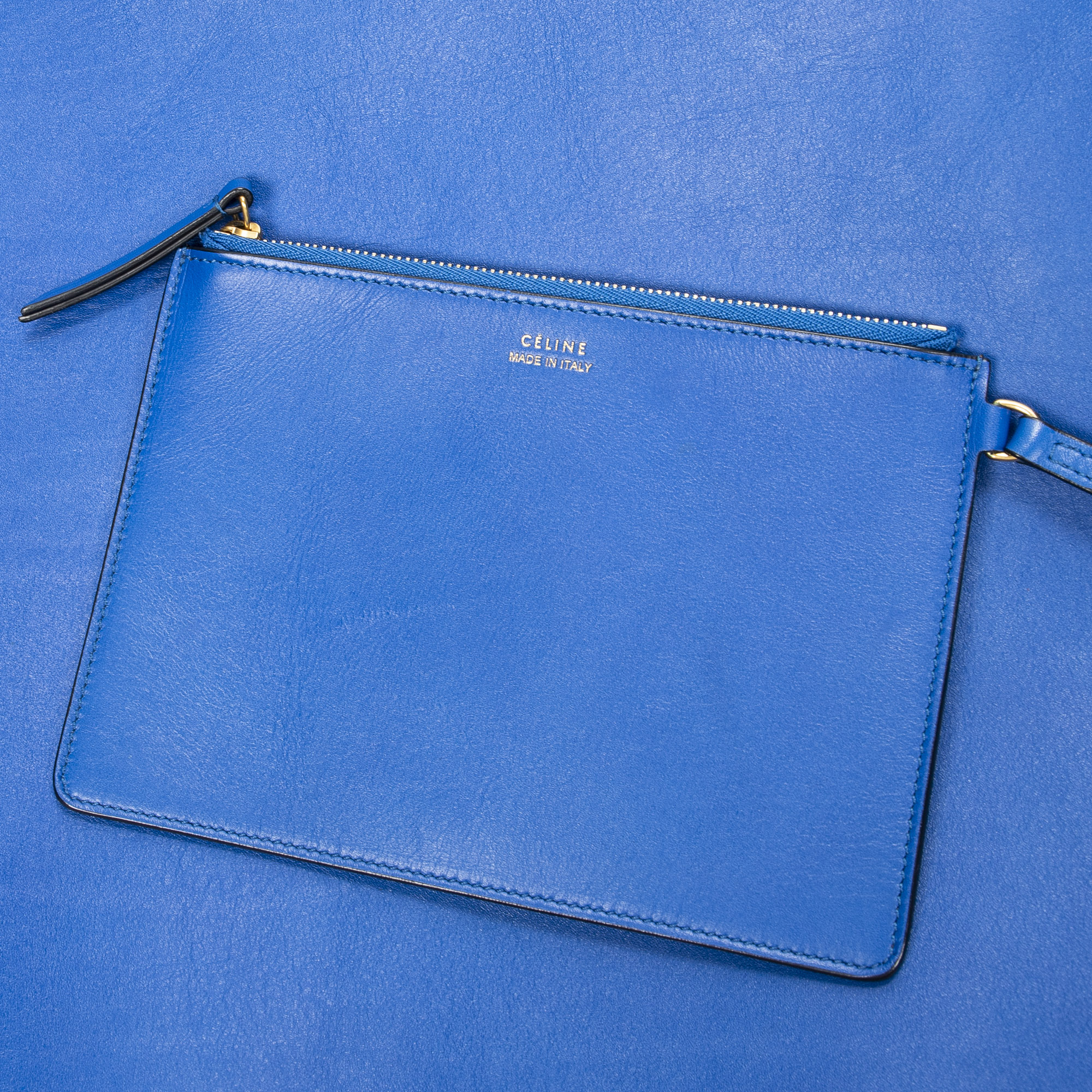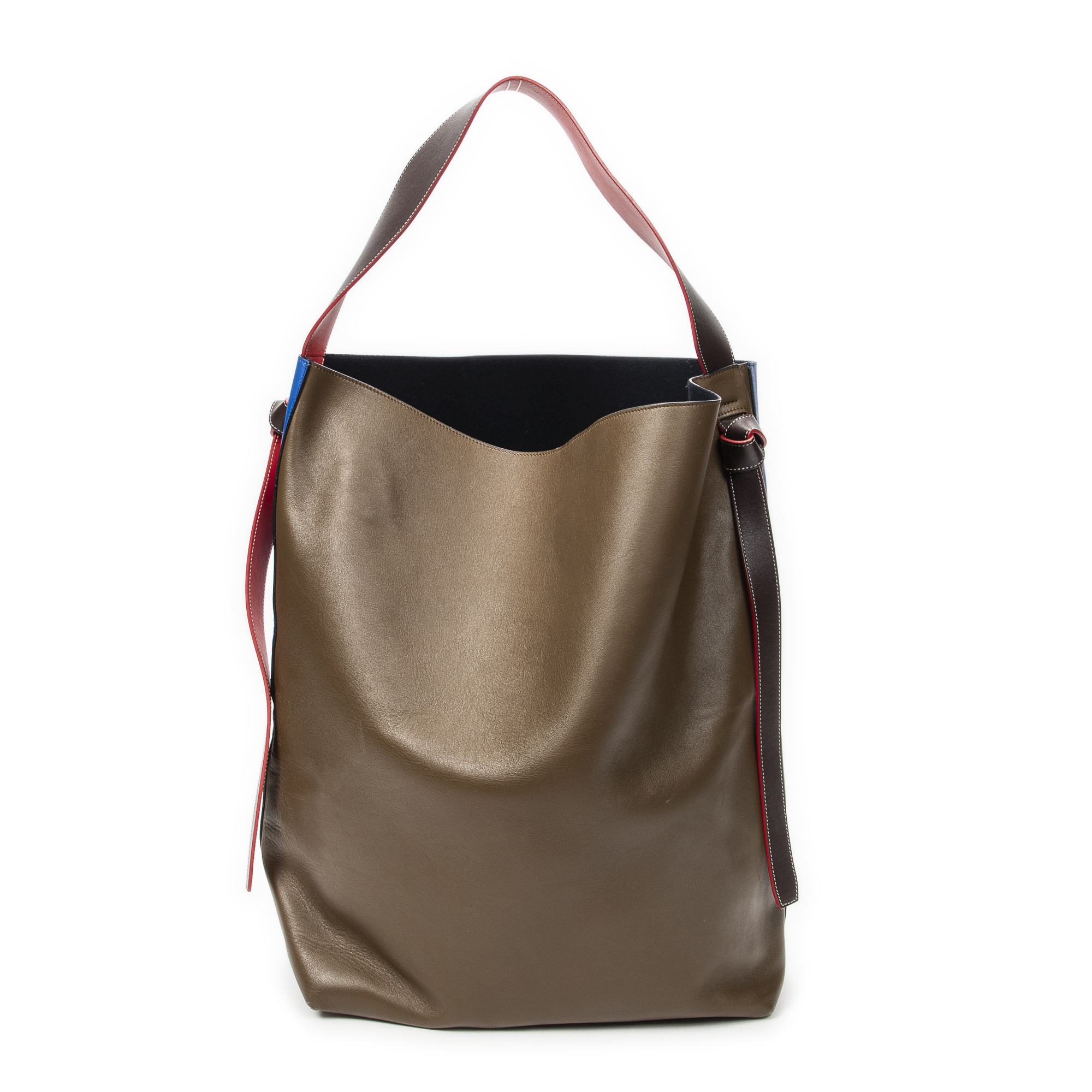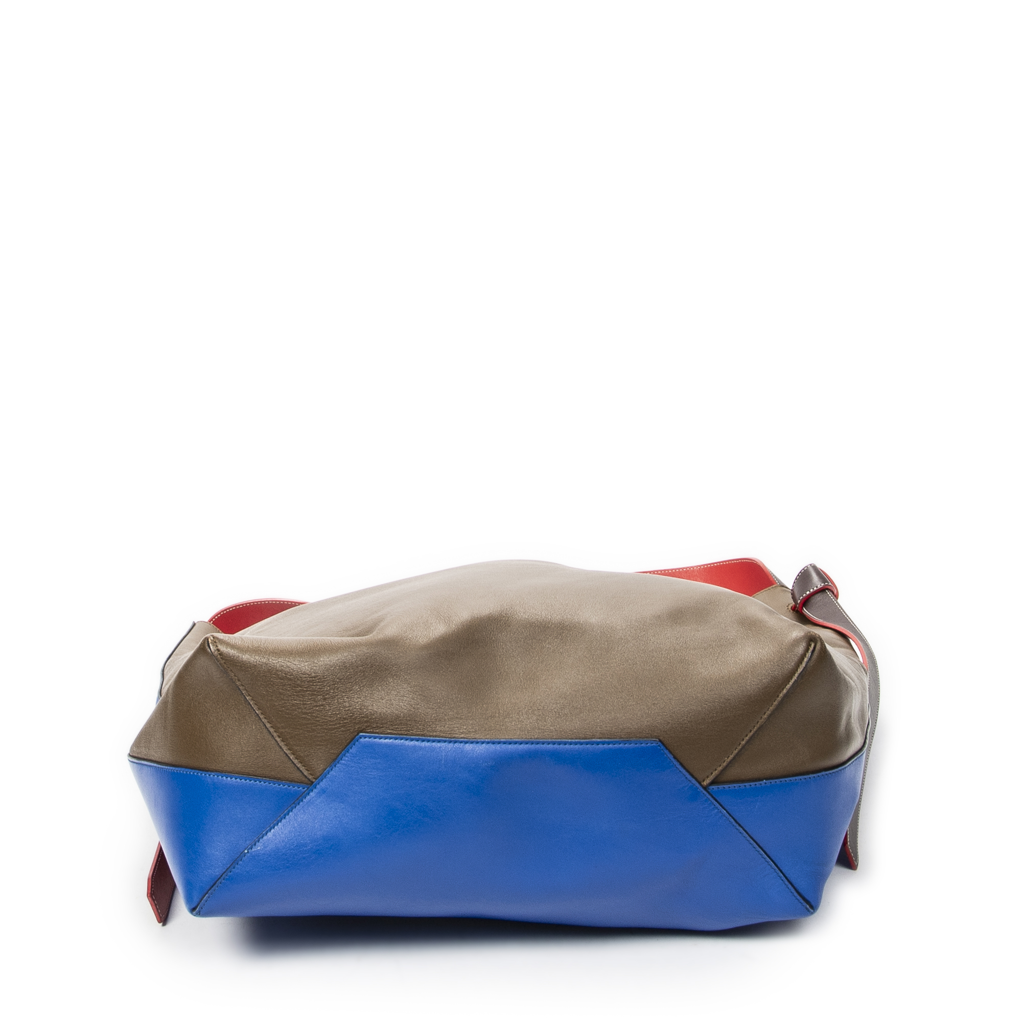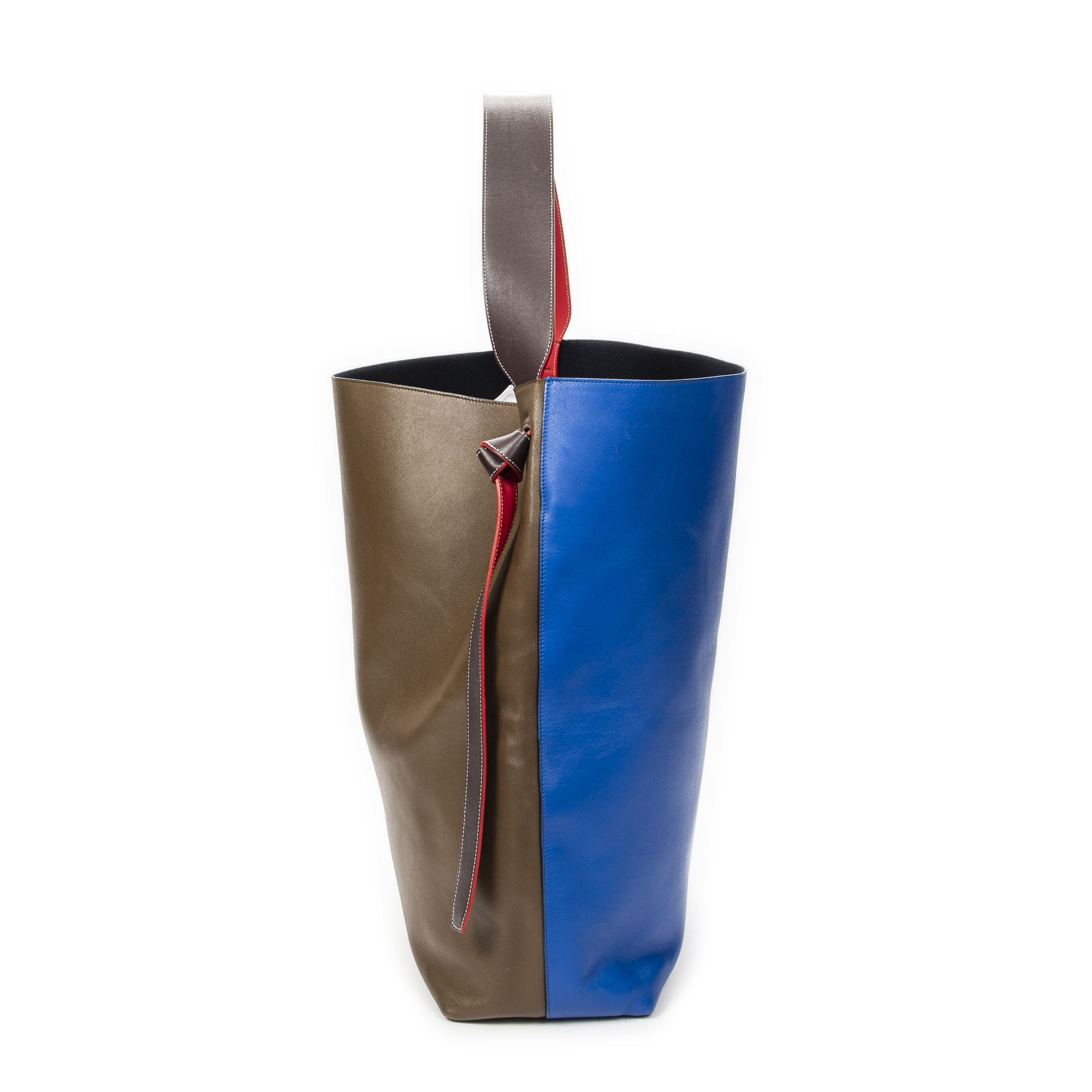 Celine Shoulder Bag Large Twisted Cabas Tote in Blue/Brown/Red Calfskin Leather and Gold hardware. The product is in Excellent Condition (A).
