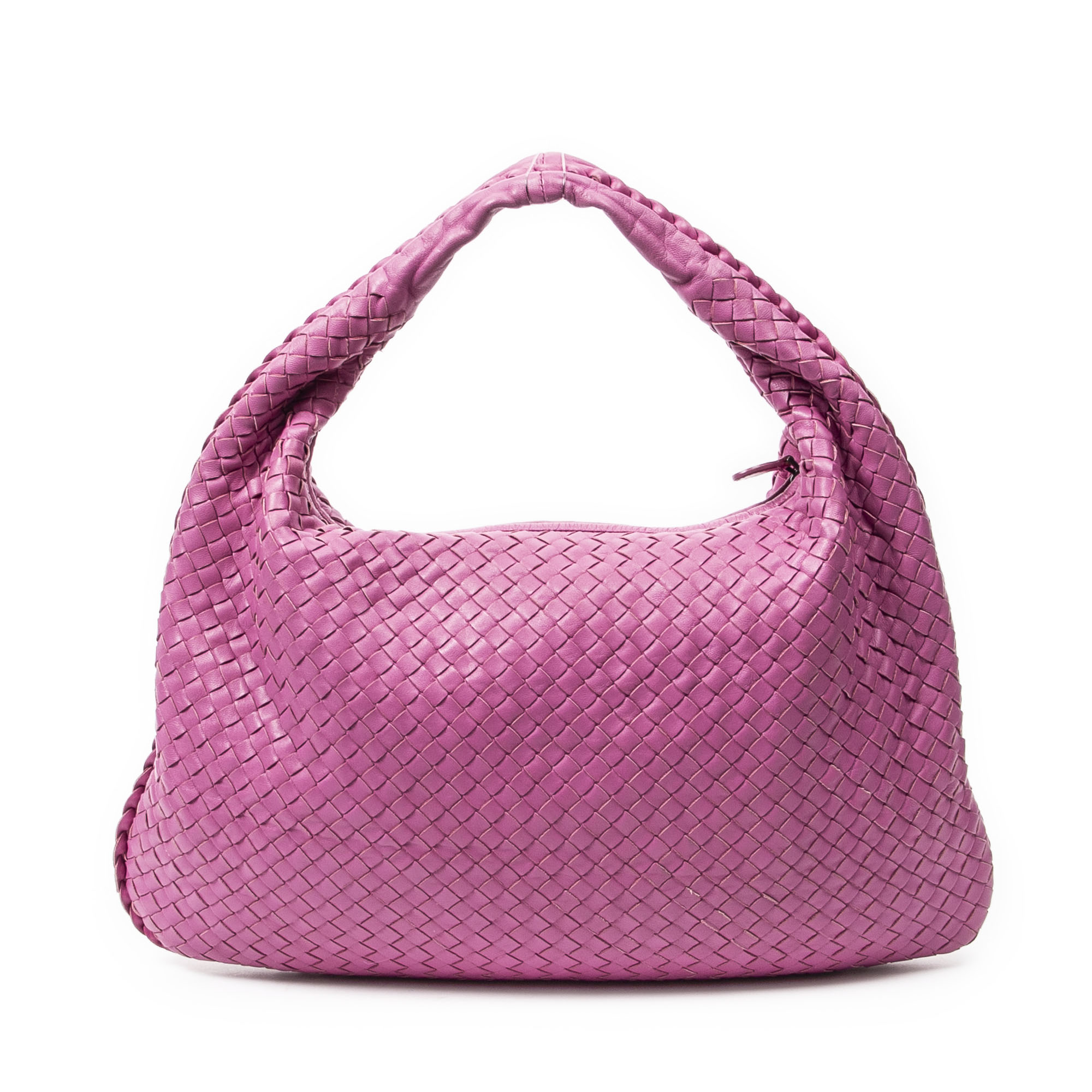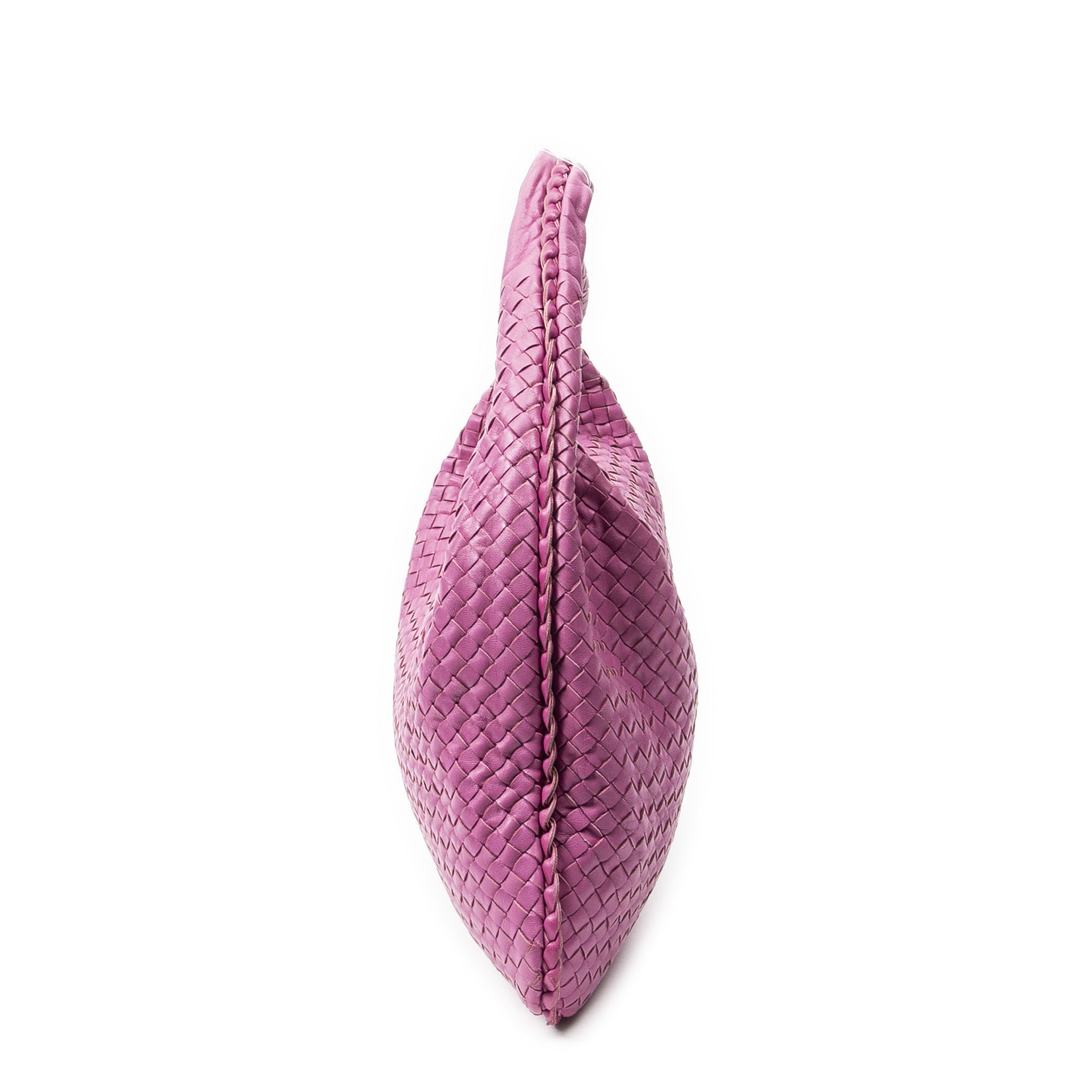 Bottega Veneta Shoulder Bag Large Veneta Hobo in Pink Intrecciato Leather and Silver hardware. The product is in Excellent Condition (A).