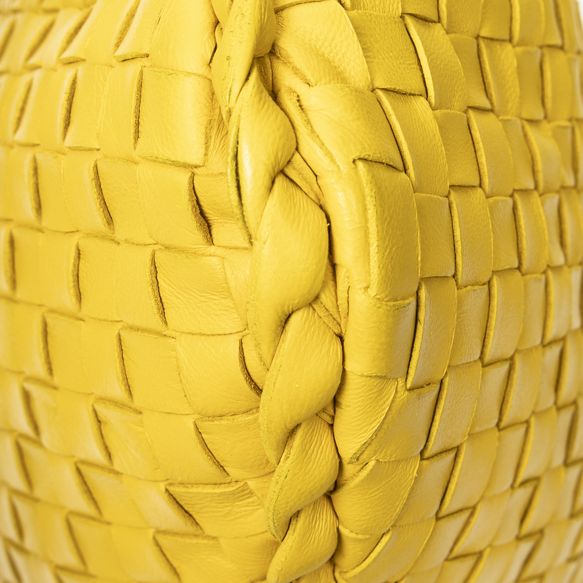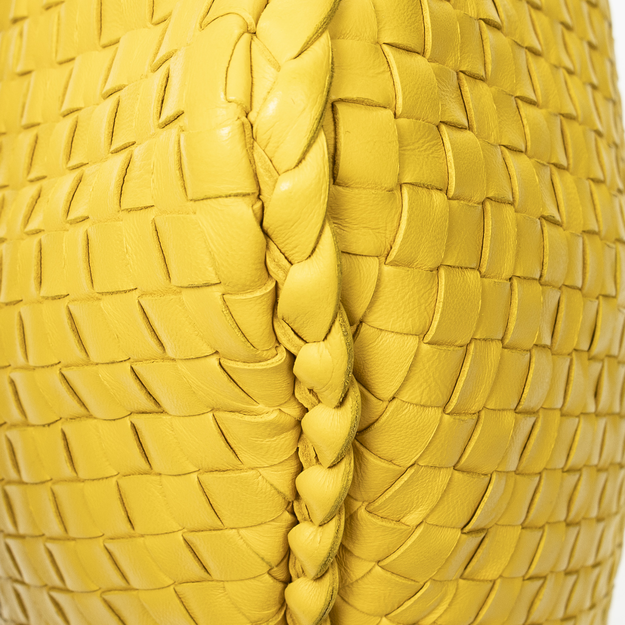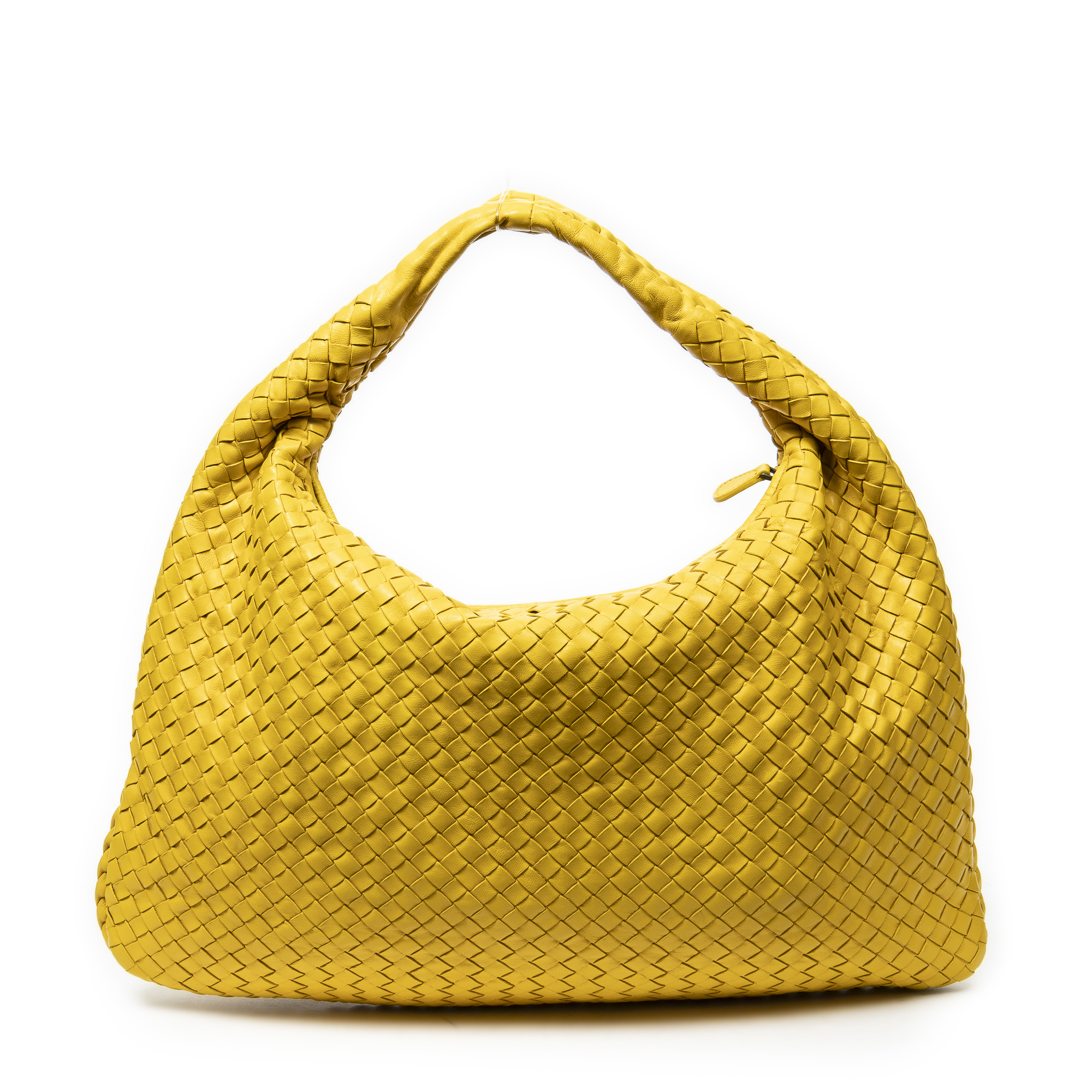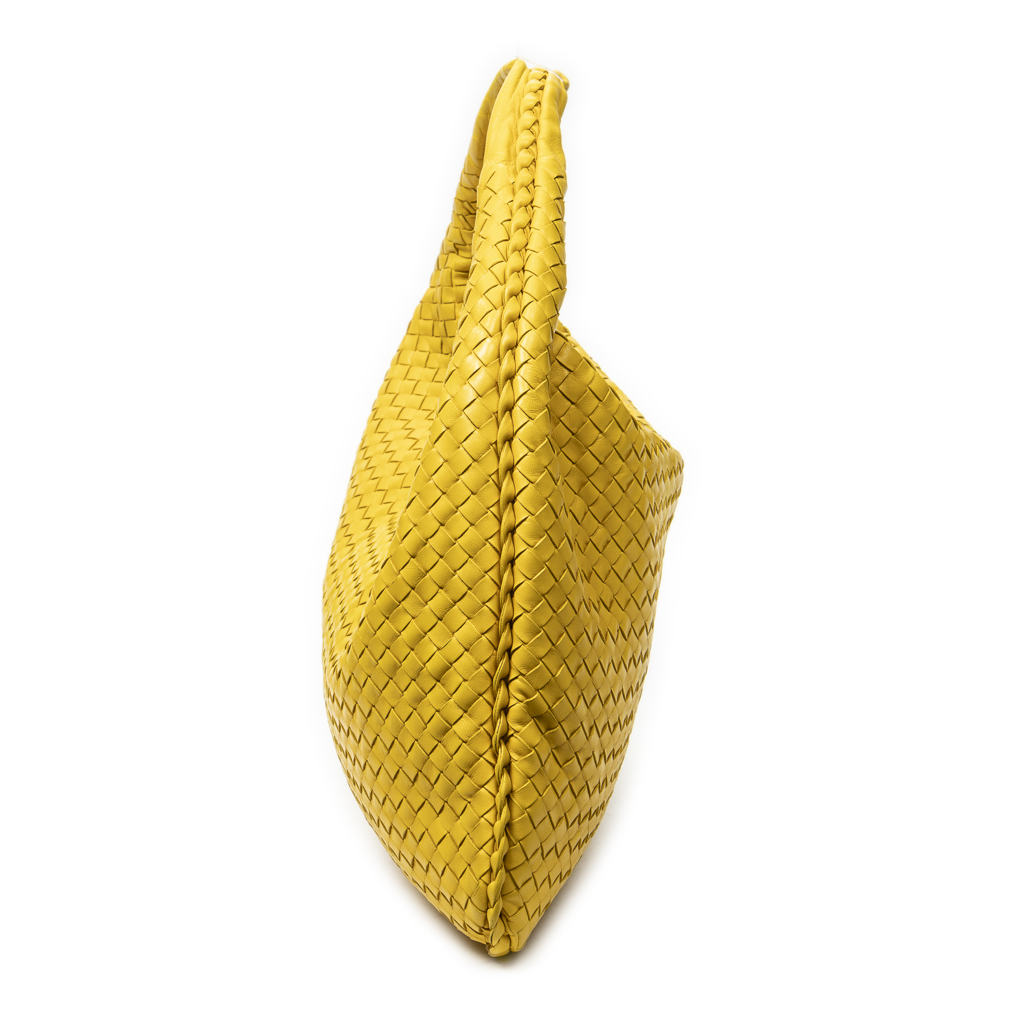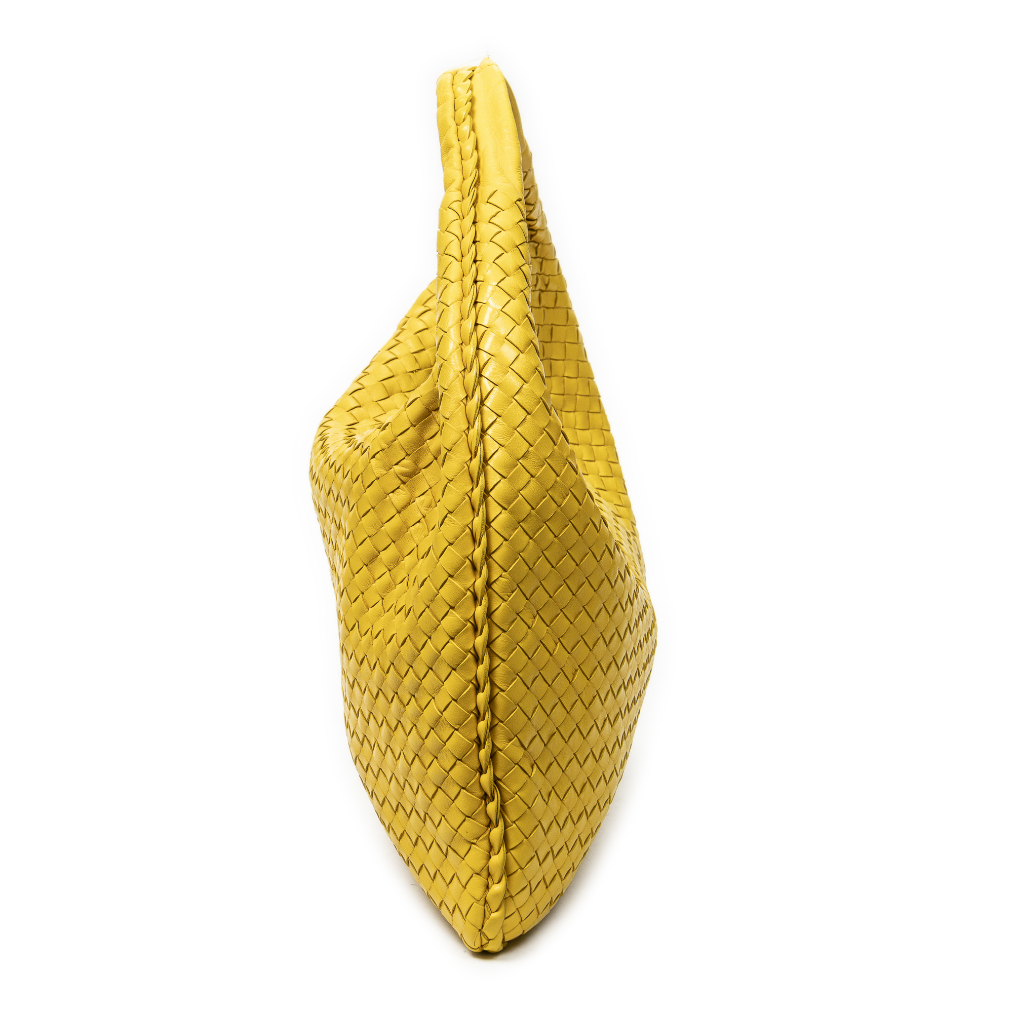 Bottega Veneta Shoulder Bag Large Veneta Hobo in Yellow Intrecciato Leather and Aged Brass hardware. The product is in Excellent Condition (A).