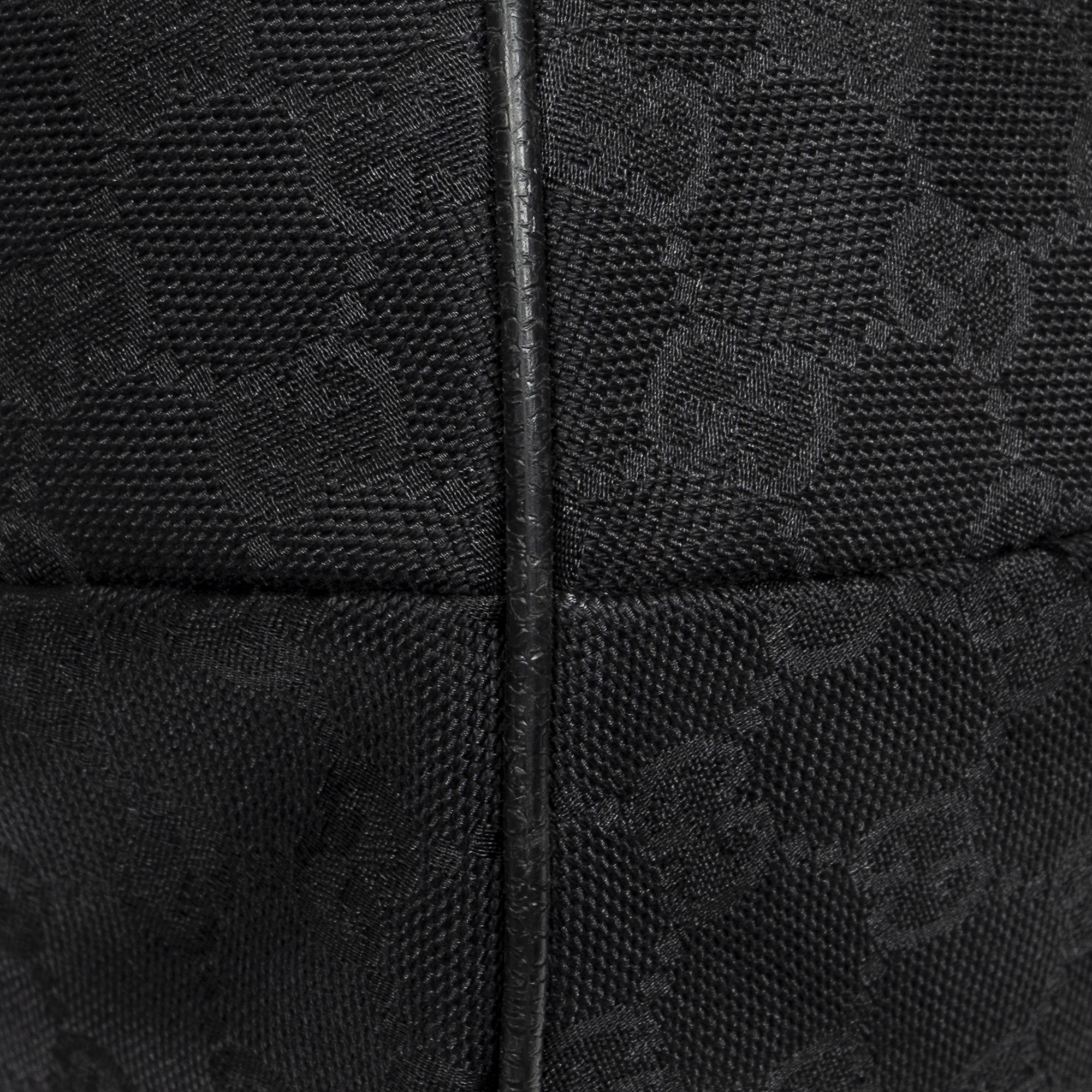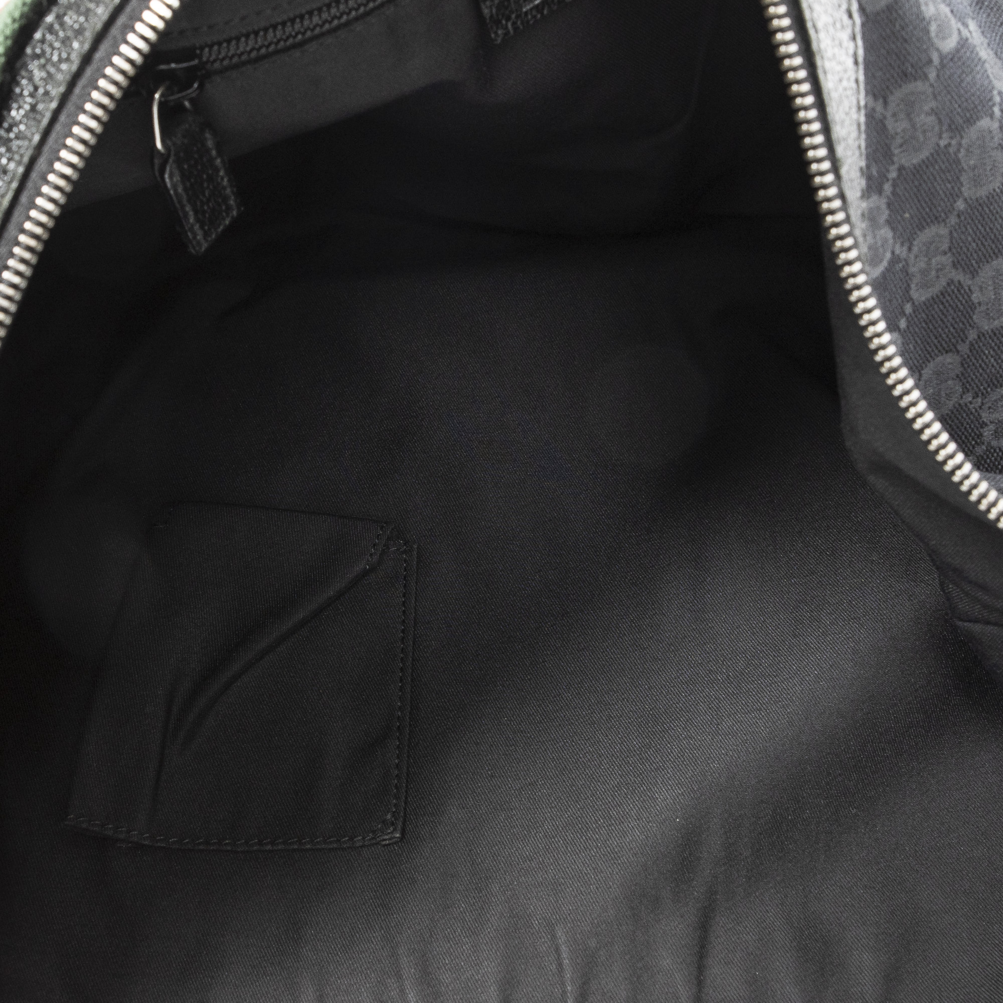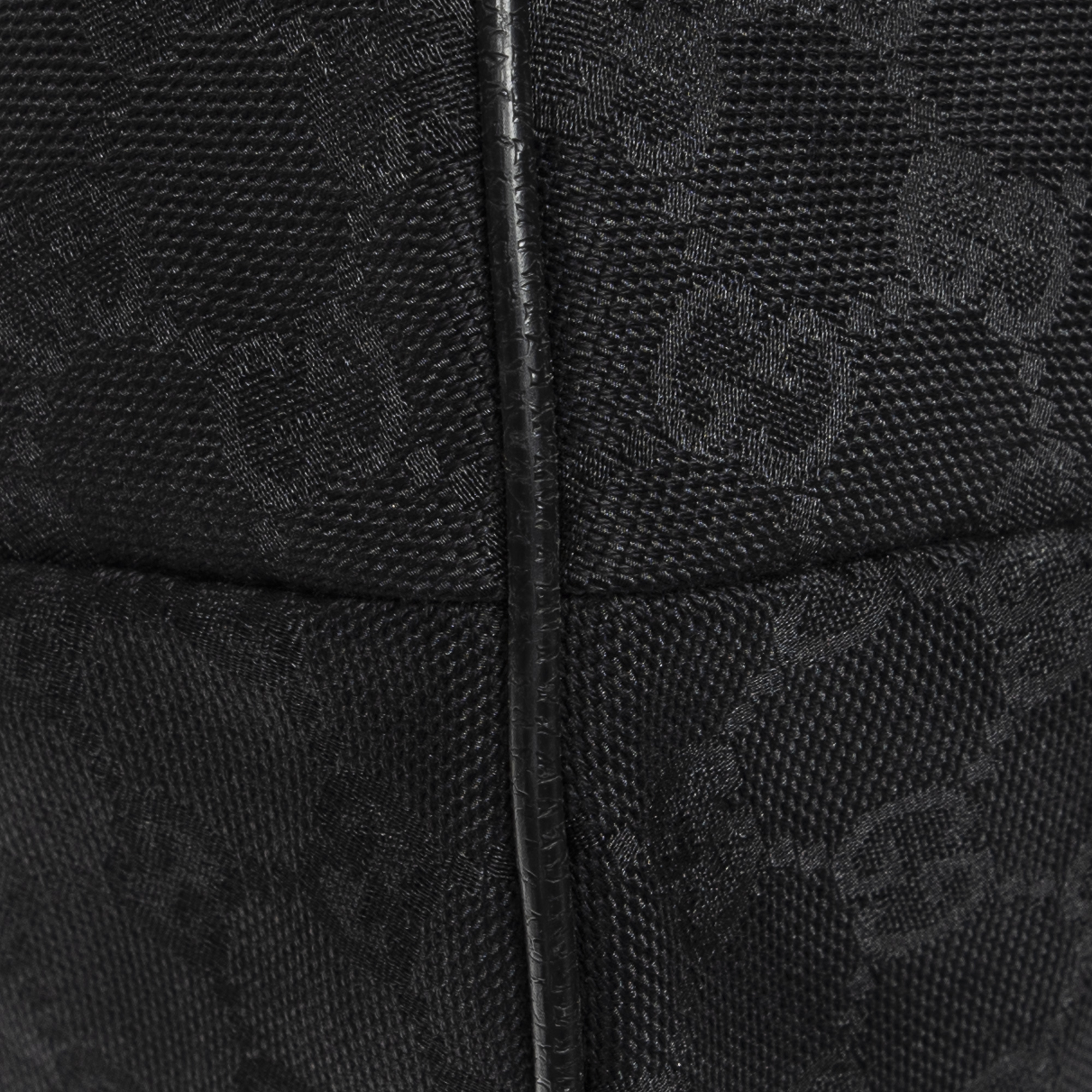 Gucci Shoulder Bag Large Web Half Moon Hobo in Black Monogrammed Canvas and Silver hardware. The product is in Excellent Condition (A).