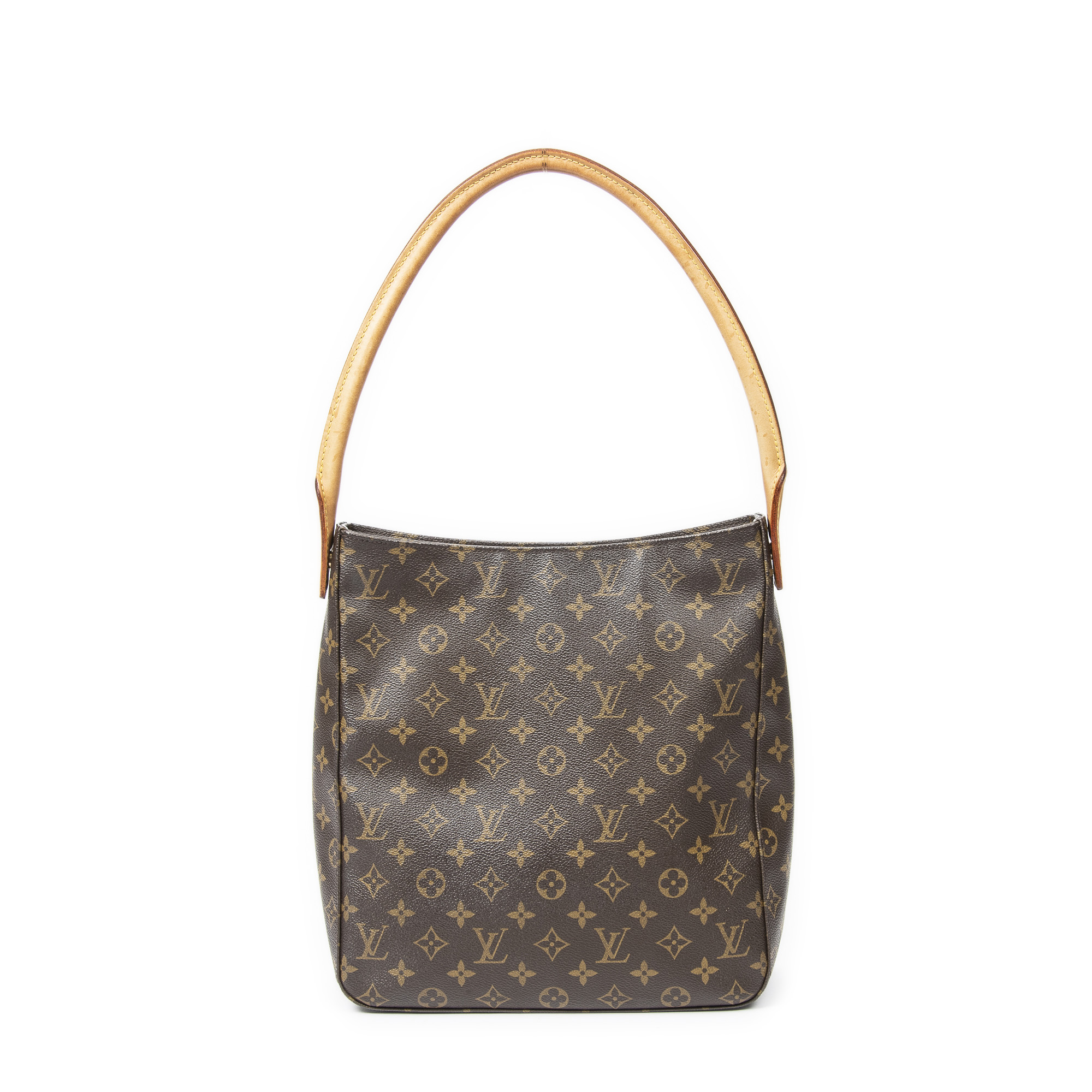 Louis Vuitton Shoulder Bag Looping GM in Brown Monogram Canvas and Golden Brass hardware. The product is in Very Good Condition (AB).