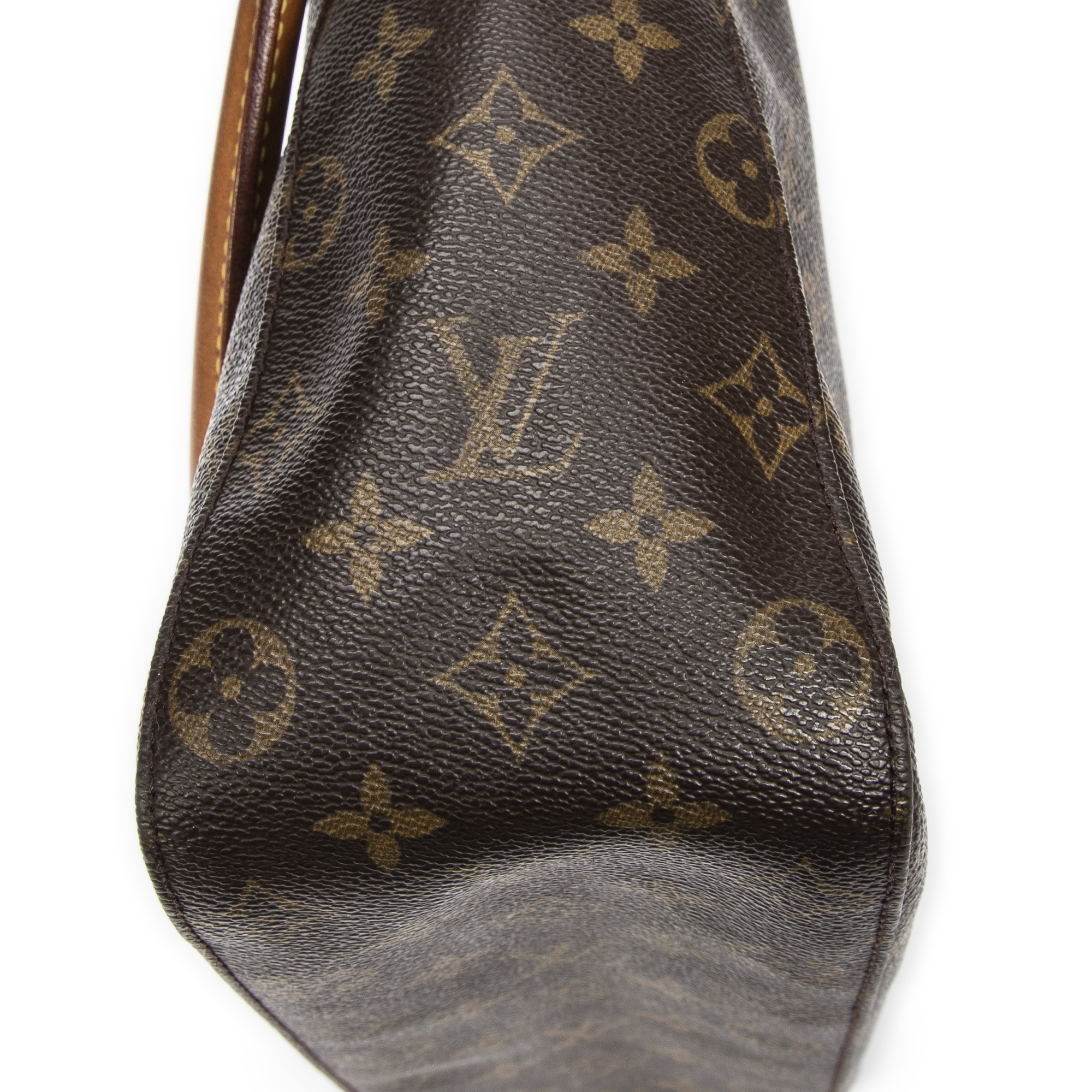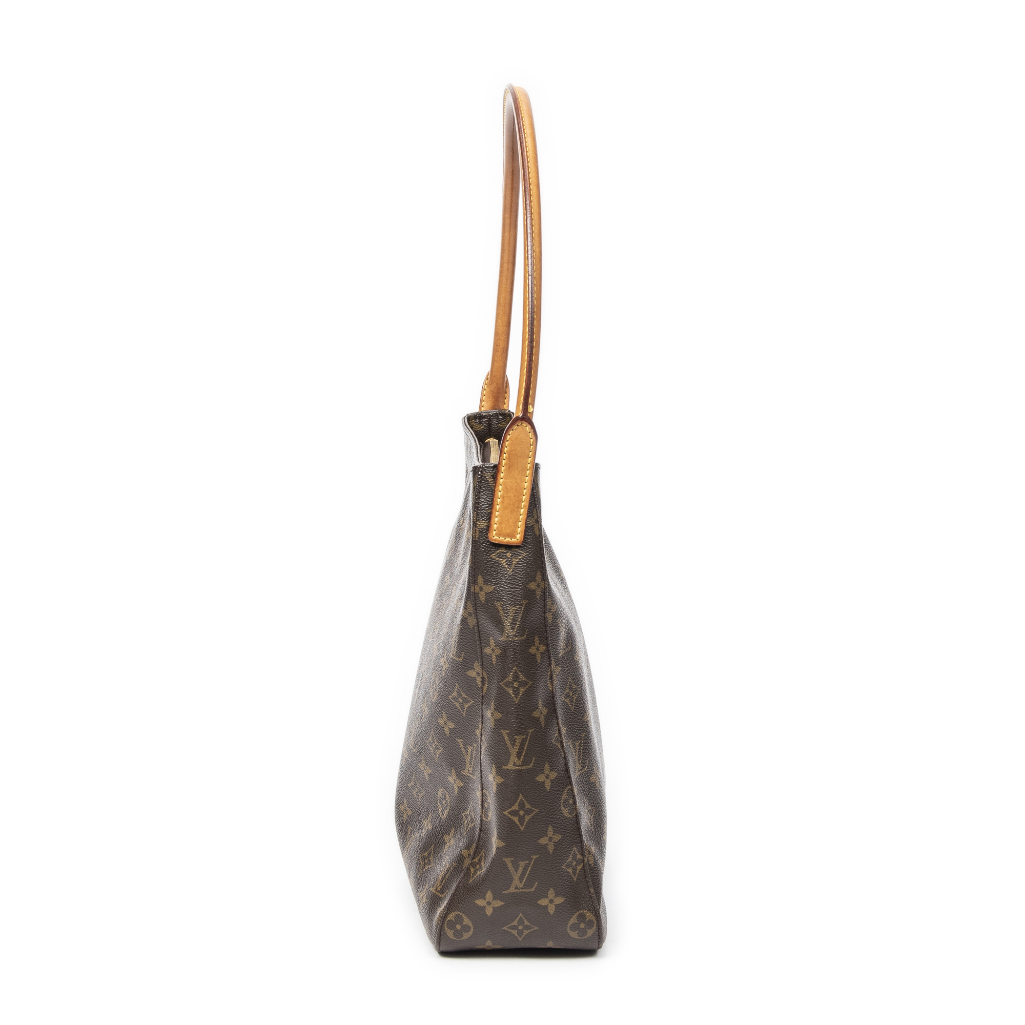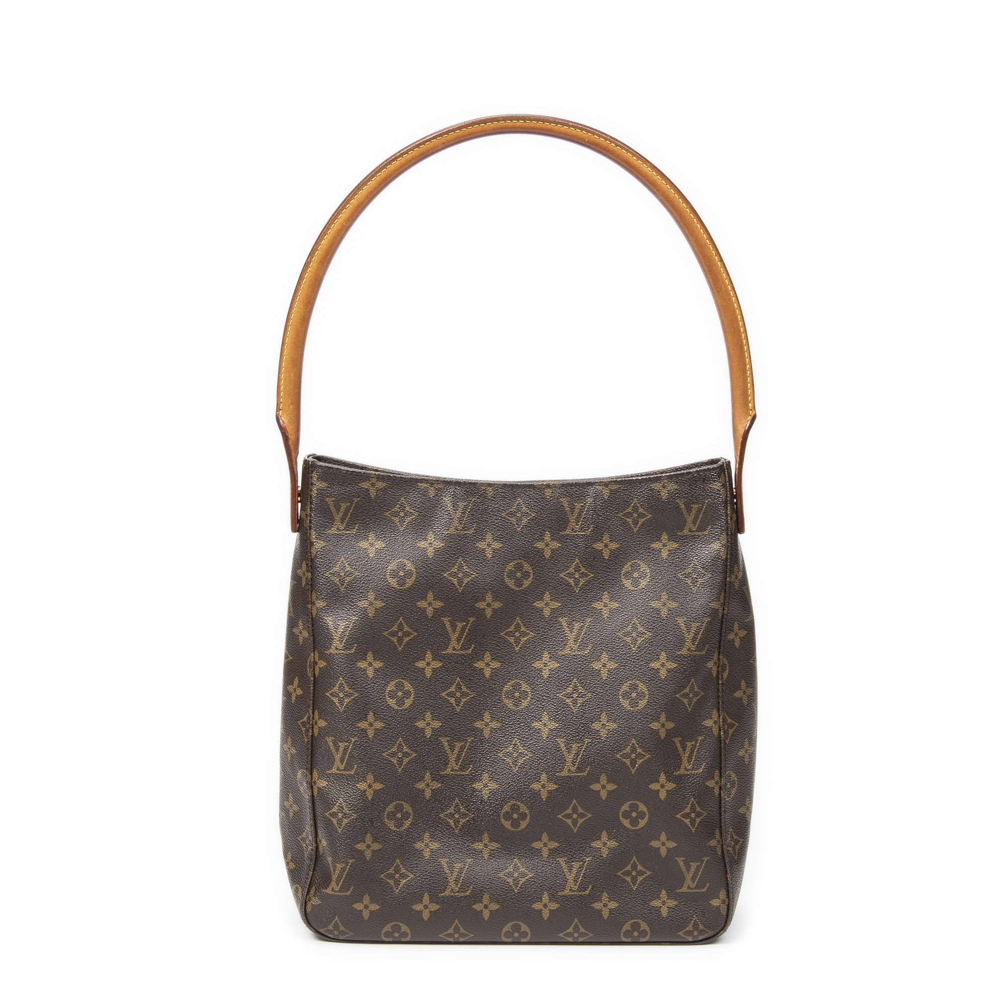 Louis Vuitton Shoulder Bag Looping GM in Brown Monogram Canvas and Golden Brass hardware. The product is in Very Good Condition (AB).