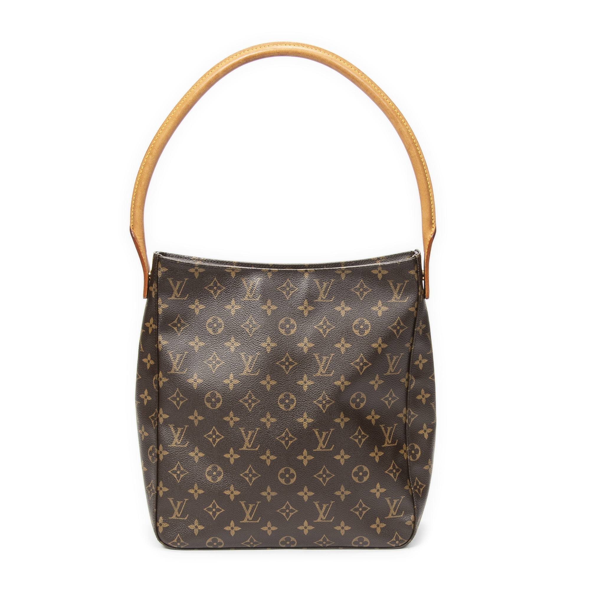 Louis Vuitton Shoulder Bag Looping GM in Brown Monogram Canvas and Golden Brass hardware. The product is in Very Good Condition (AB).