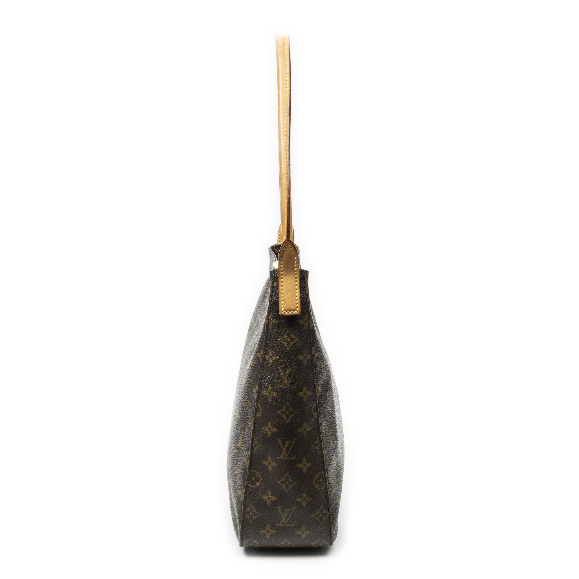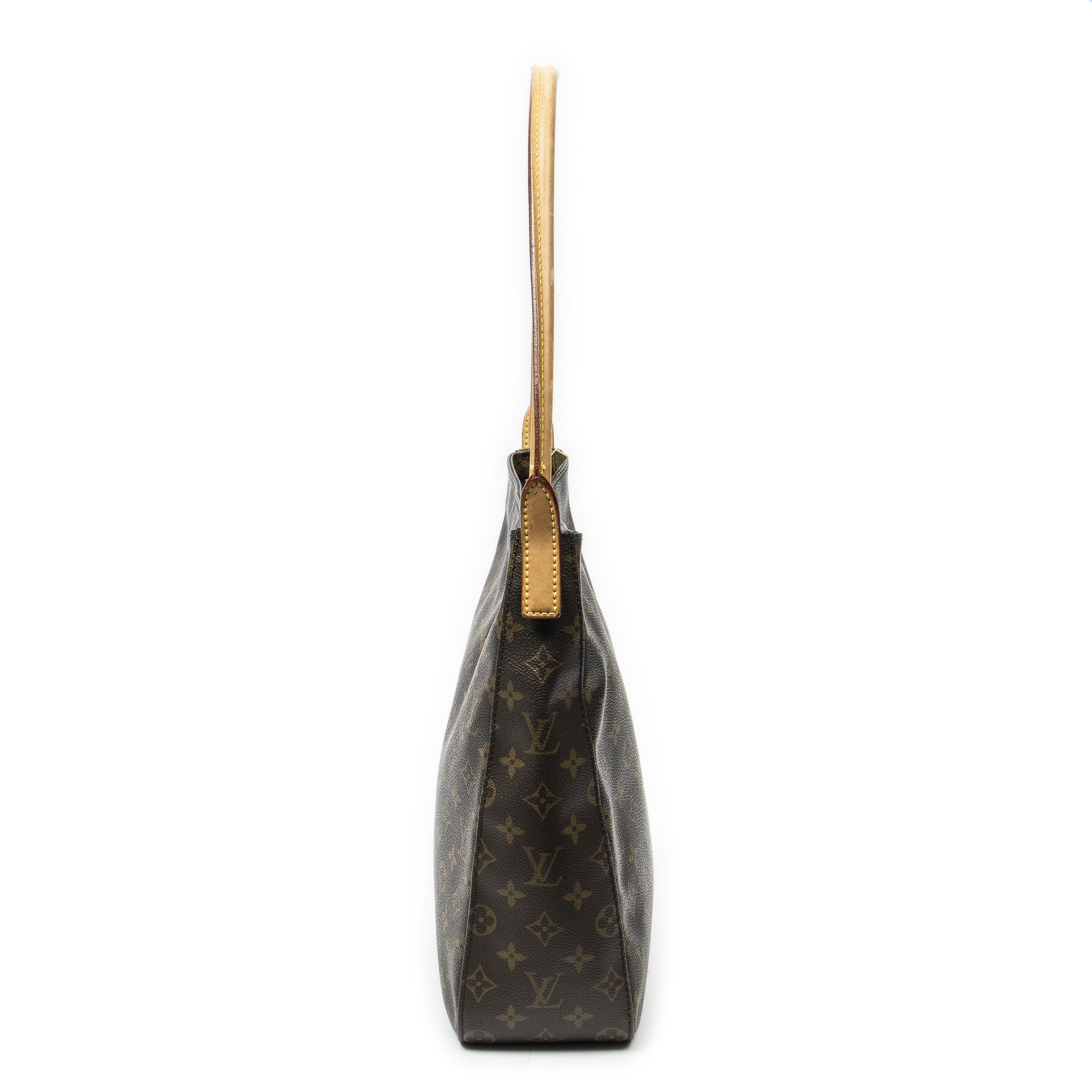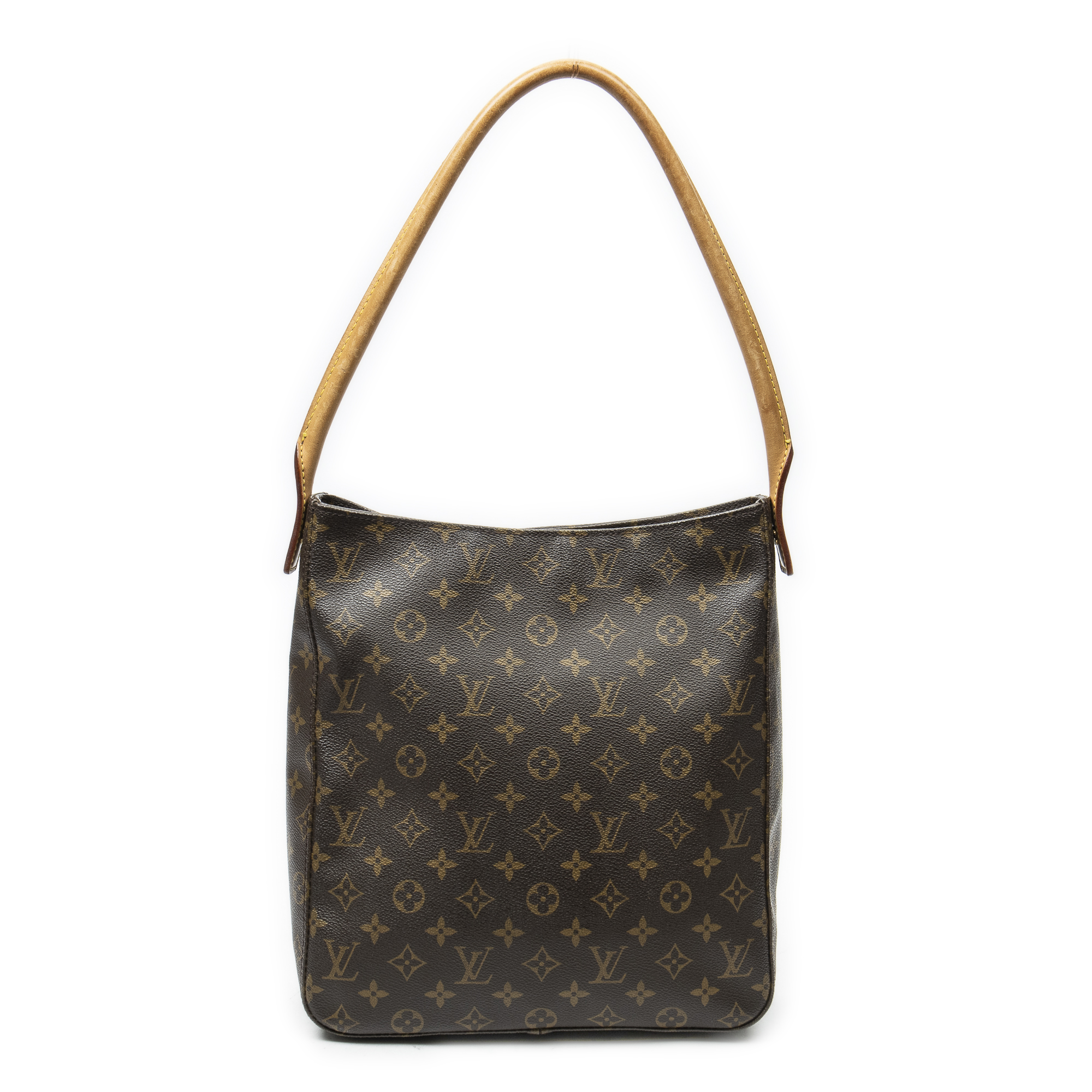 Louis Vuitton Shoulder Bag Looping GM in Brown Monogram Canvas and Golden Brass hardware. The product is in Very Good Condition (AB).